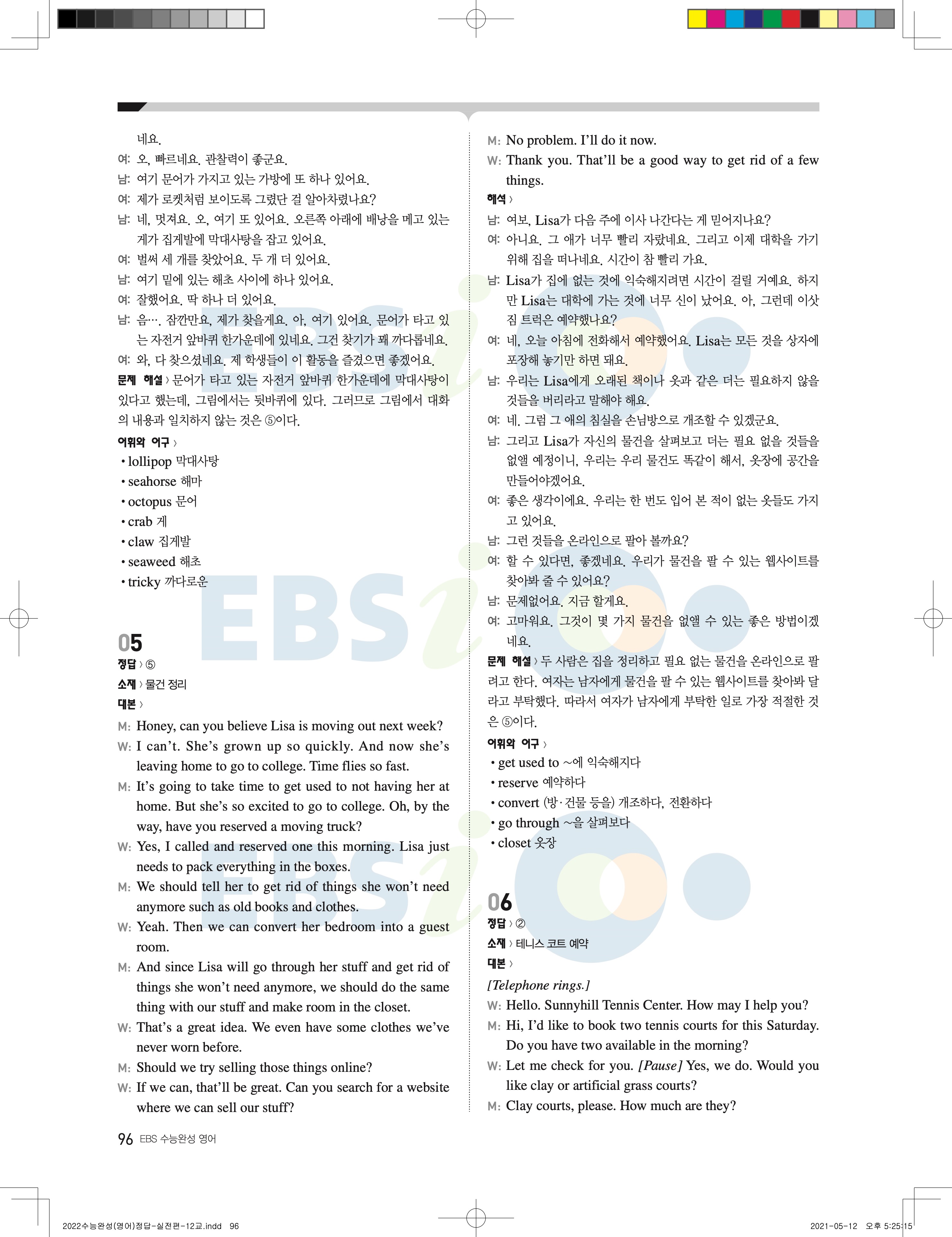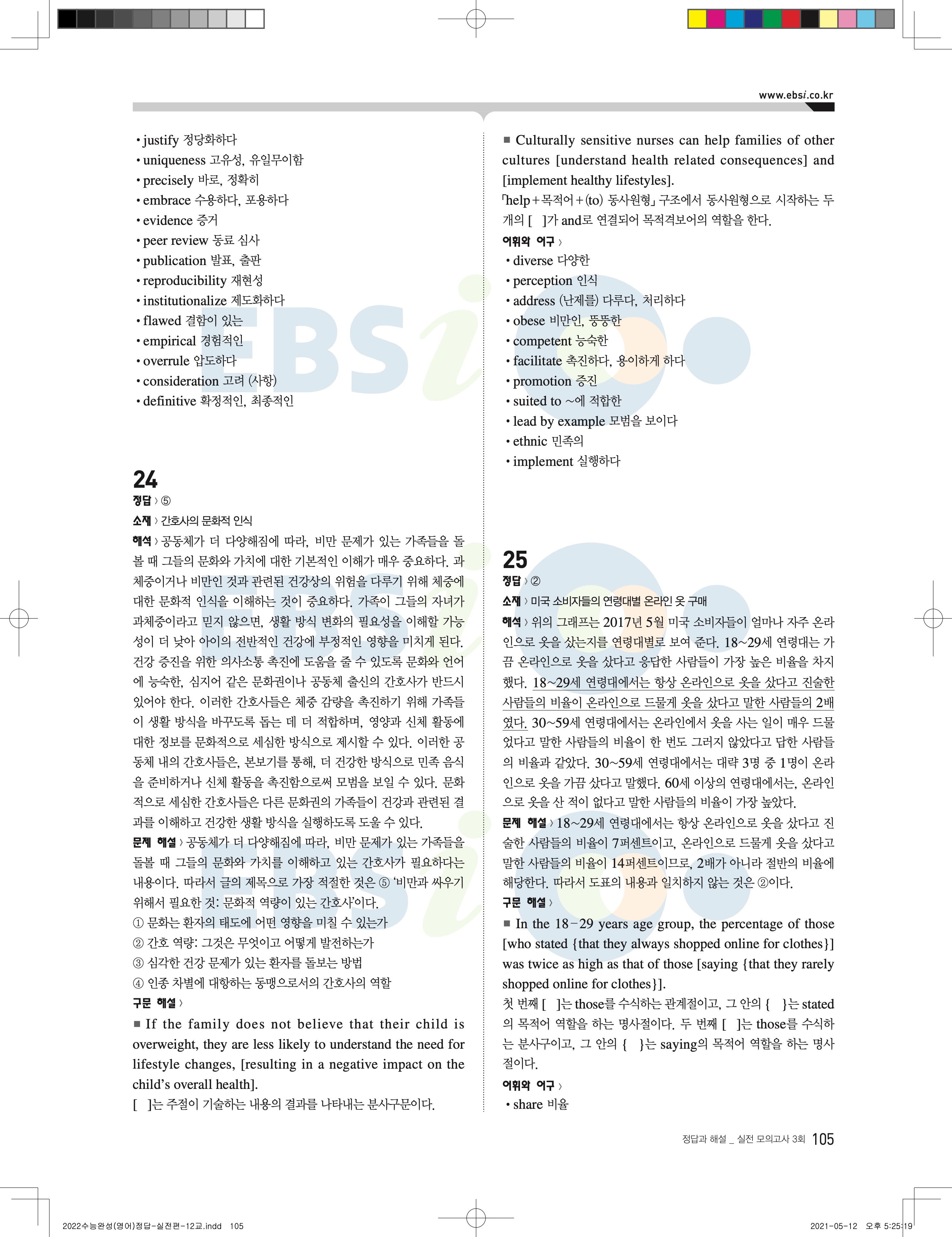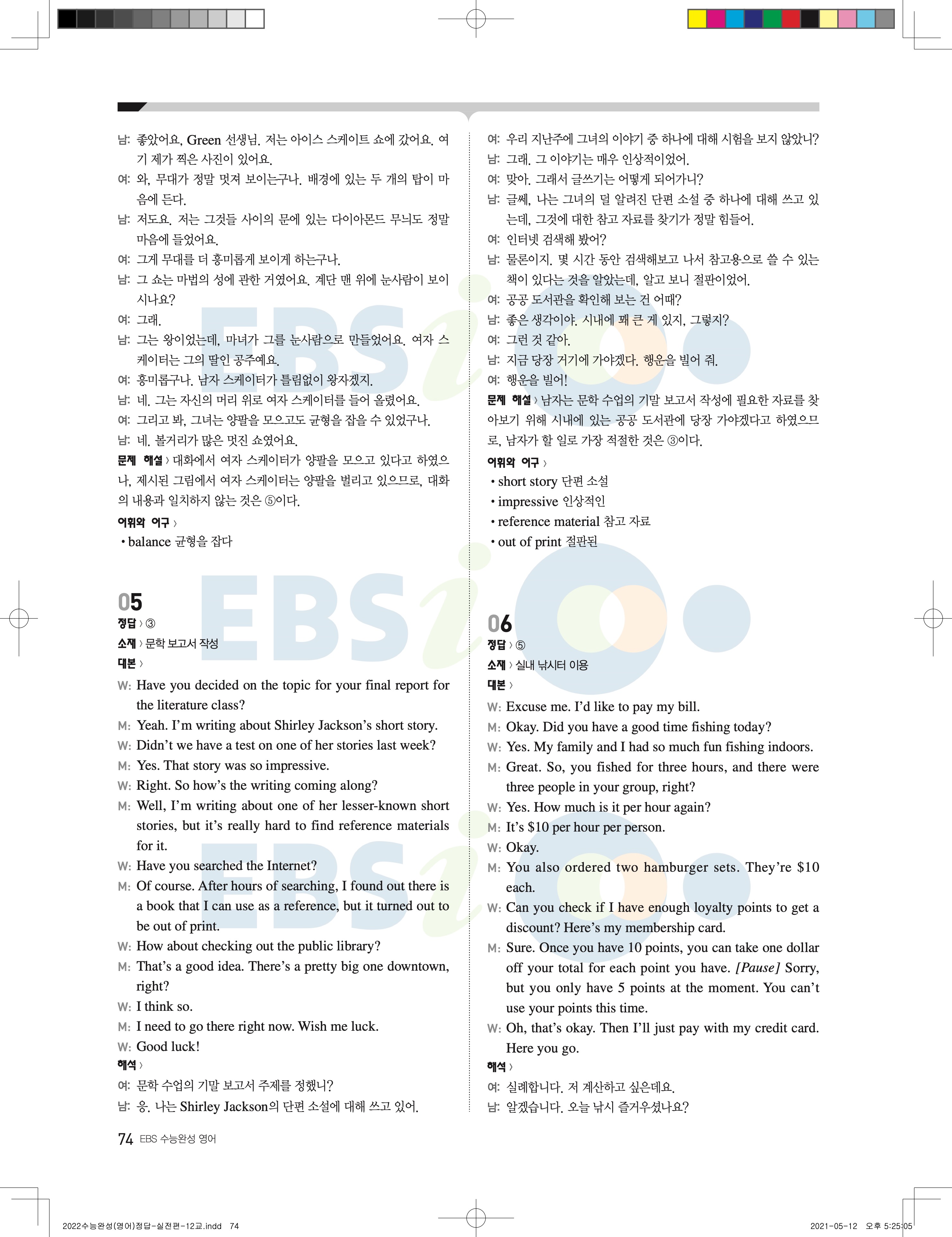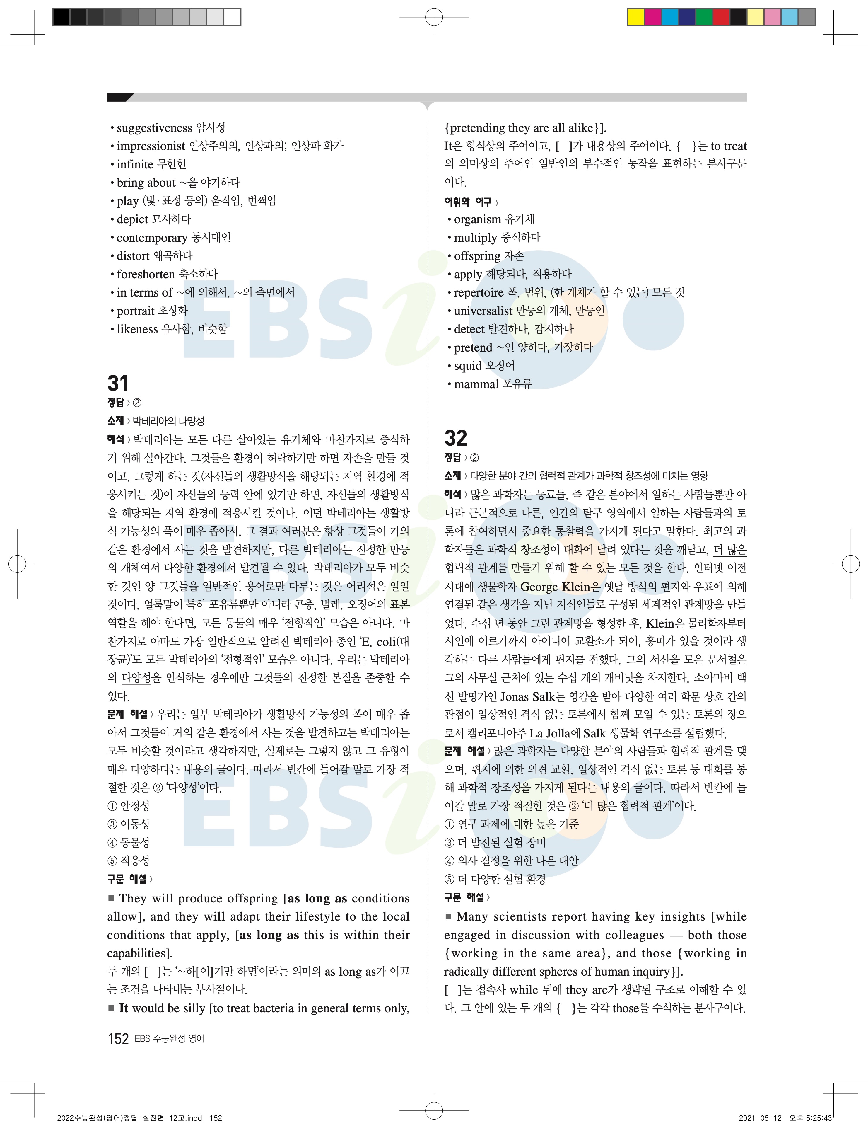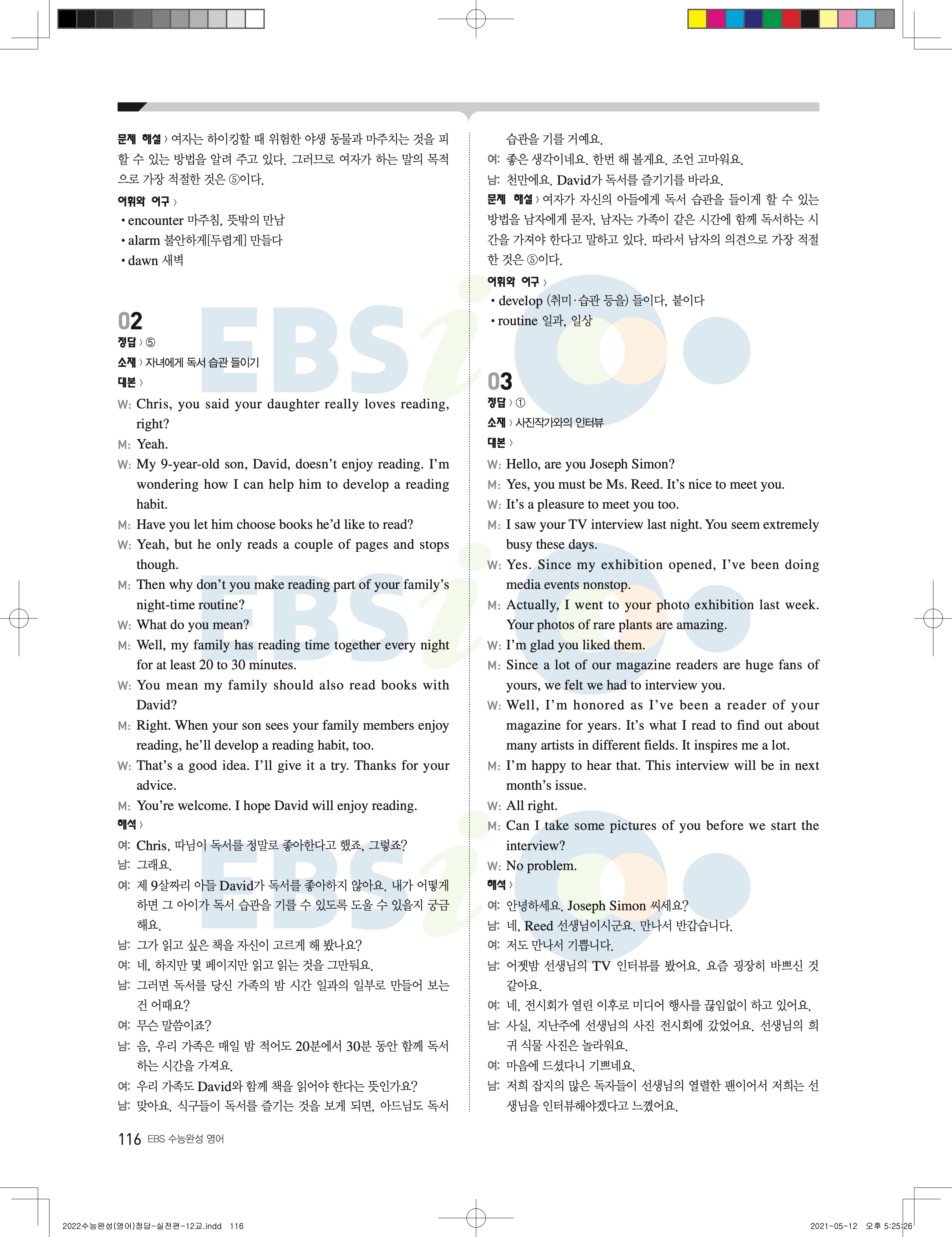 2022 EBS 수능완성 영어영역 영어 답지 해설 바로보는 사진답지 모바일최적화