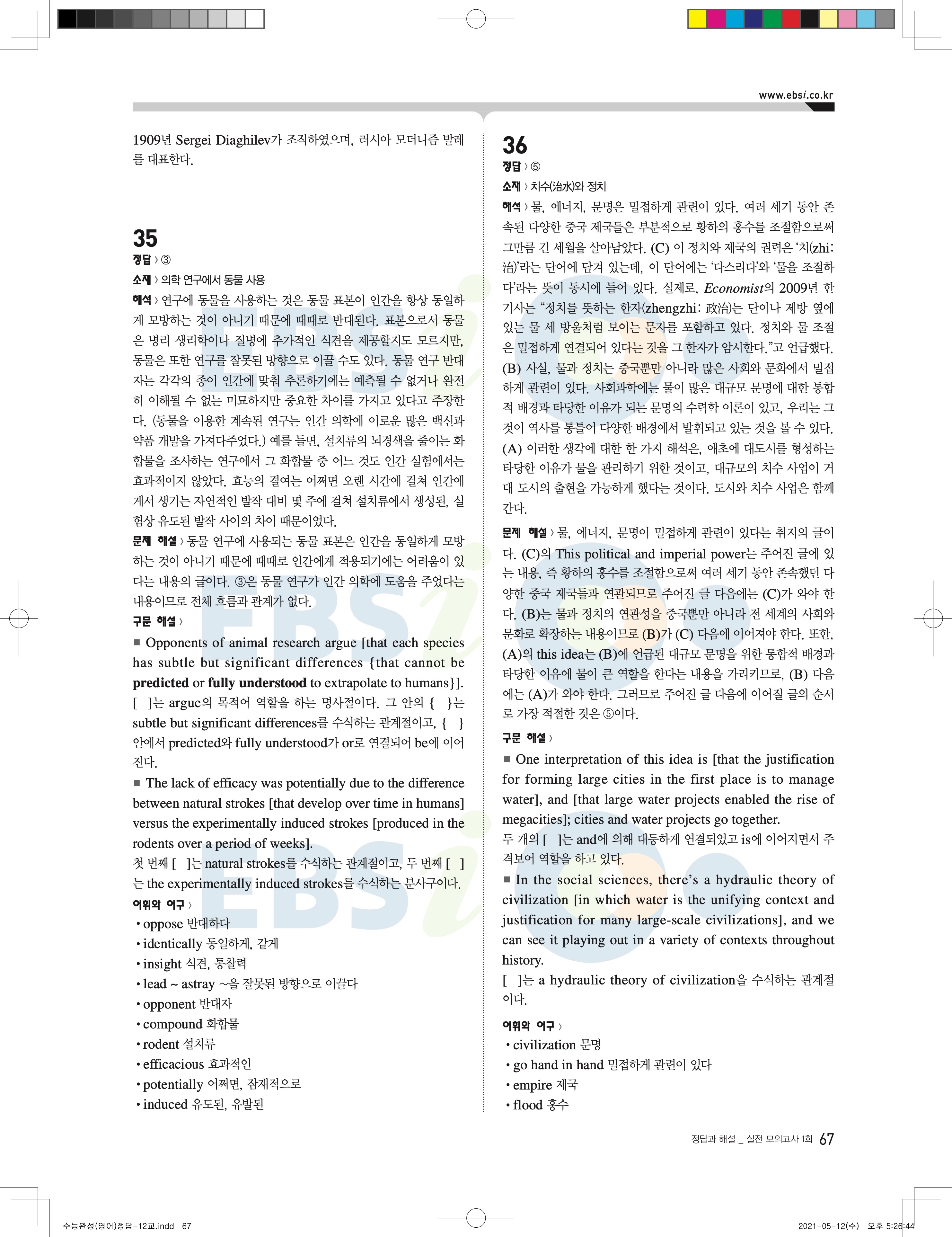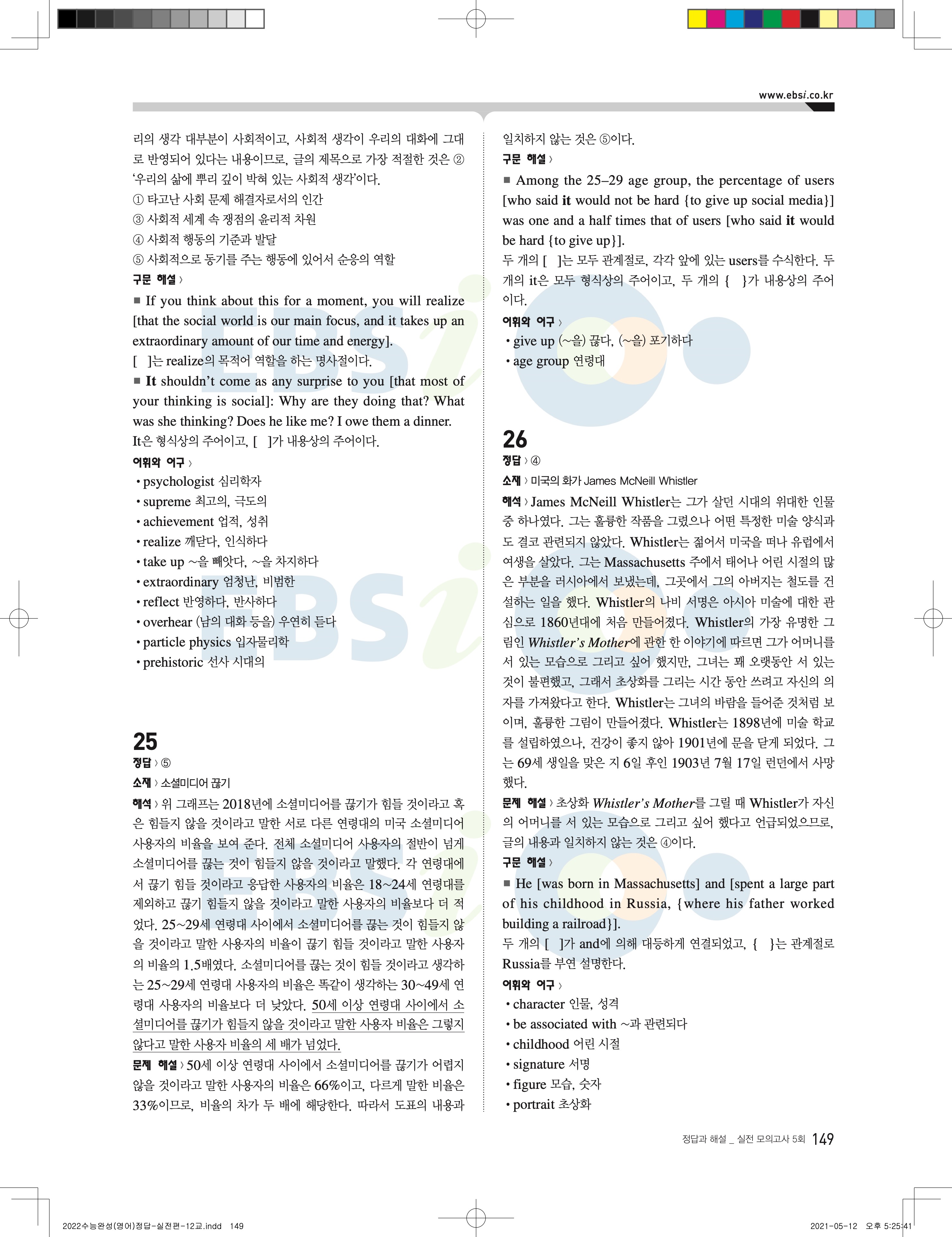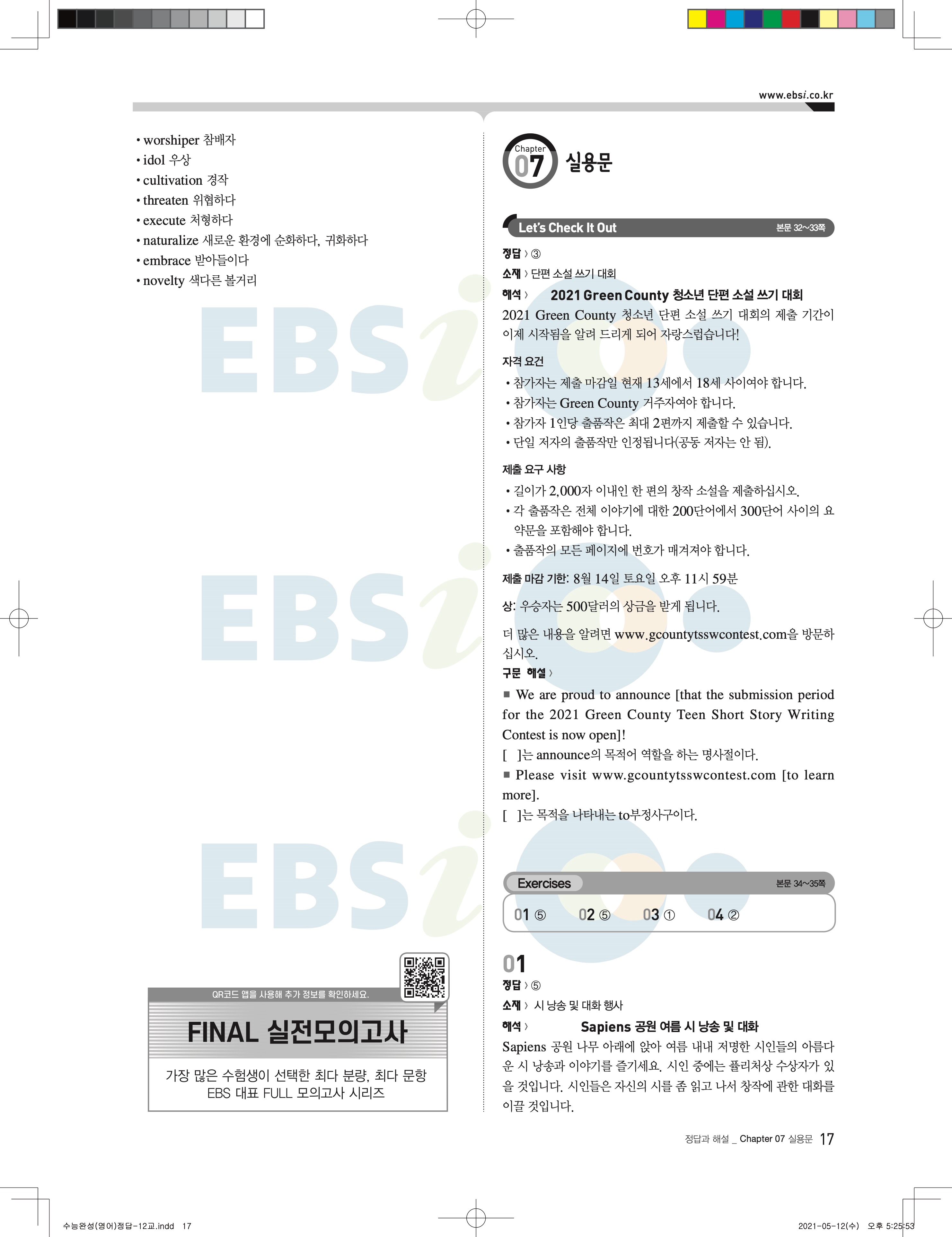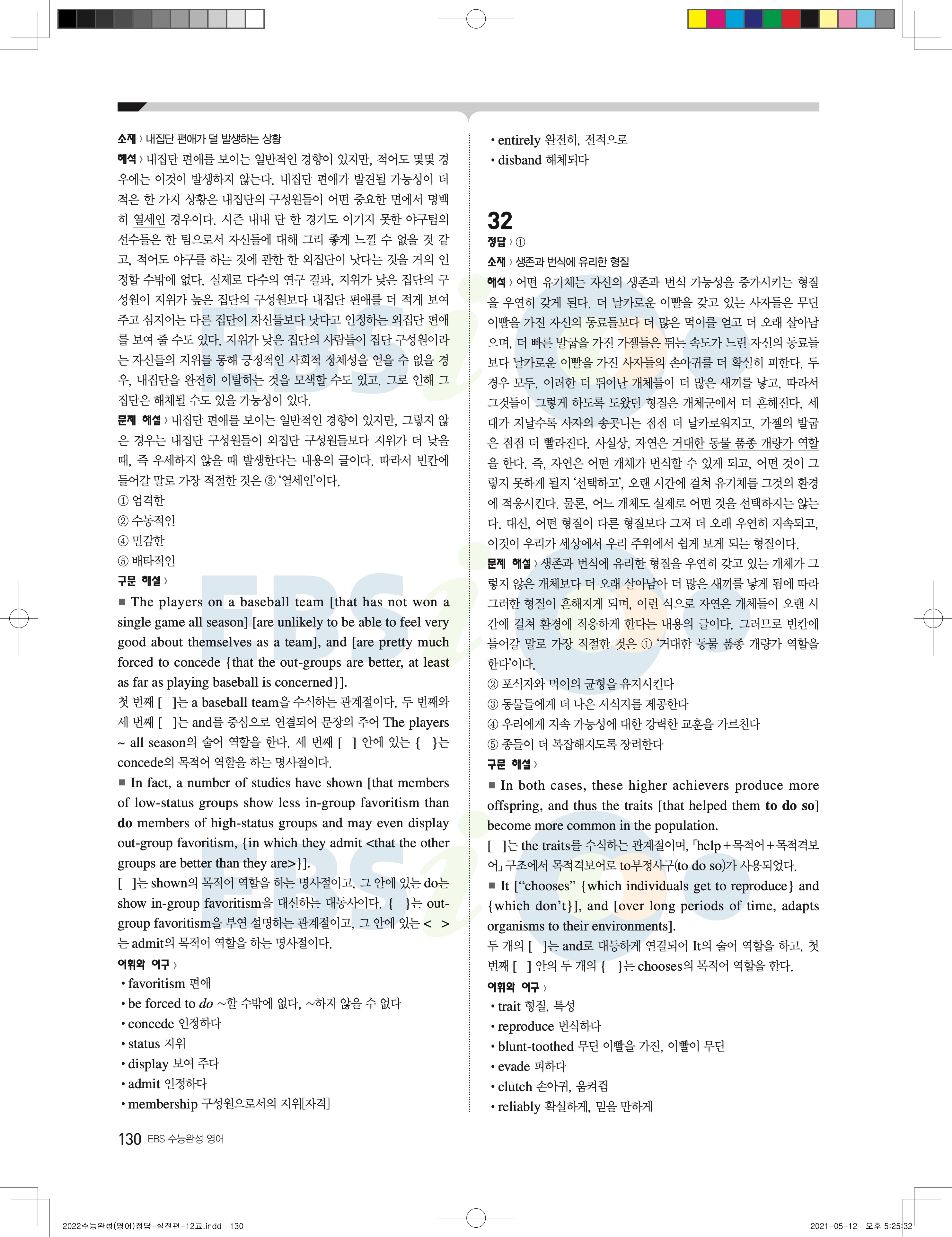 2022 EBS 수능완성 영어영역 영어 답지 해설 바로보는 사진답지 모바일최적화