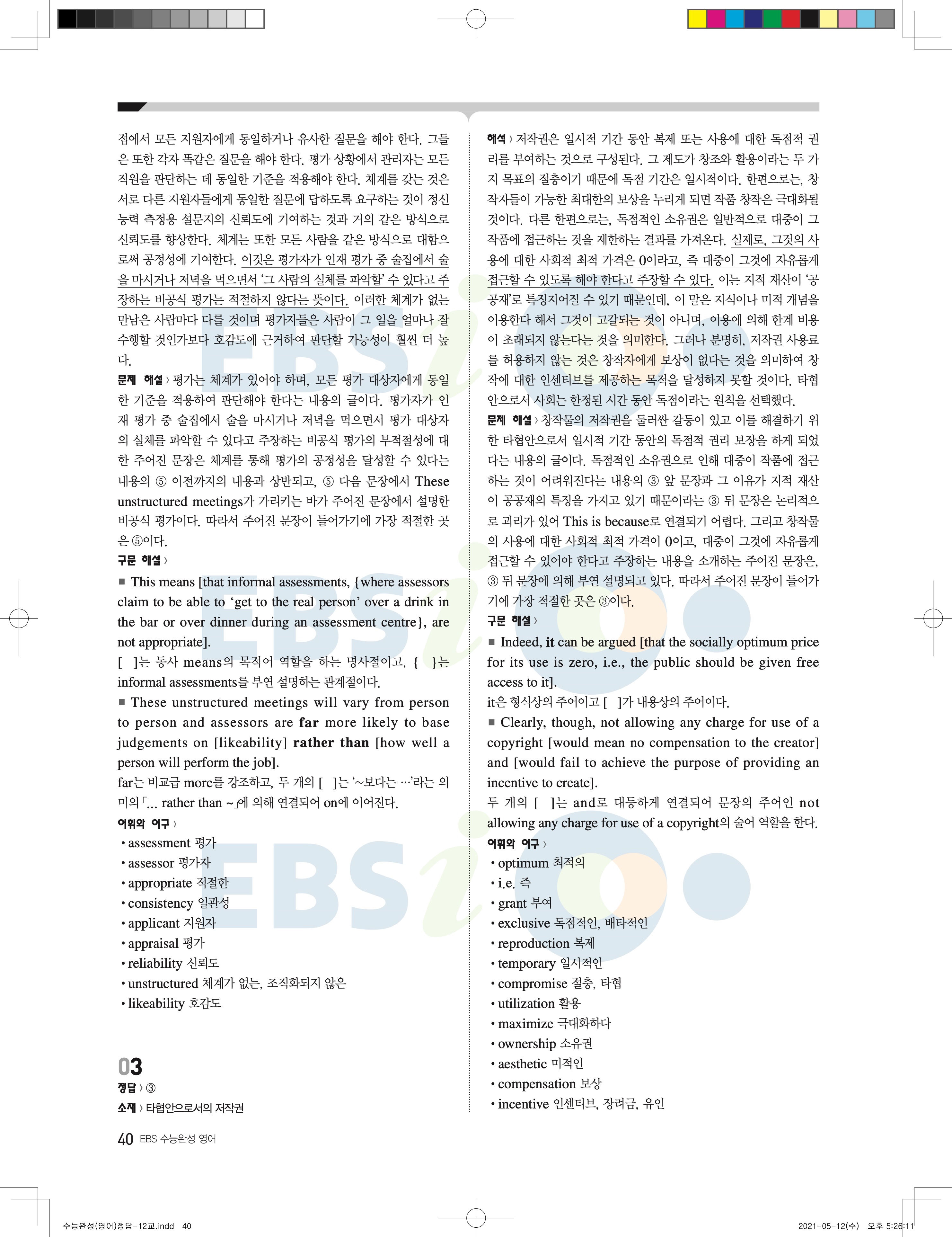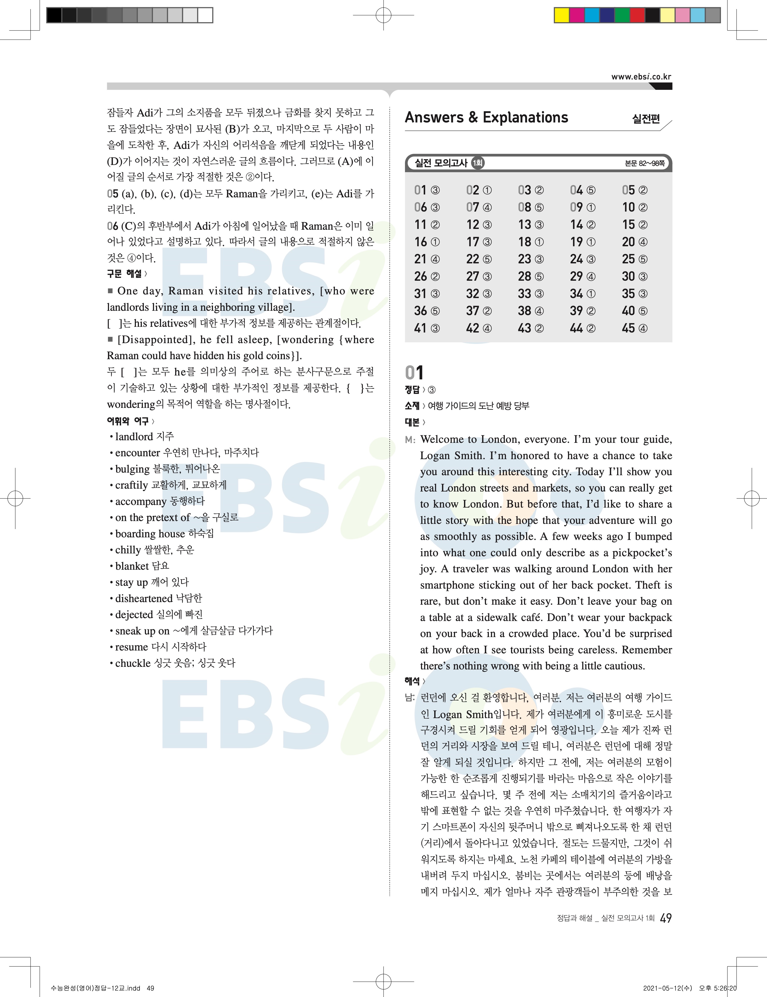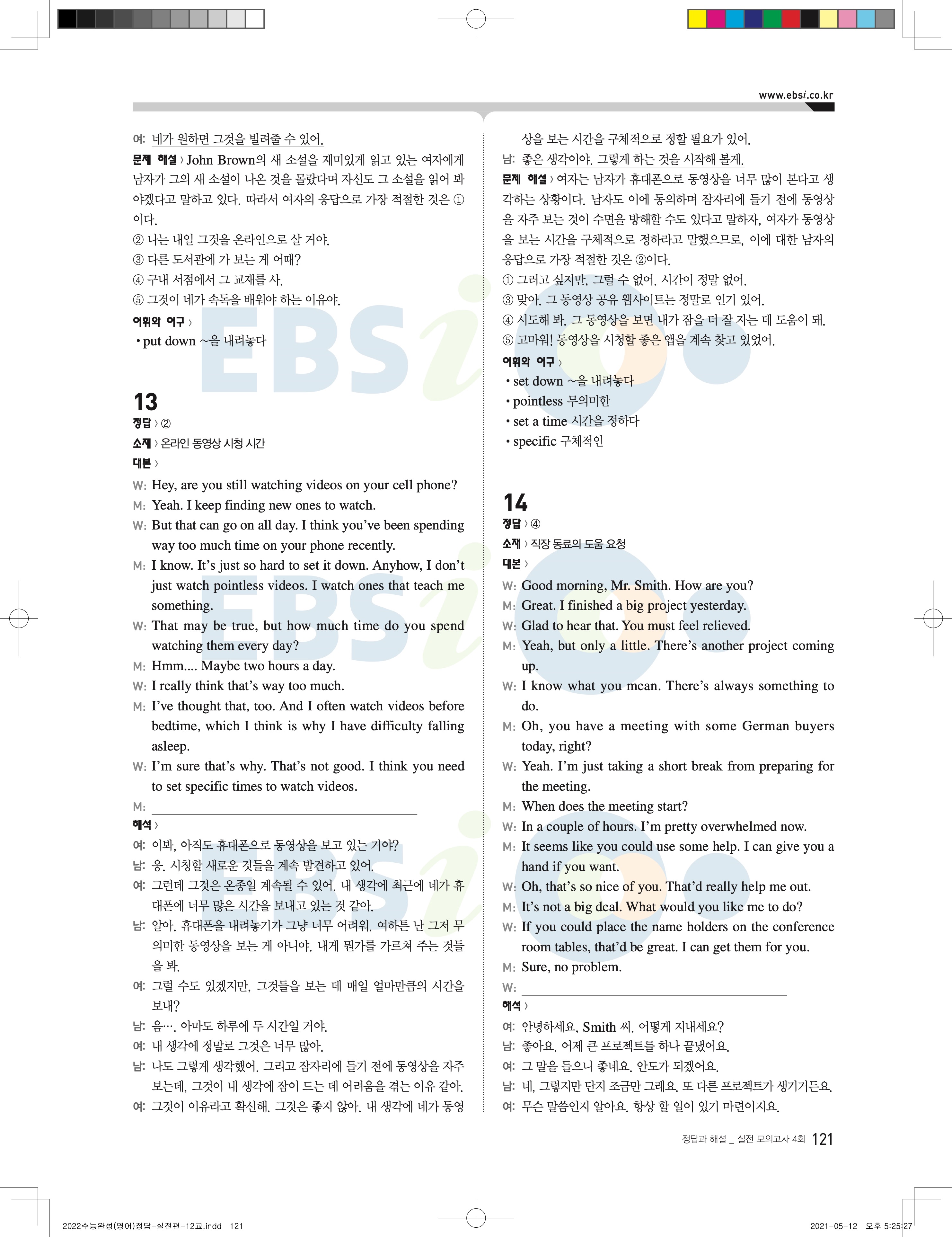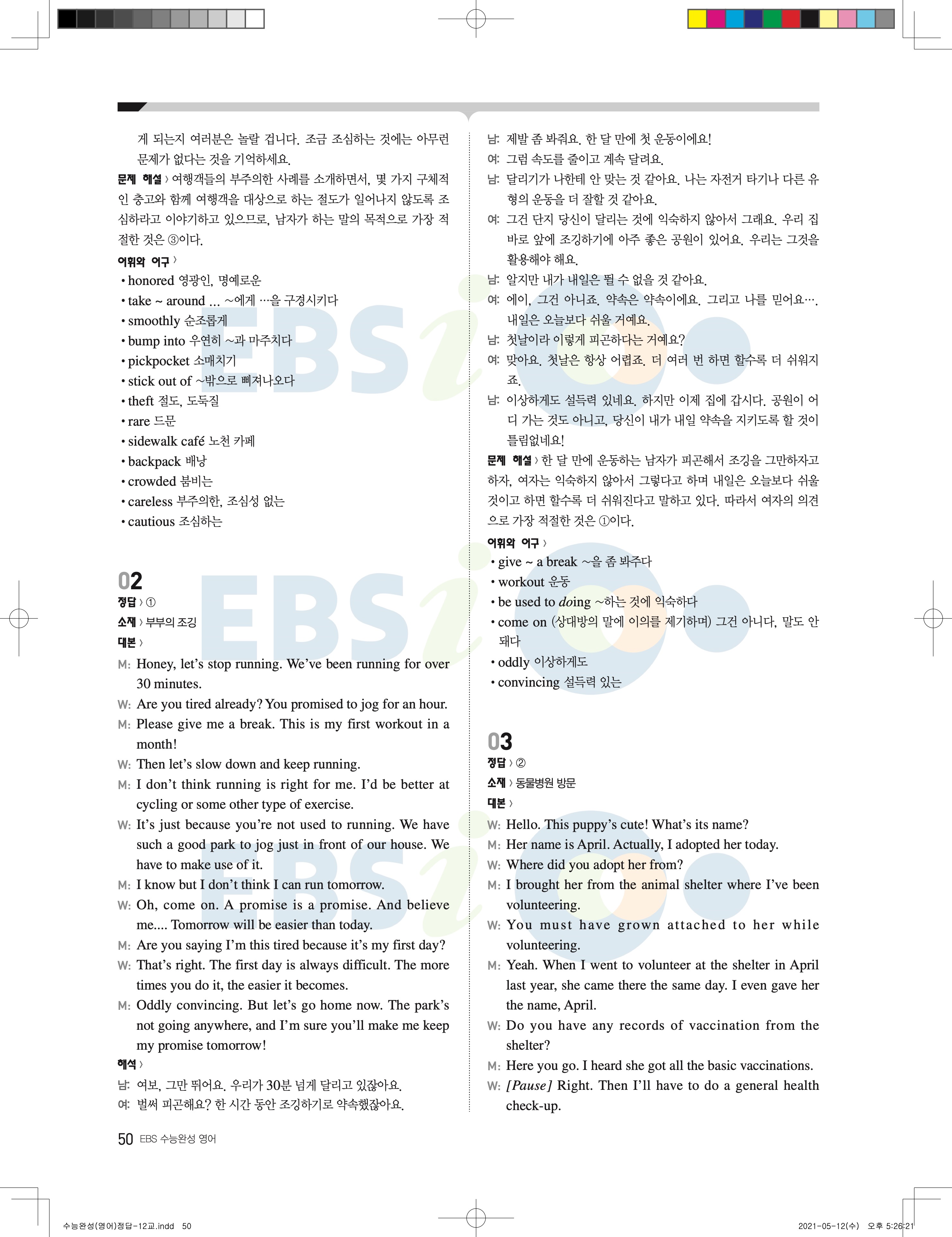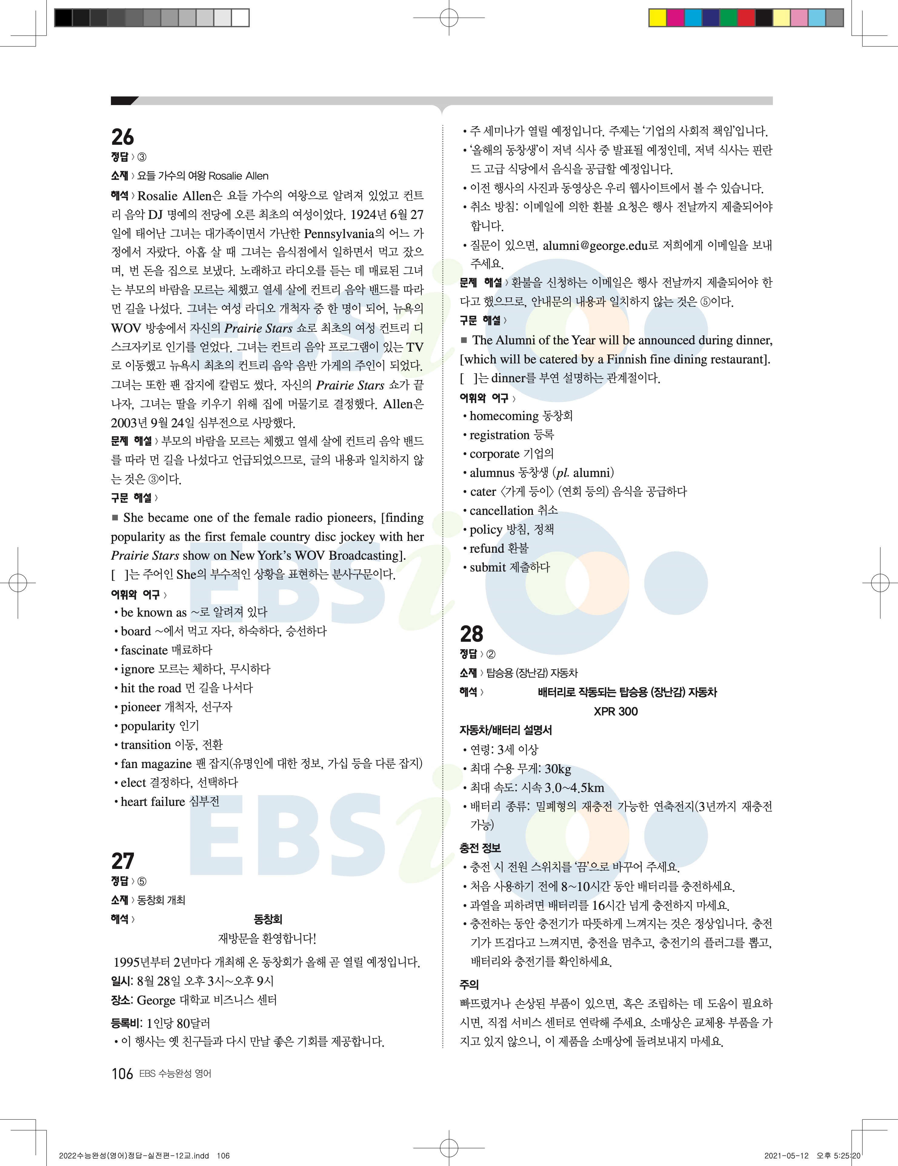 2022 EBS 수능완성 영어영역 영어 답지 해설 바로보는 사진답지 모바일최적화