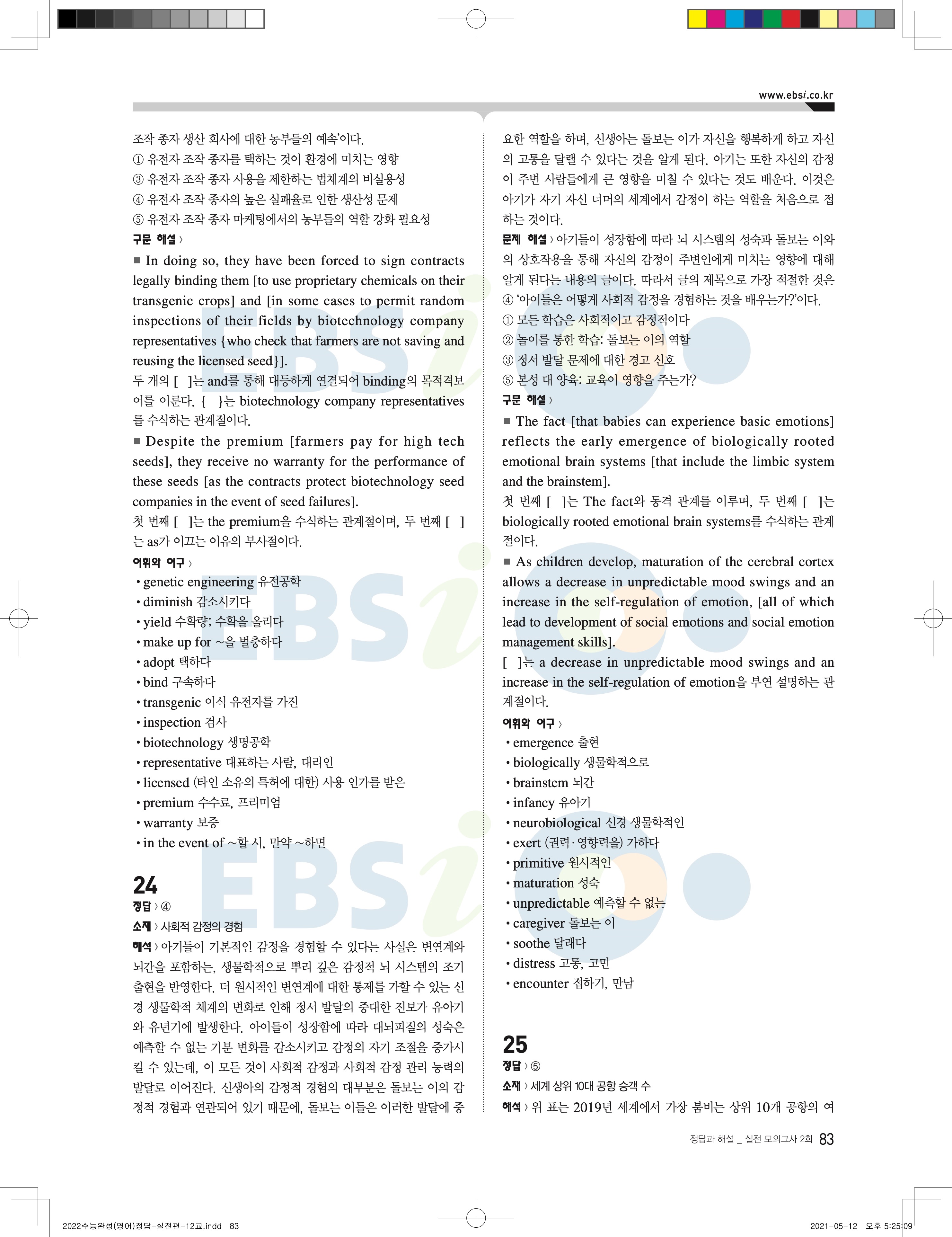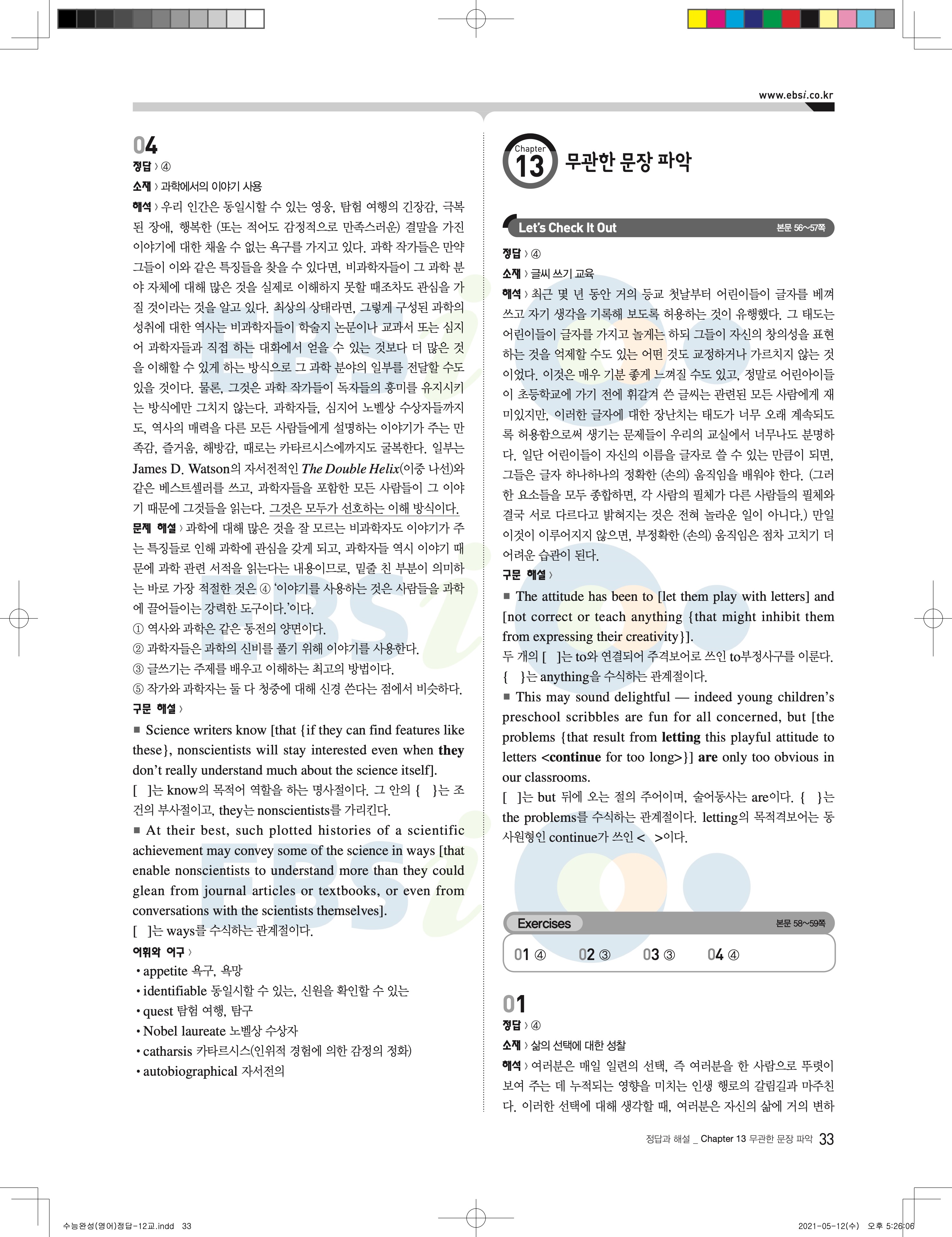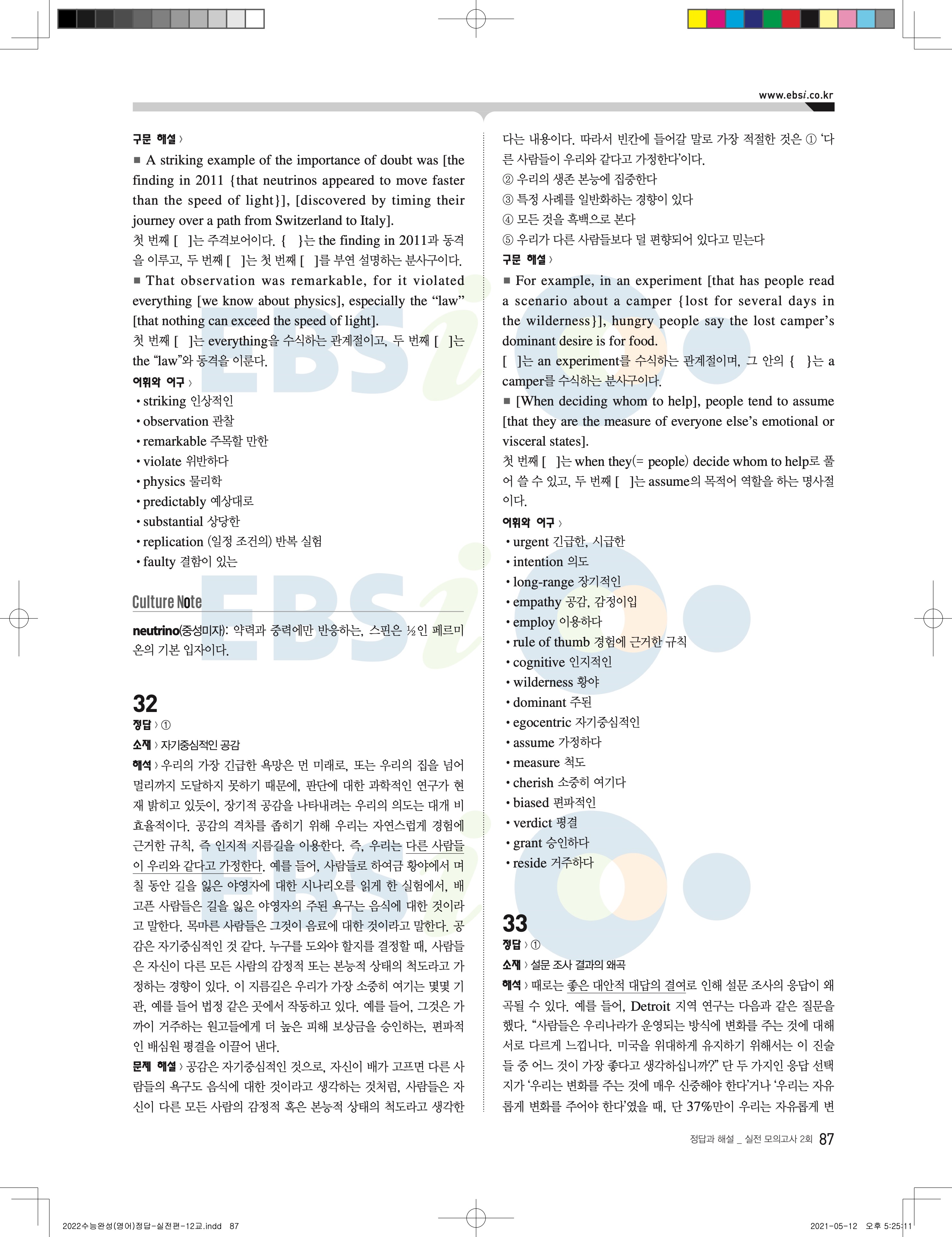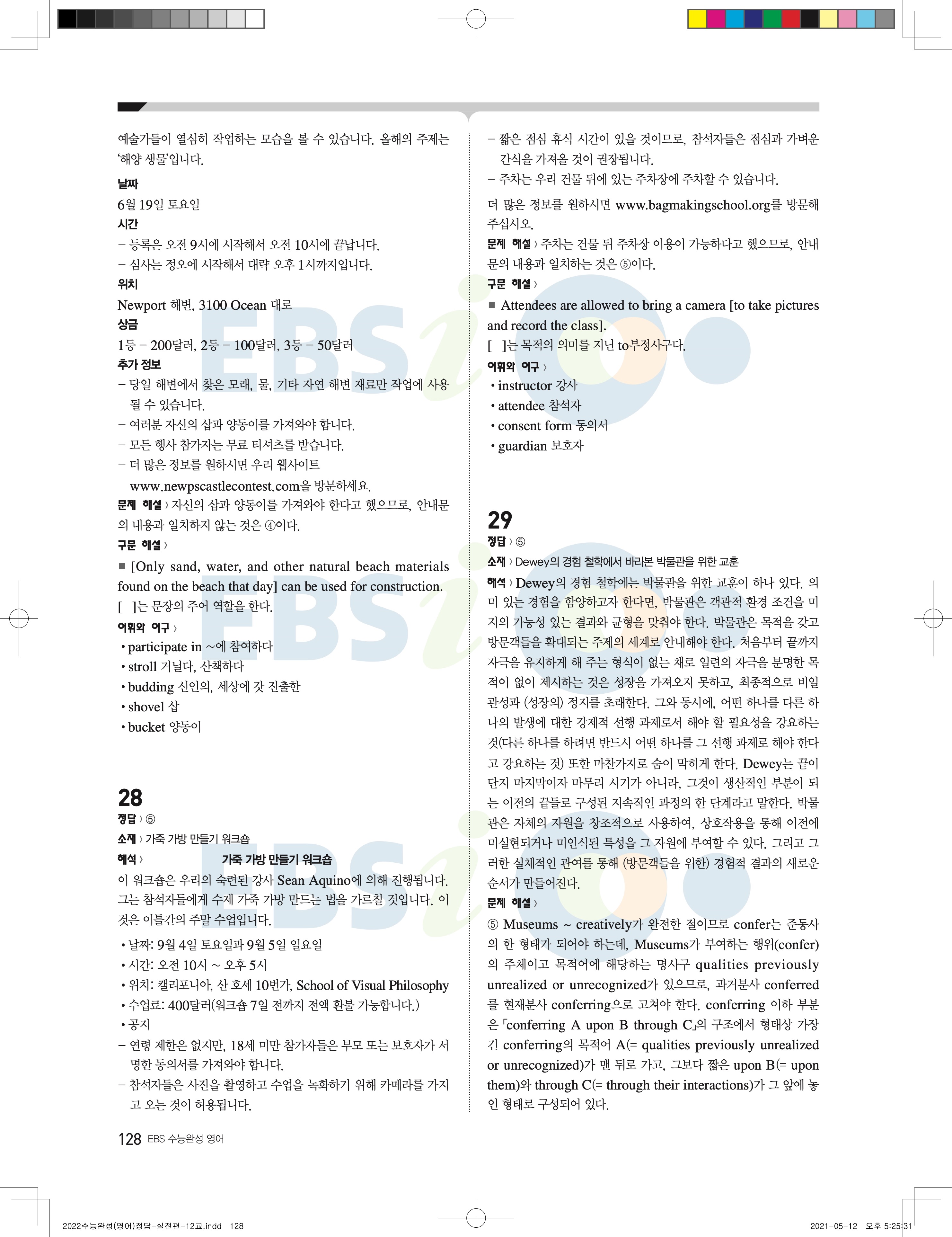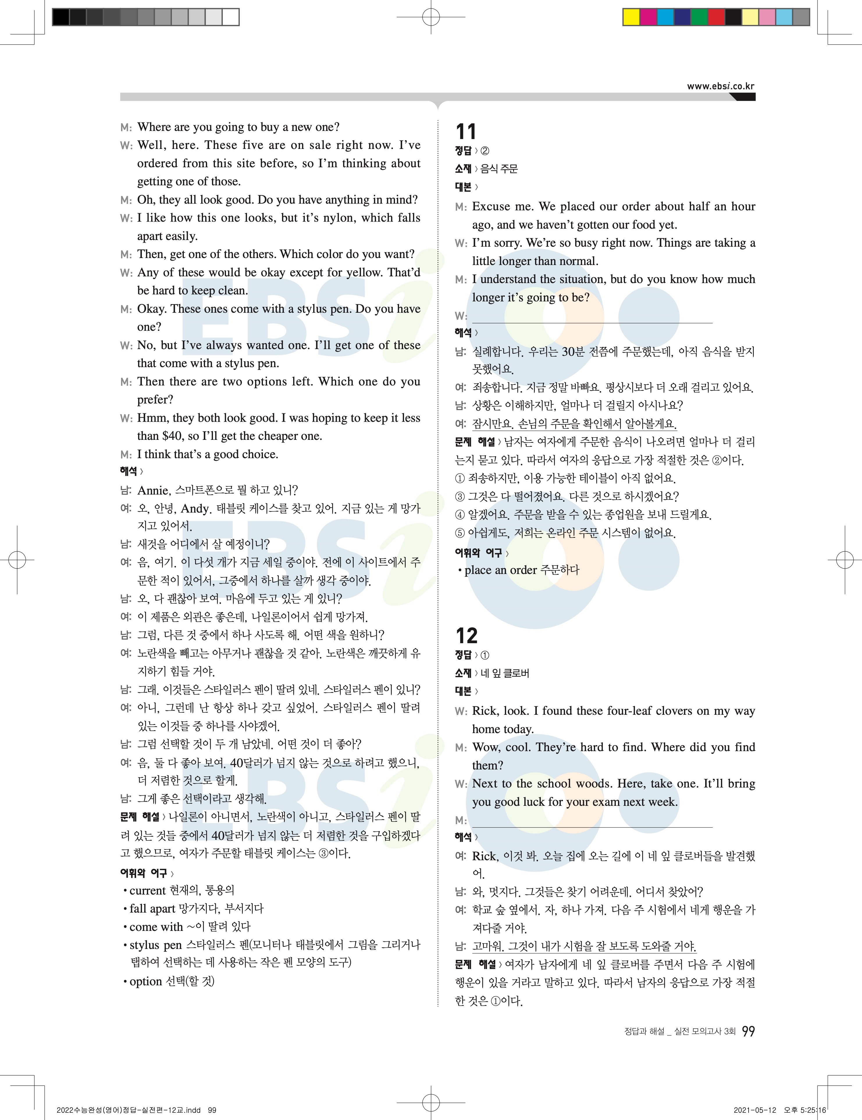 2022 EBS 수능완성 영어영역 영어 답지 해설 바로보는 사진답지 모바일최적화
