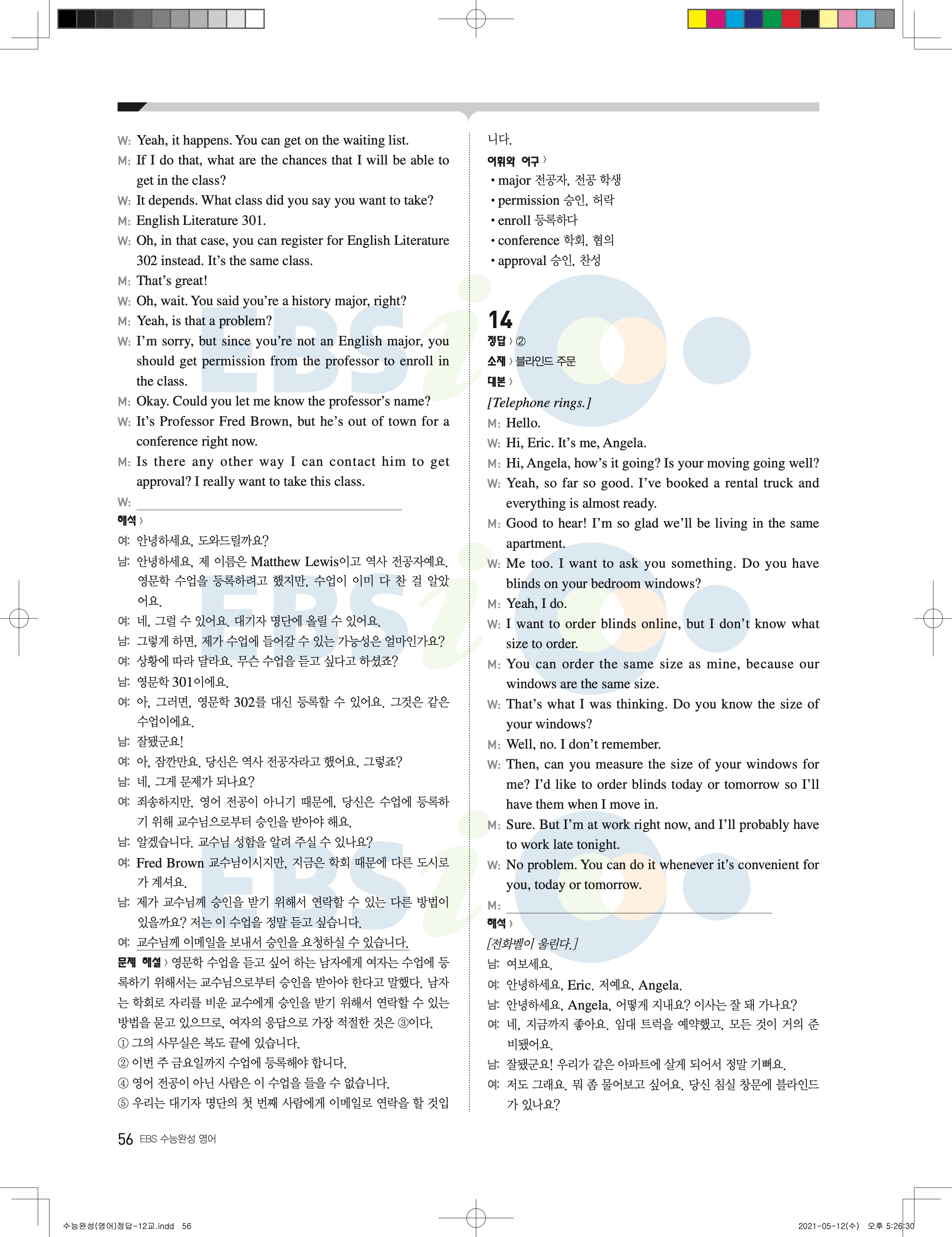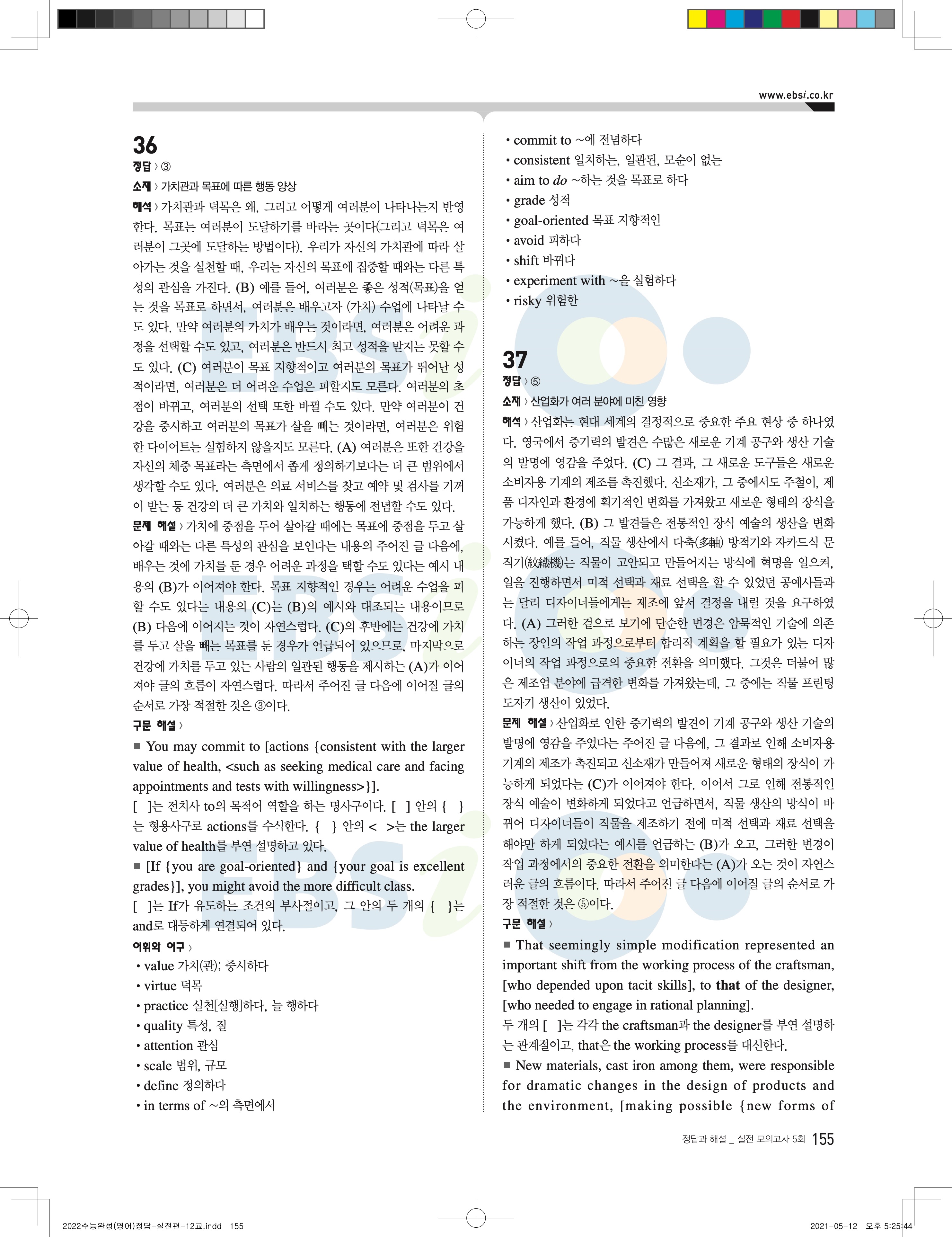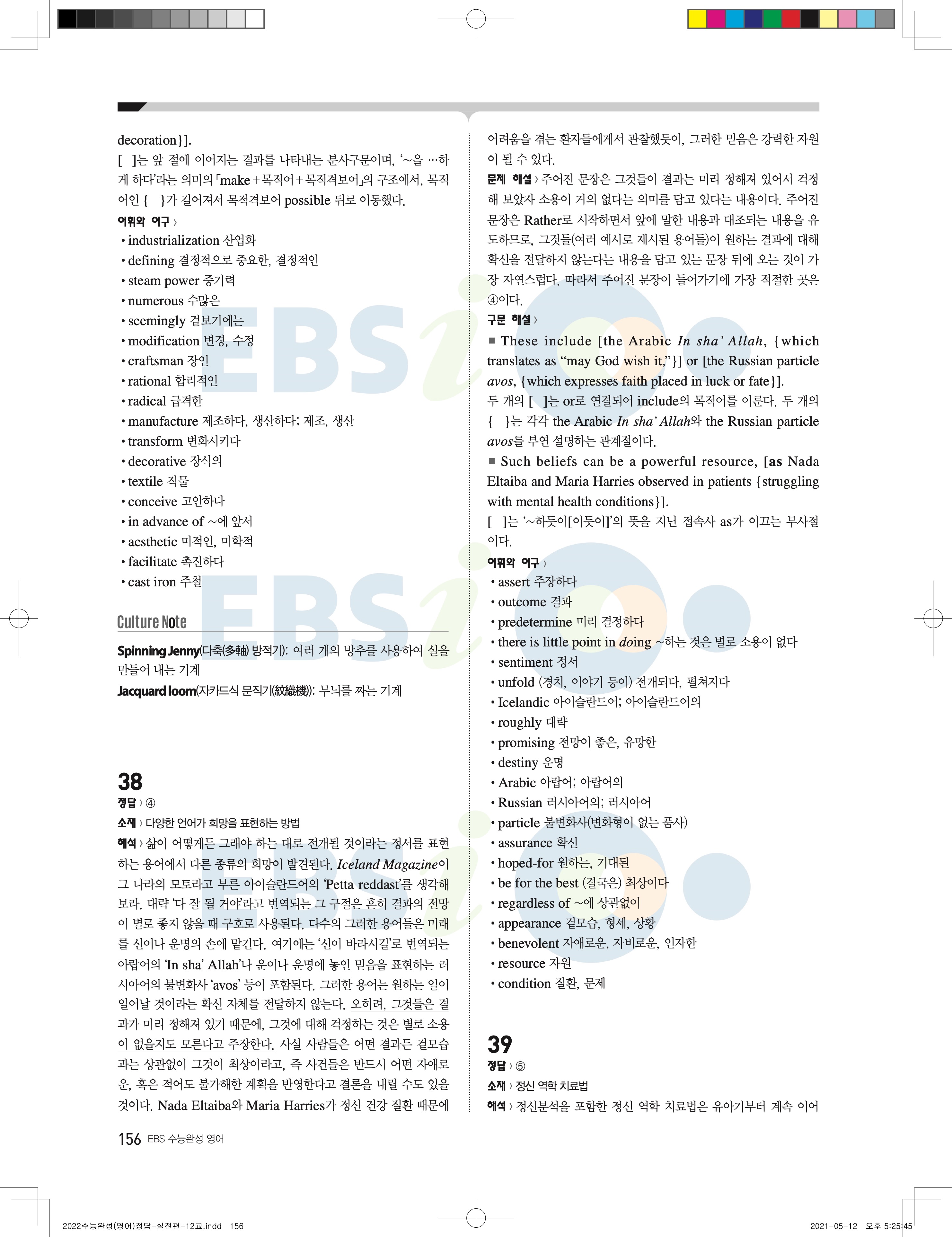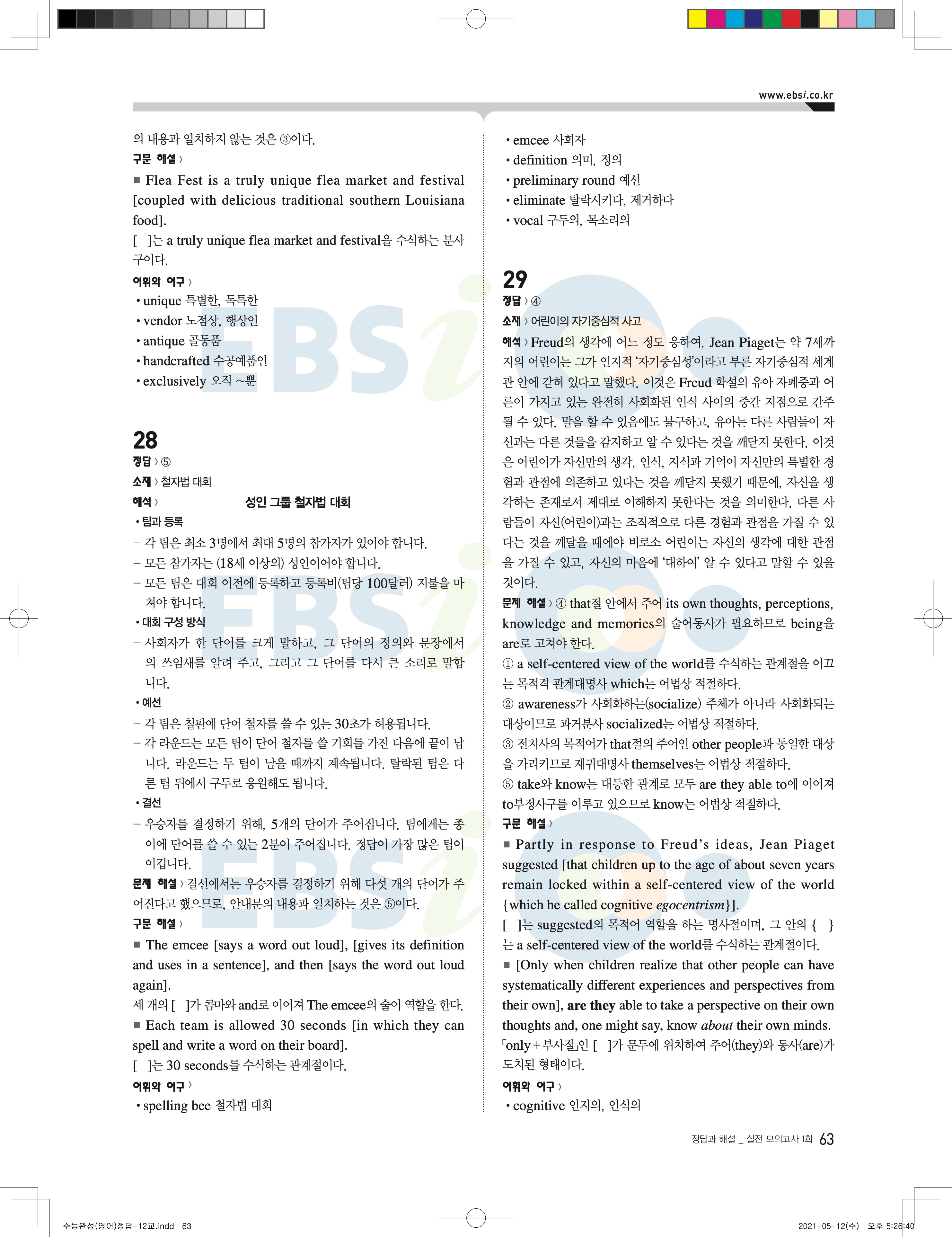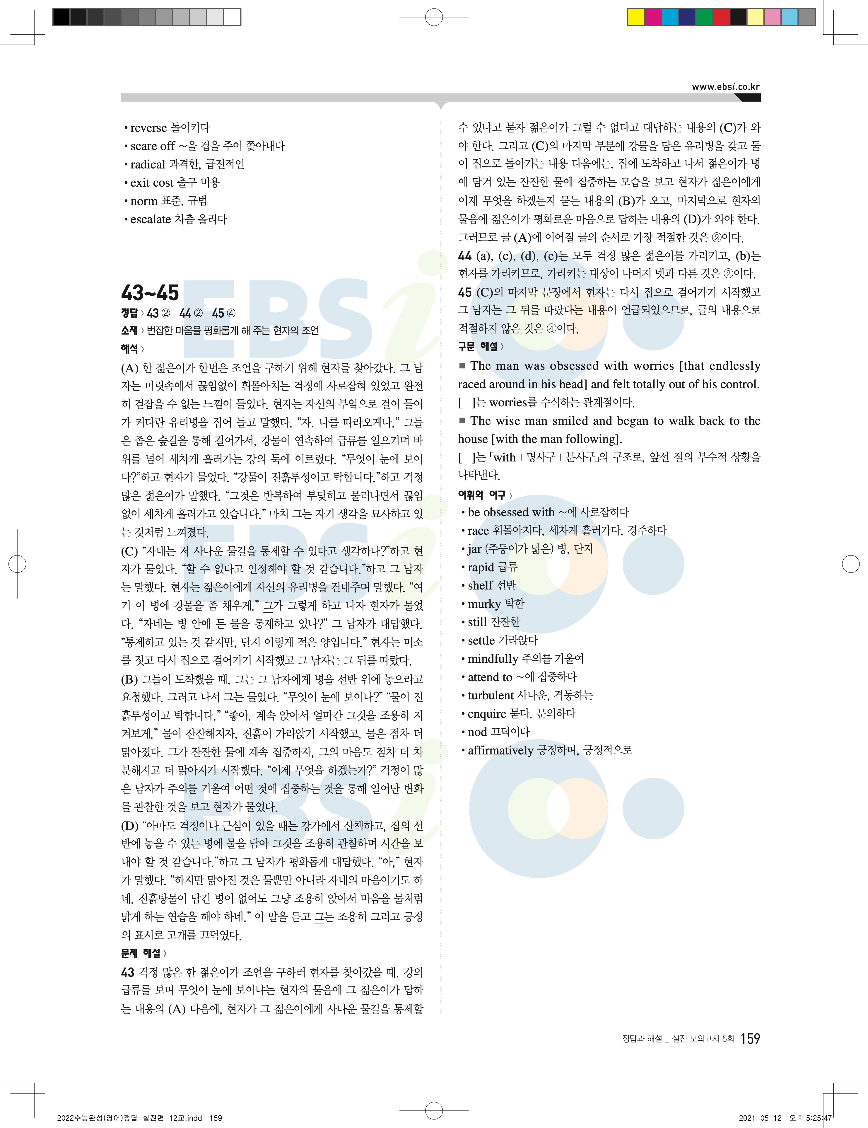 2022 EBS 수능완성 영어영역 영어 답지 해설 바로보는 사진답지 모바일최적화