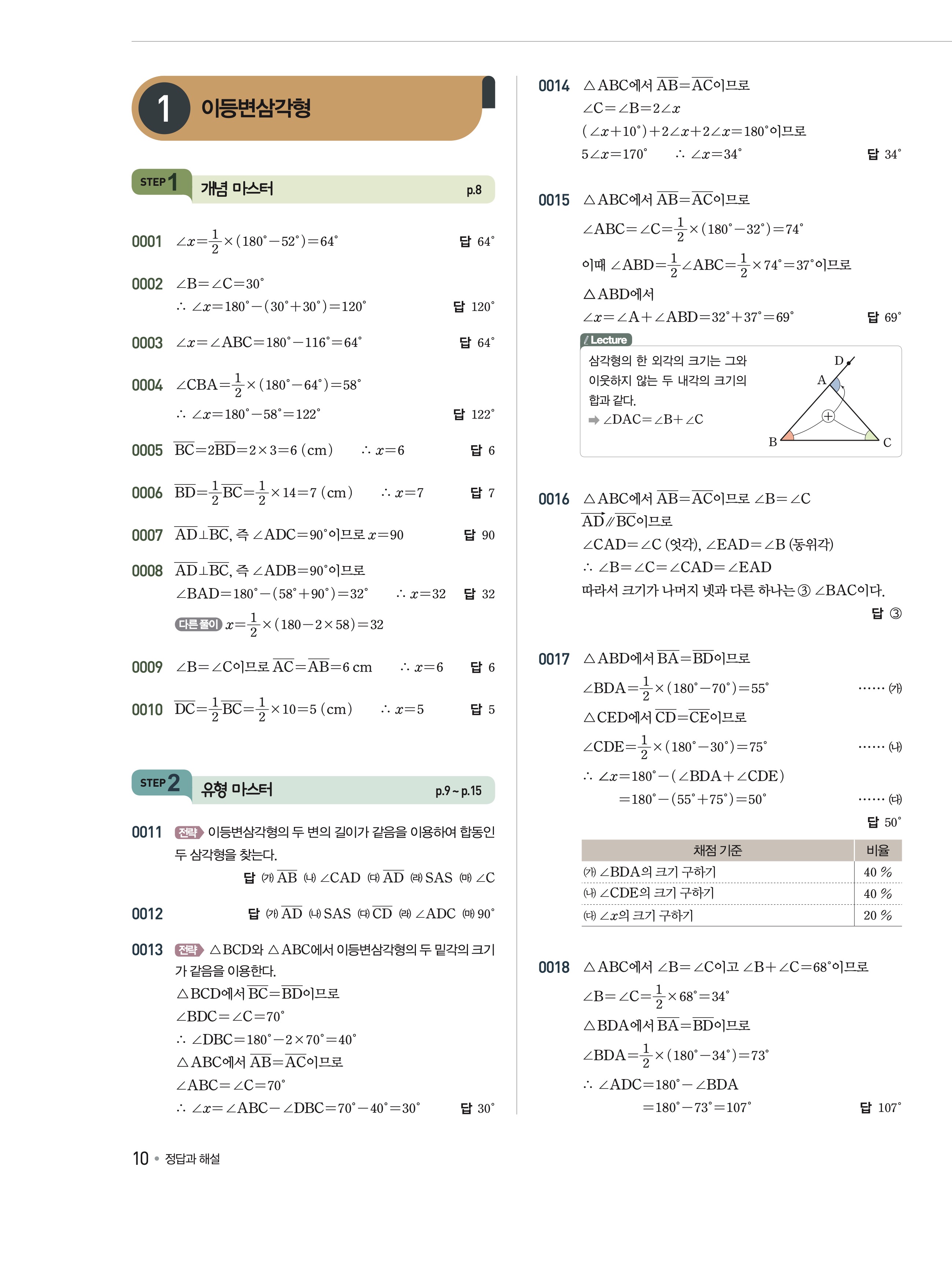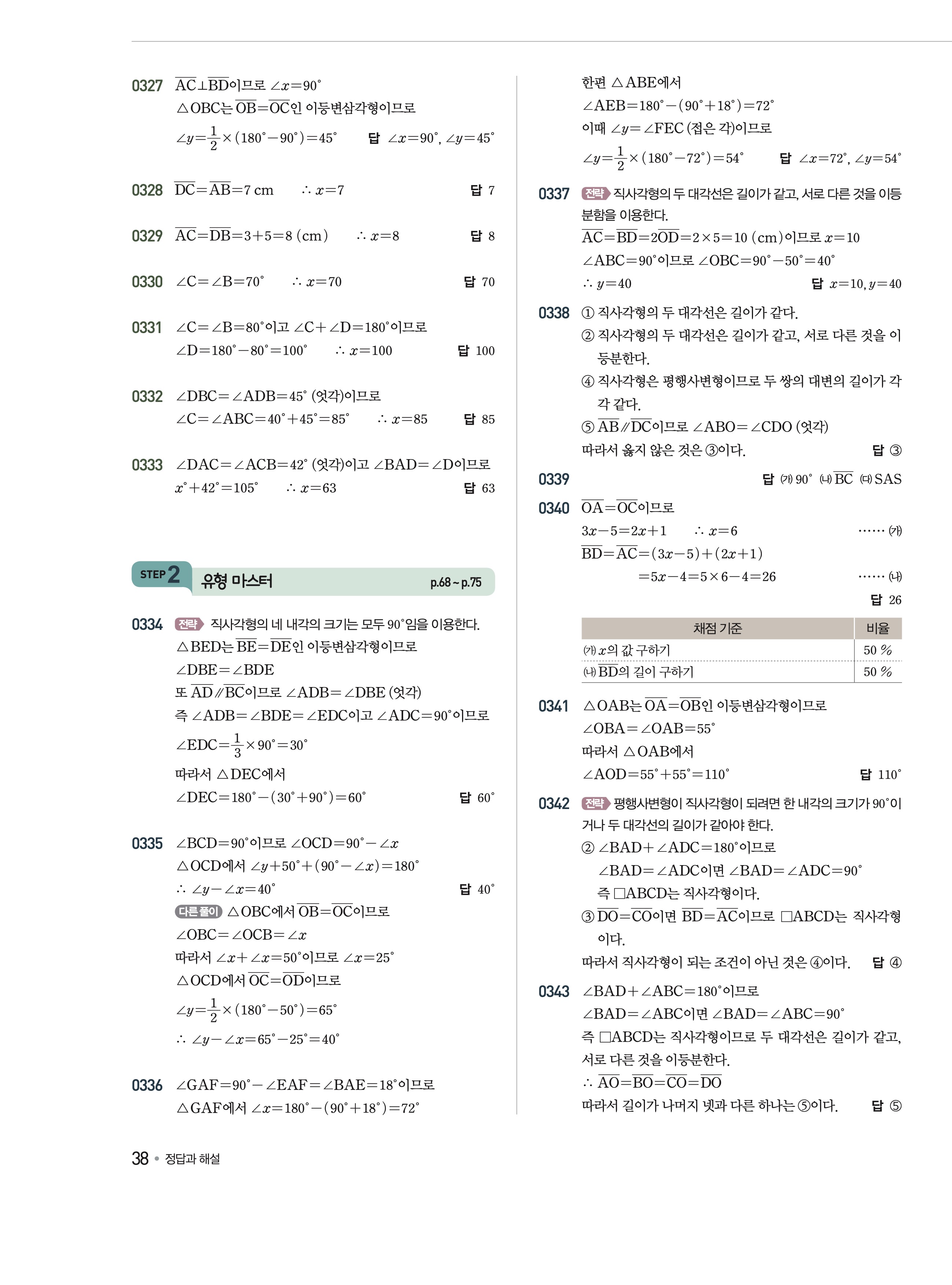 유형해결의법칙 중2-2 답지 해설 바로보는 사진답지 빠른답지 모바일최적화