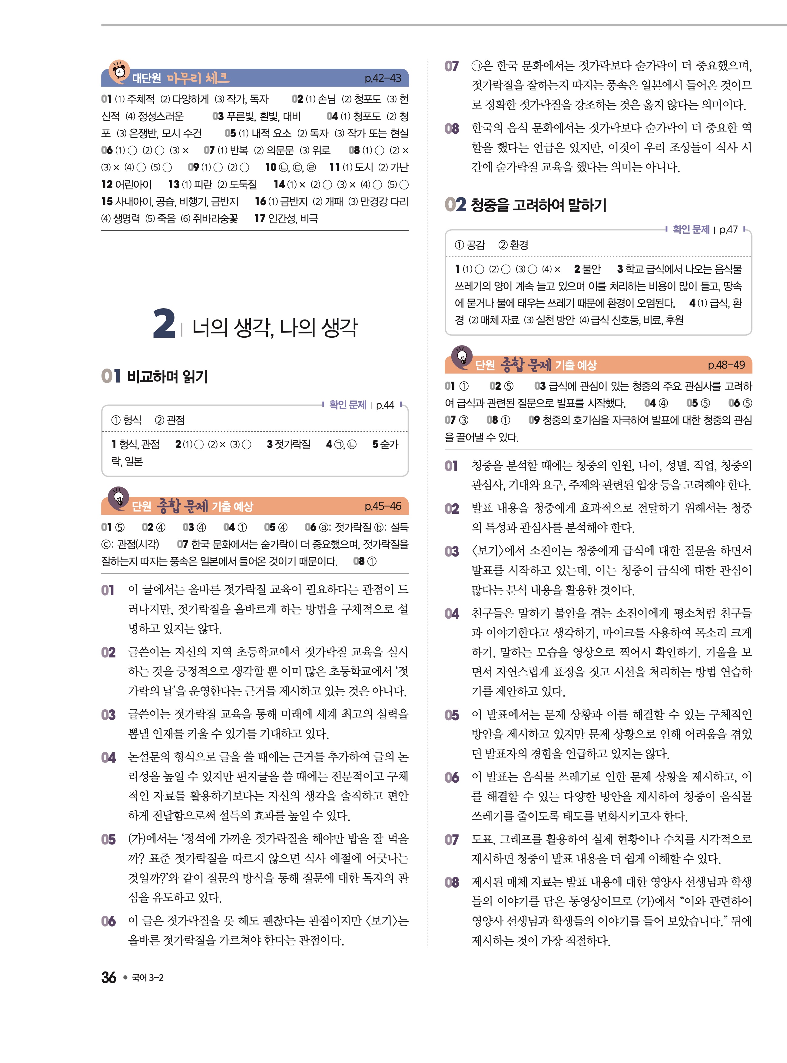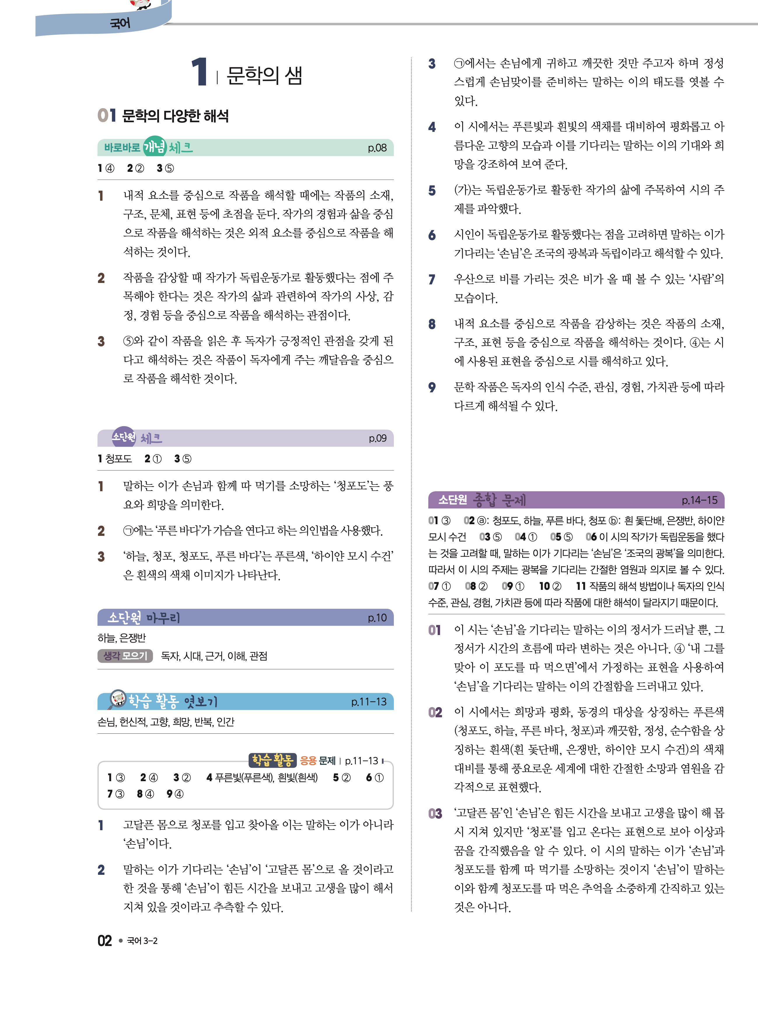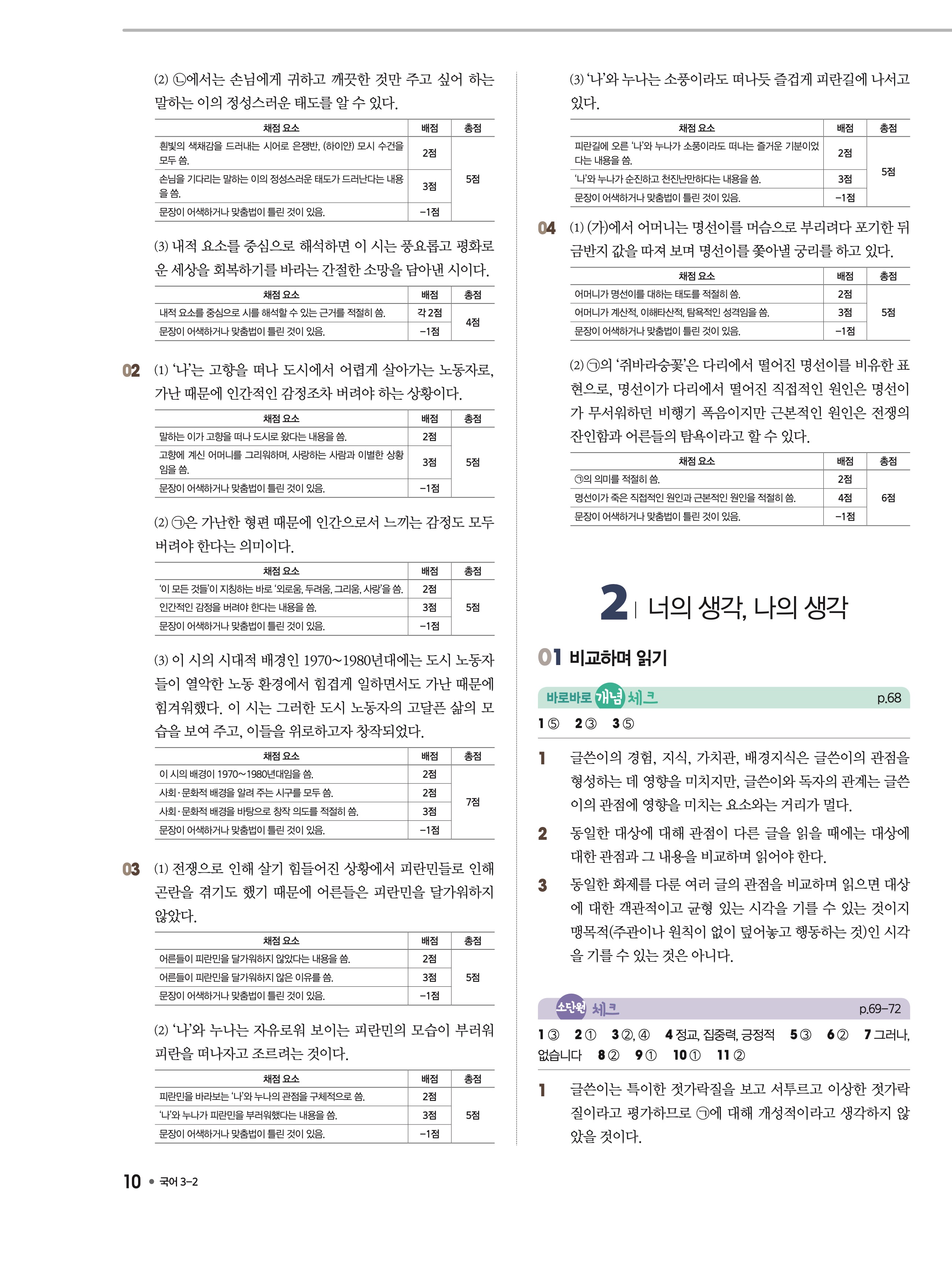 체크체크 국어 노미숙 3-2 답지 해설 바로보는 사진답지 빠른답지 모바일최적화