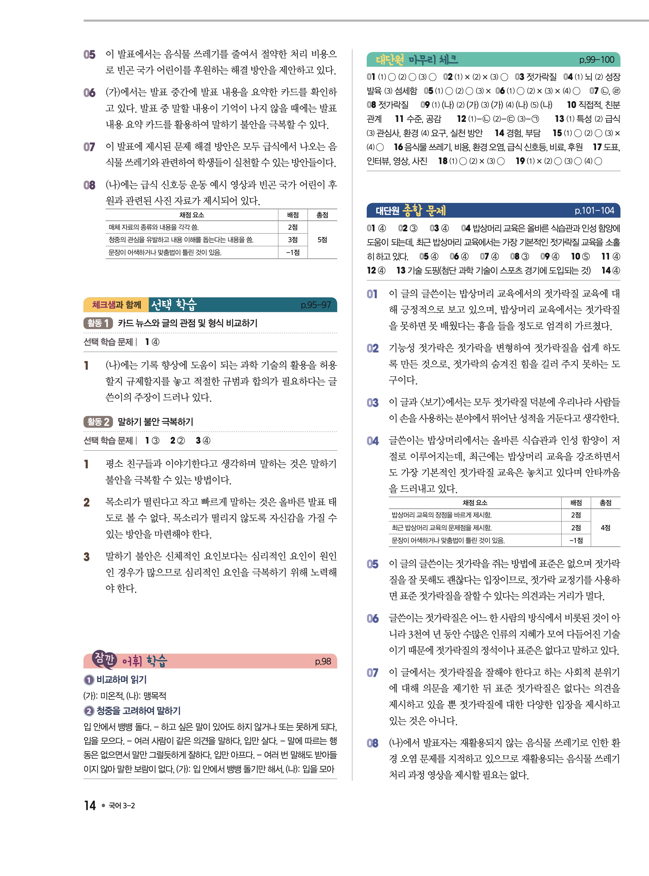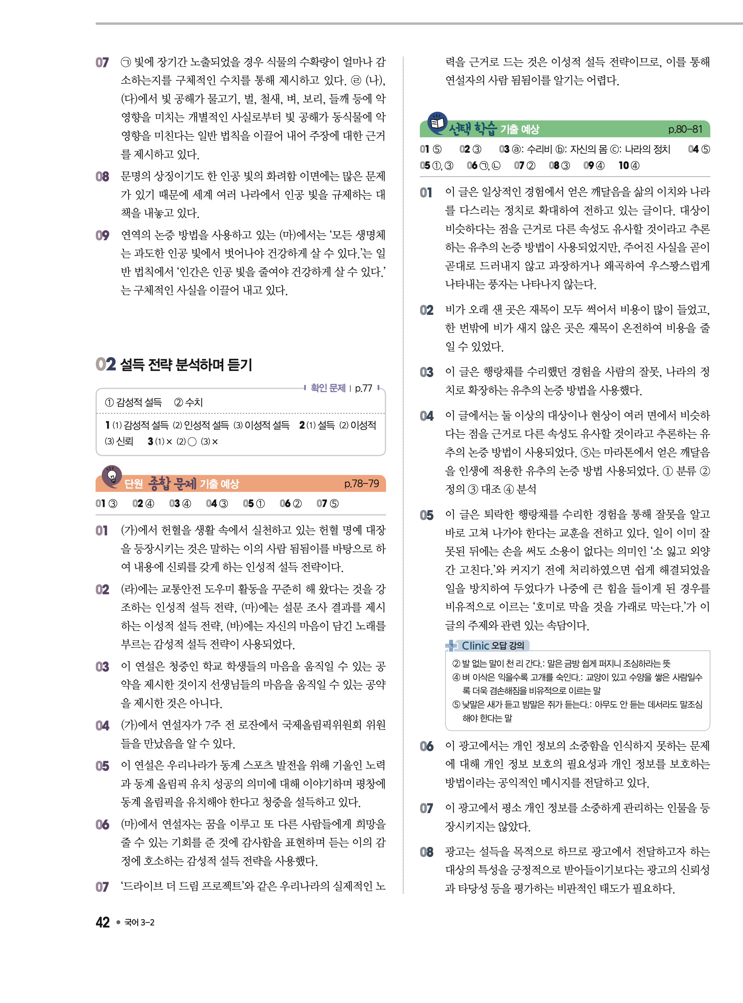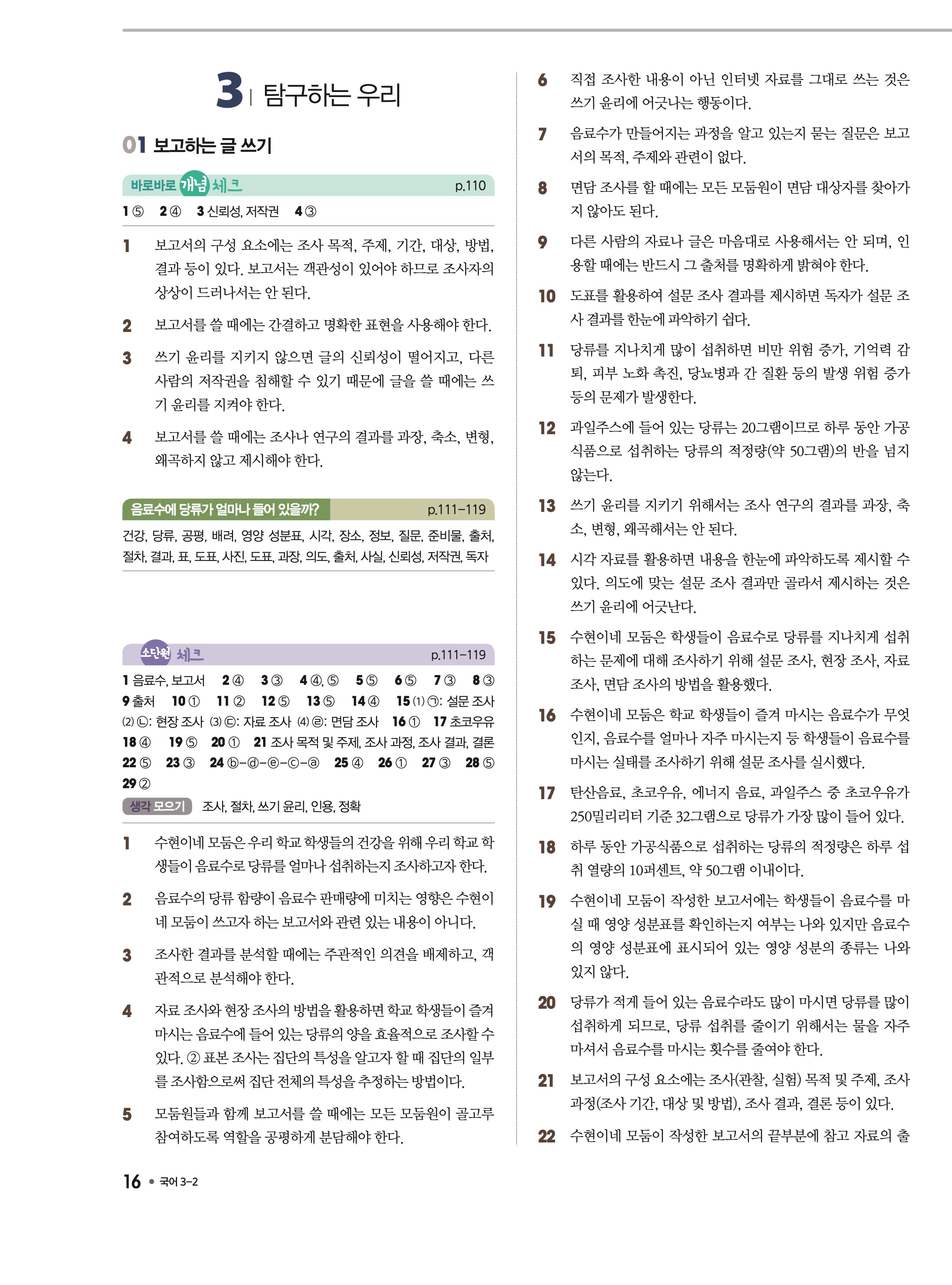 체크체크 국어 노미숙 3-2 답지 해설 바로보는 사진답지 빠른답지 모바일최적화