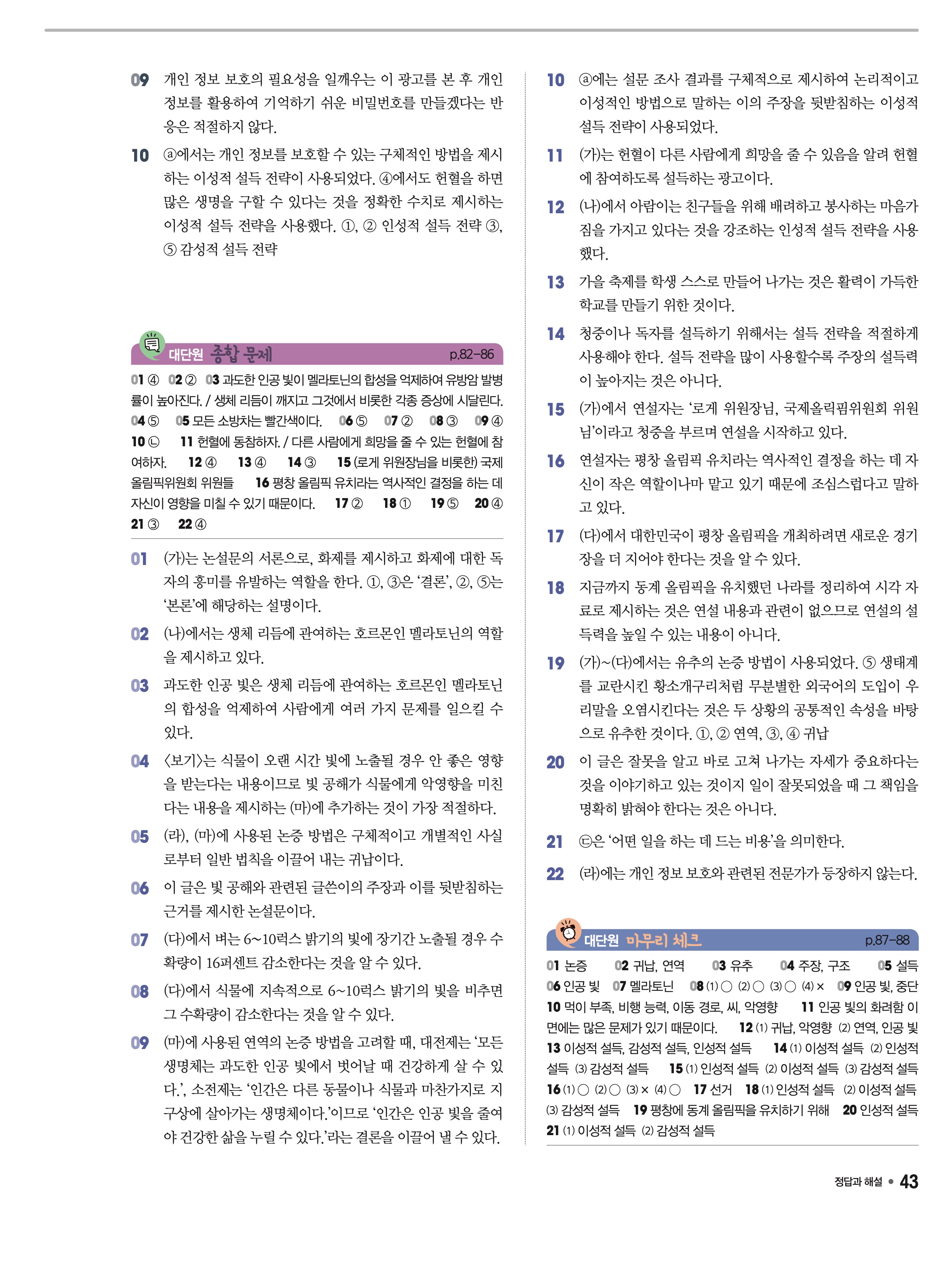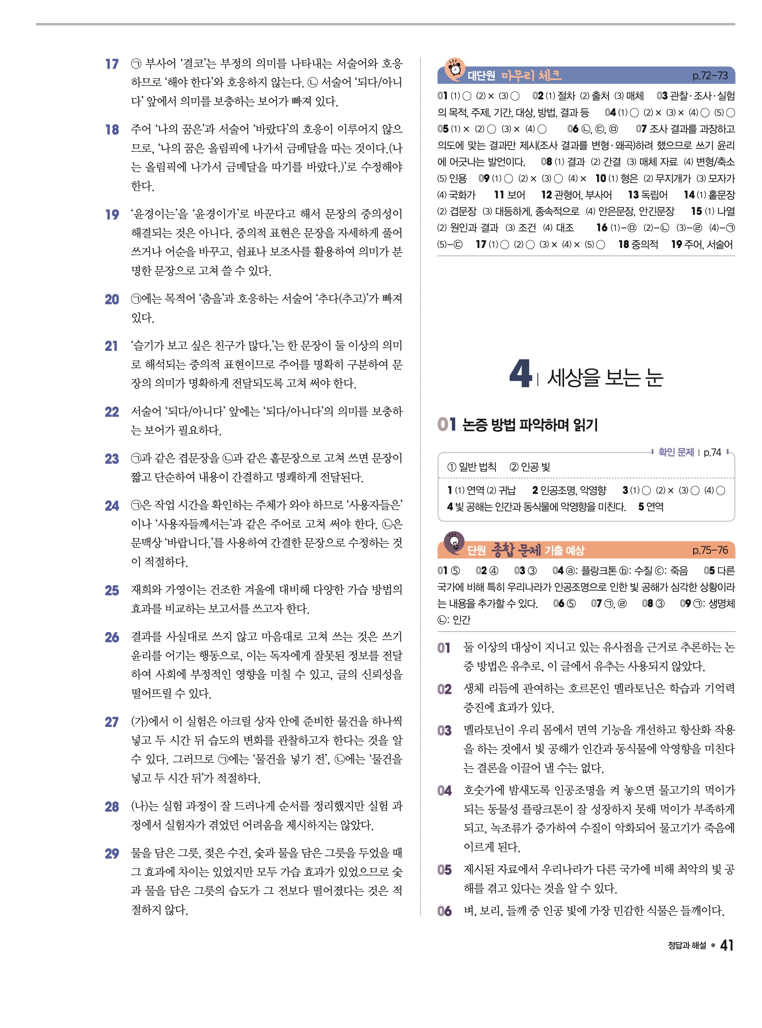 다운로드 받을필요 없이 바로 볼수 있는 모바일에 최적화된 답지 입니다