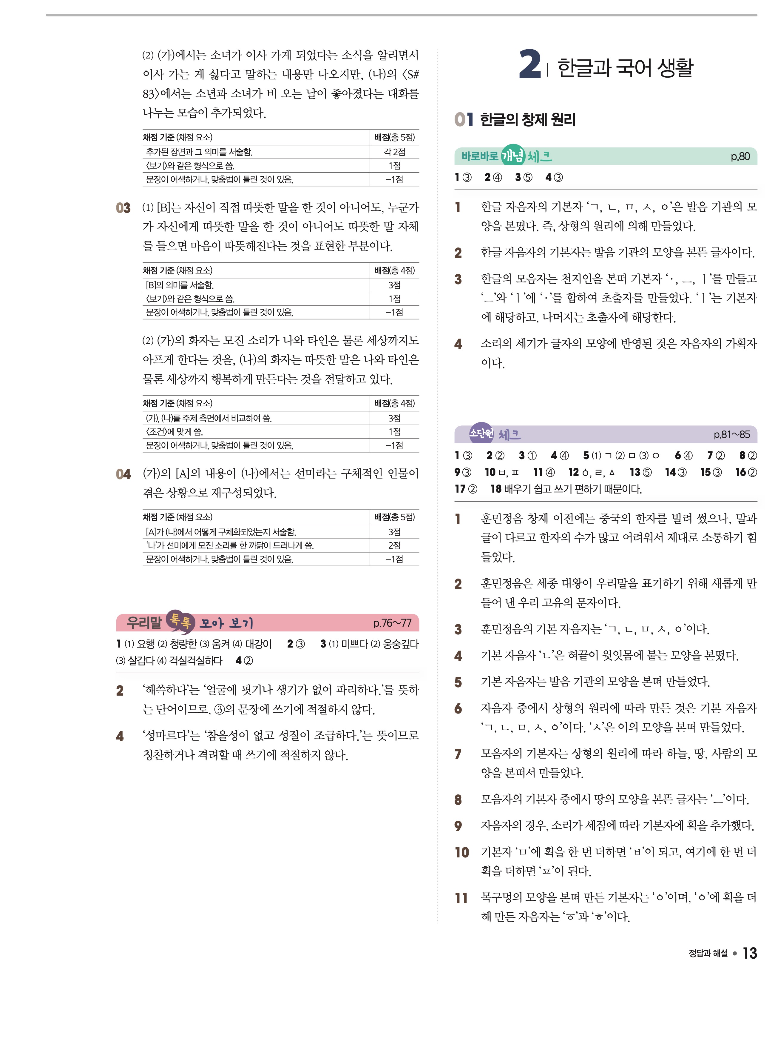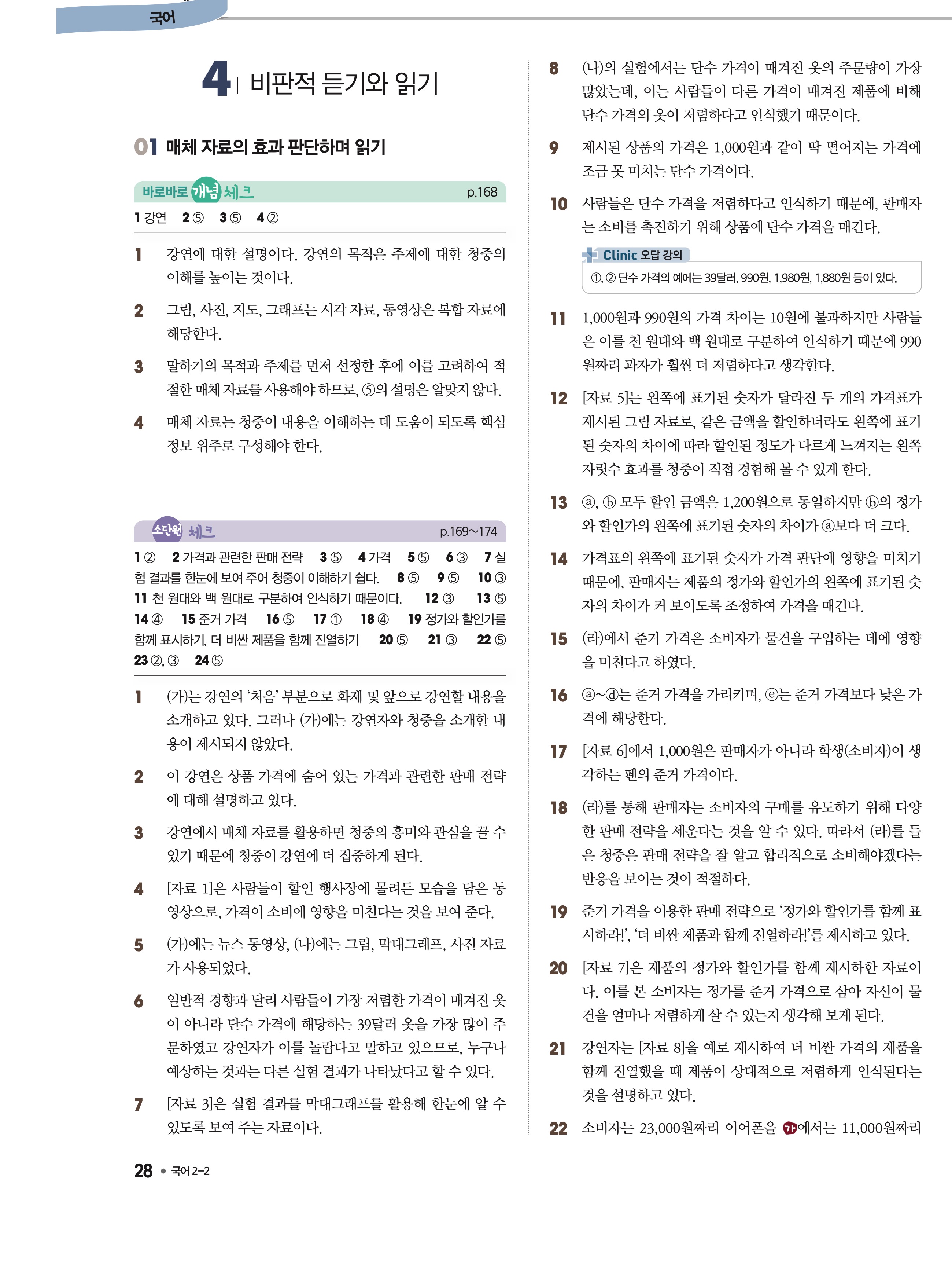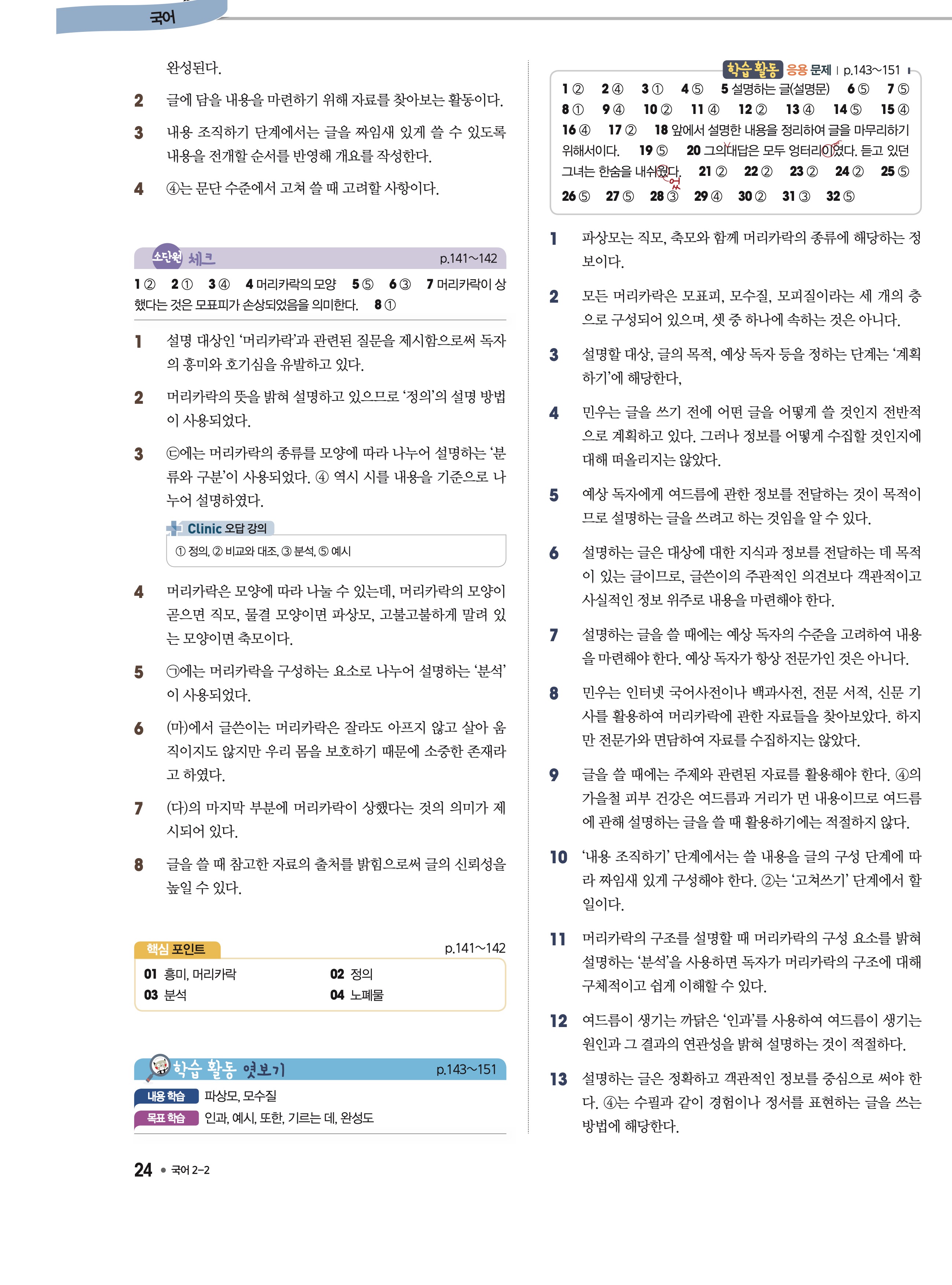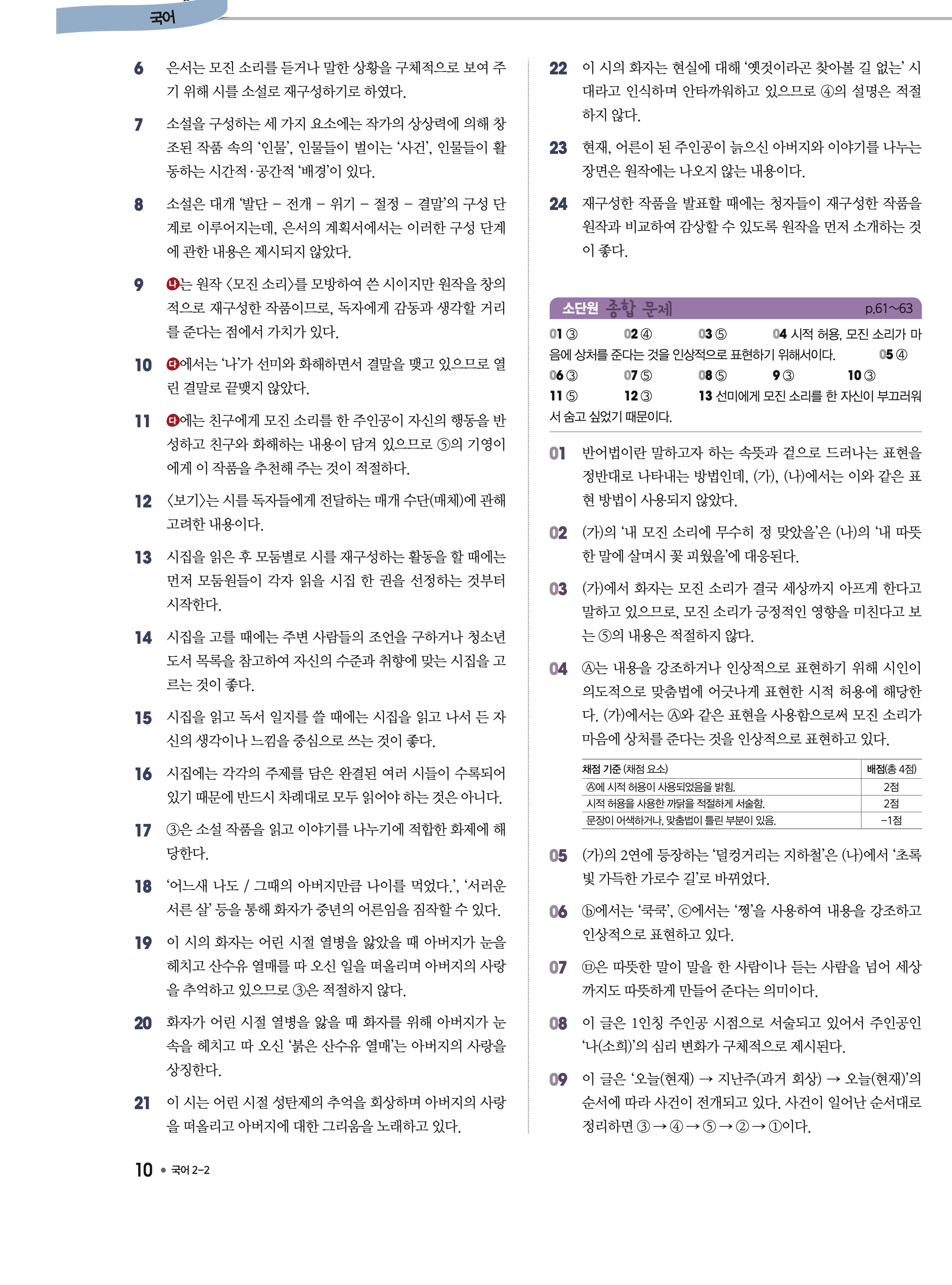 체크체크 국어 박영목 2-2 답지 해설 바로보는 사진답지 빠른답지 모바일최적화