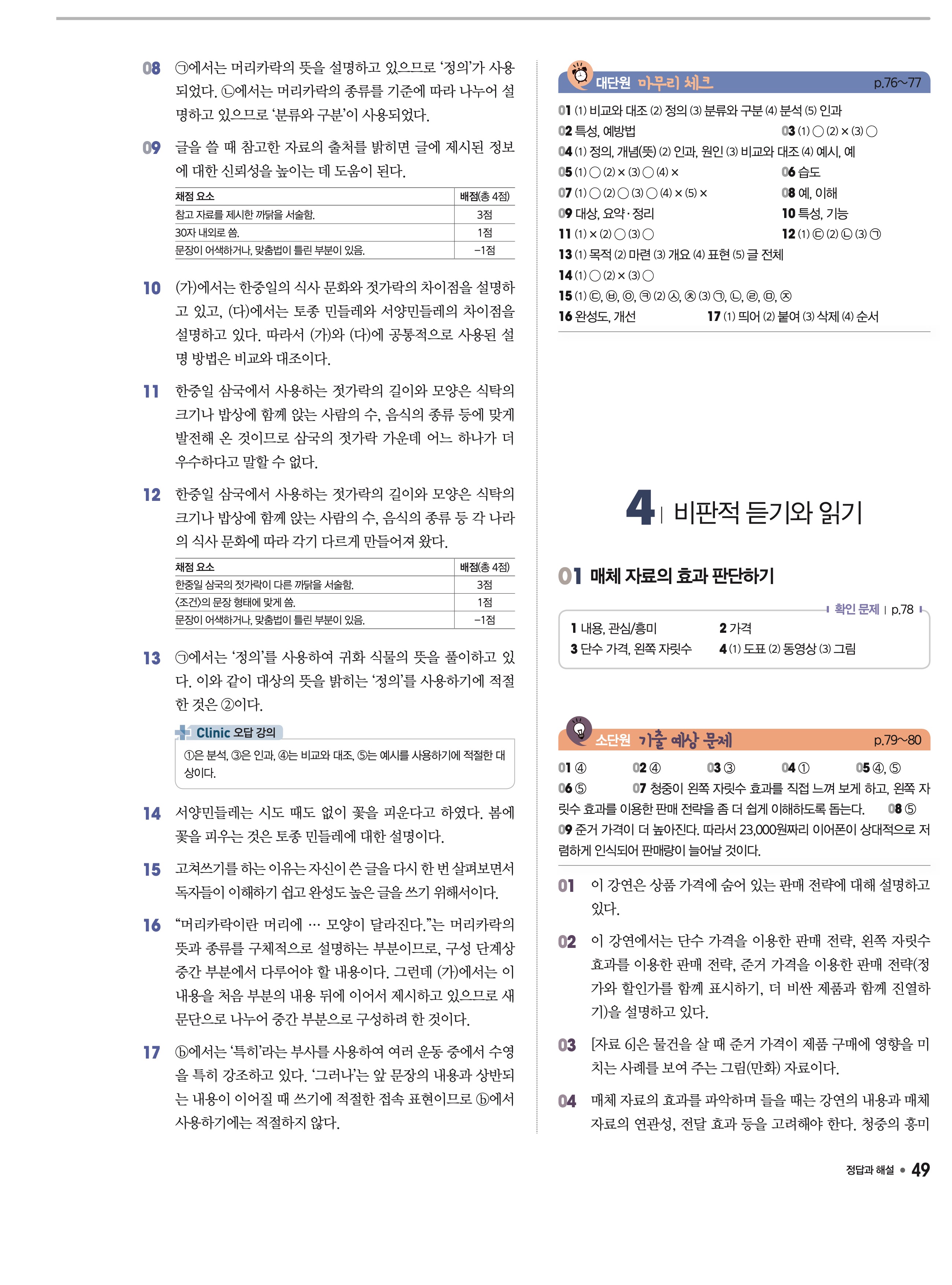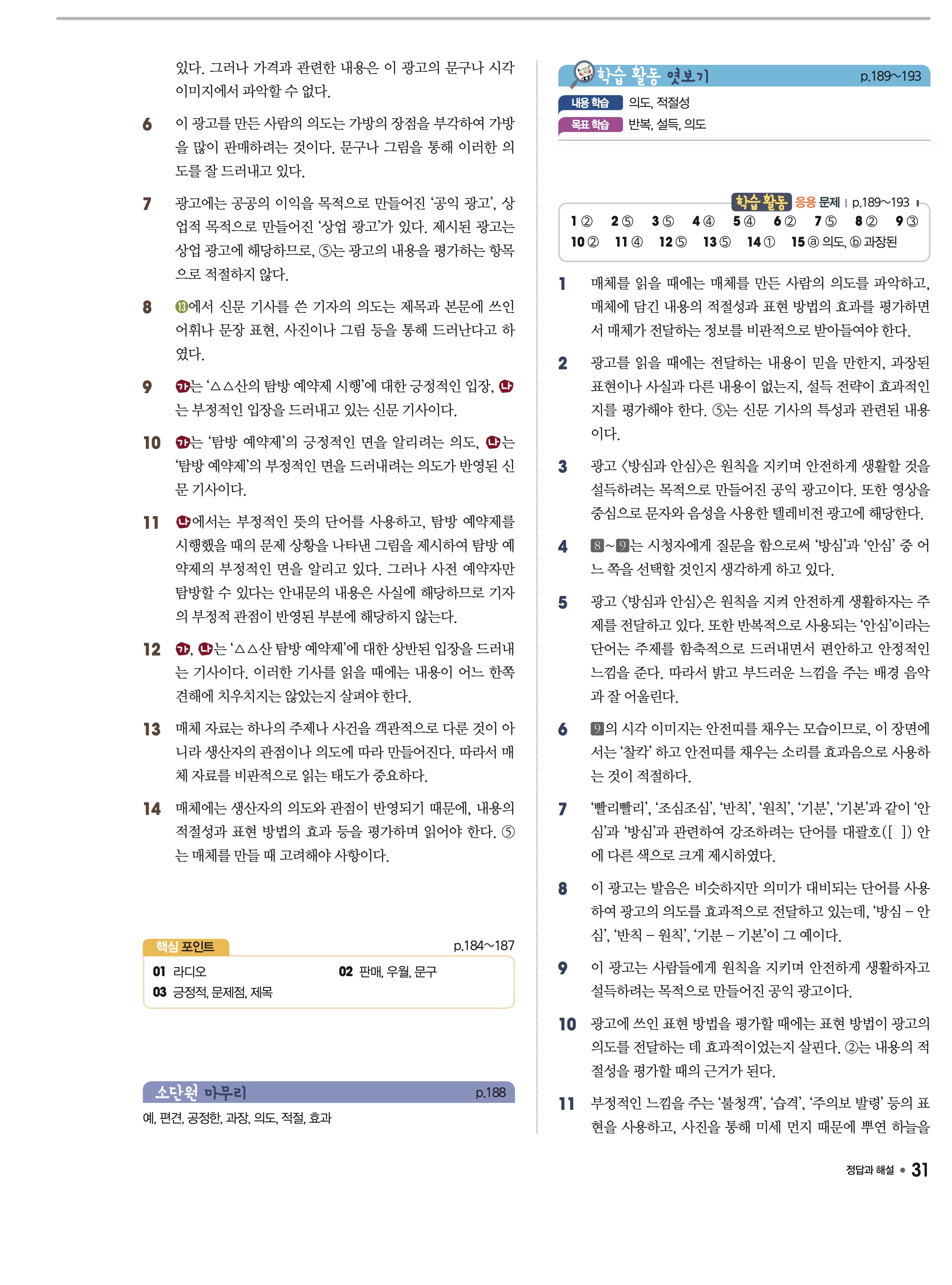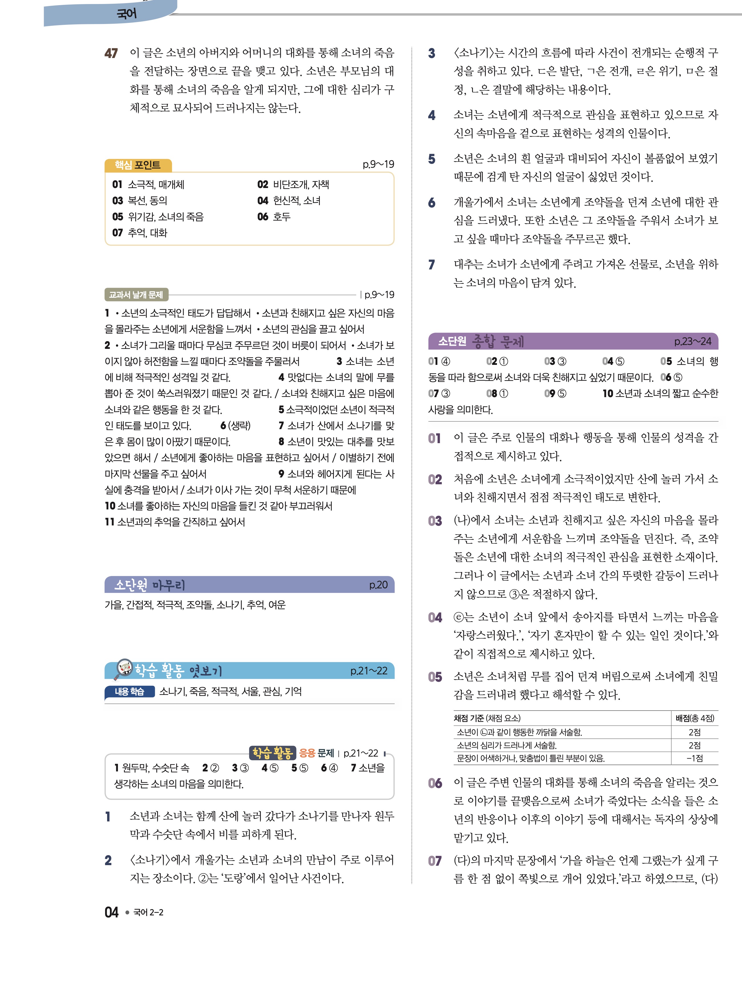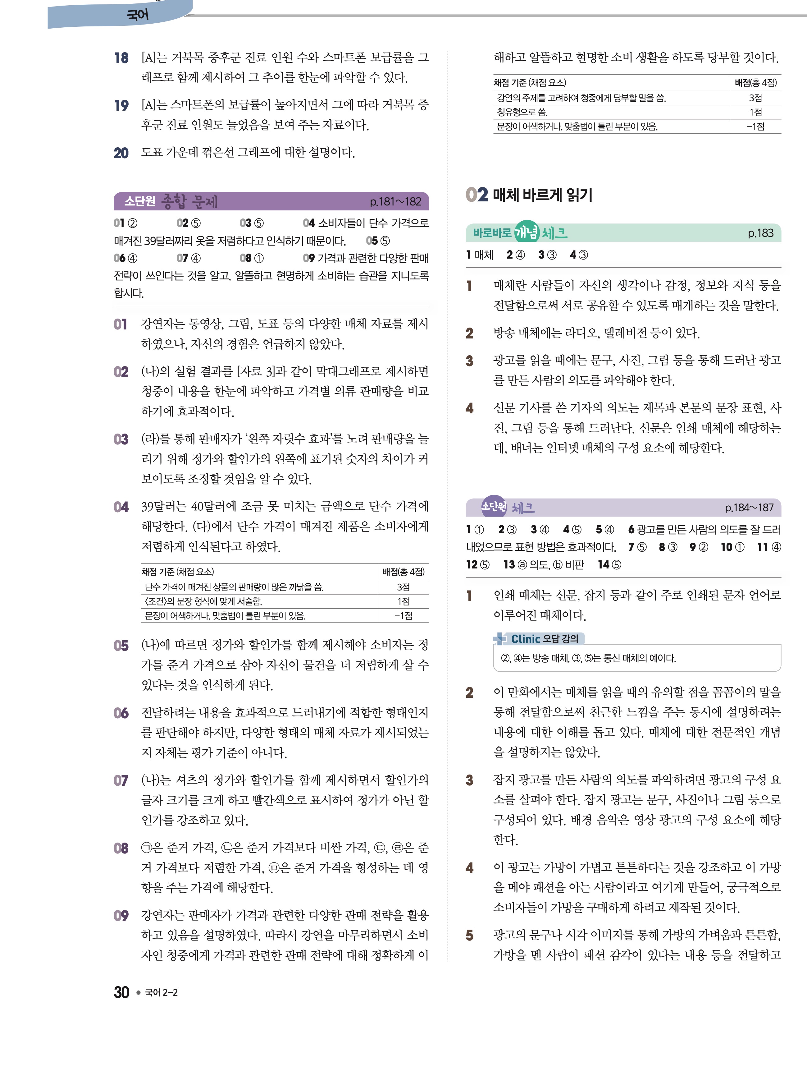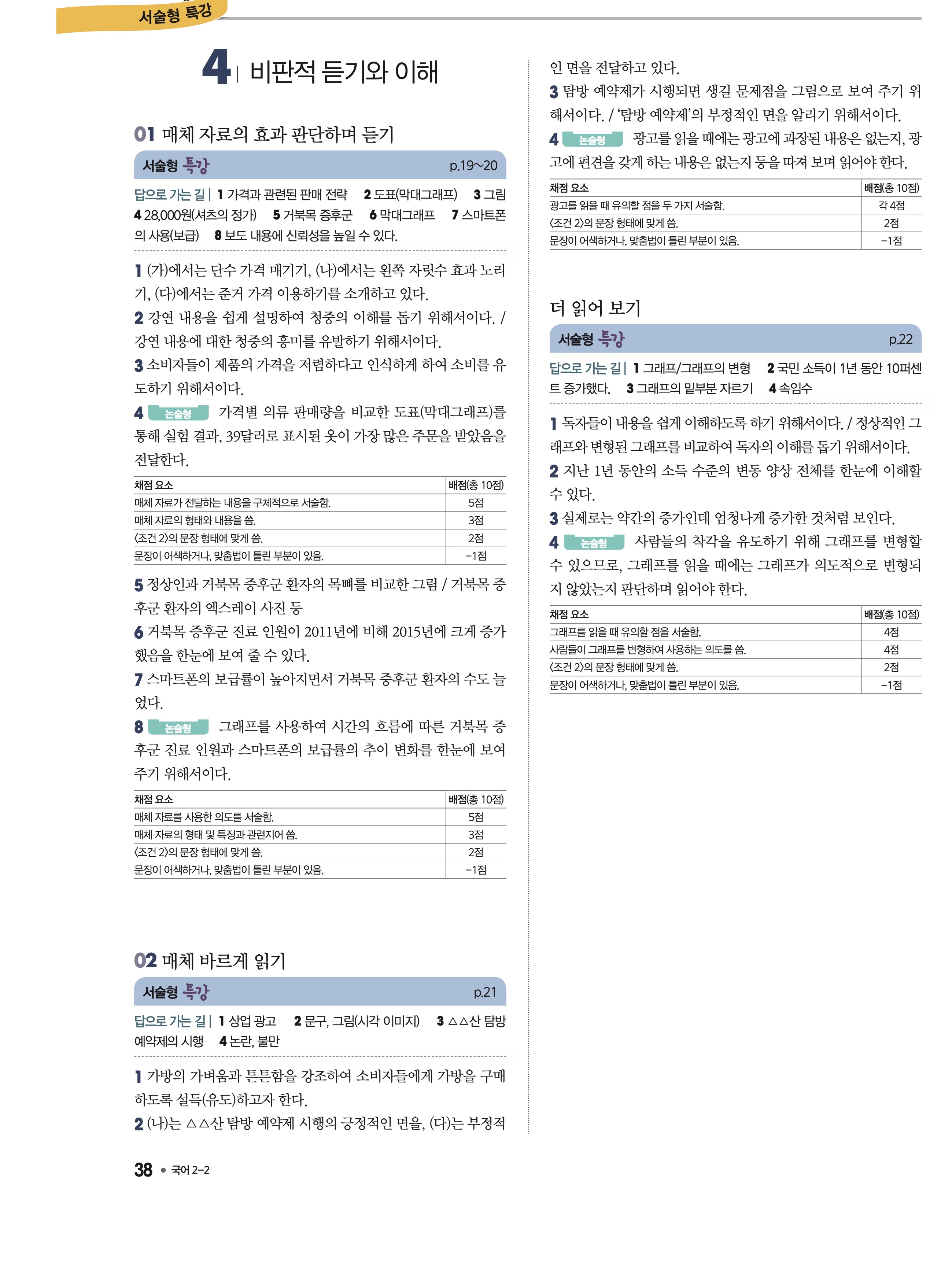 체크체크 국어 박영목 2-2 답지 해설 바로보는 사진답지 빠른답지 모바일최적화