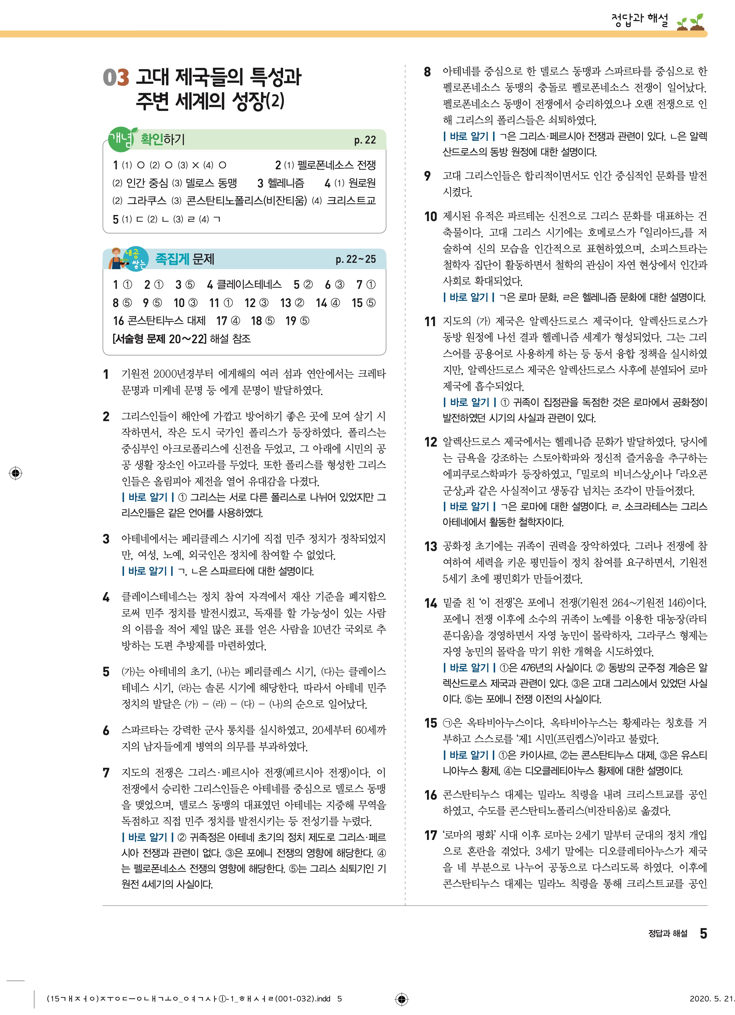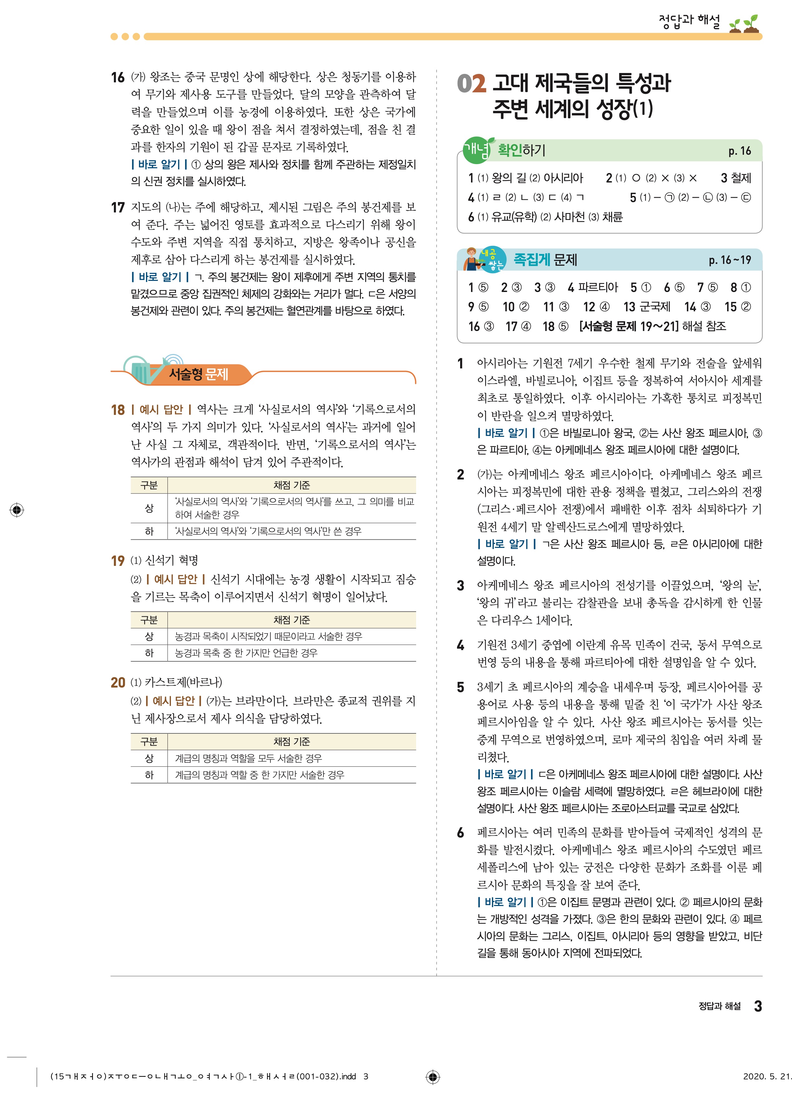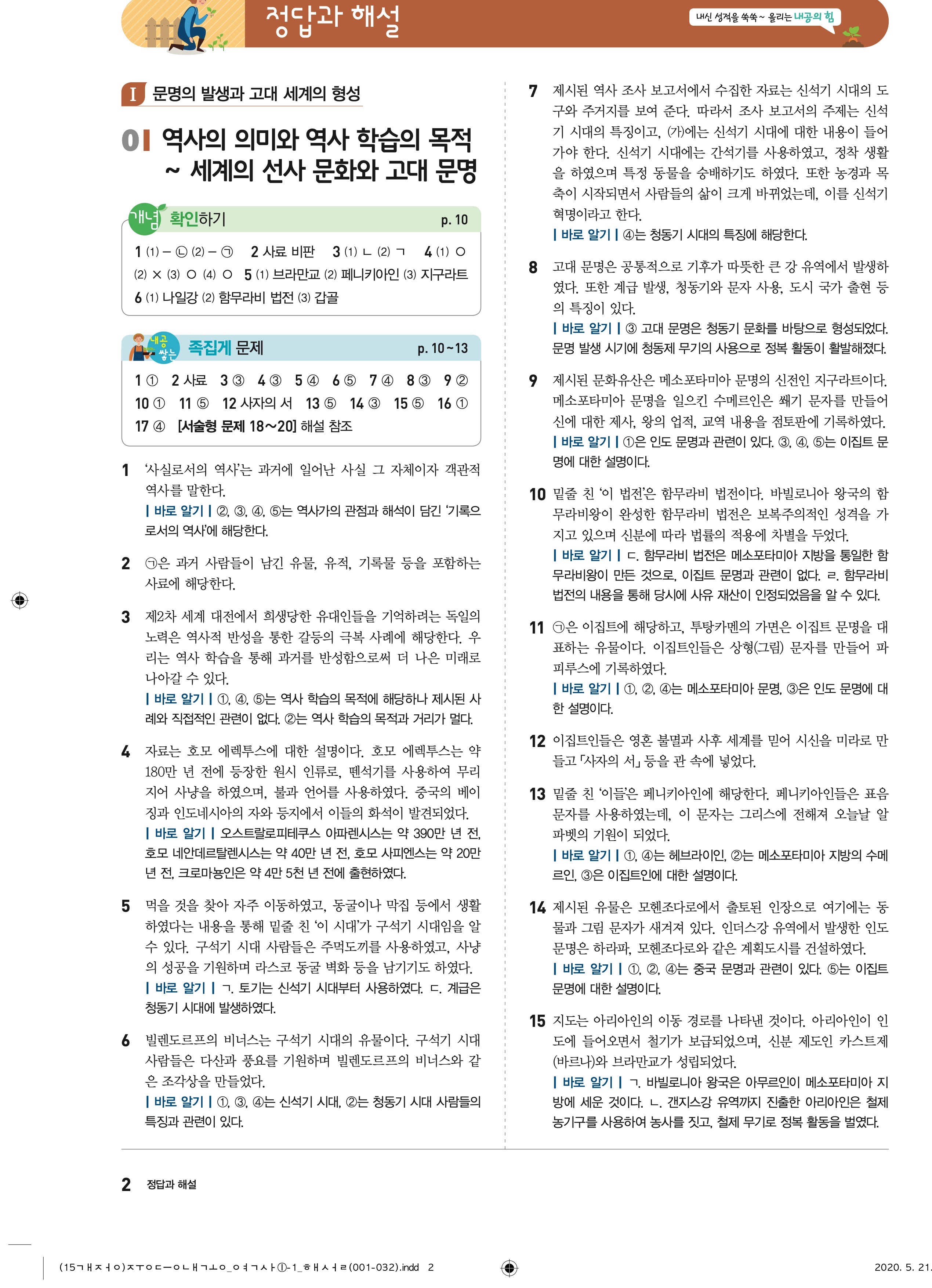 내공의힘 중등역사 1-1 답지 해설 바로보는 사진답지 빠른답지 모바일최적화