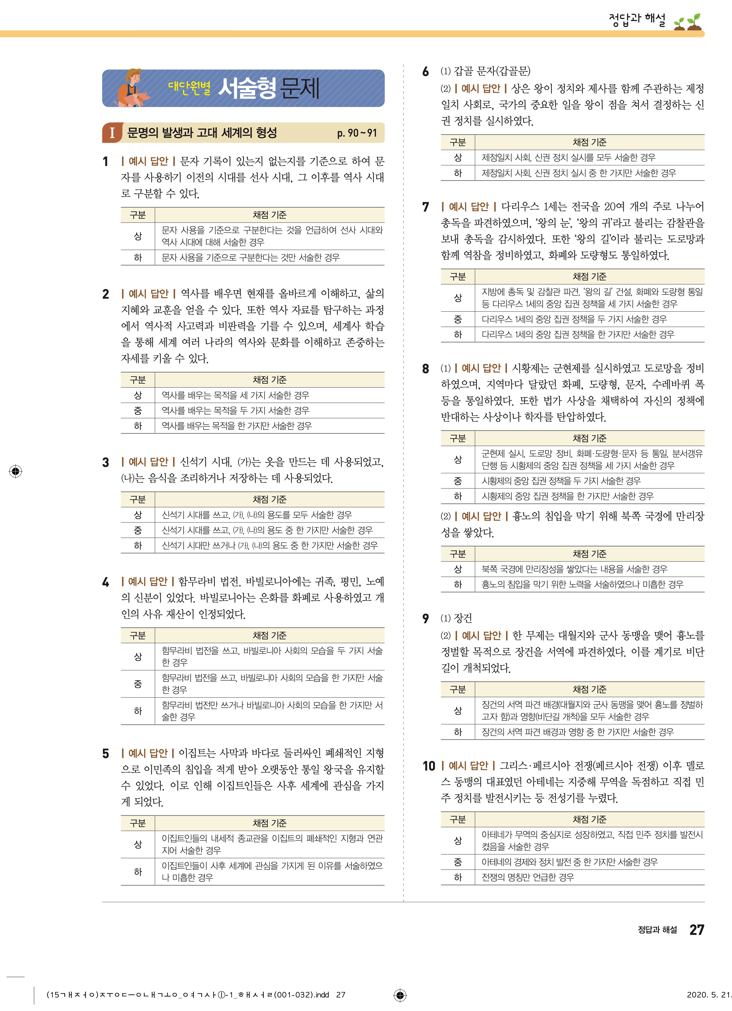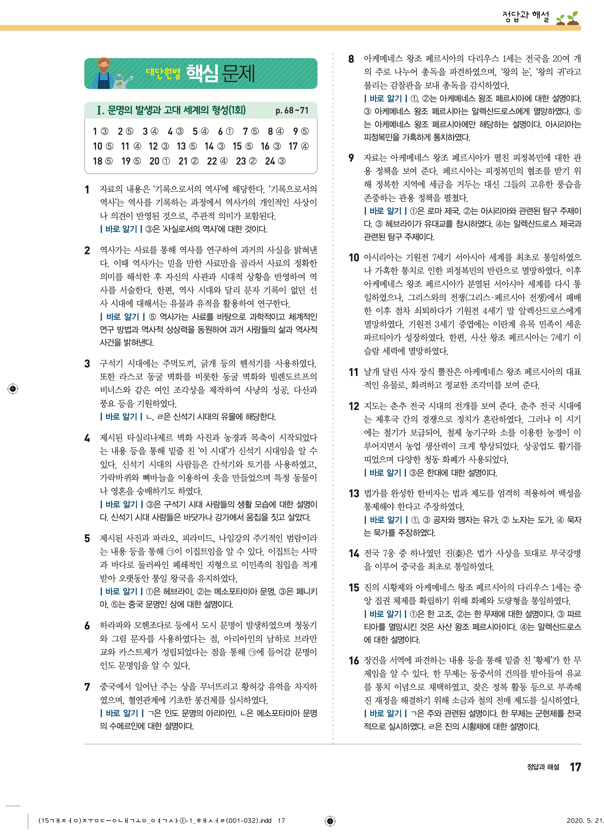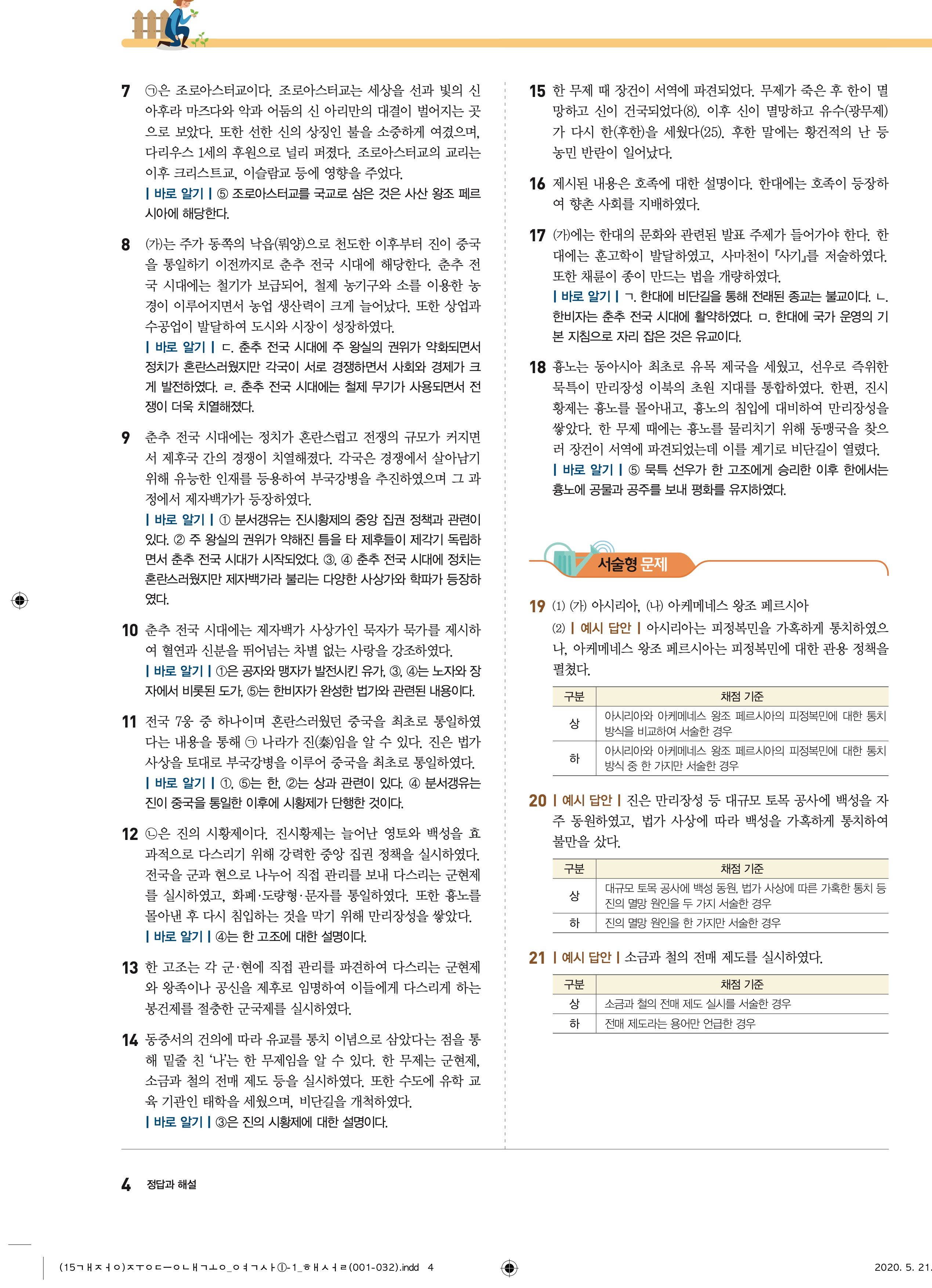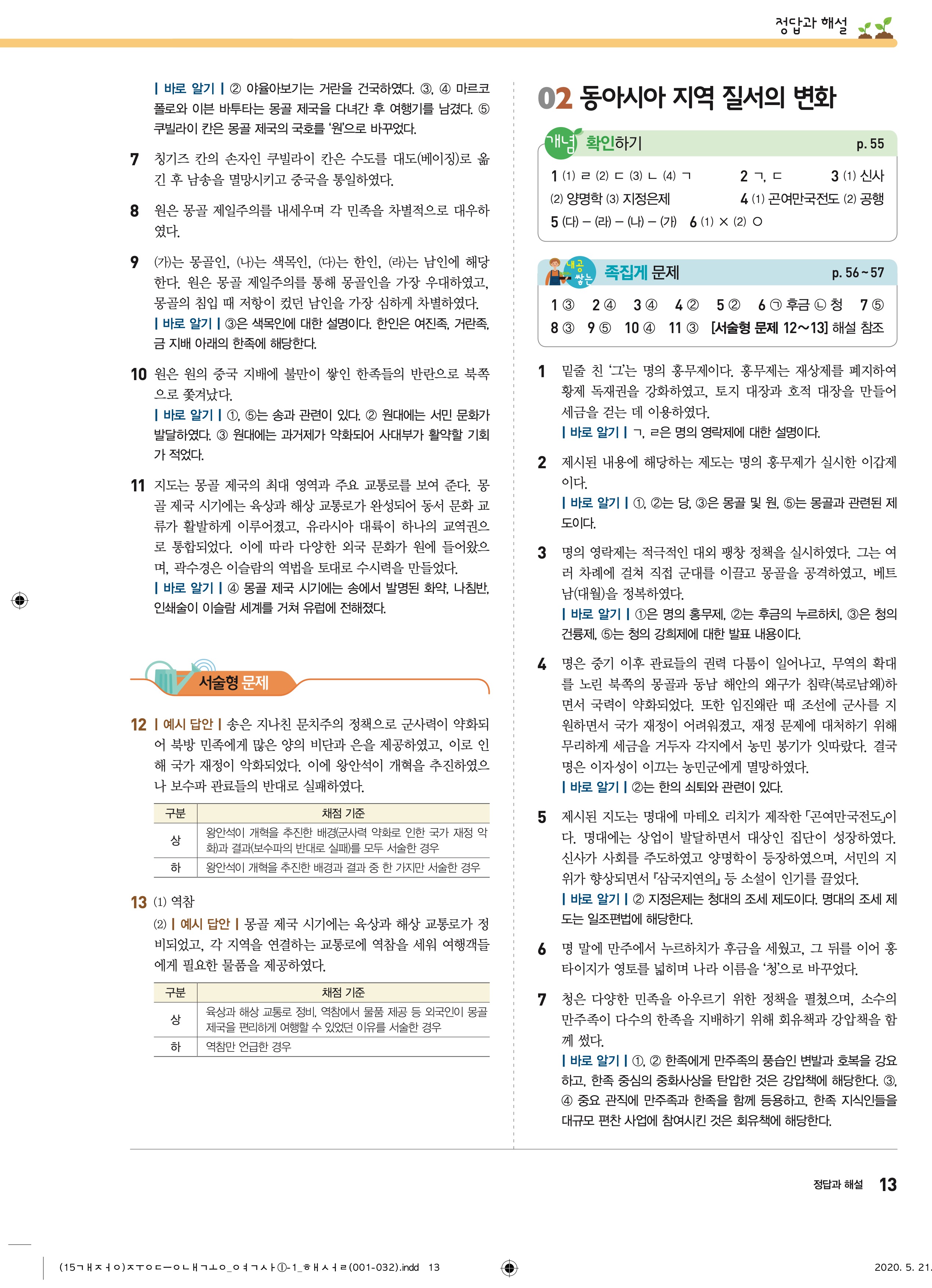 내공의힘 중등역사 1-1 답지 해설 바로보는 사진답지 빠른답지 모바일최적화