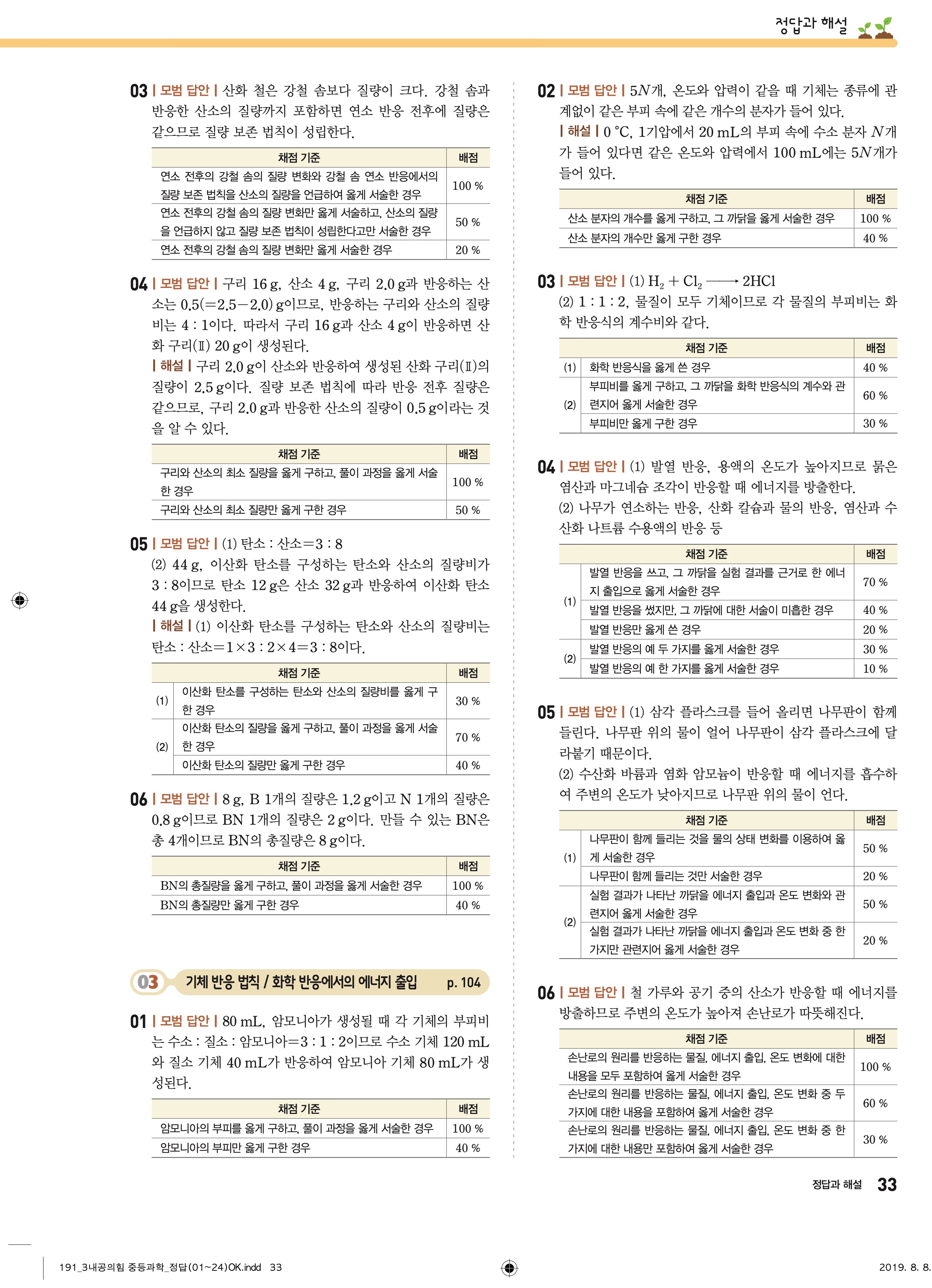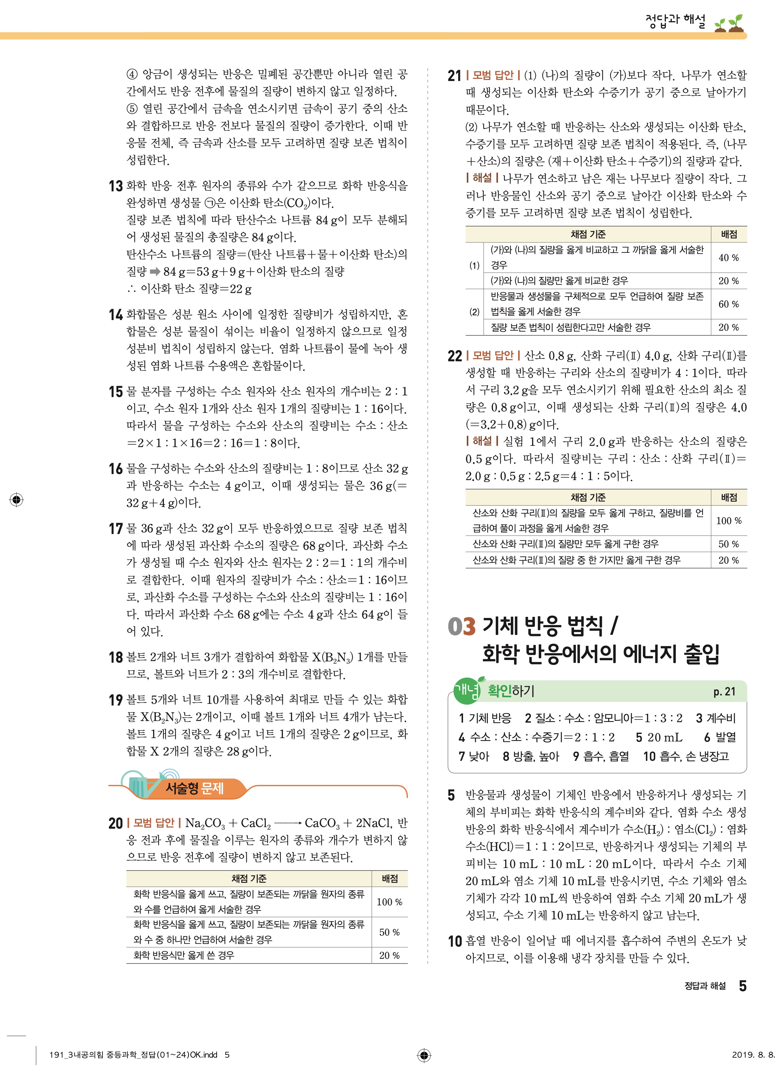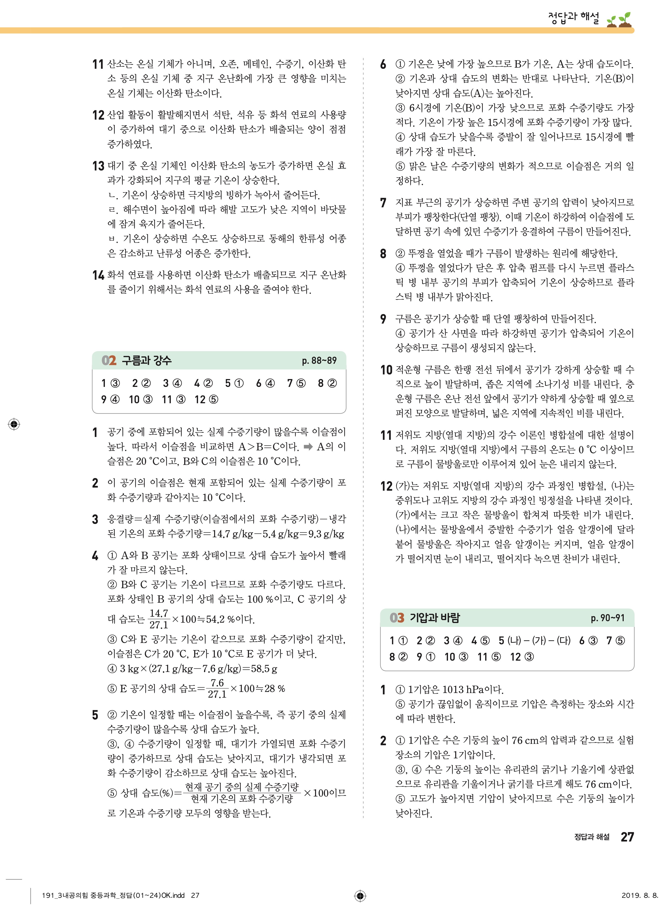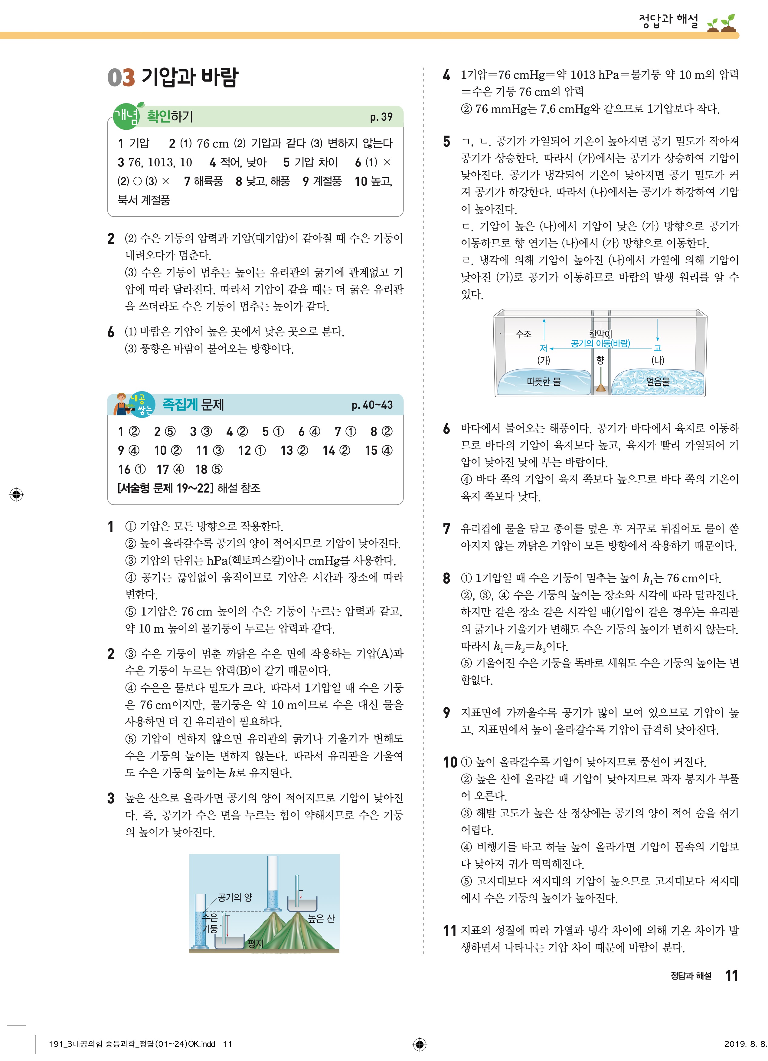 내공의힘 중등과학 3-1 답지 해설 바로보는 사진답지 빠른답지 모바일최적화