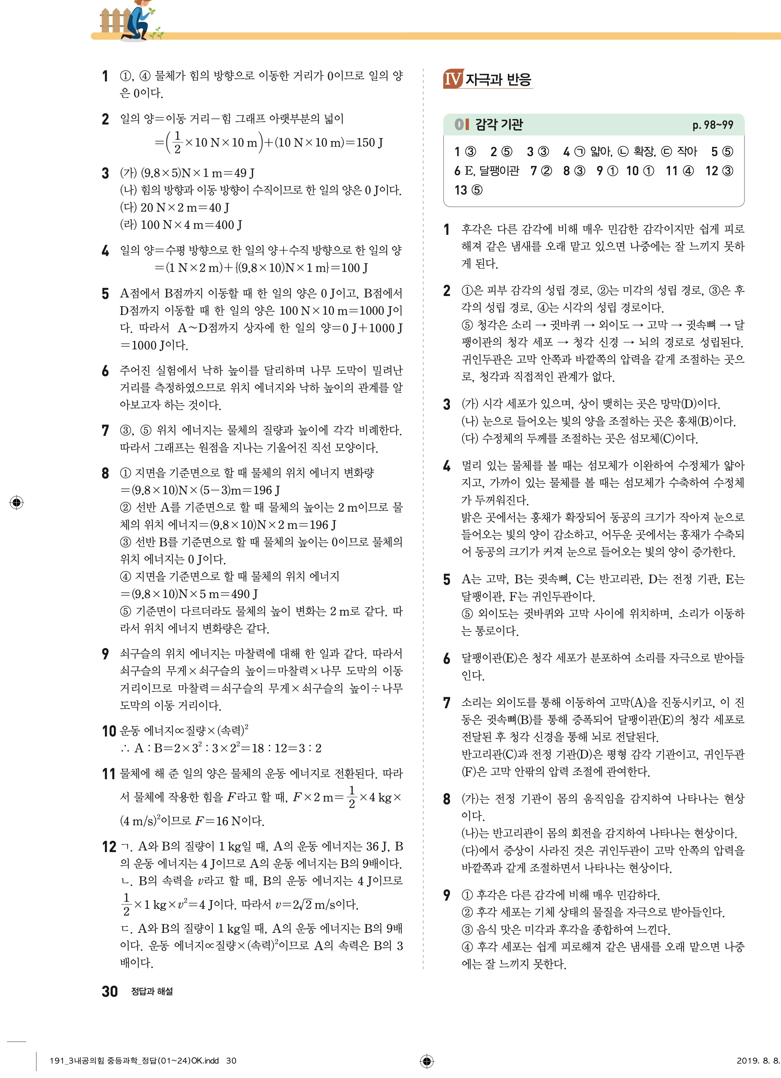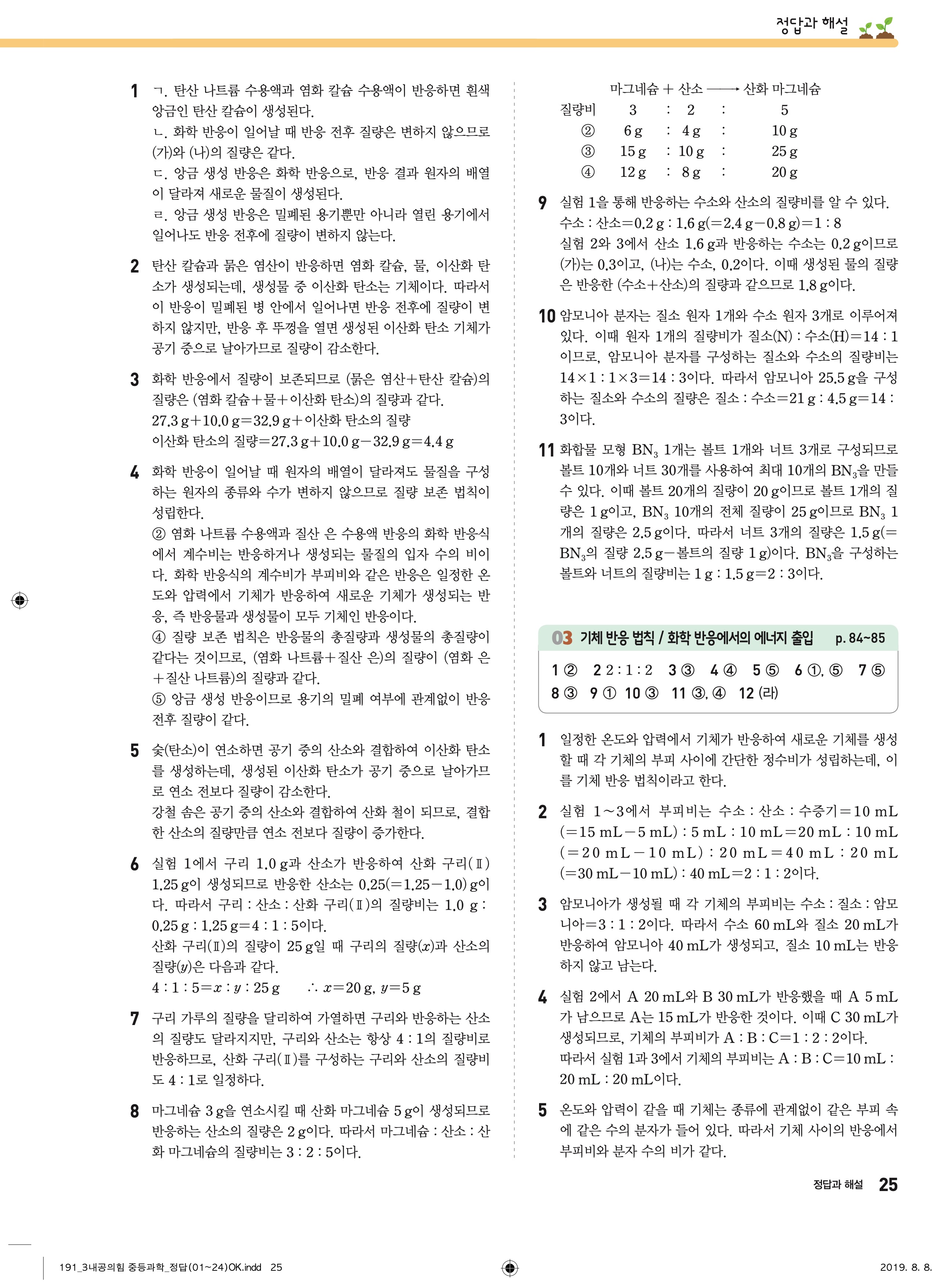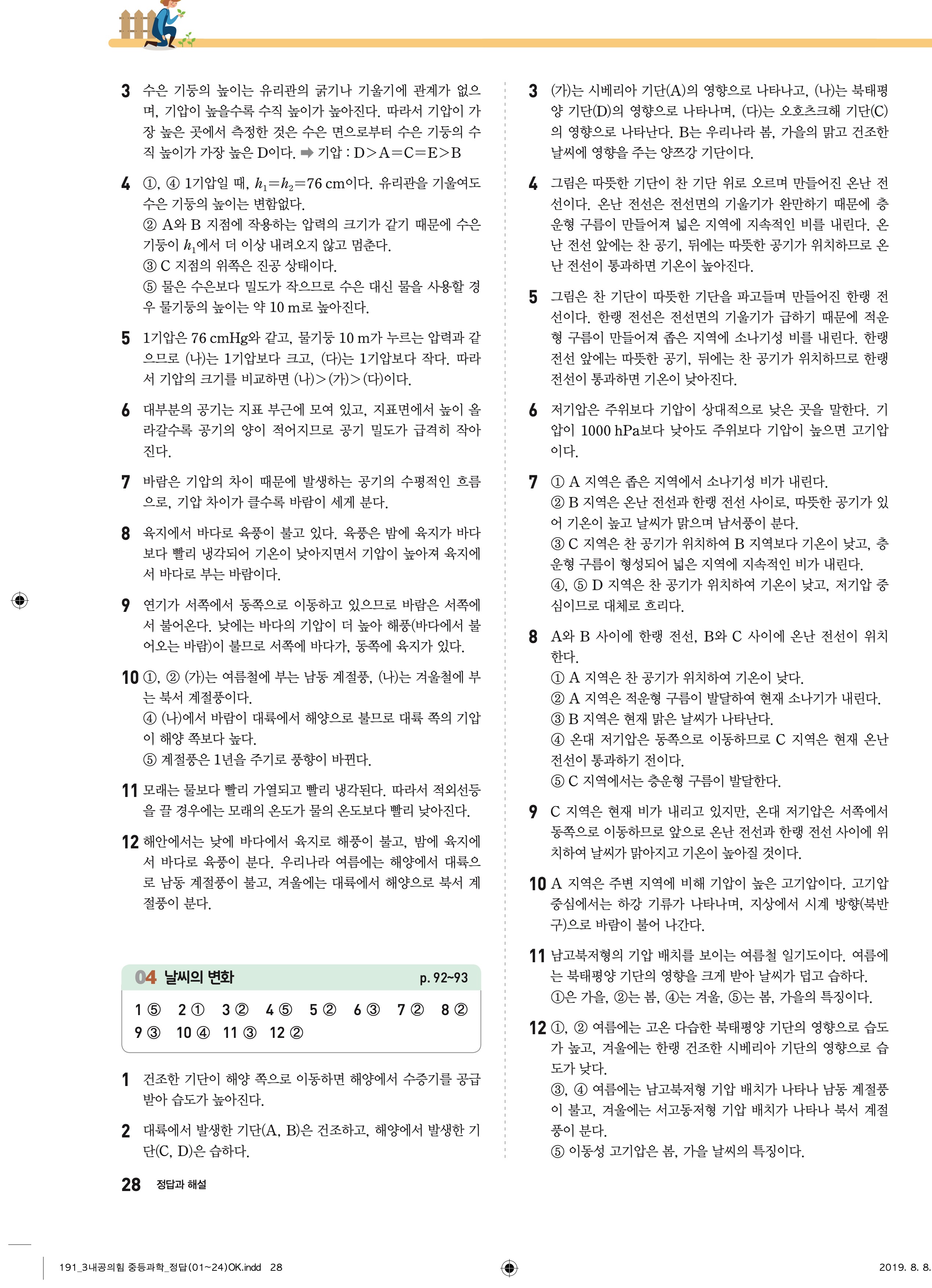 내공의힘 중등과학 3-1 답지 해설 바로보는 사진답지 빠른답지 모바일최적화