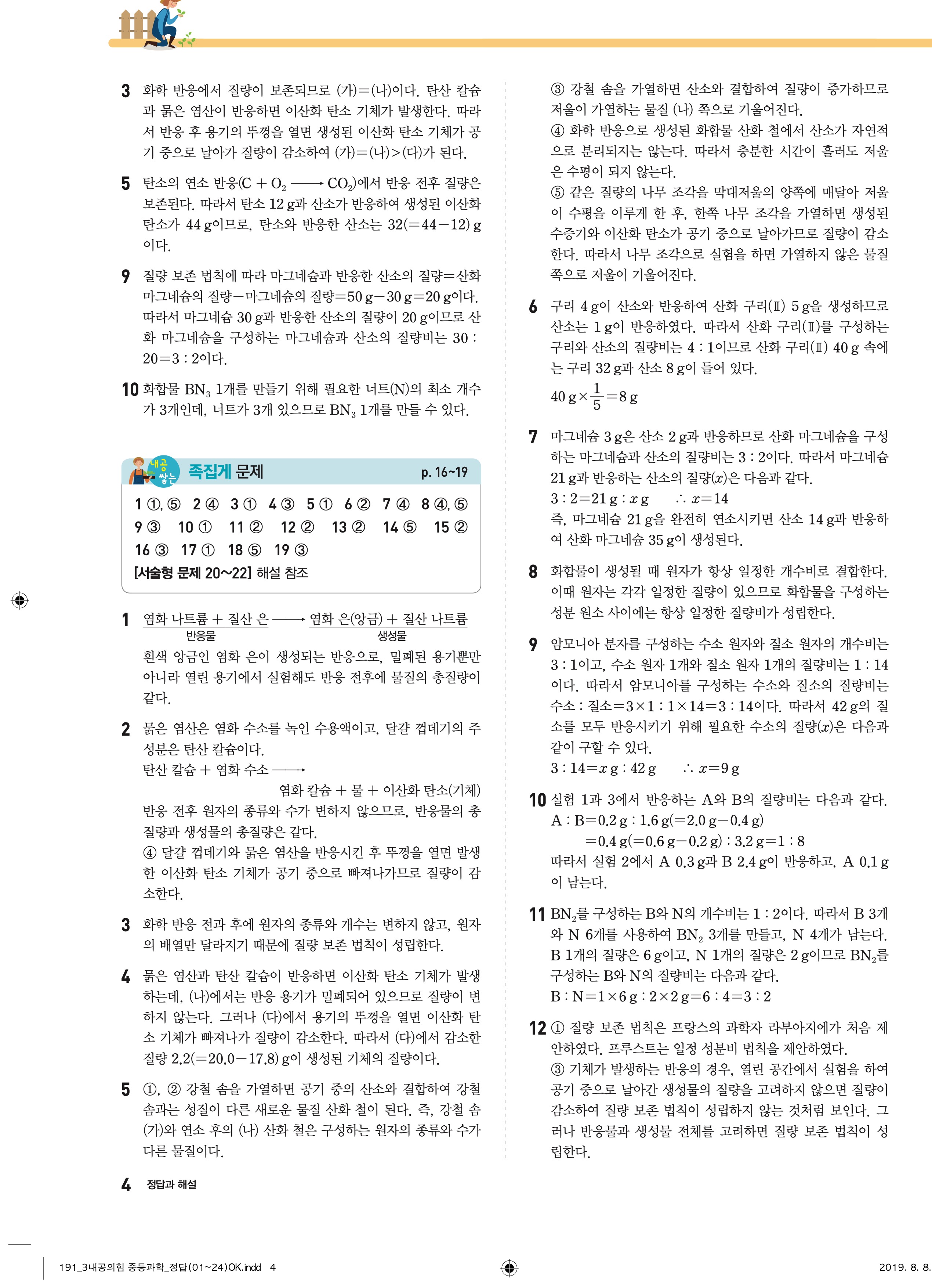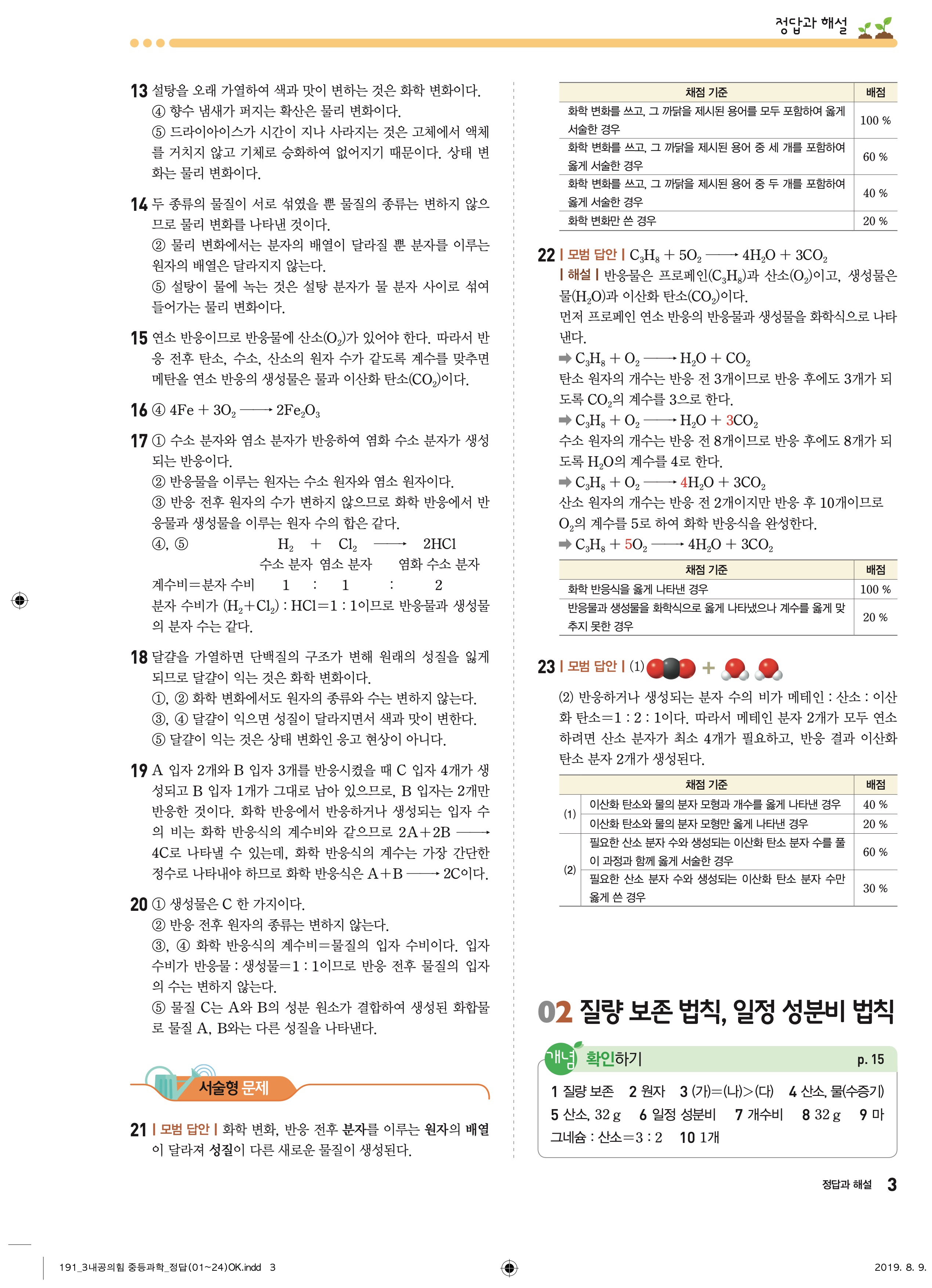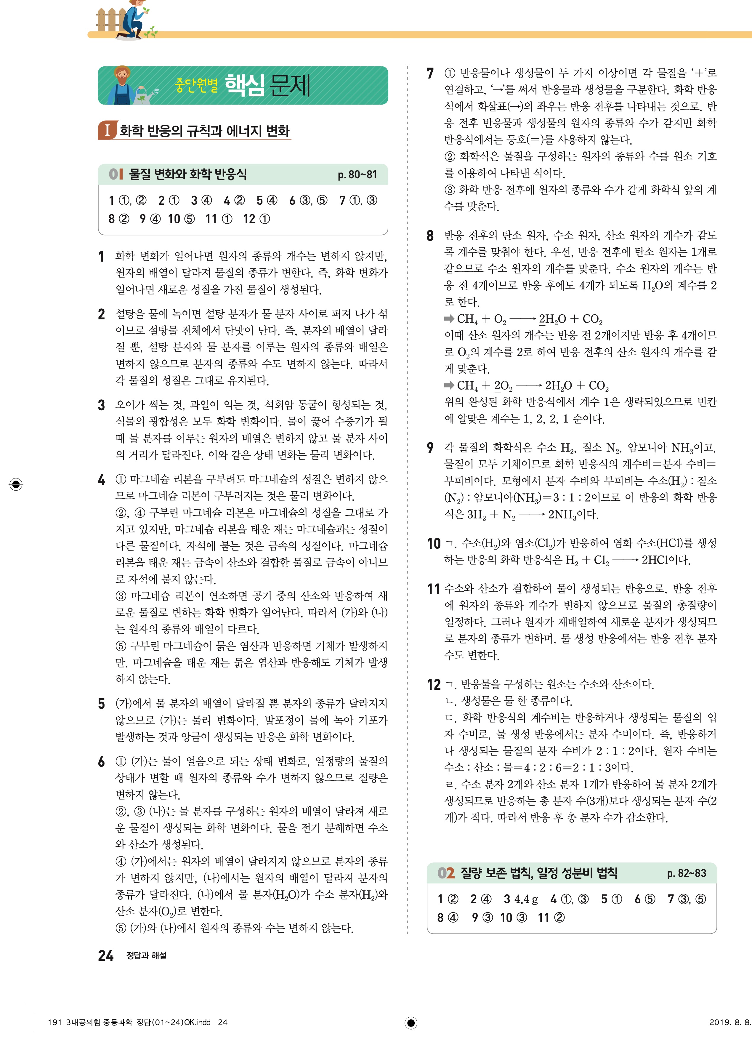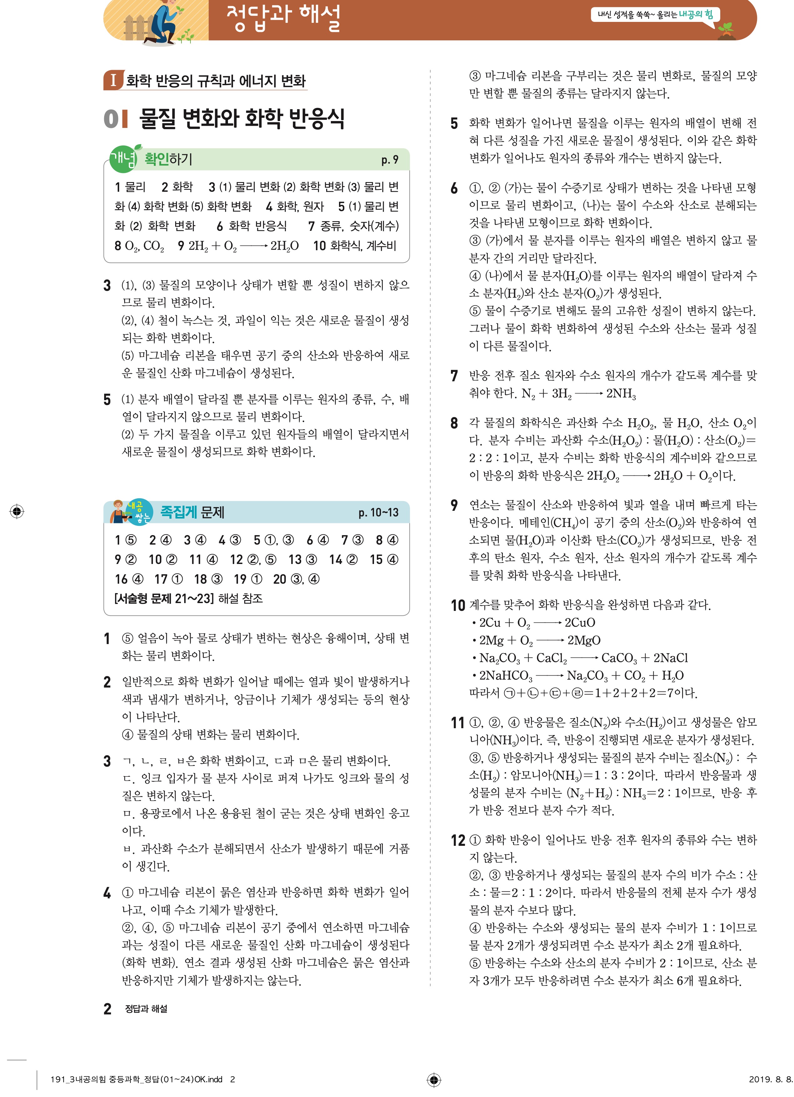 내공의힘 중등과학 3-1 답지 해설 바로보는 사진답지 빠른답지 모바일최적화