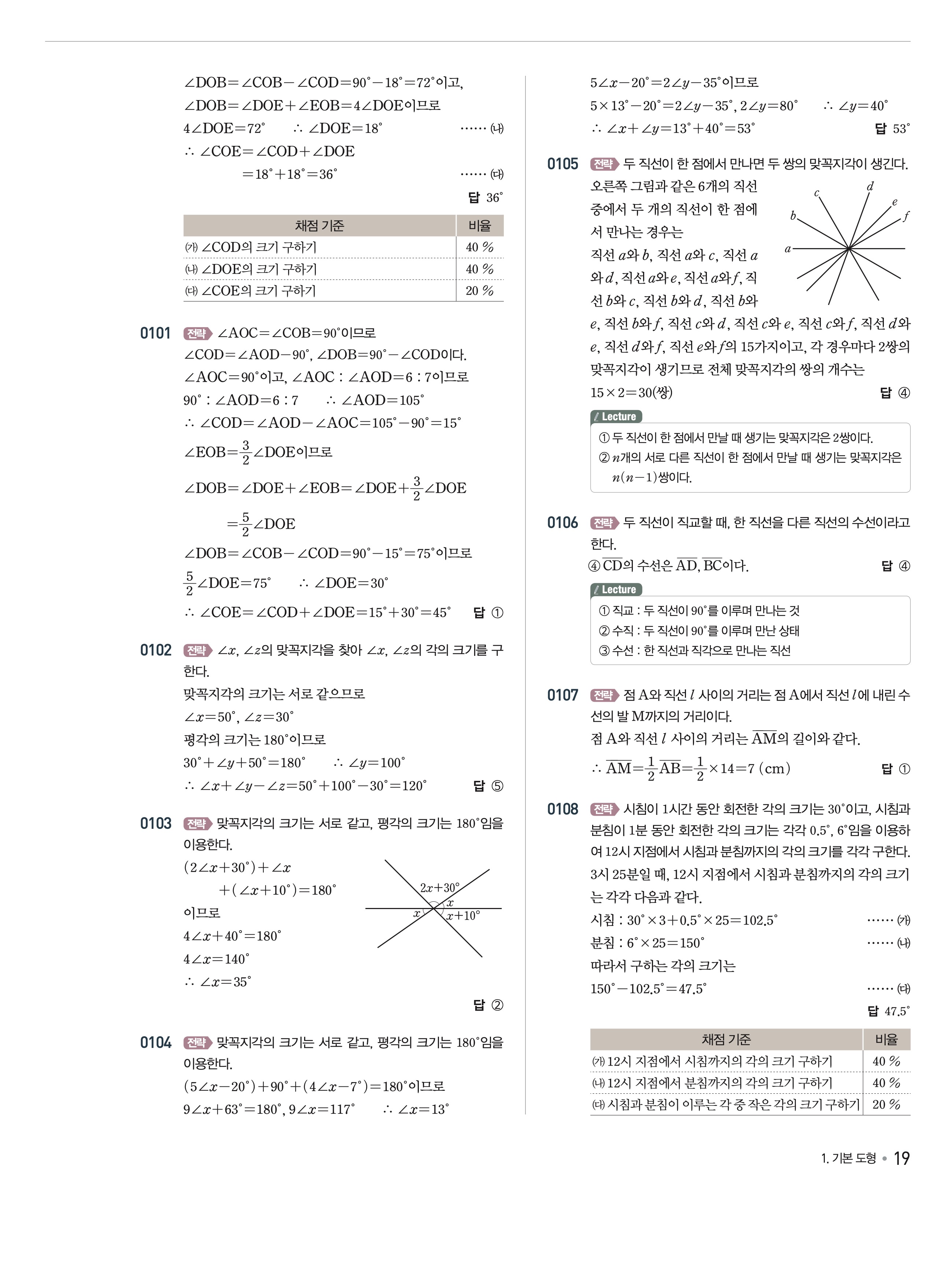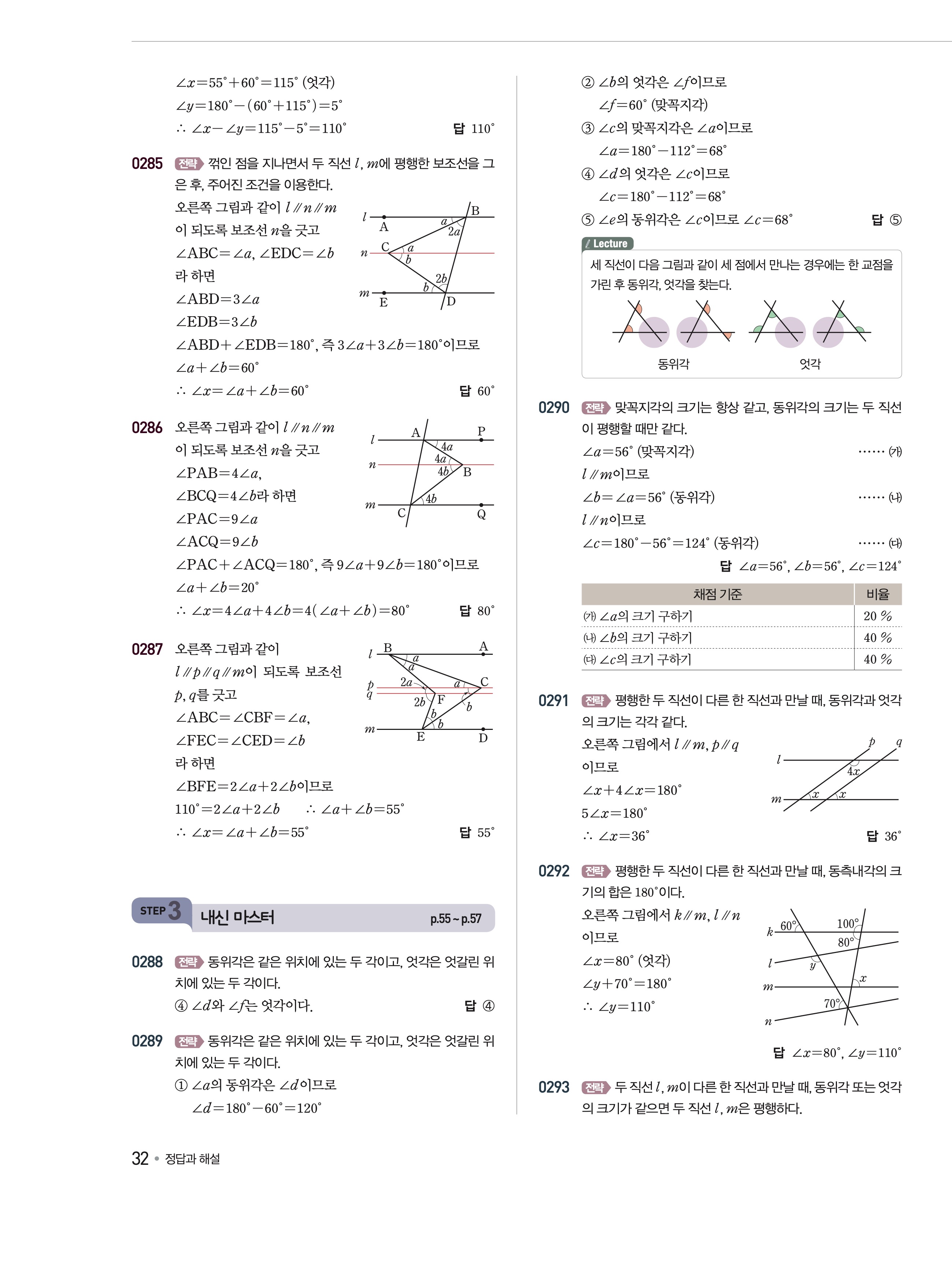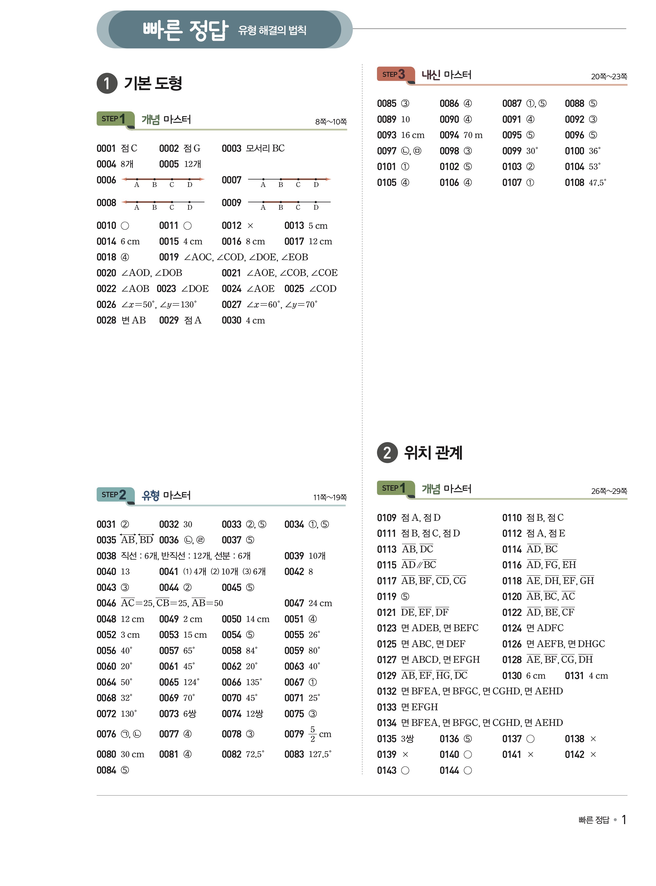 유형해결의법칙 중1-2 답지 해설 바로보는 사진답지 빠른답지 모바일최적화