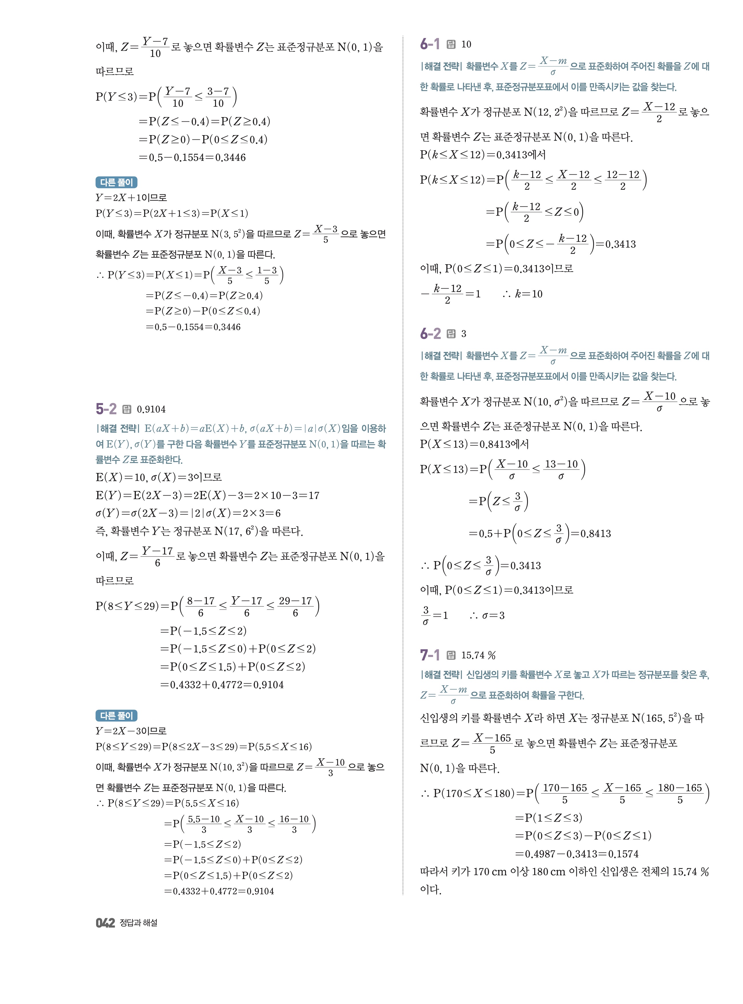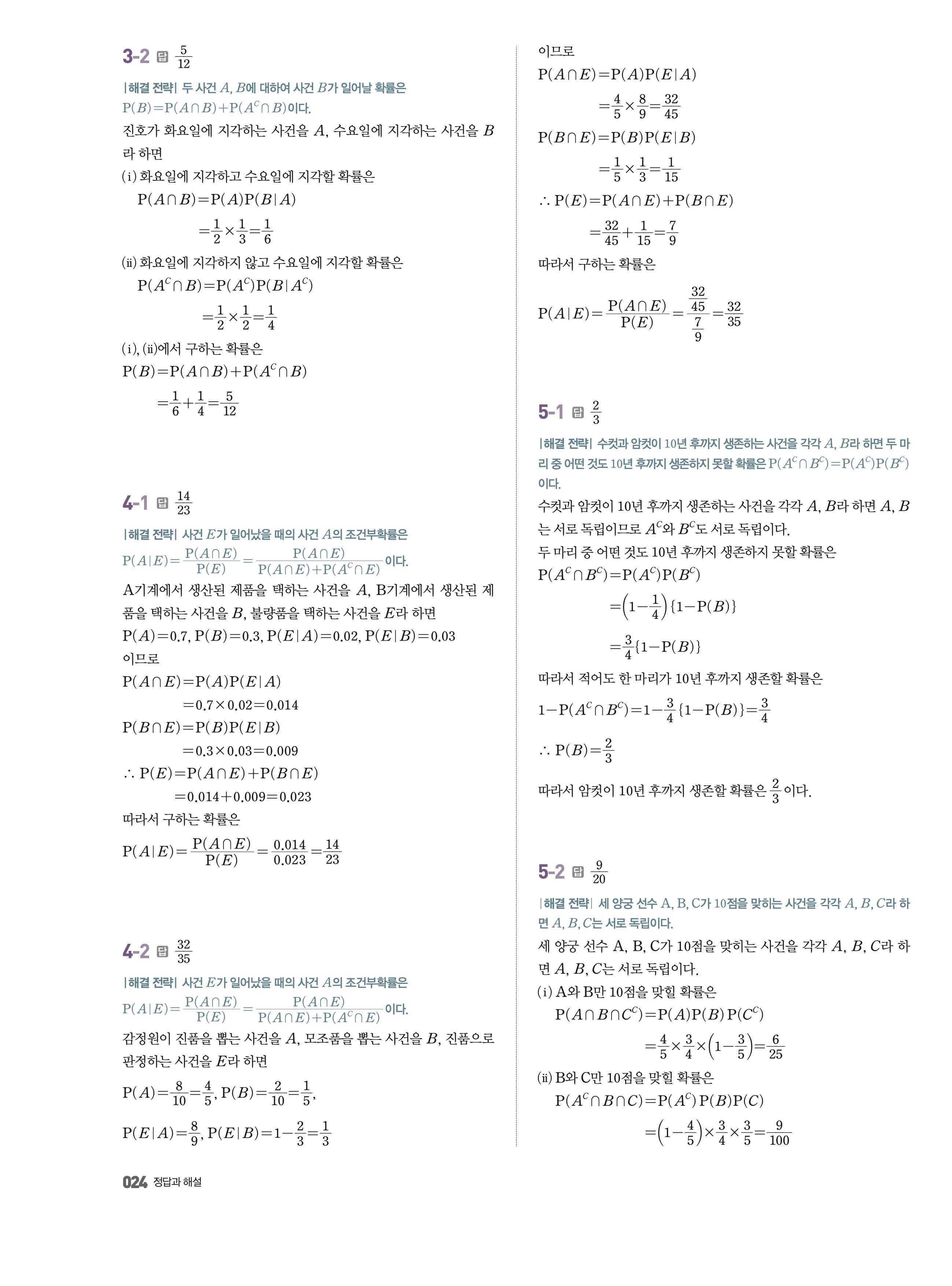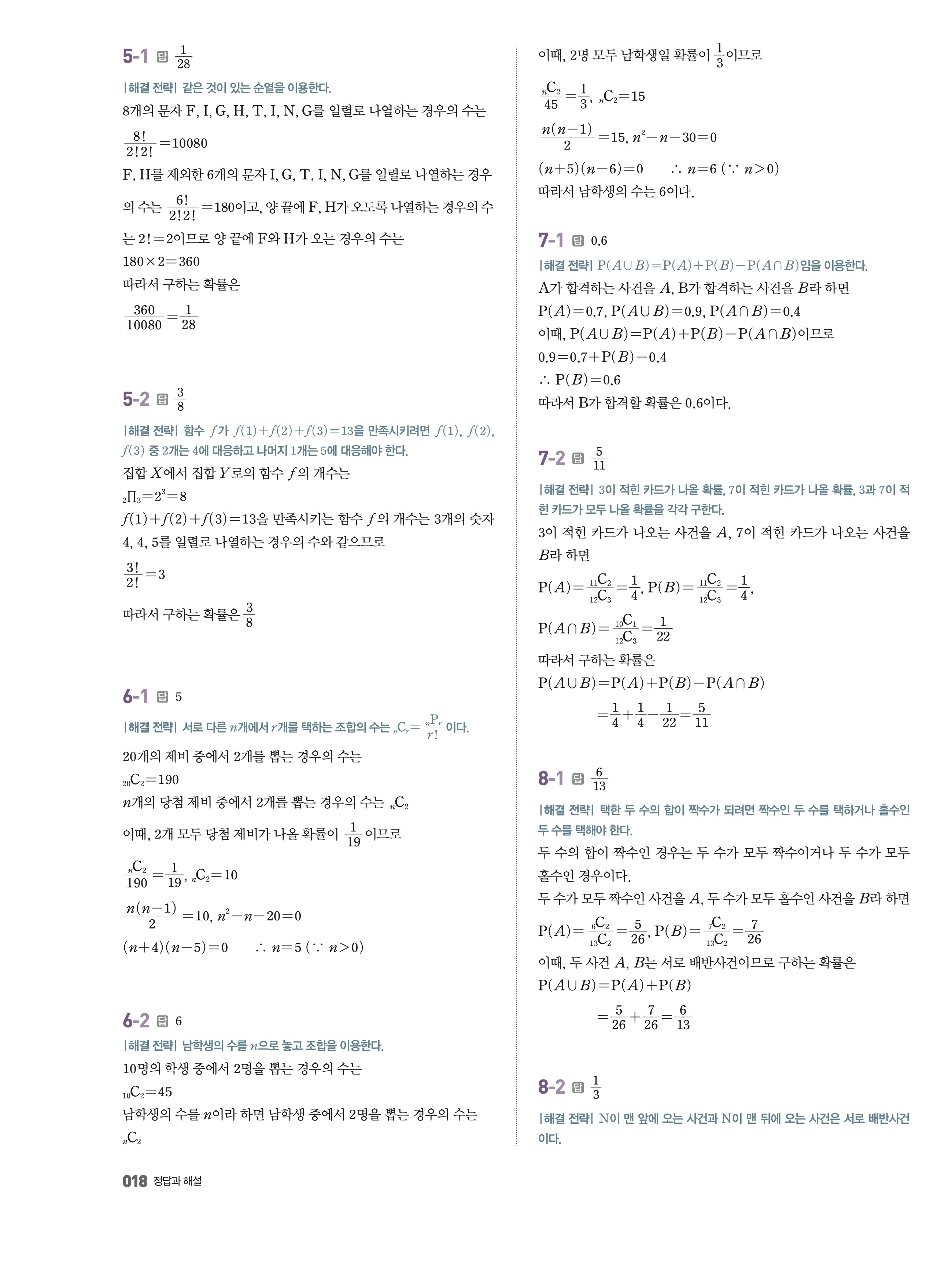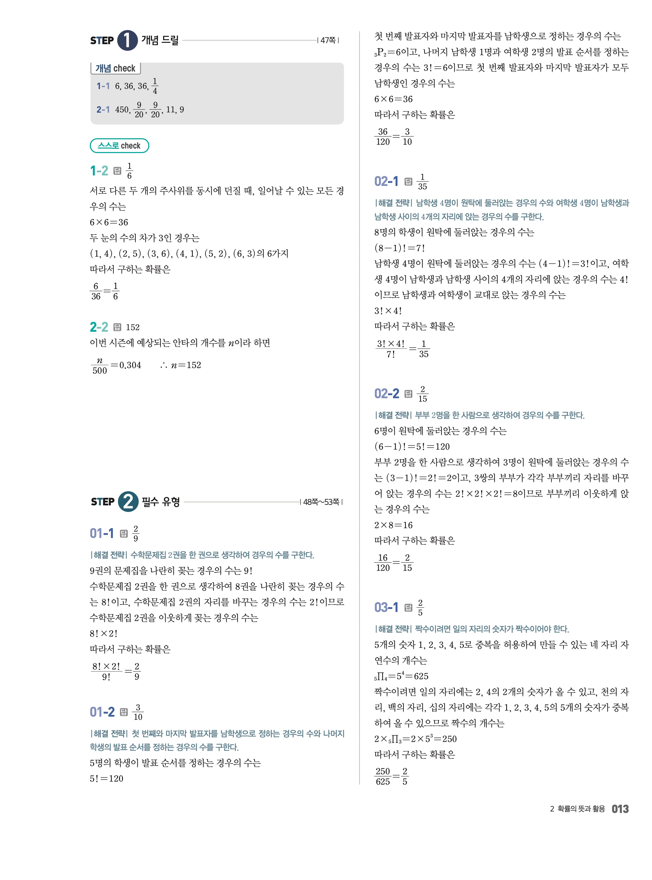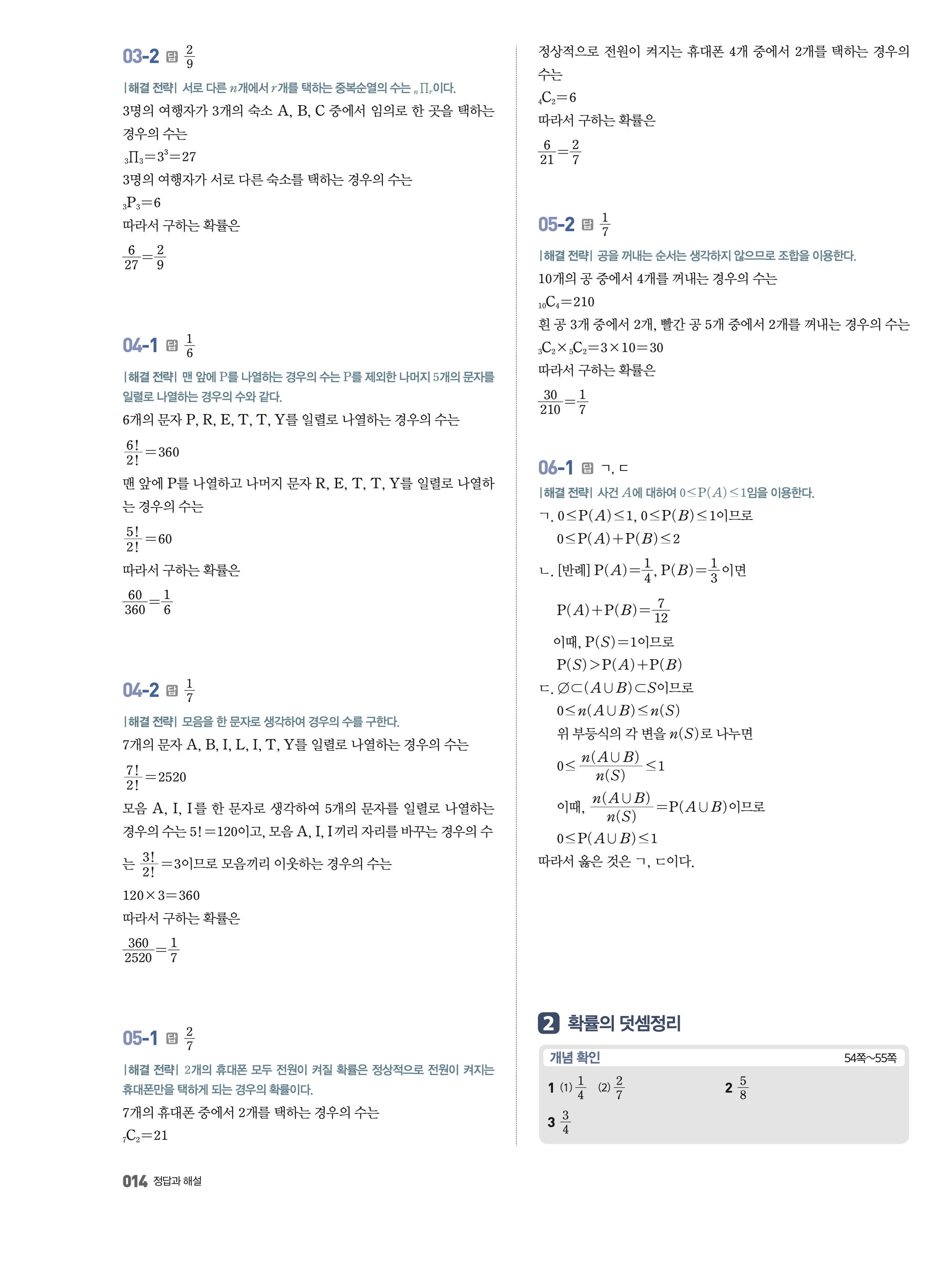 고등개념해결의법칙 확률과통계 답지 해설 바로보는 사진답지 빠른답지 모바일최적화