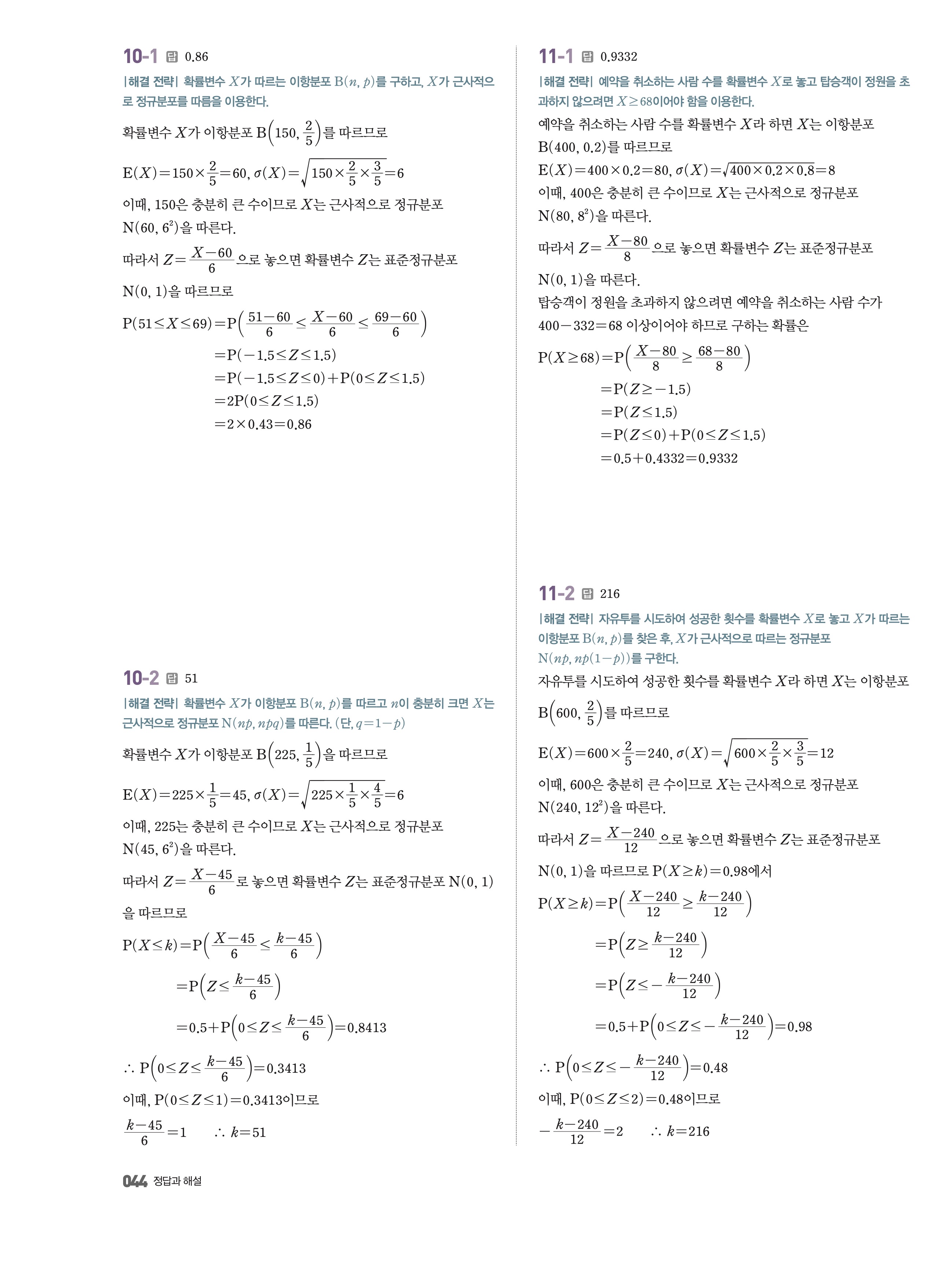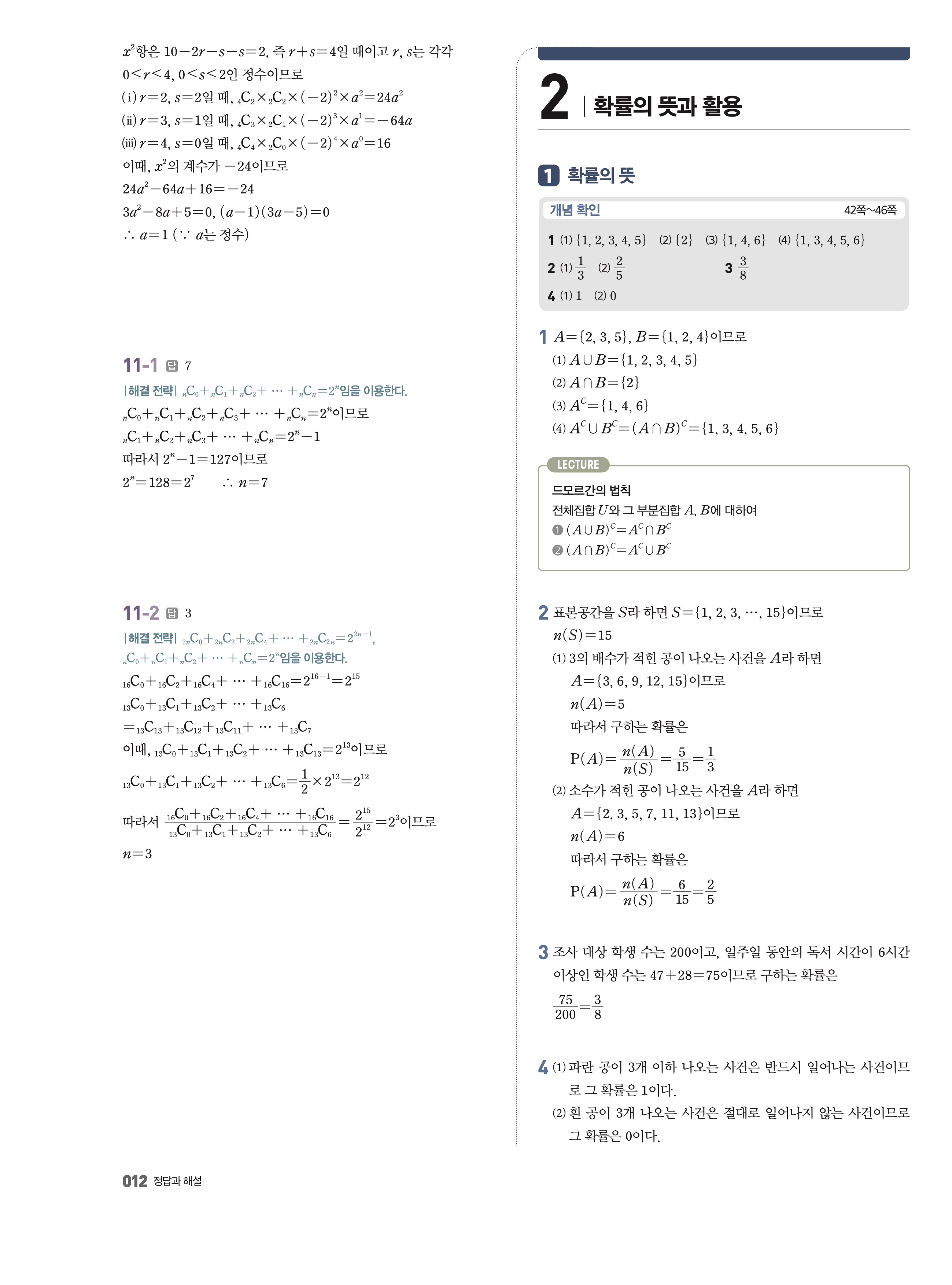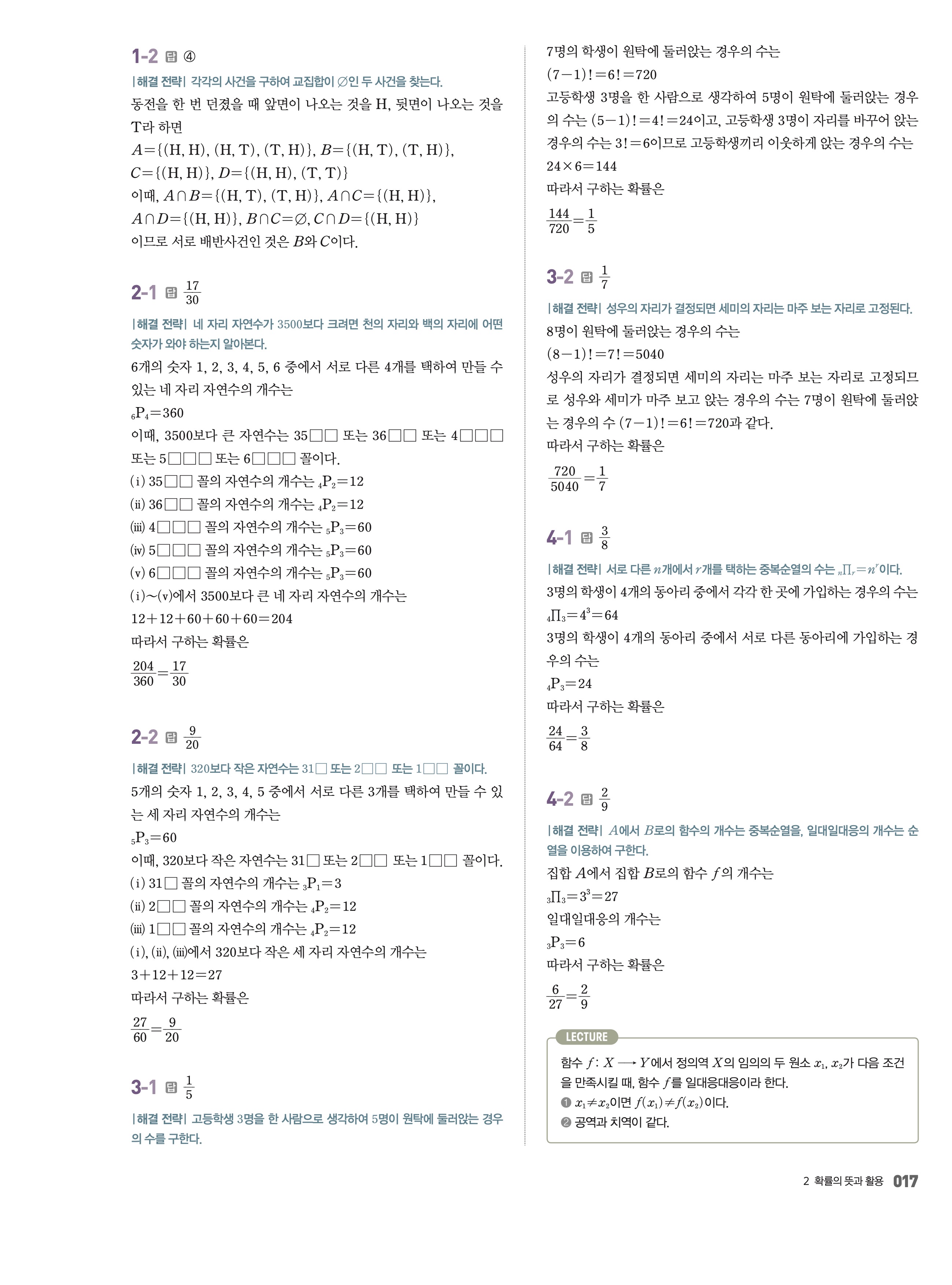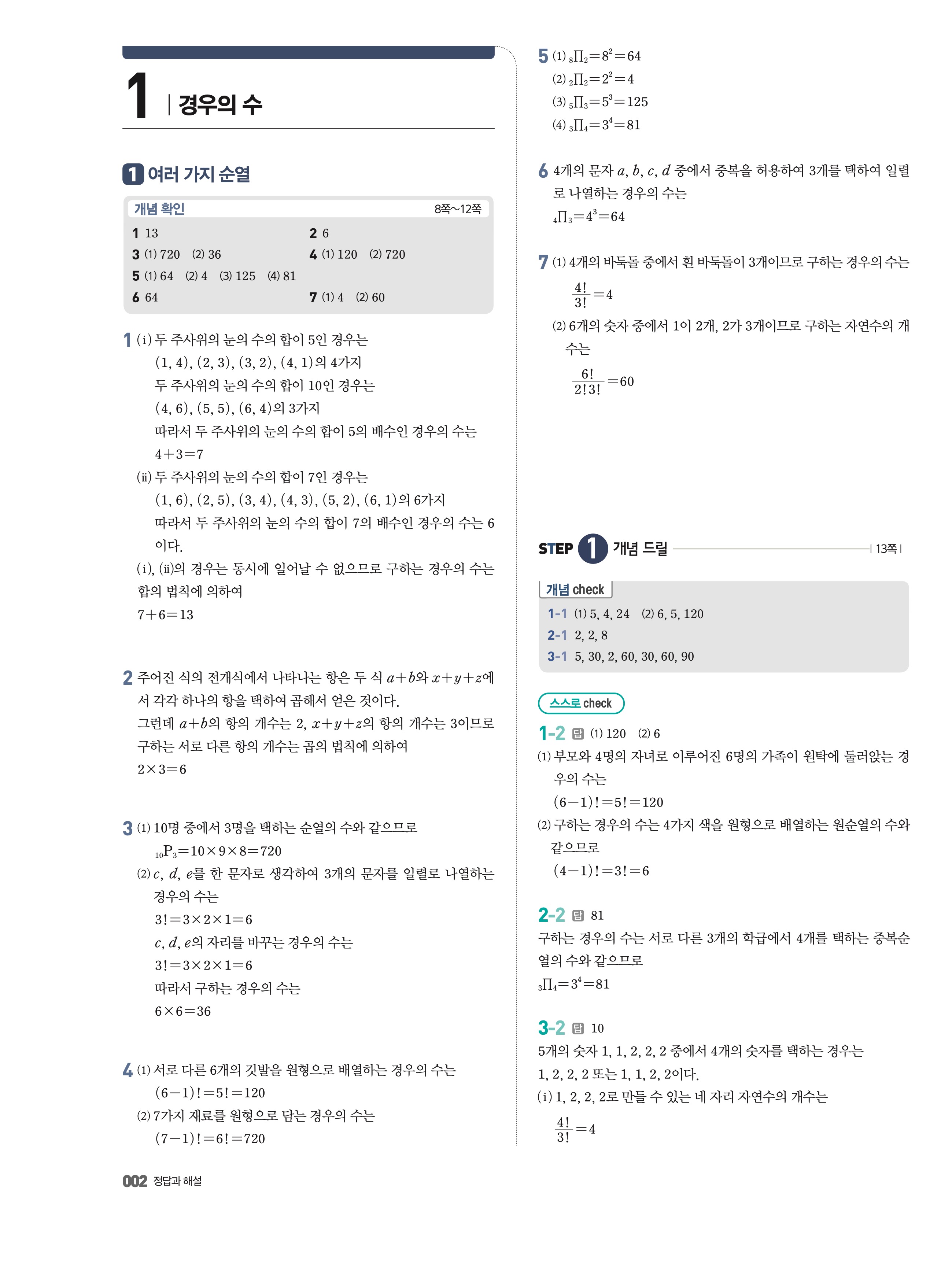 고등개념해결의법칙 확률과통계 답지 해설 바로보는 사진답지 빠른답지 모바일최적화