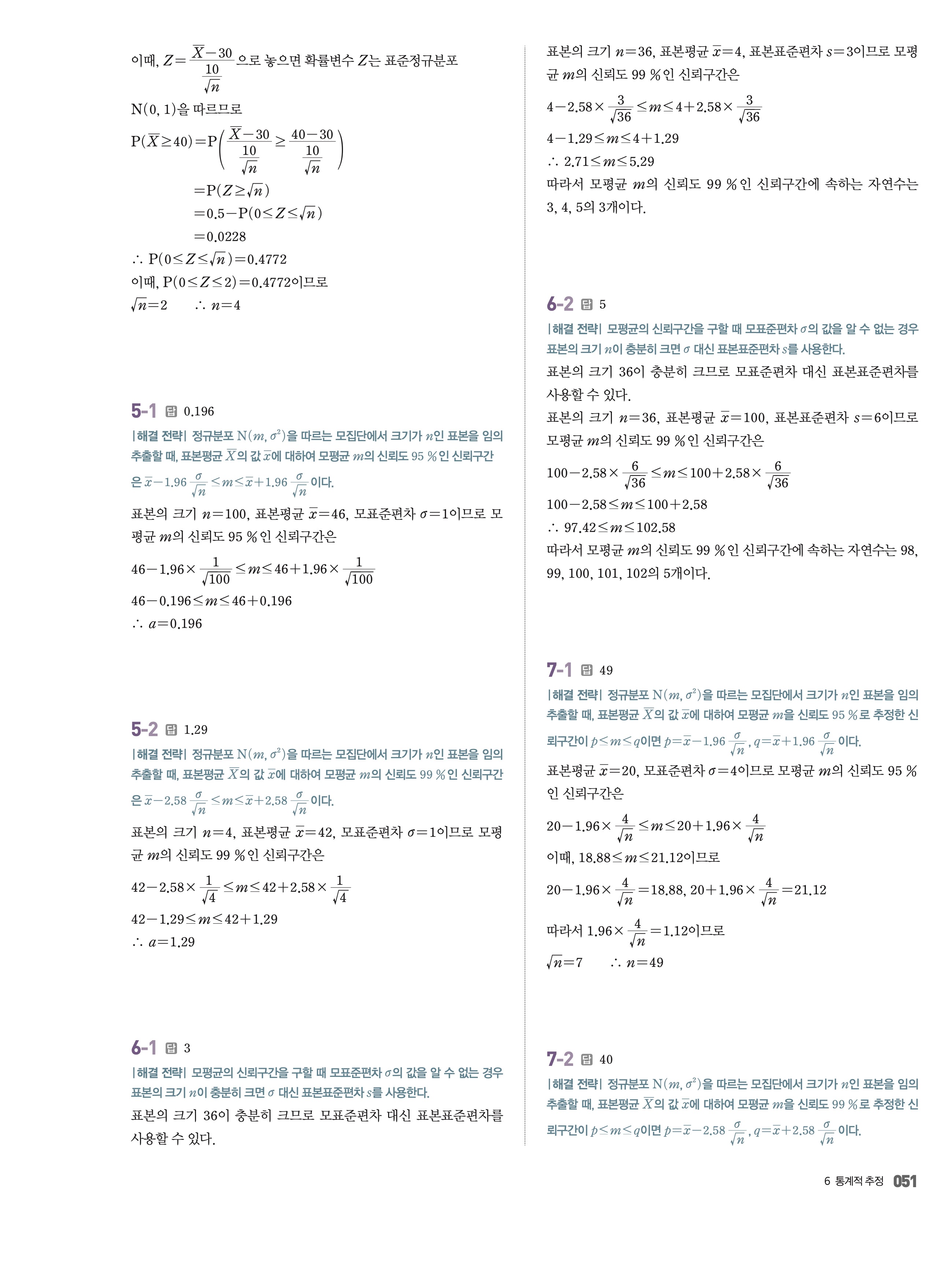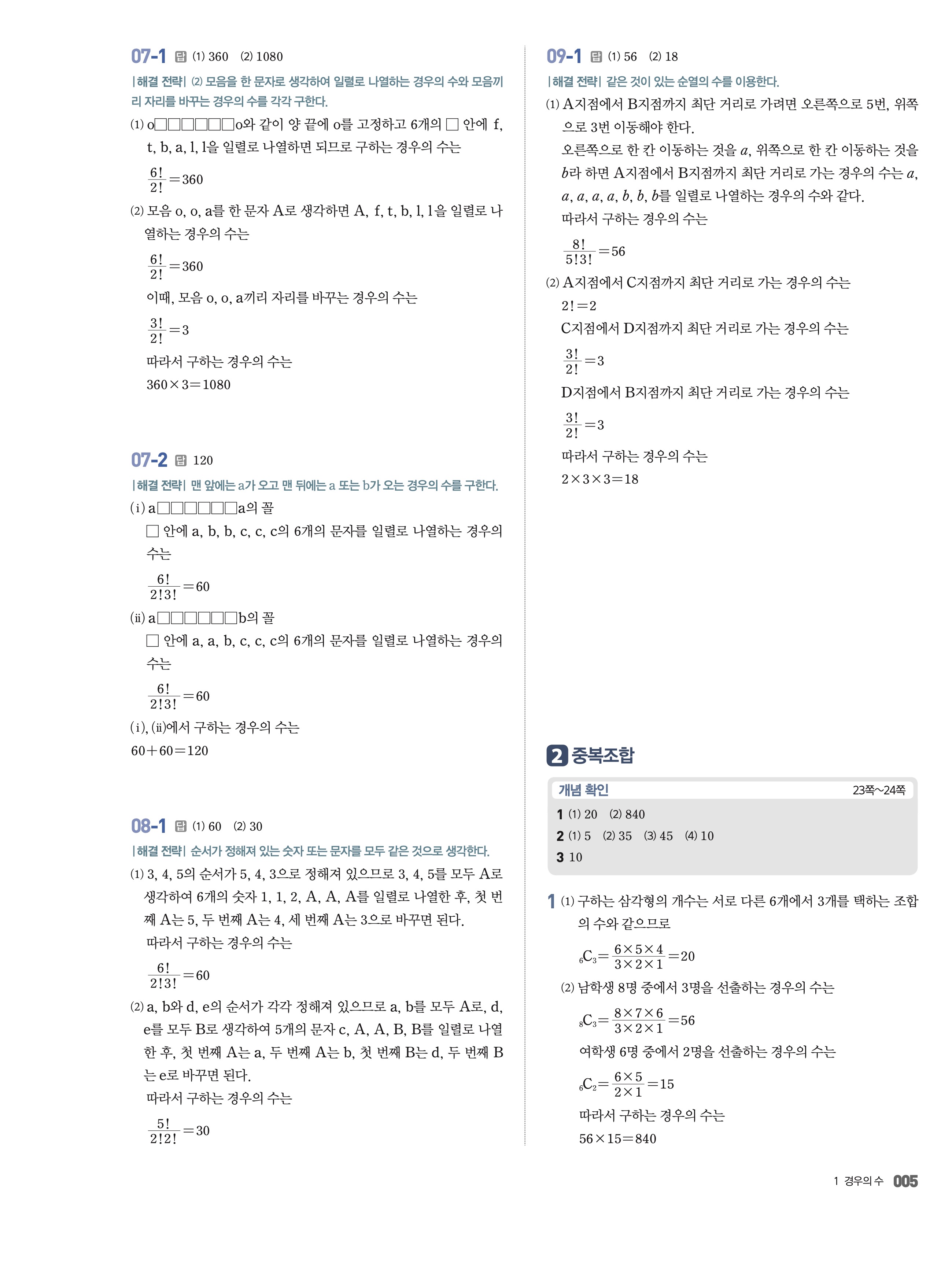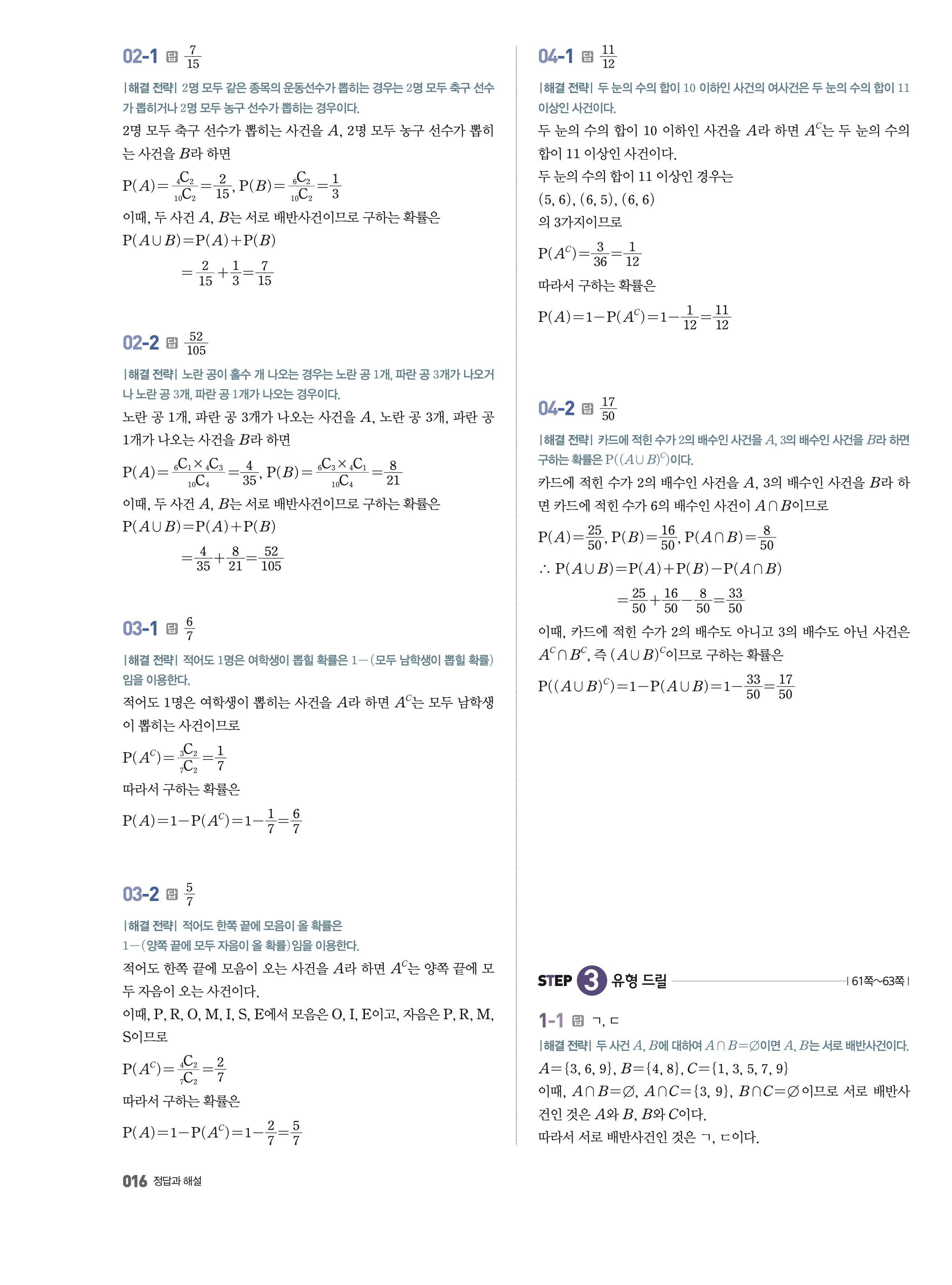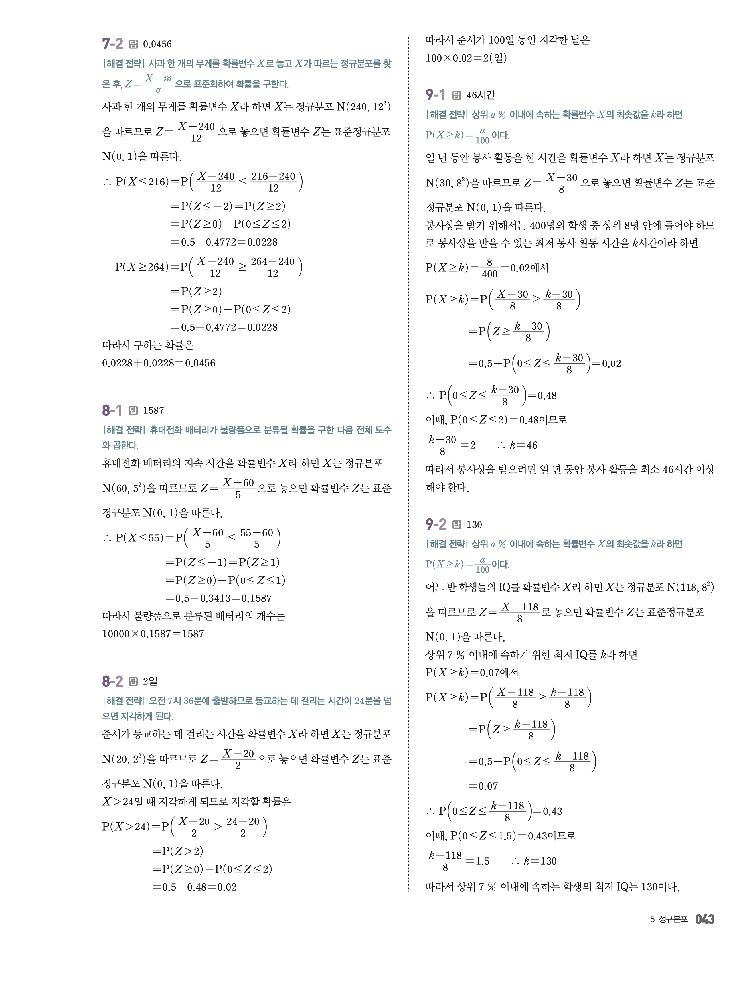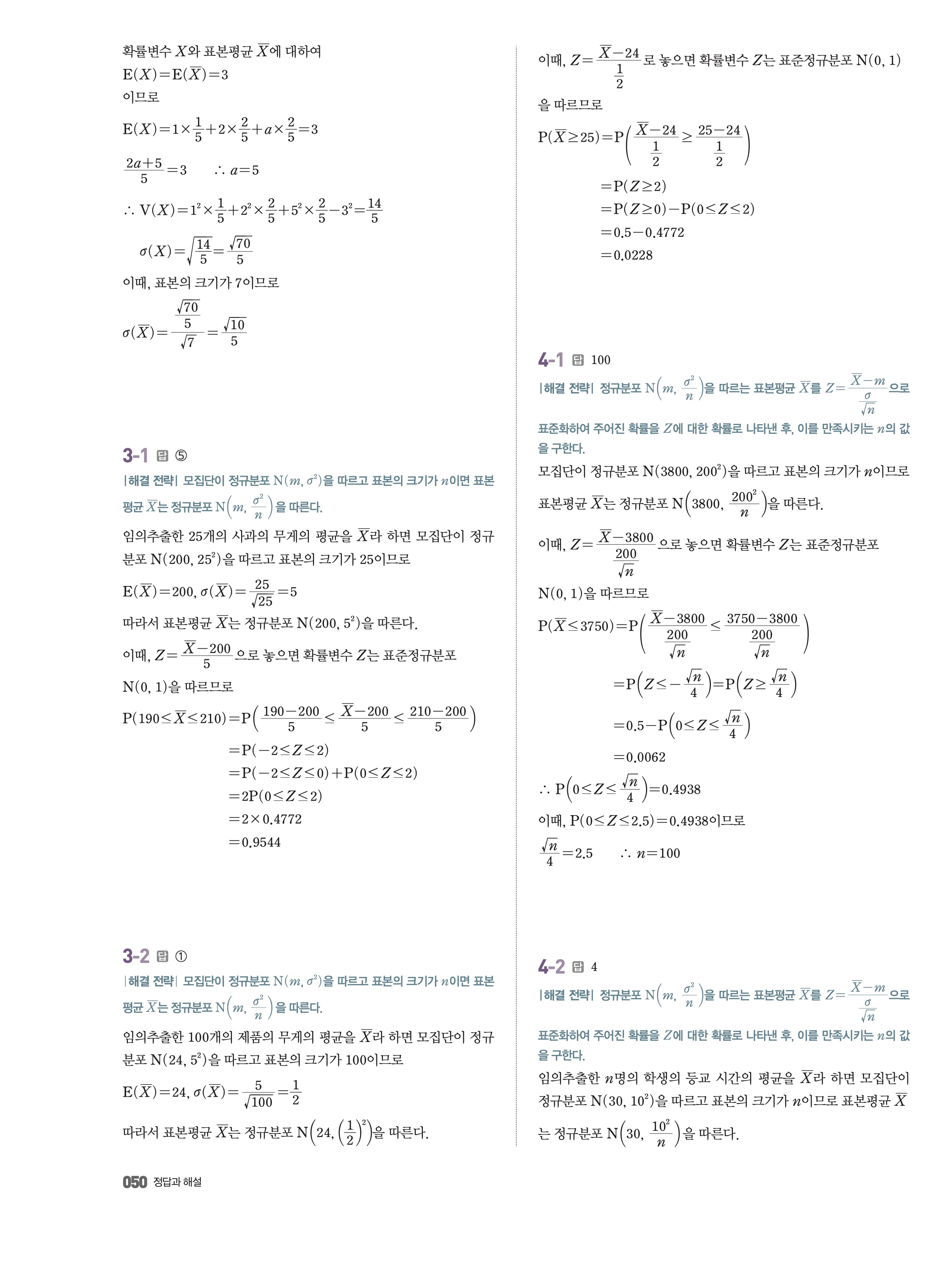고등개념해결의법칙 확률과통계 답지 해설 바로보는 사진답지 빠른답지 모바일최적화