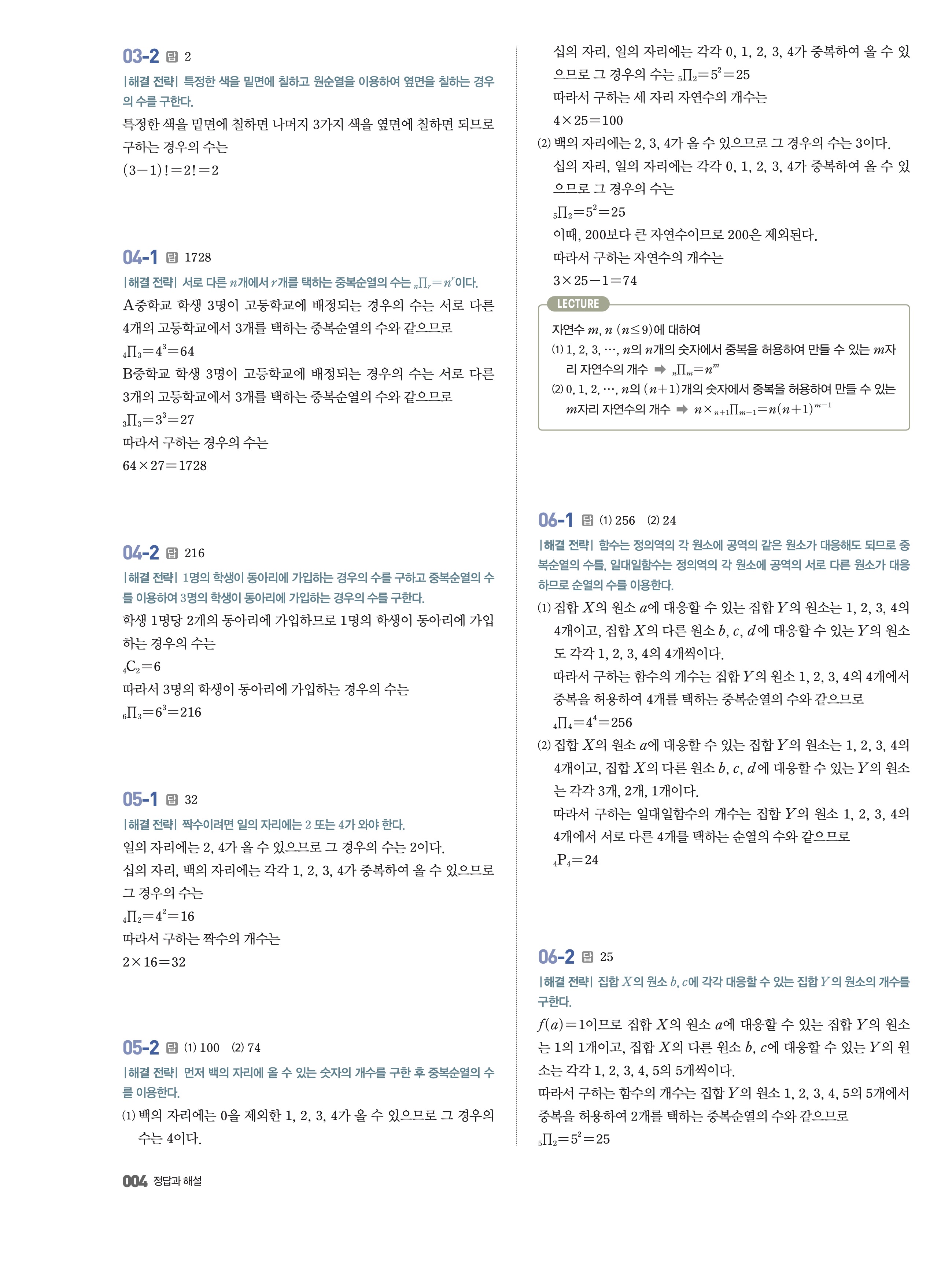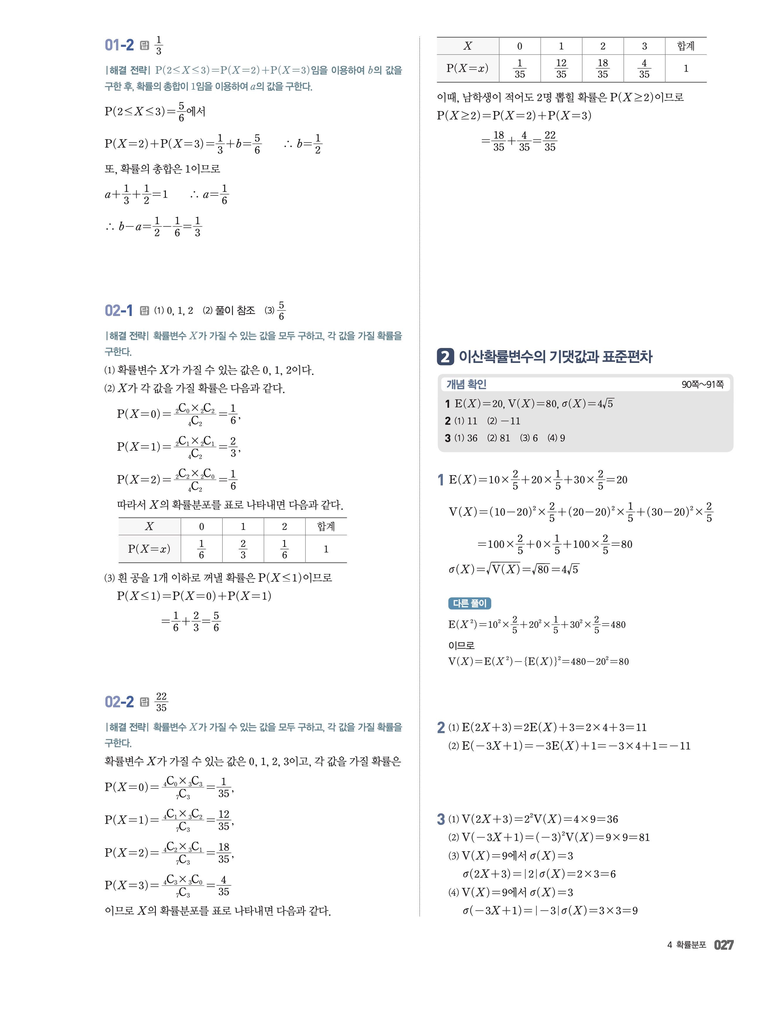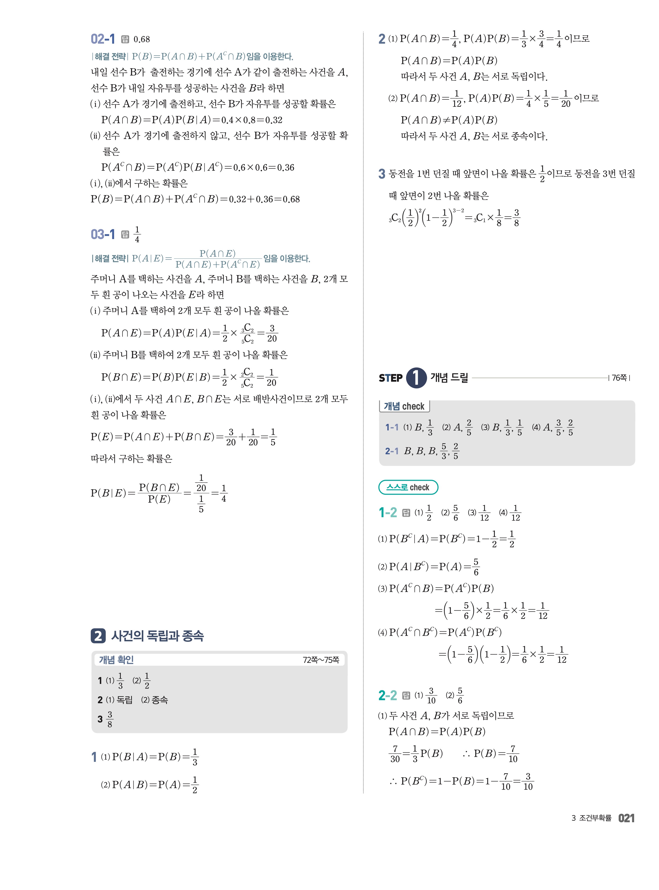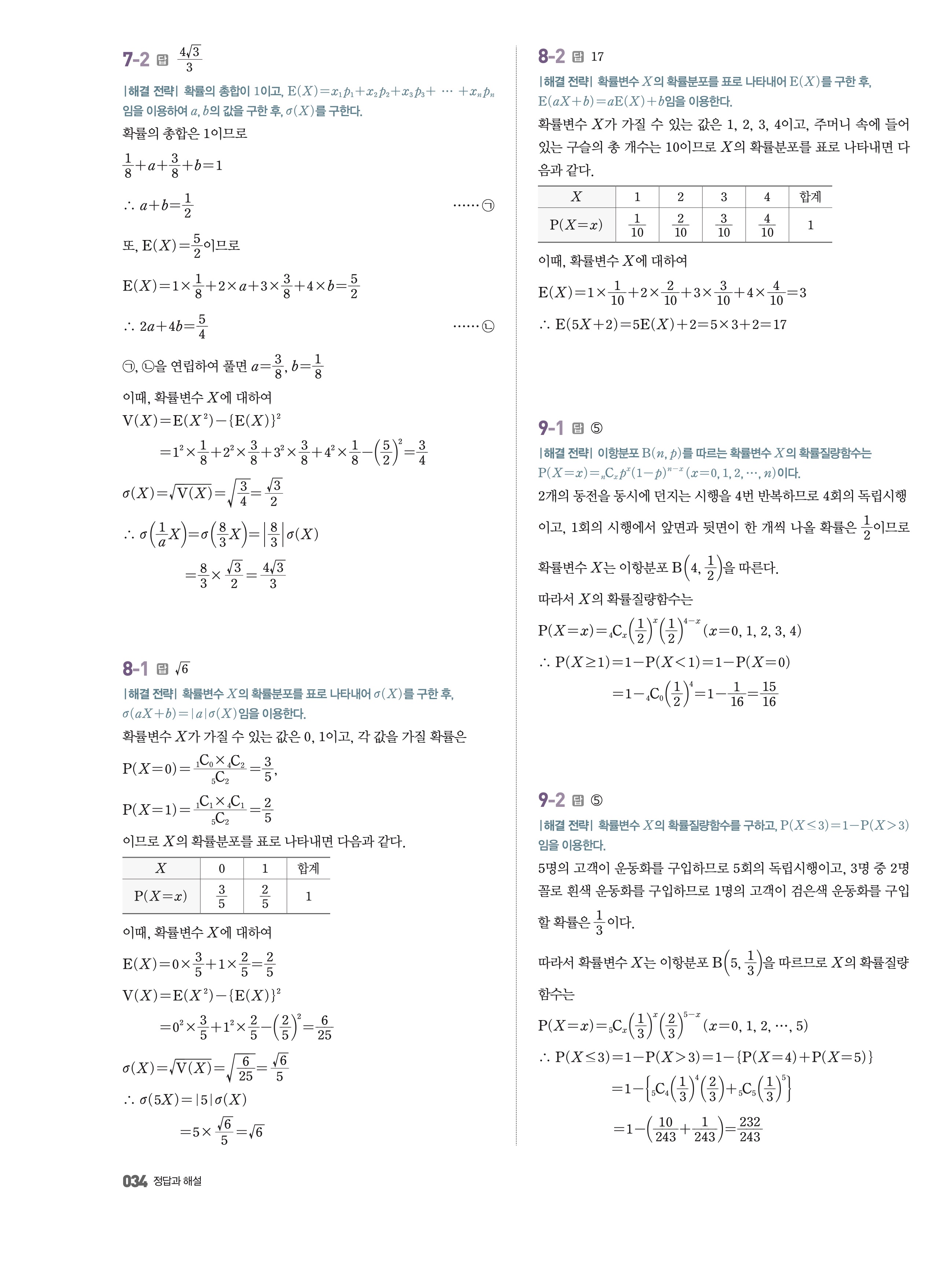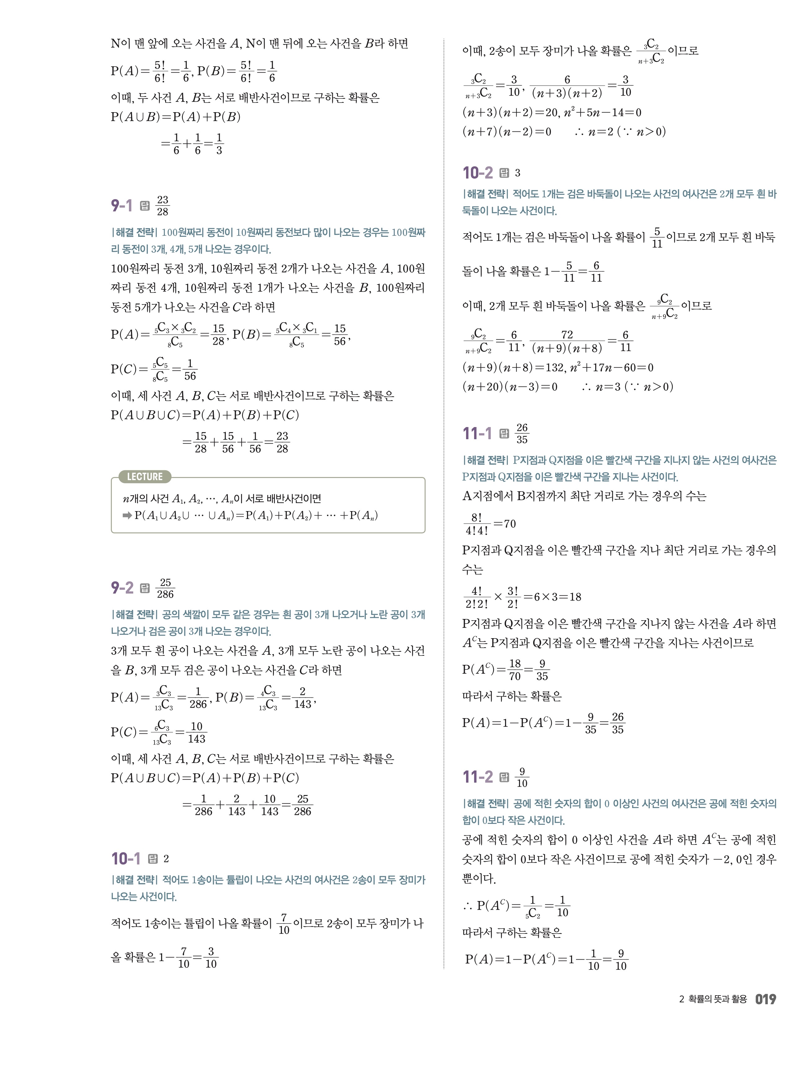 고등개념해결의법칙 확률과통계 답지 해설 바로보는 사진답지 빠른답지 모바일최적화