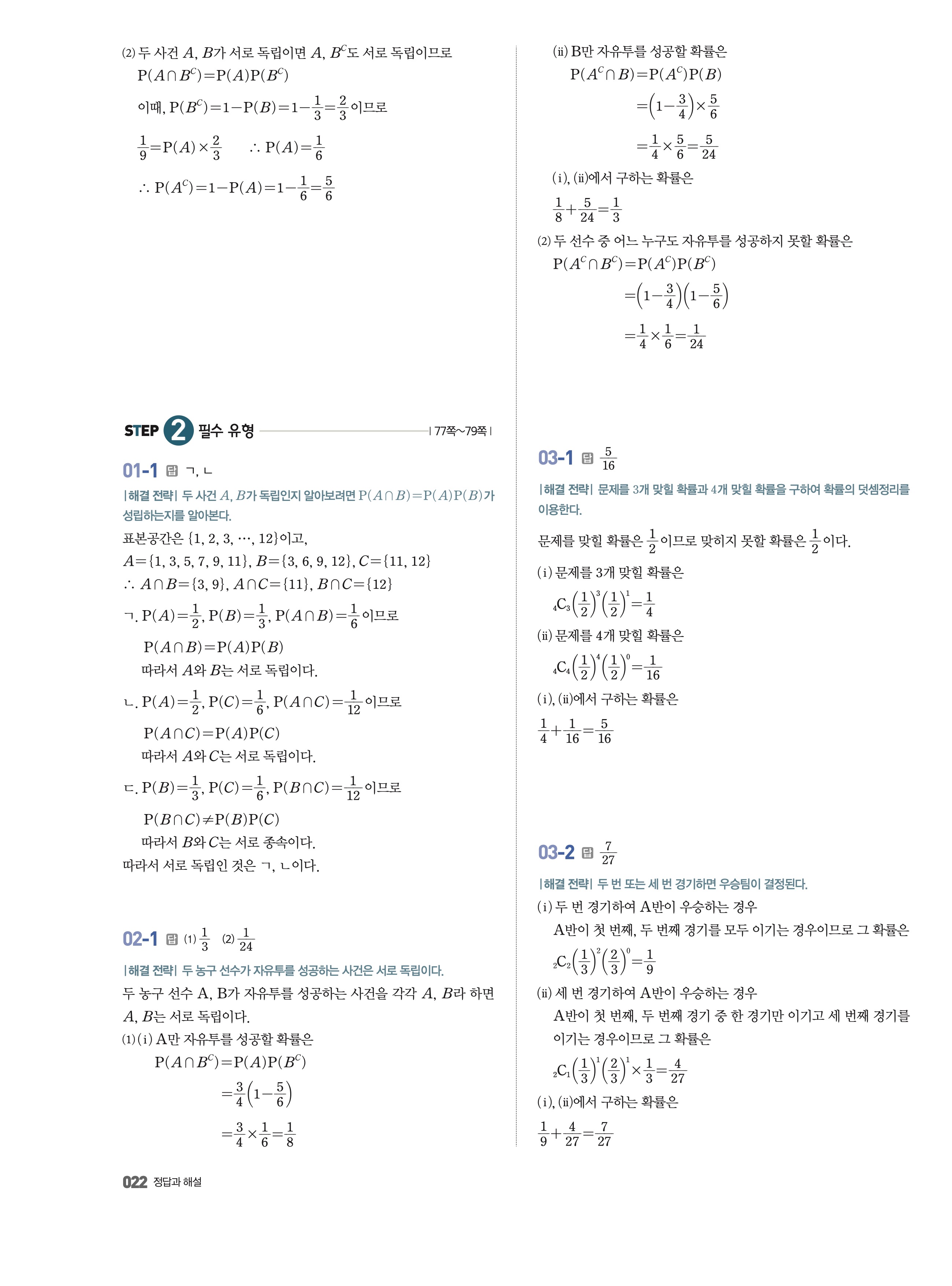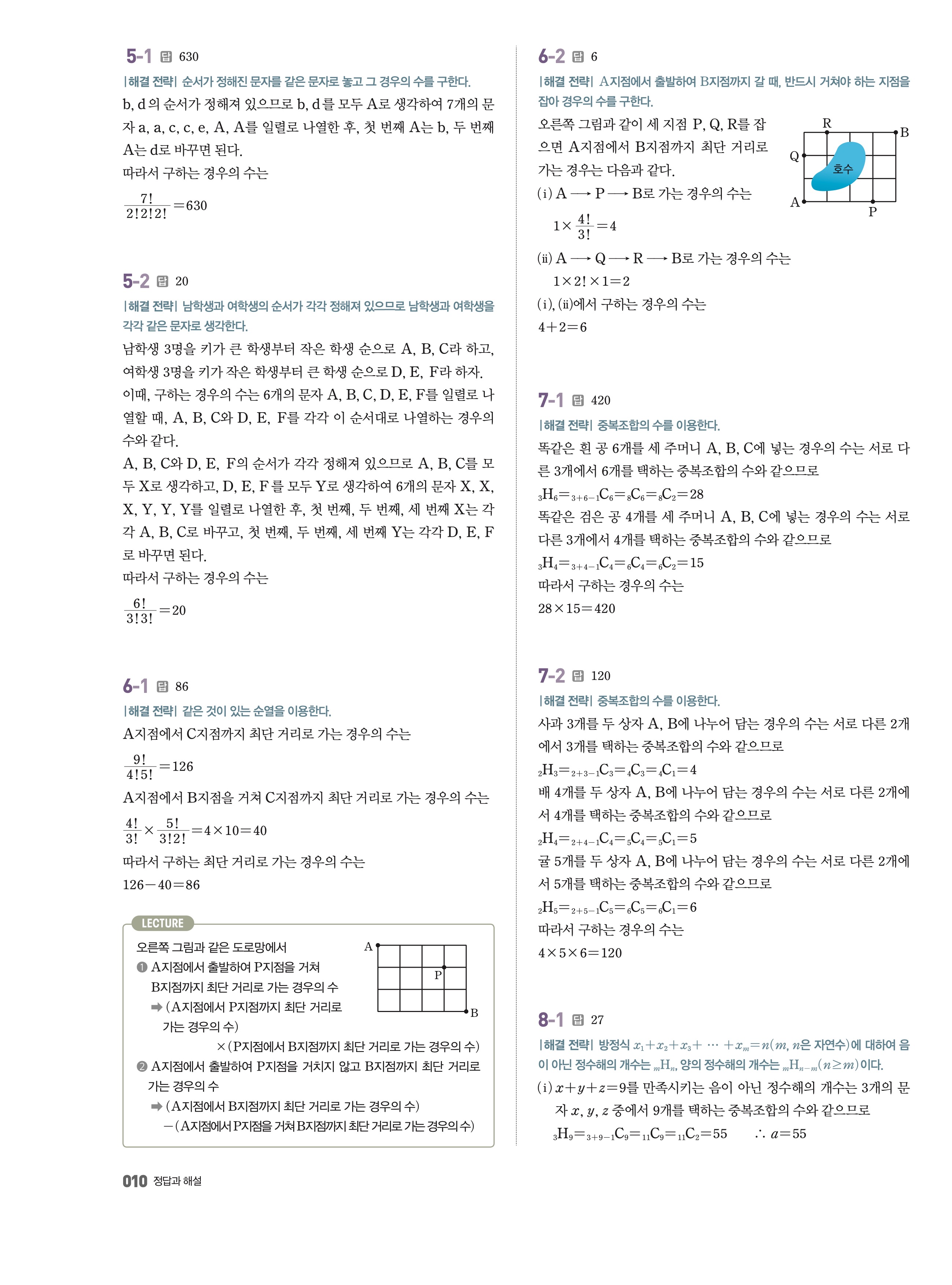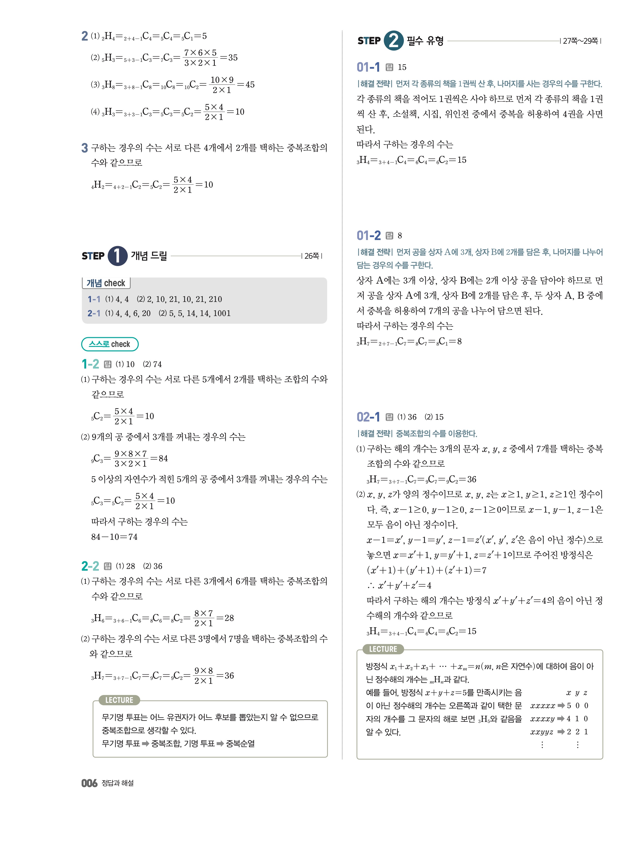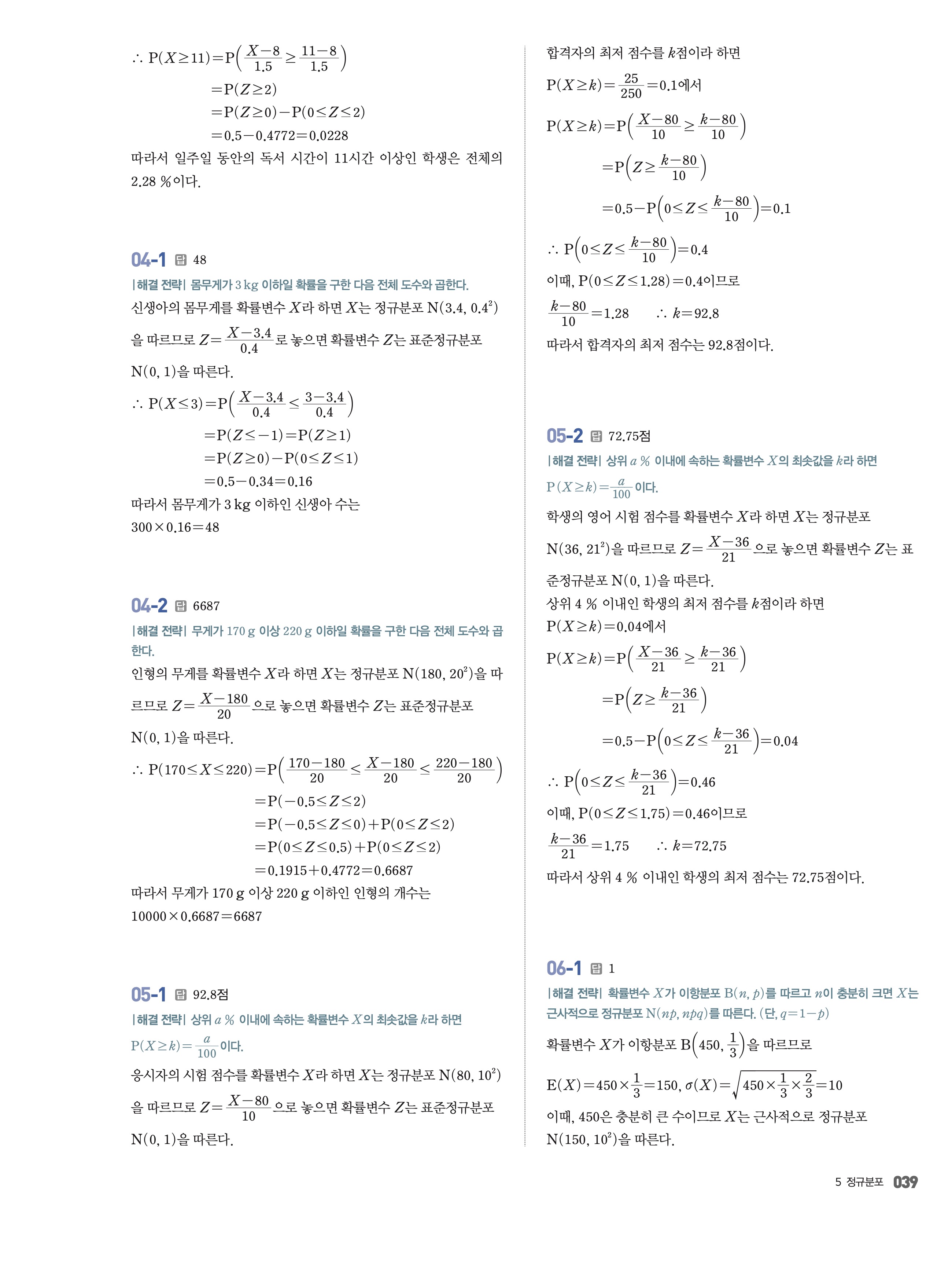 고등개념해결의법칙 확률과통계 답지 해설 바로보는 사진답지 빠른답지 모바일최적화