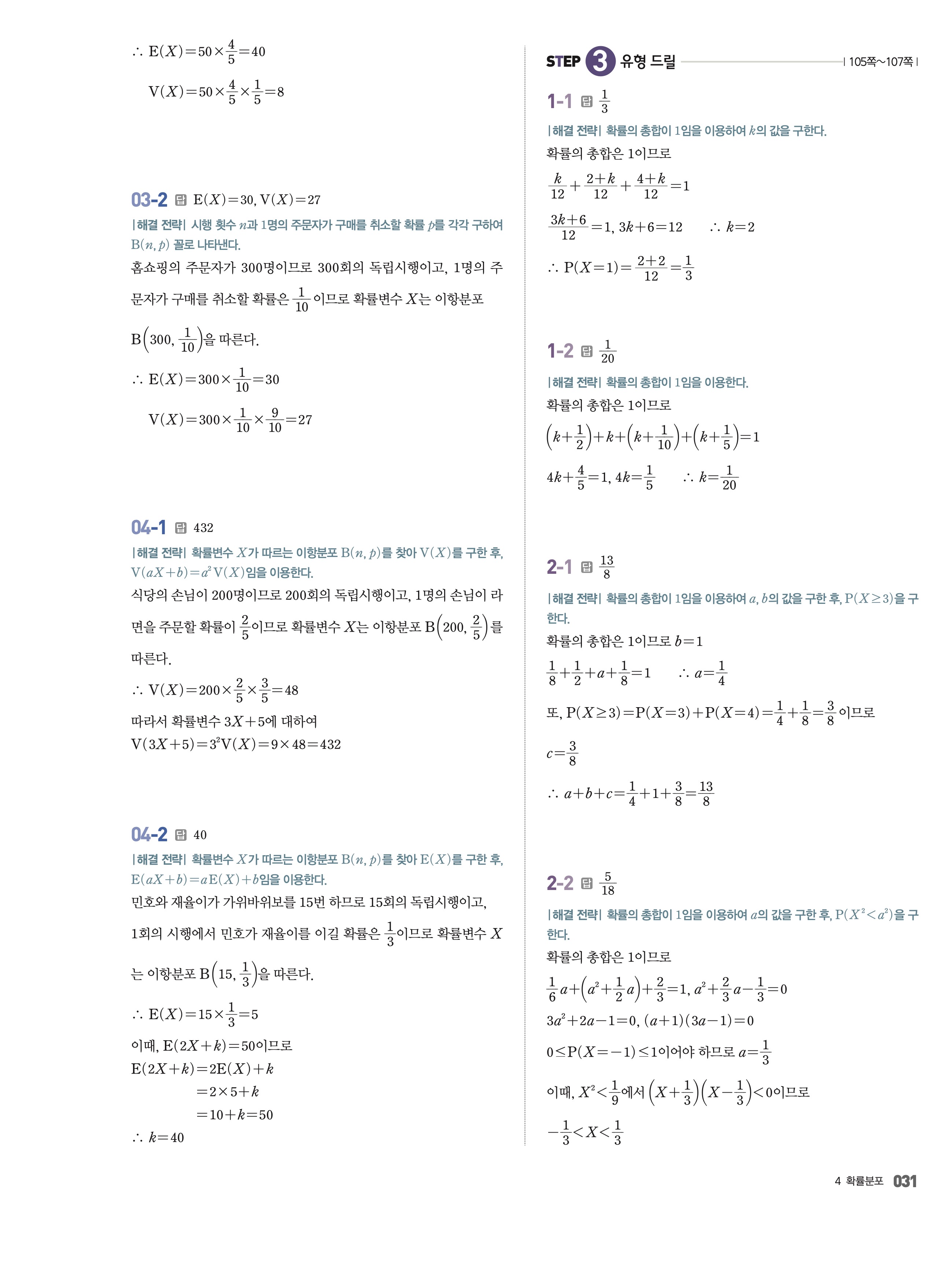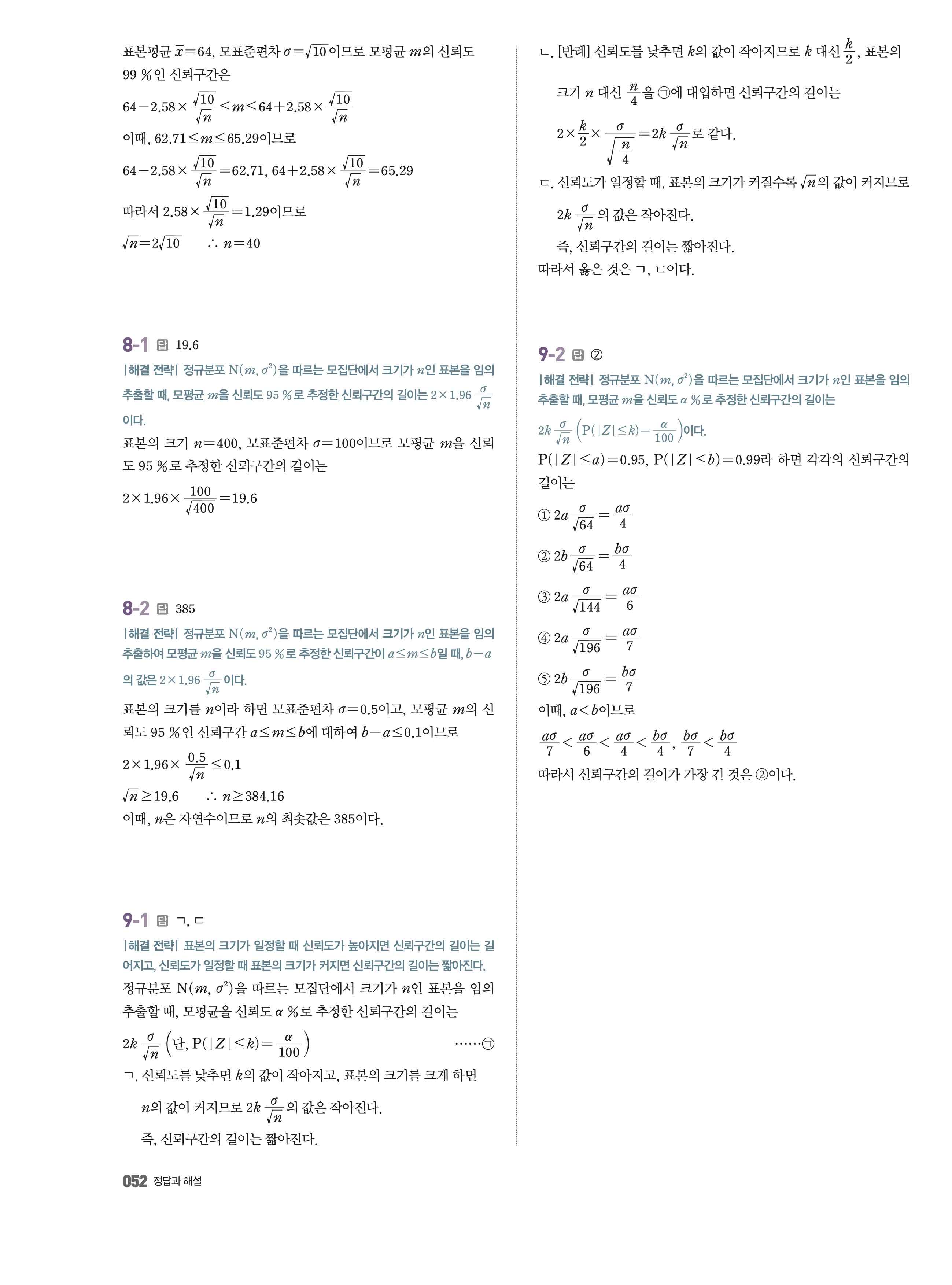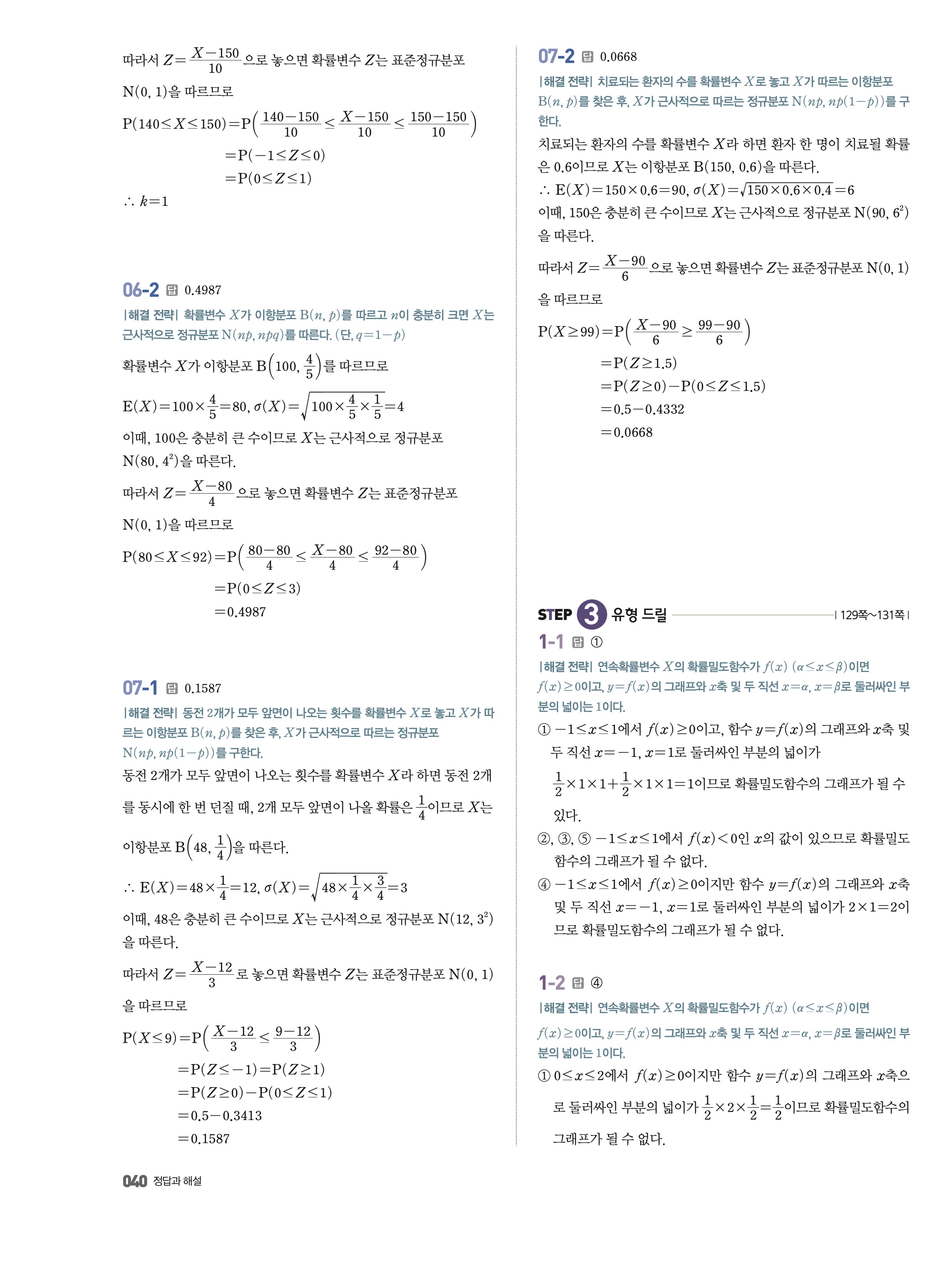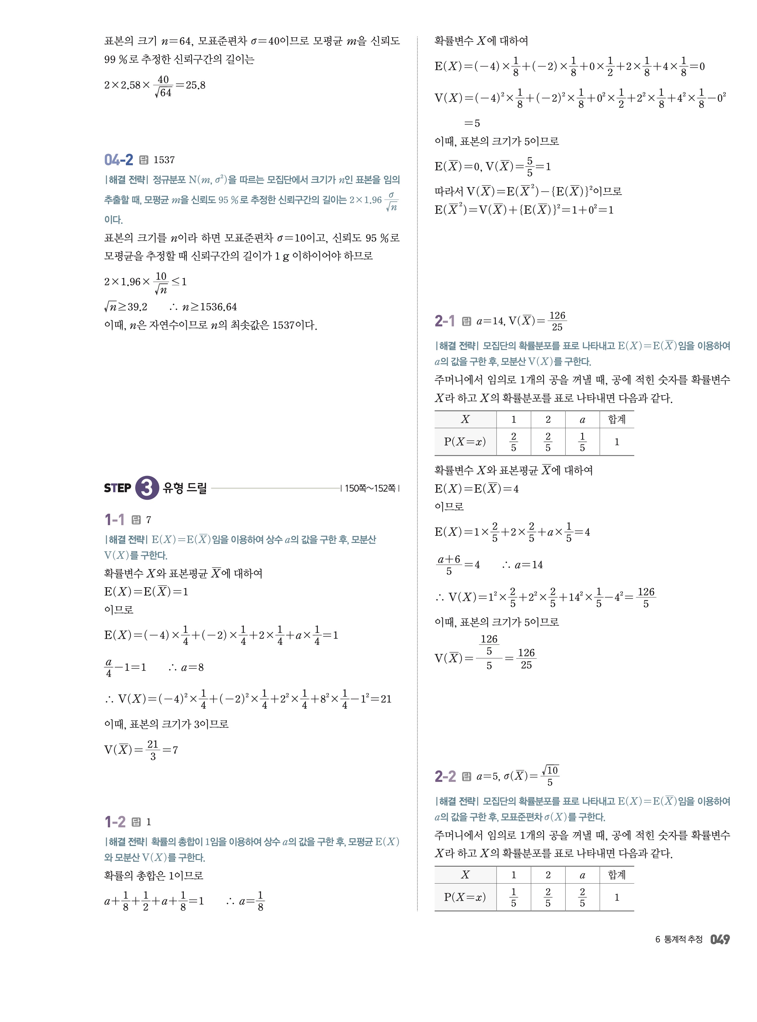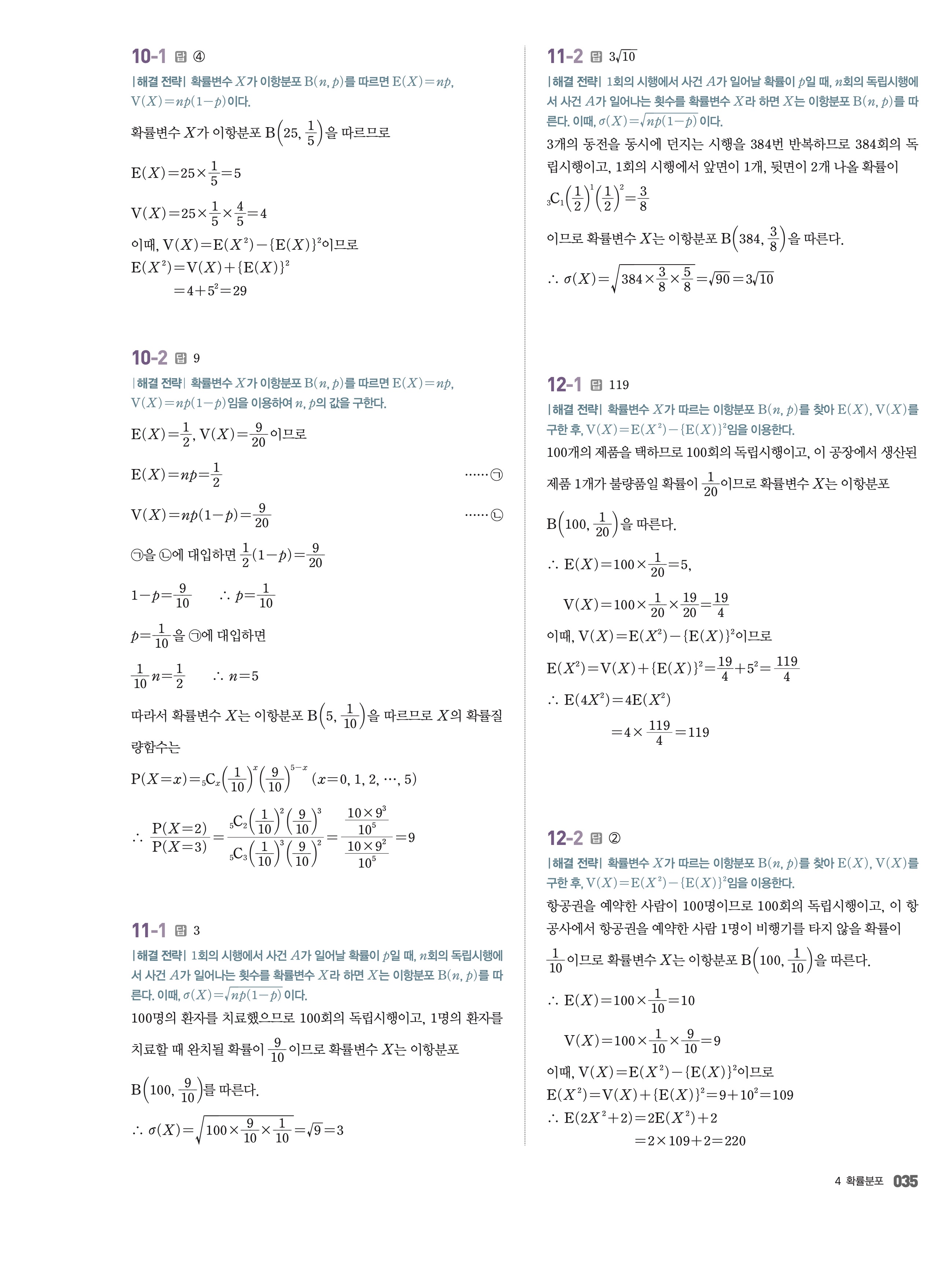 고등개념해결의법칙 확률과통계 답지 해설 바로보는 사진답지 빠른답지 모바일최적화