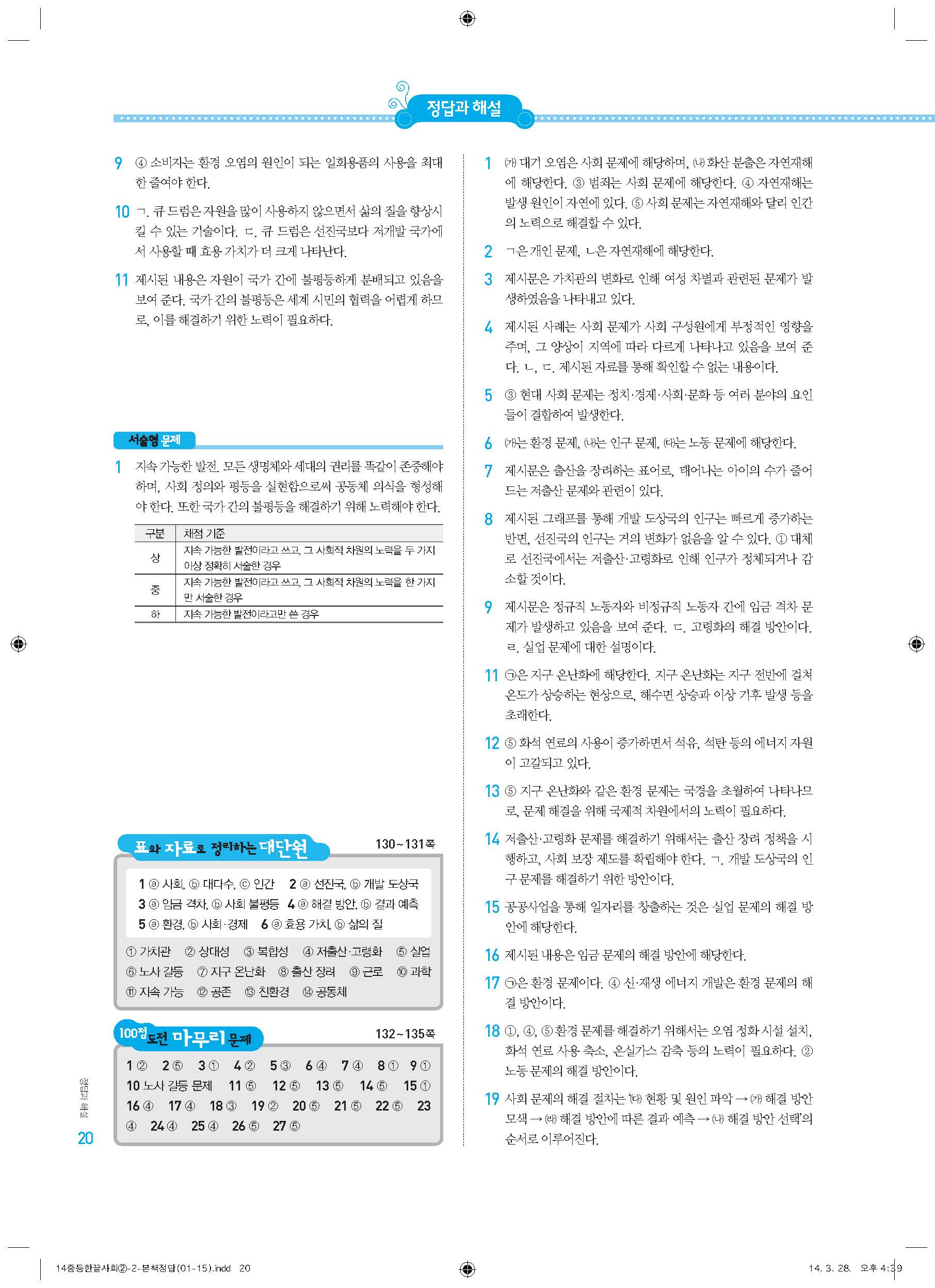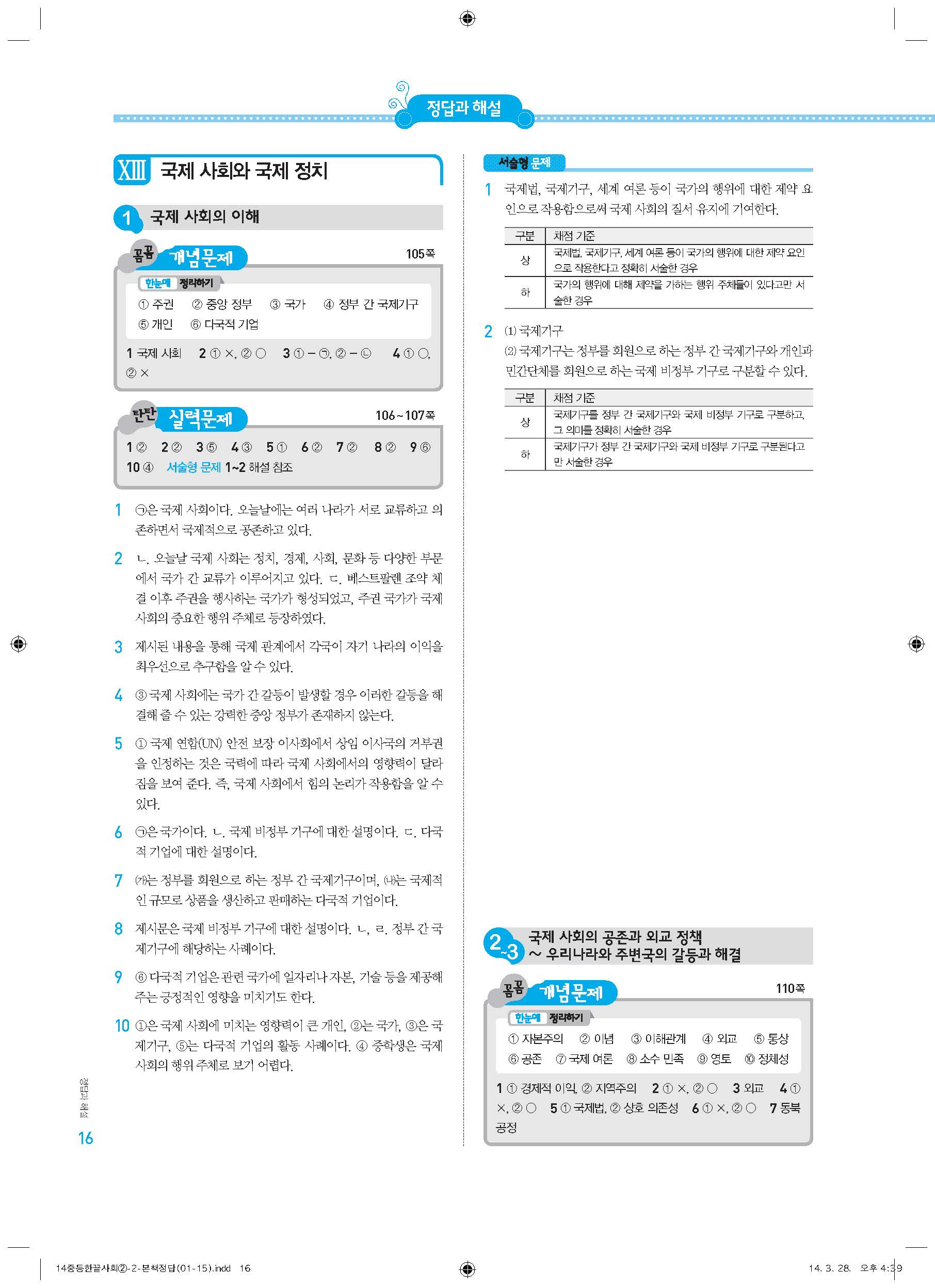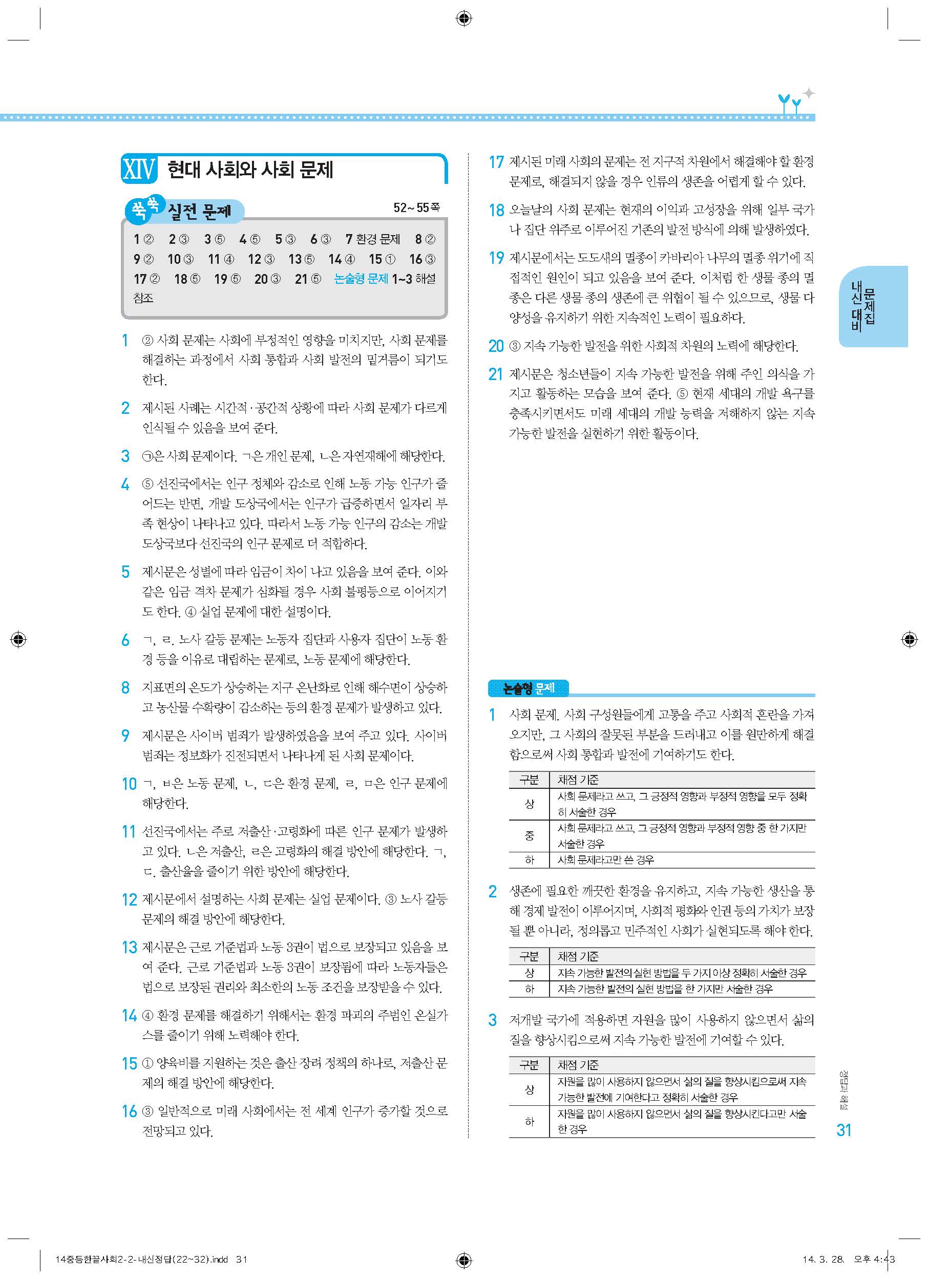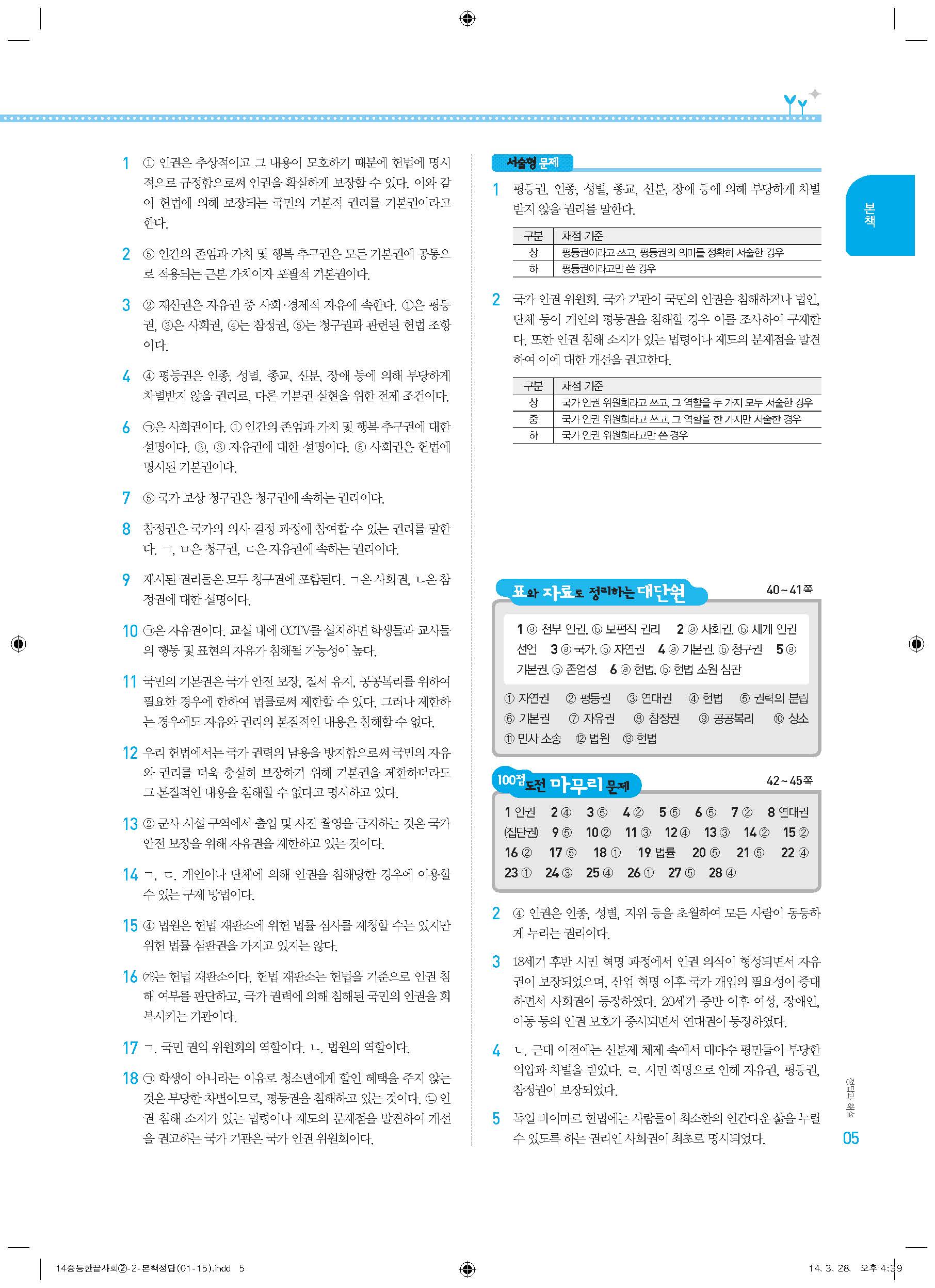 한끝 통합 중등사회 2-2 답지 해설 바로보는 사진답지 빠른답지 모바일최적화
