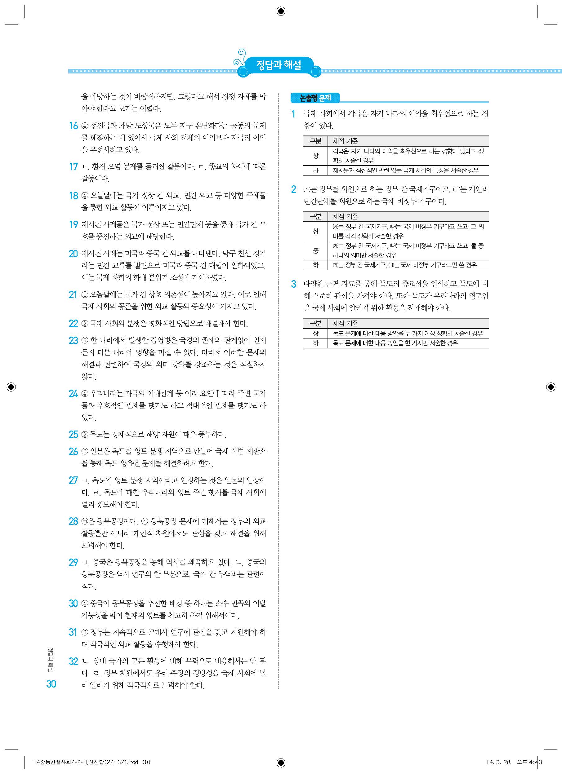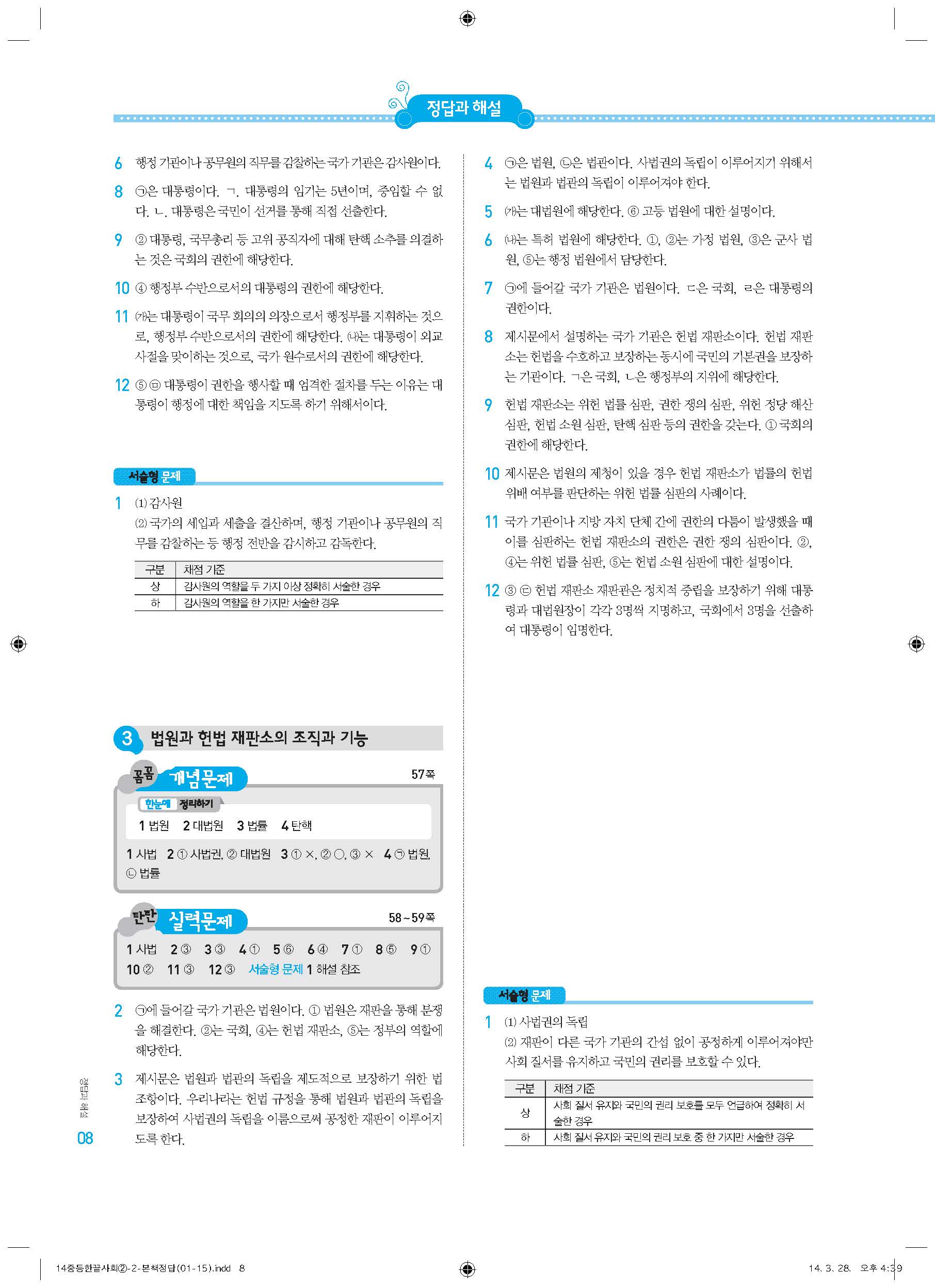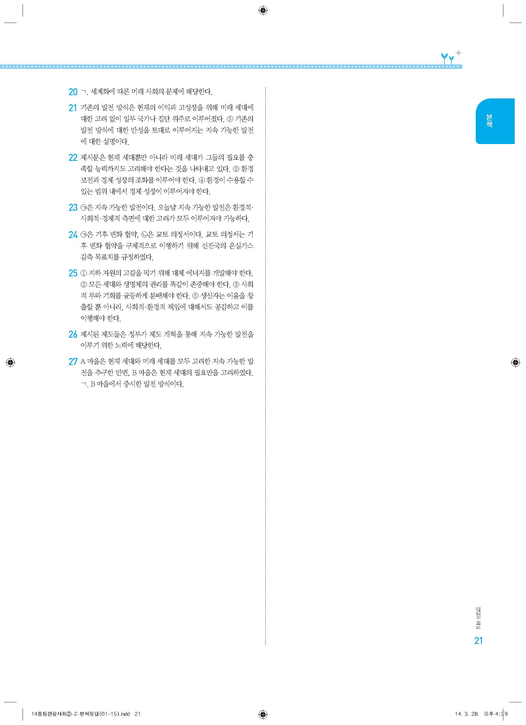 한끝 통합 중등사회 2-2 답지 해설 바로보는 사진답지 빠른답지 모바일최적화