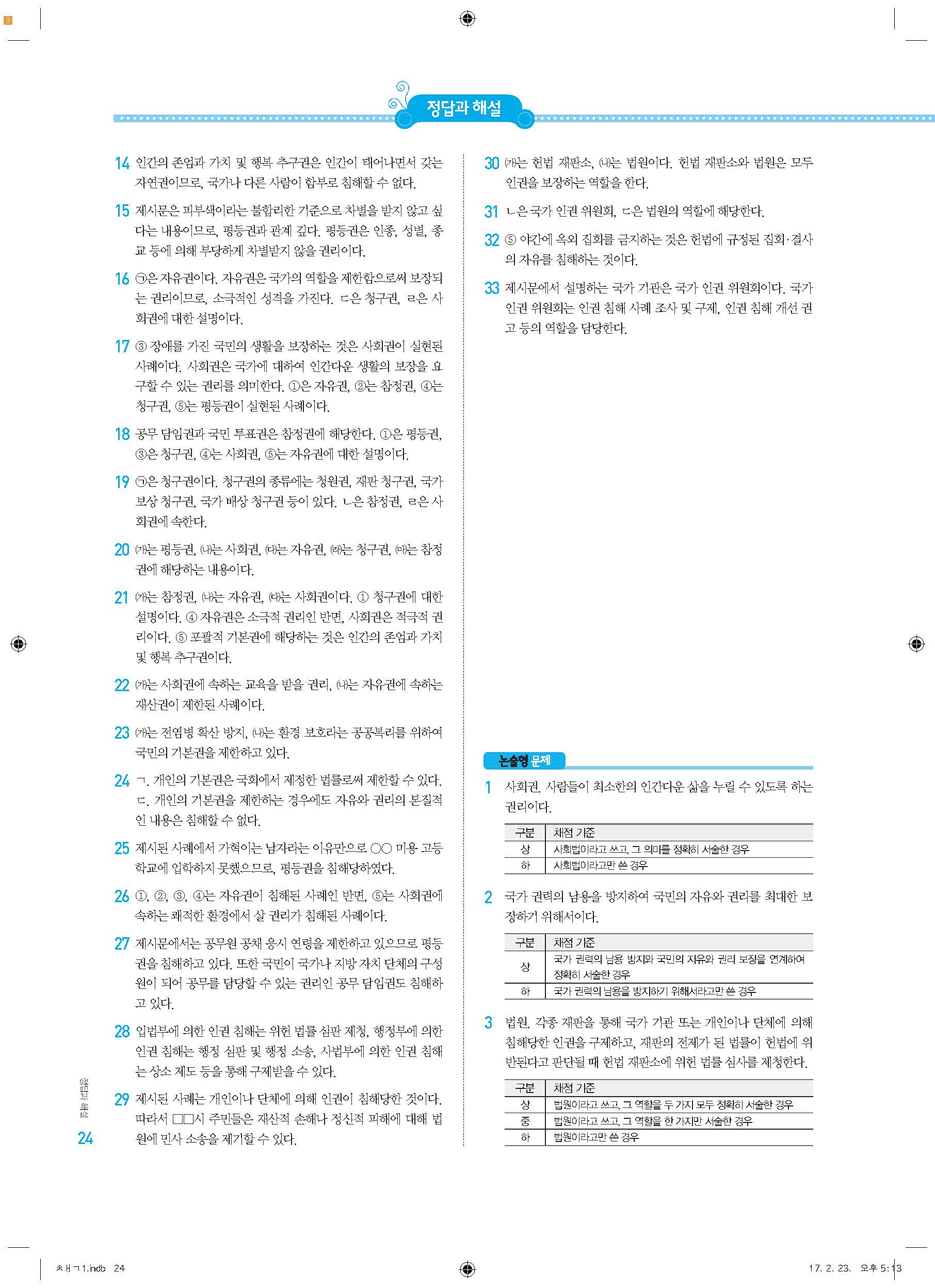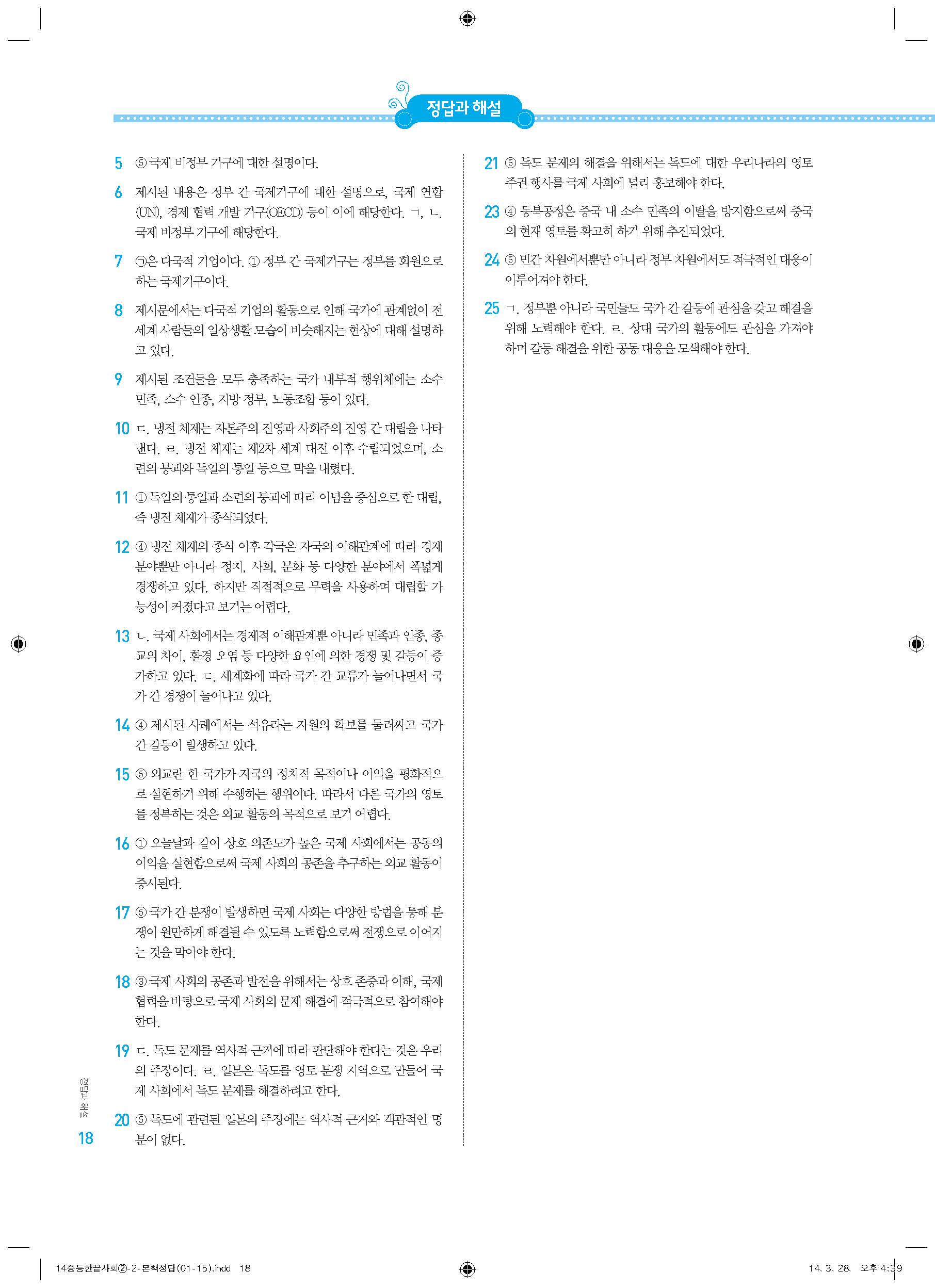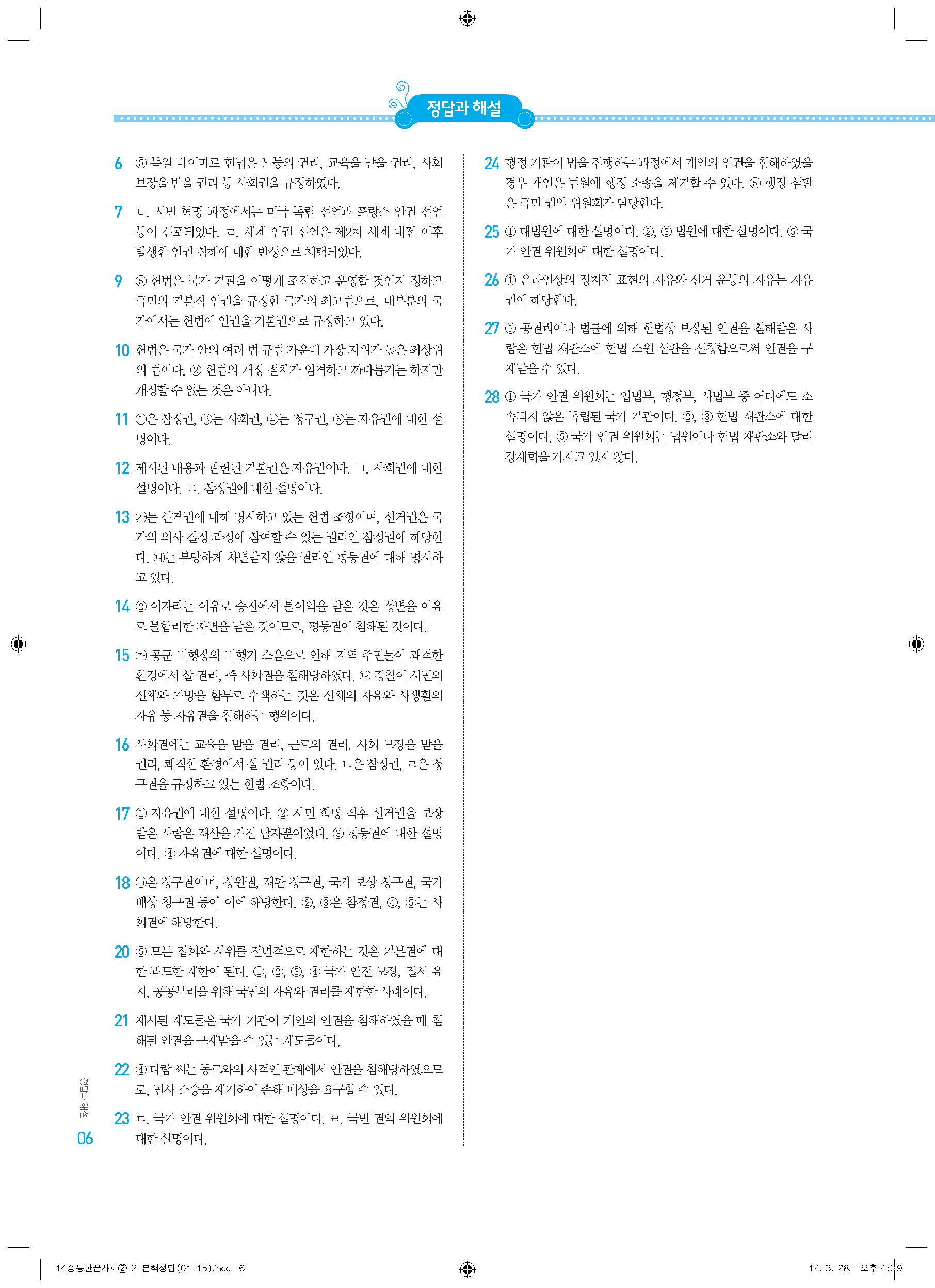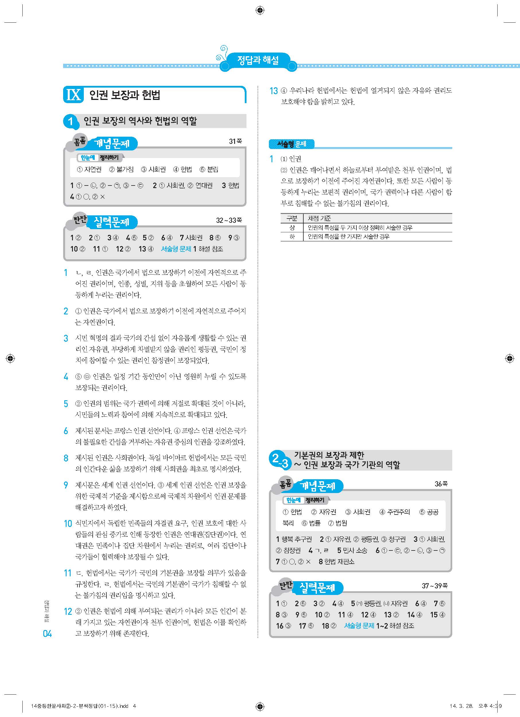 한끝 통합 중등사회 2-2 답지 해설 바로보는 사진답지 빠른답지 모바일최적화