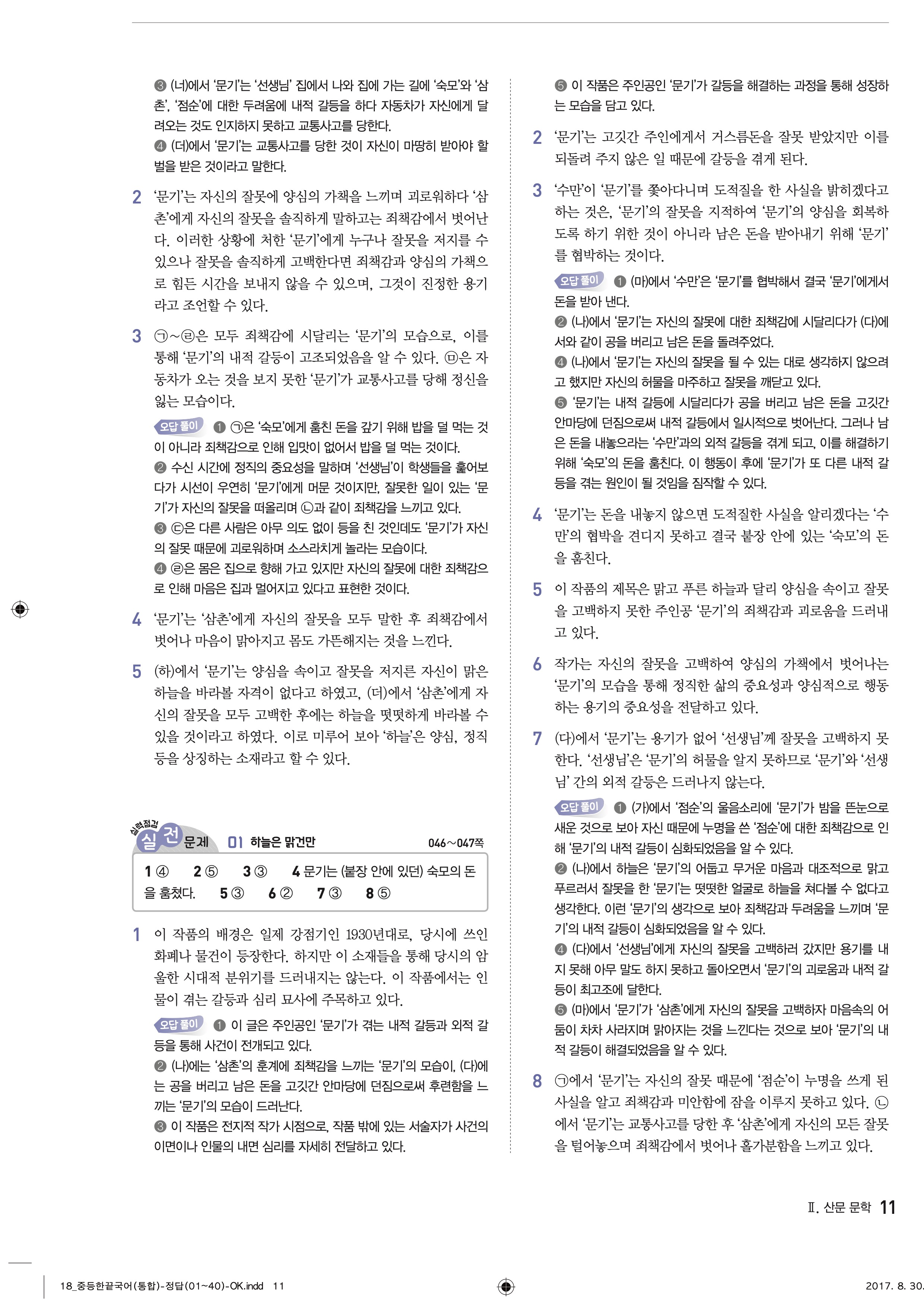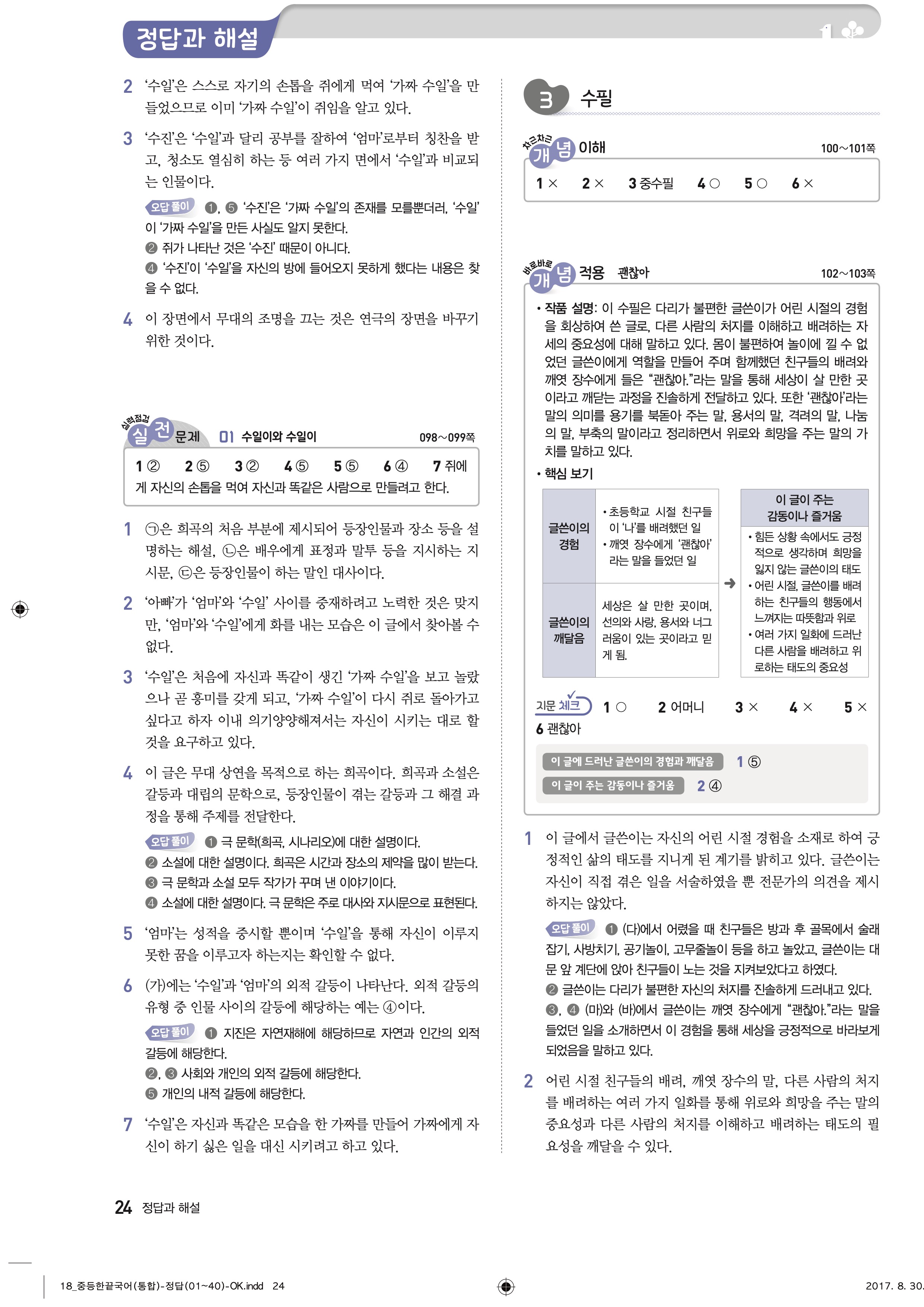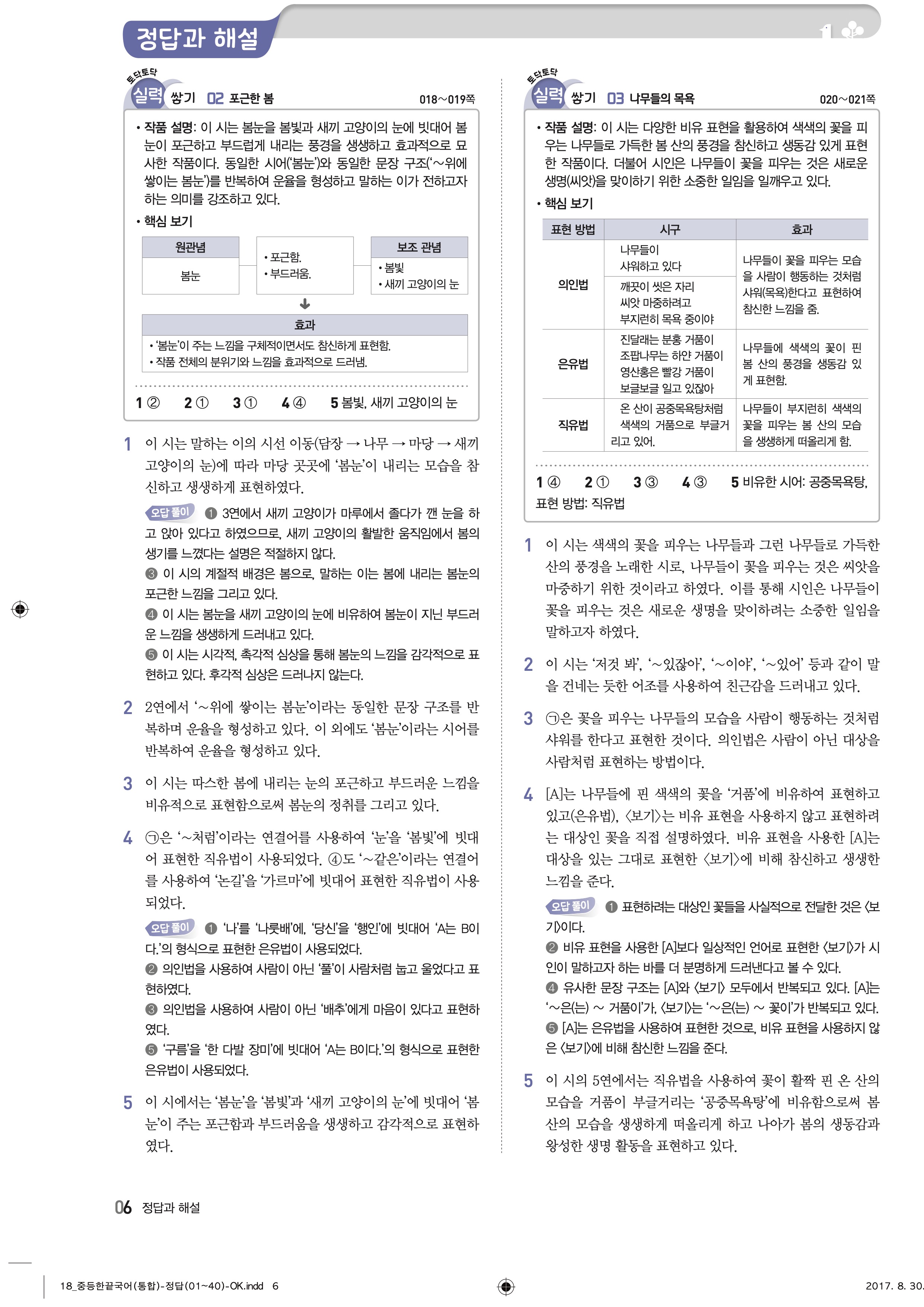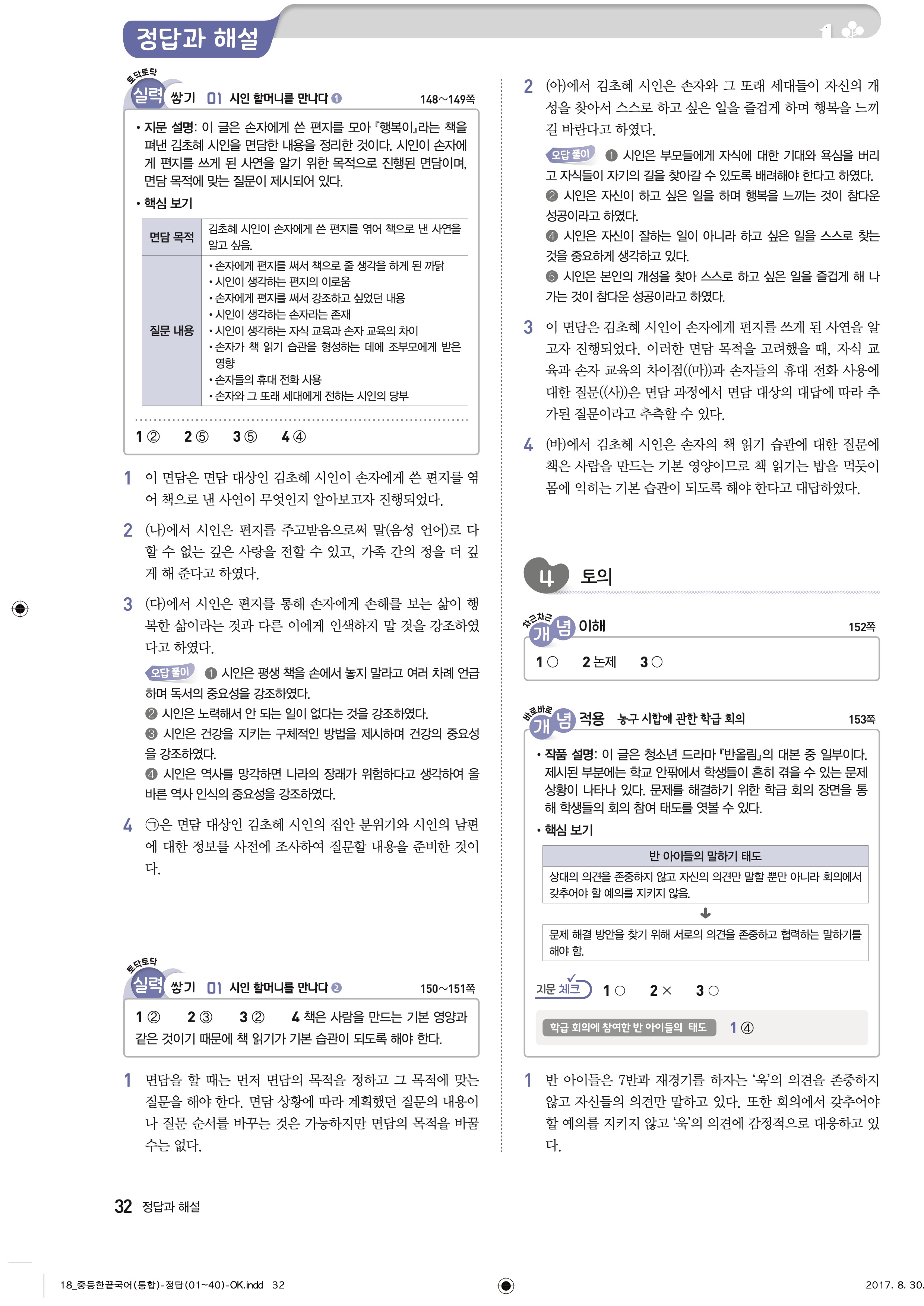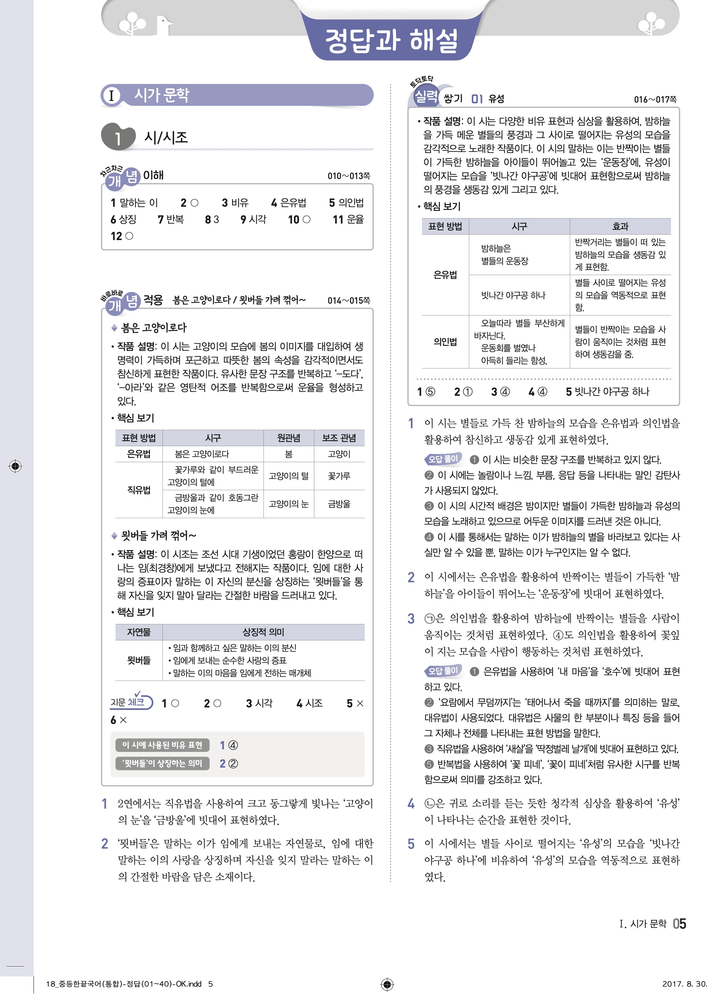 한끝 중등국어 통합편 1-1 답지 해설 바로보는 사진답지 빠른답지 모바일최적화