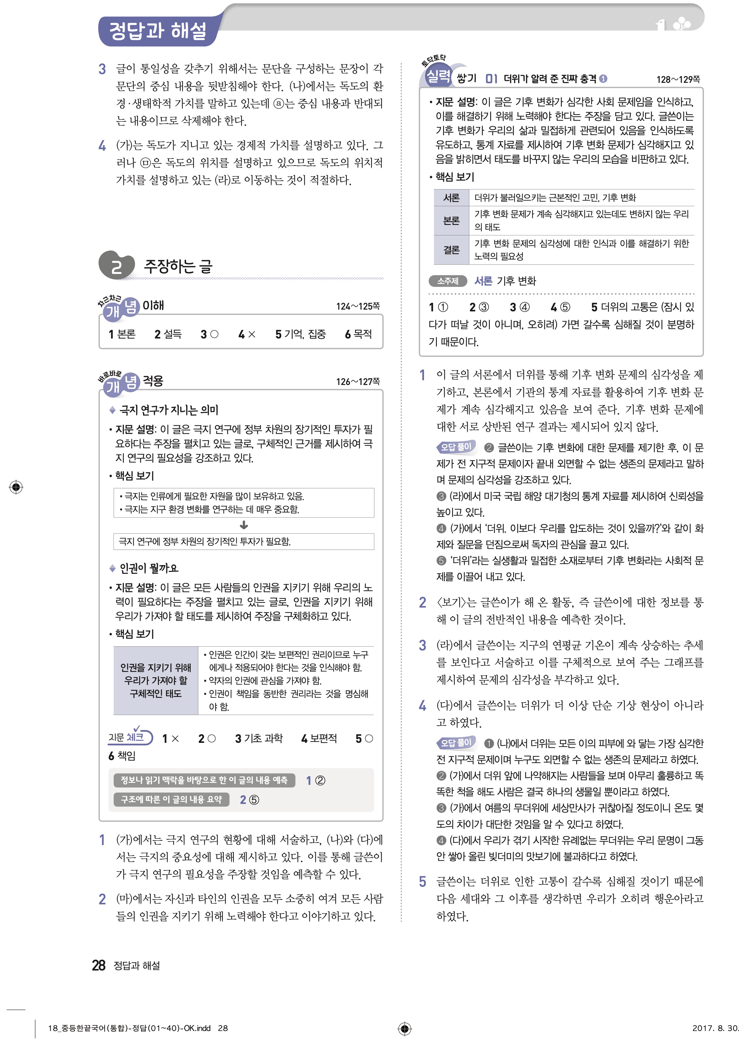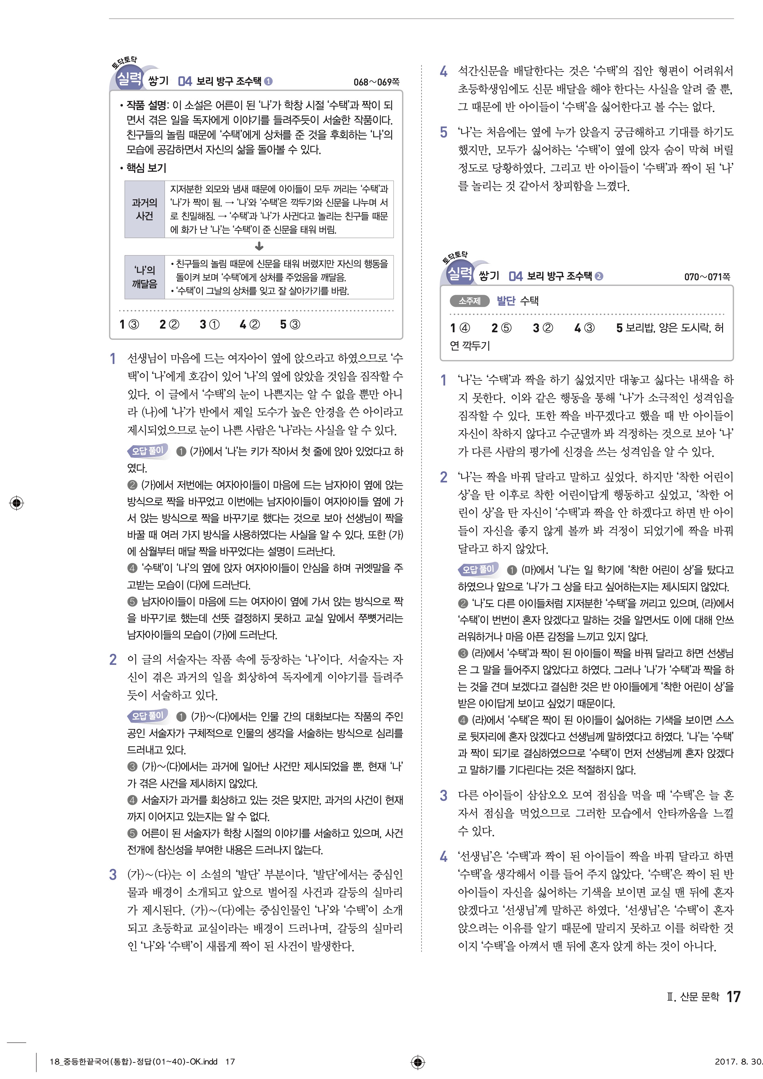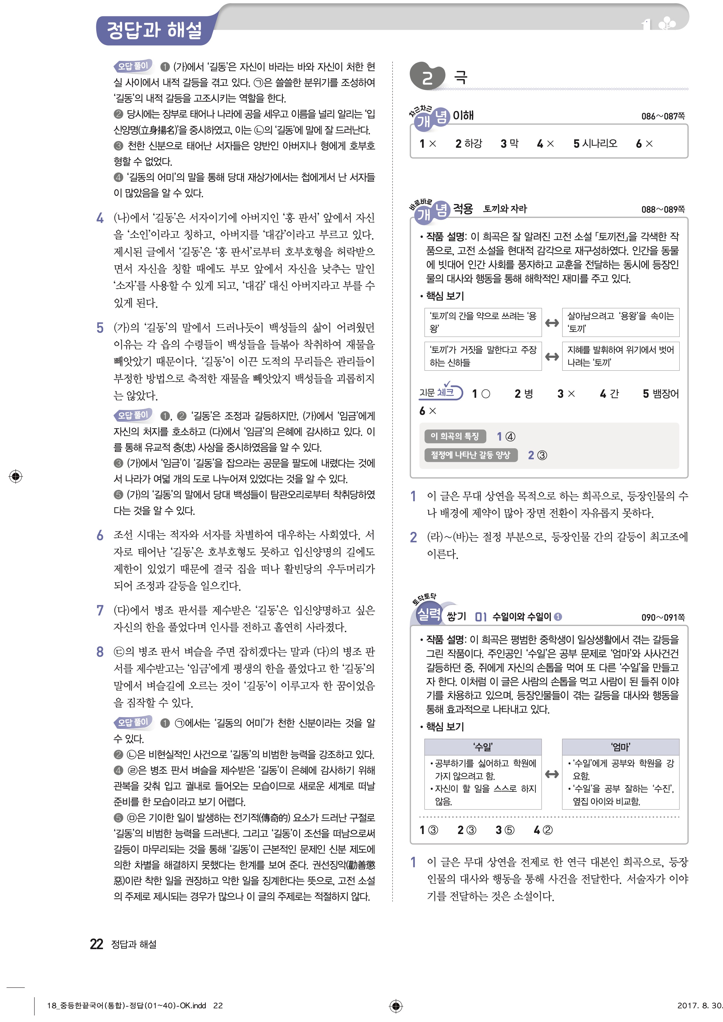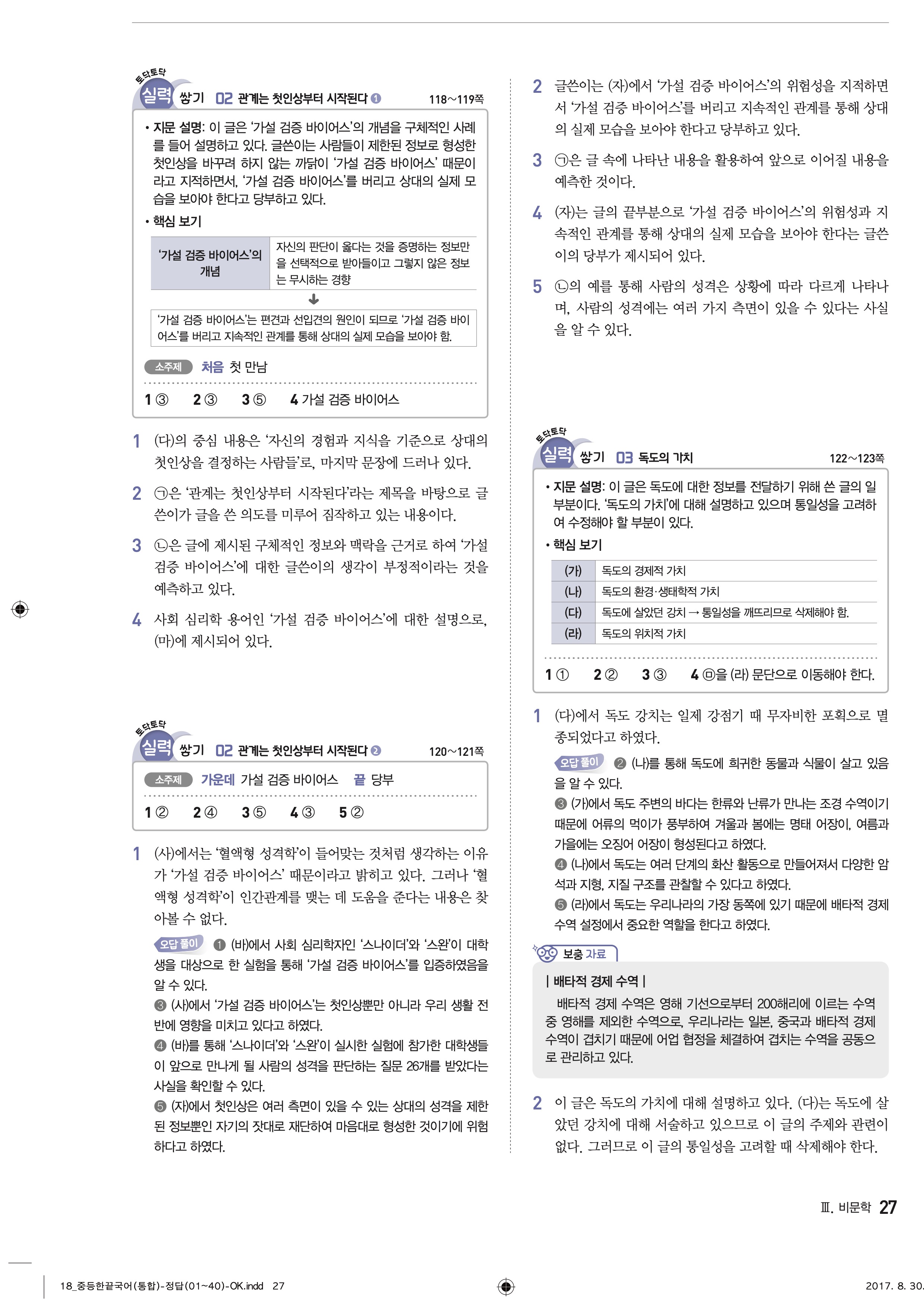한끝 중등국어 통합편 1-1 답지 해설 바로보는 사진답지 빠른답지 모바일최적화
