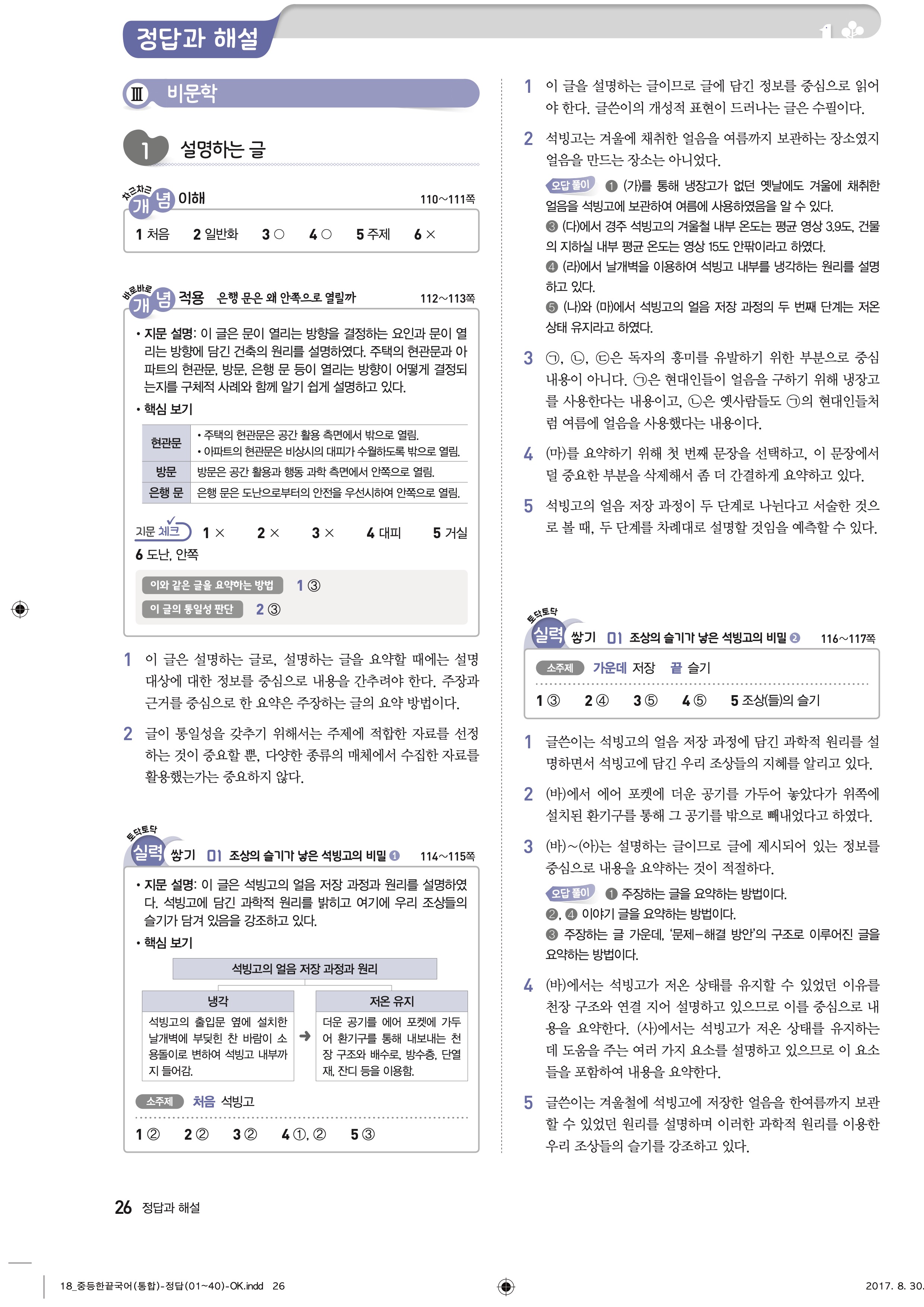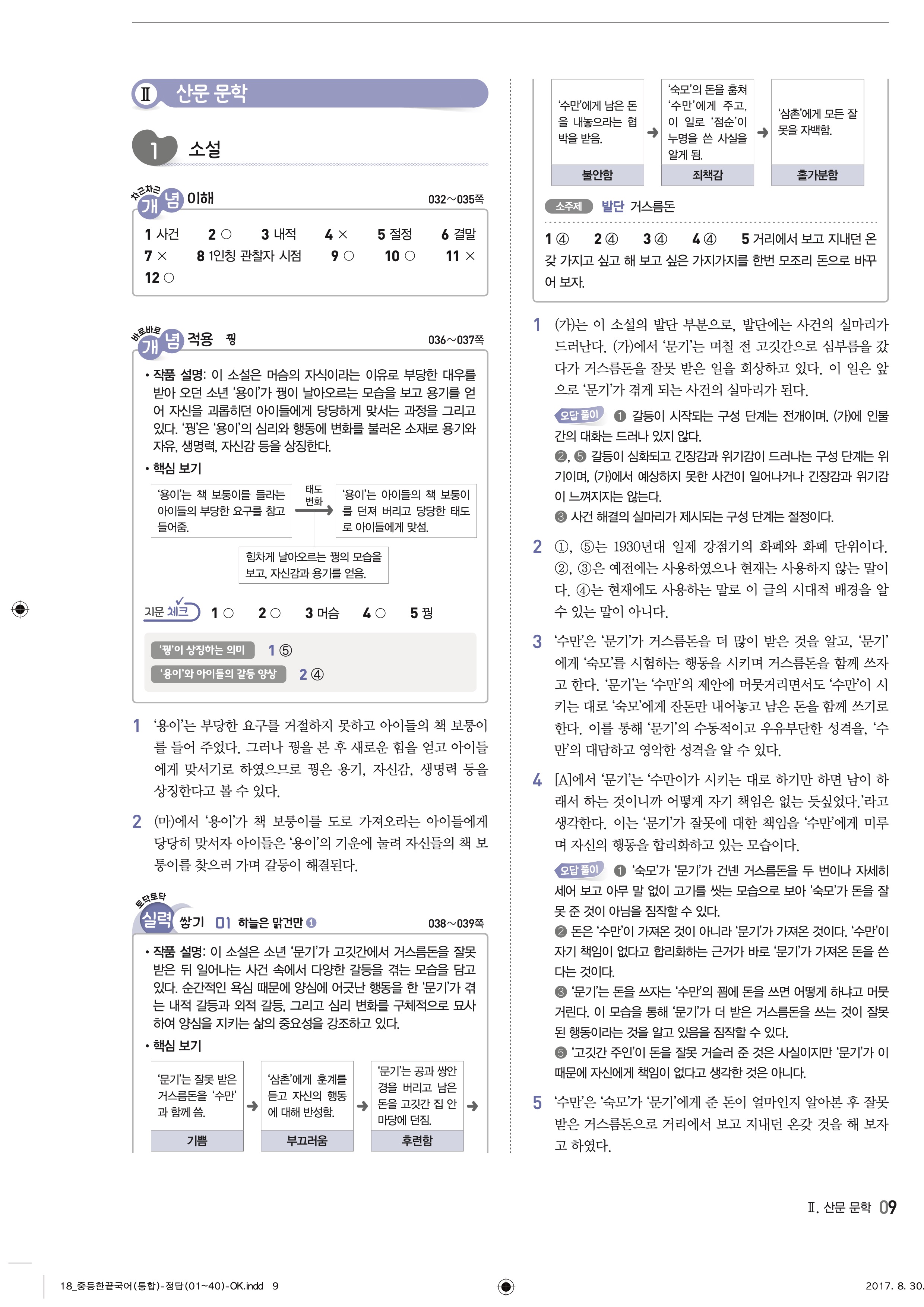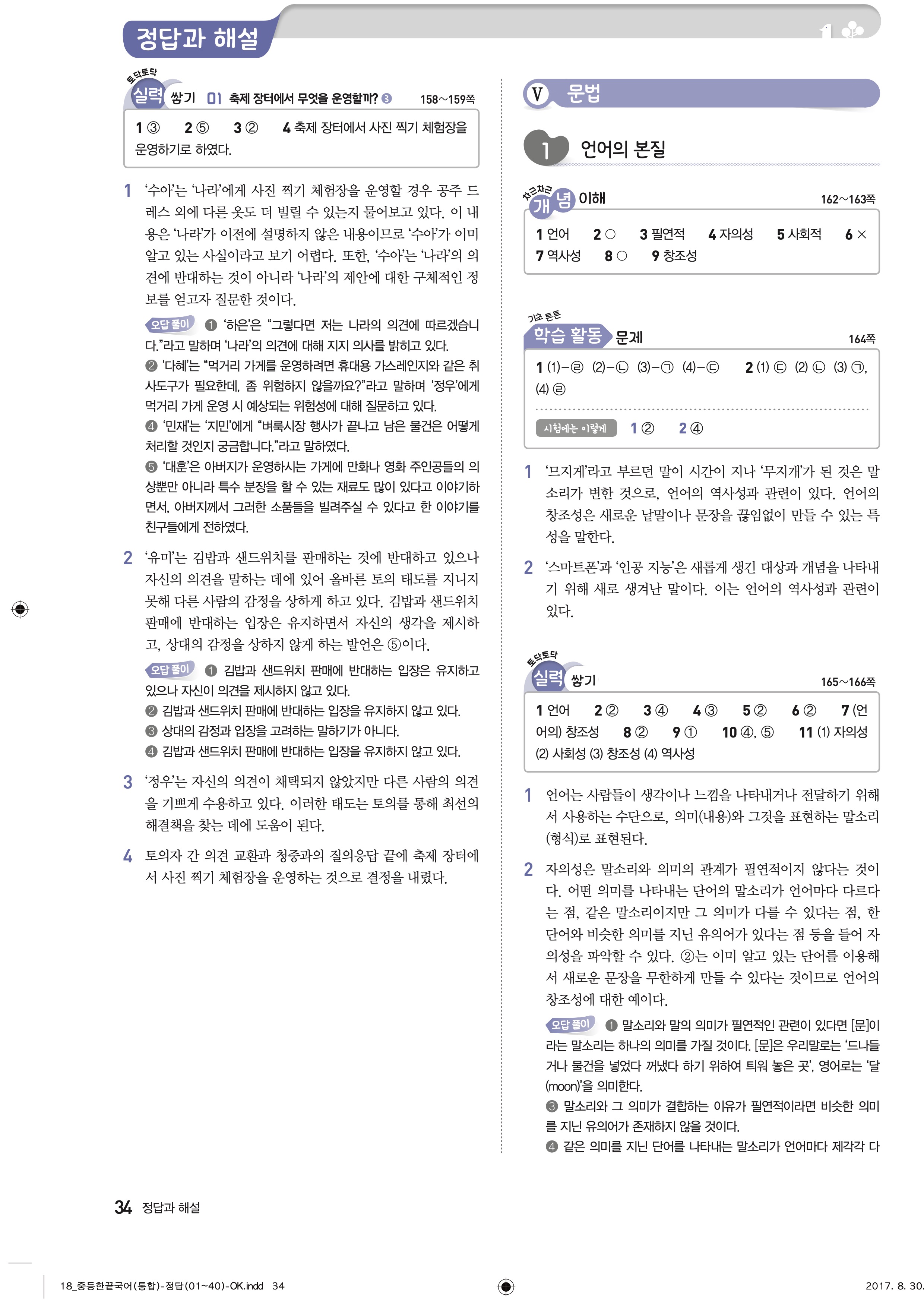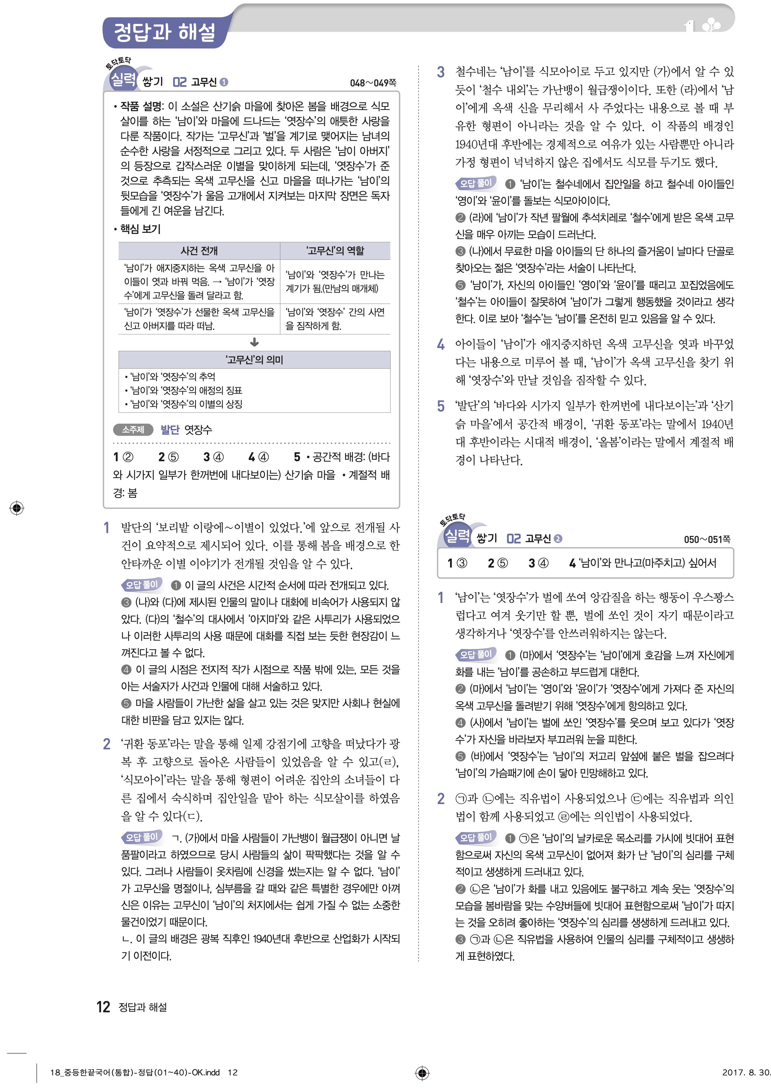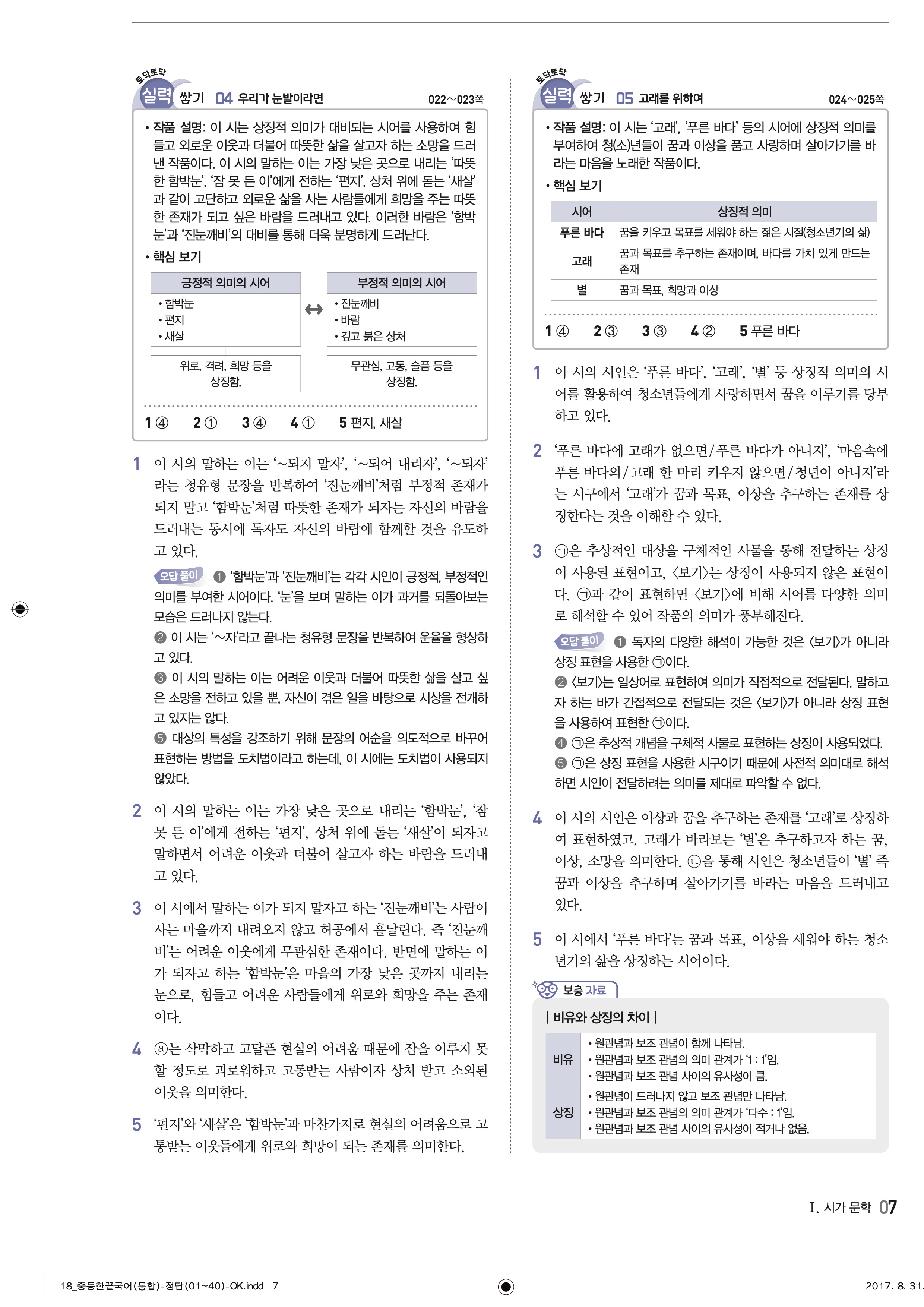 한끝 중등국어 통합편 1-1 답지 해설 바로보는 사진답지 빠른답지 모바일최적화