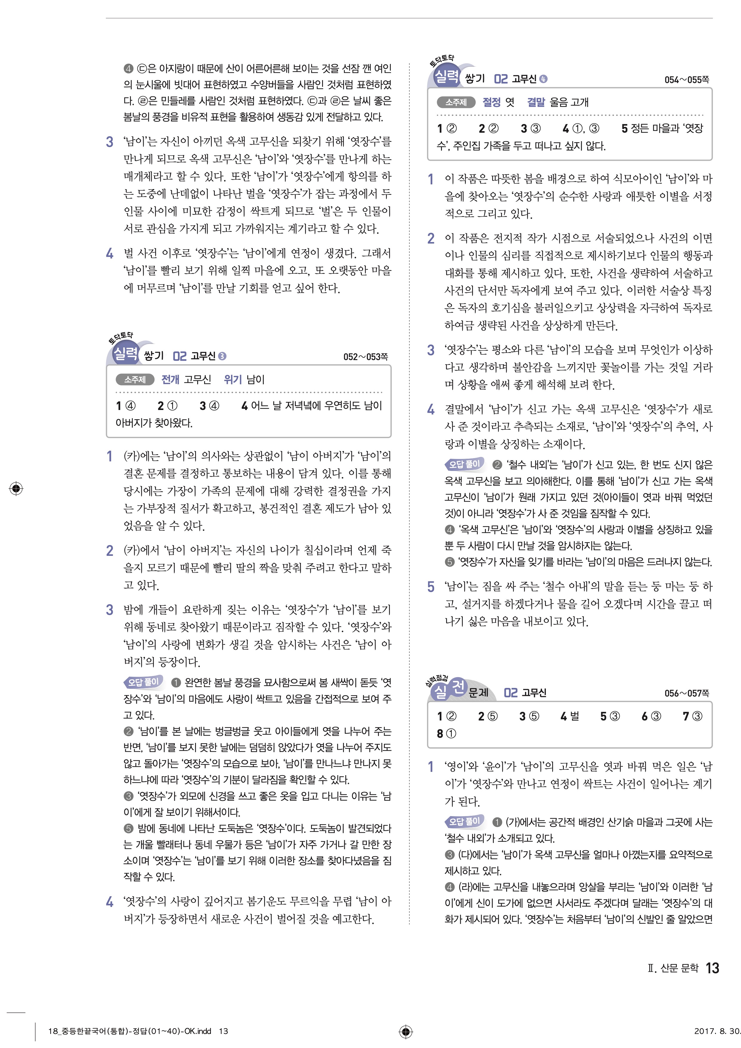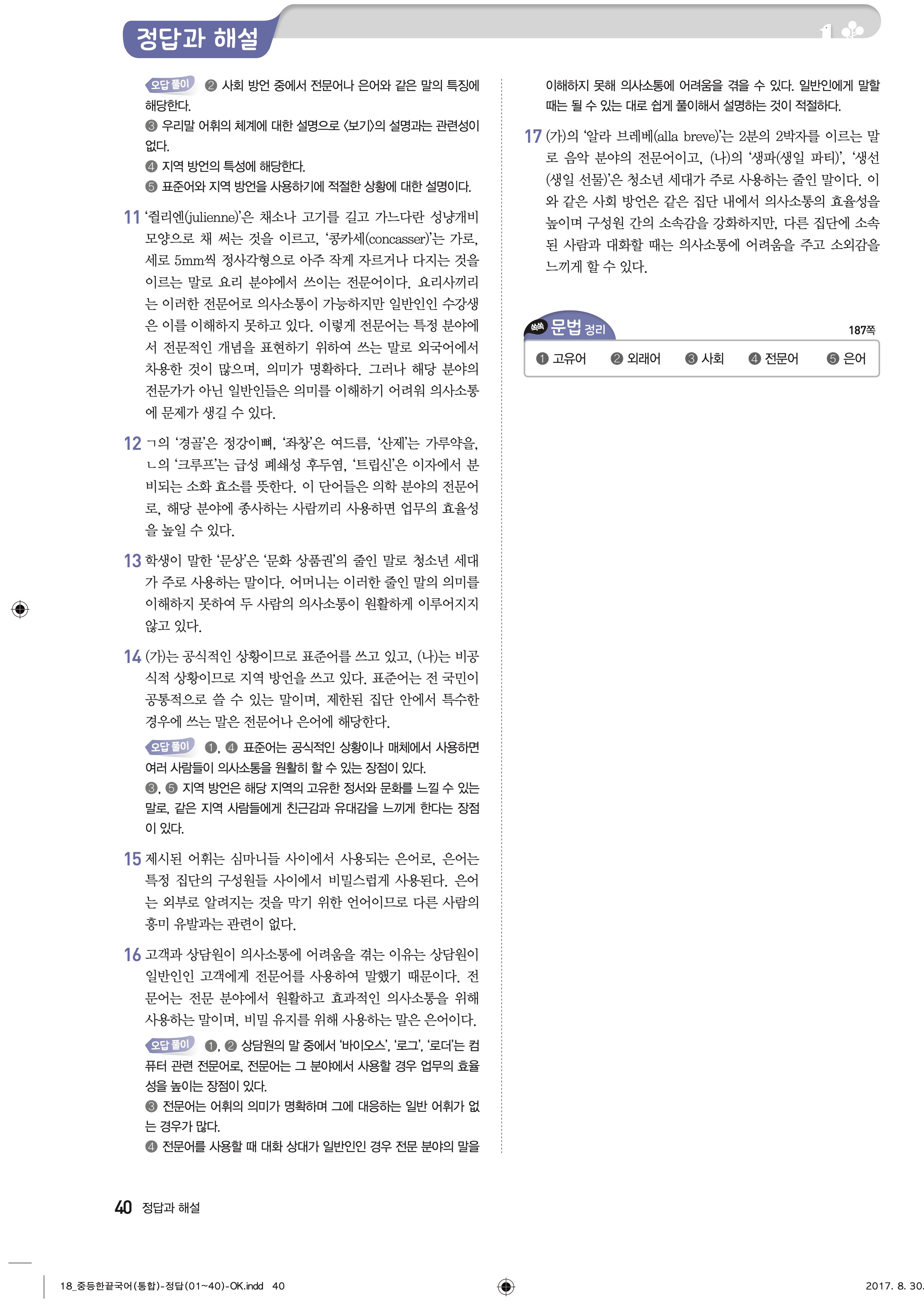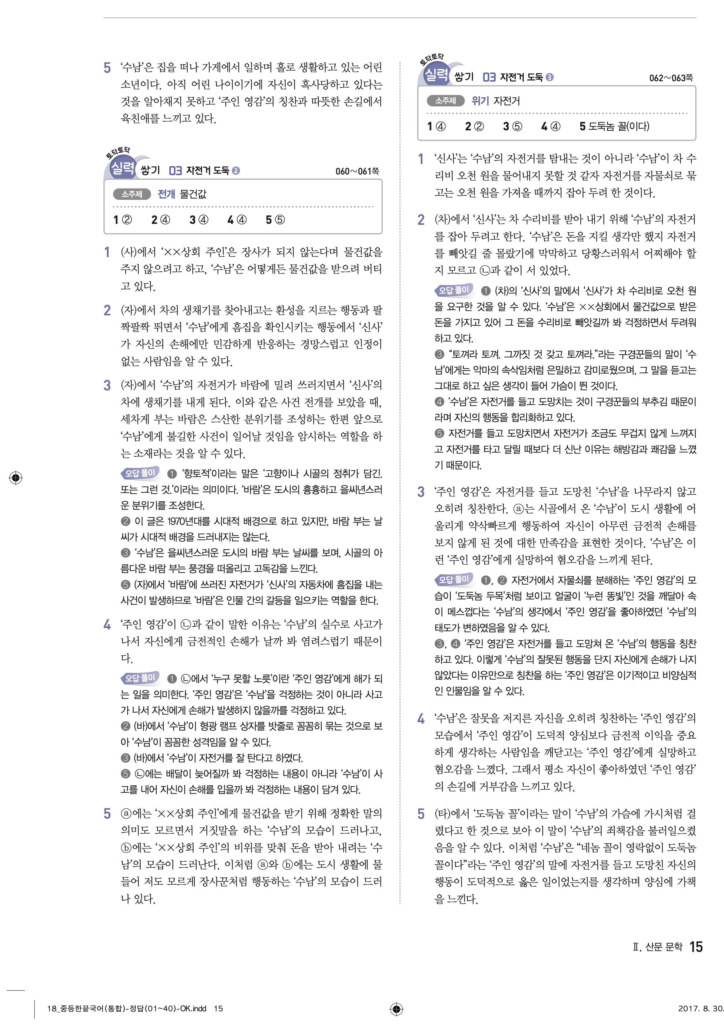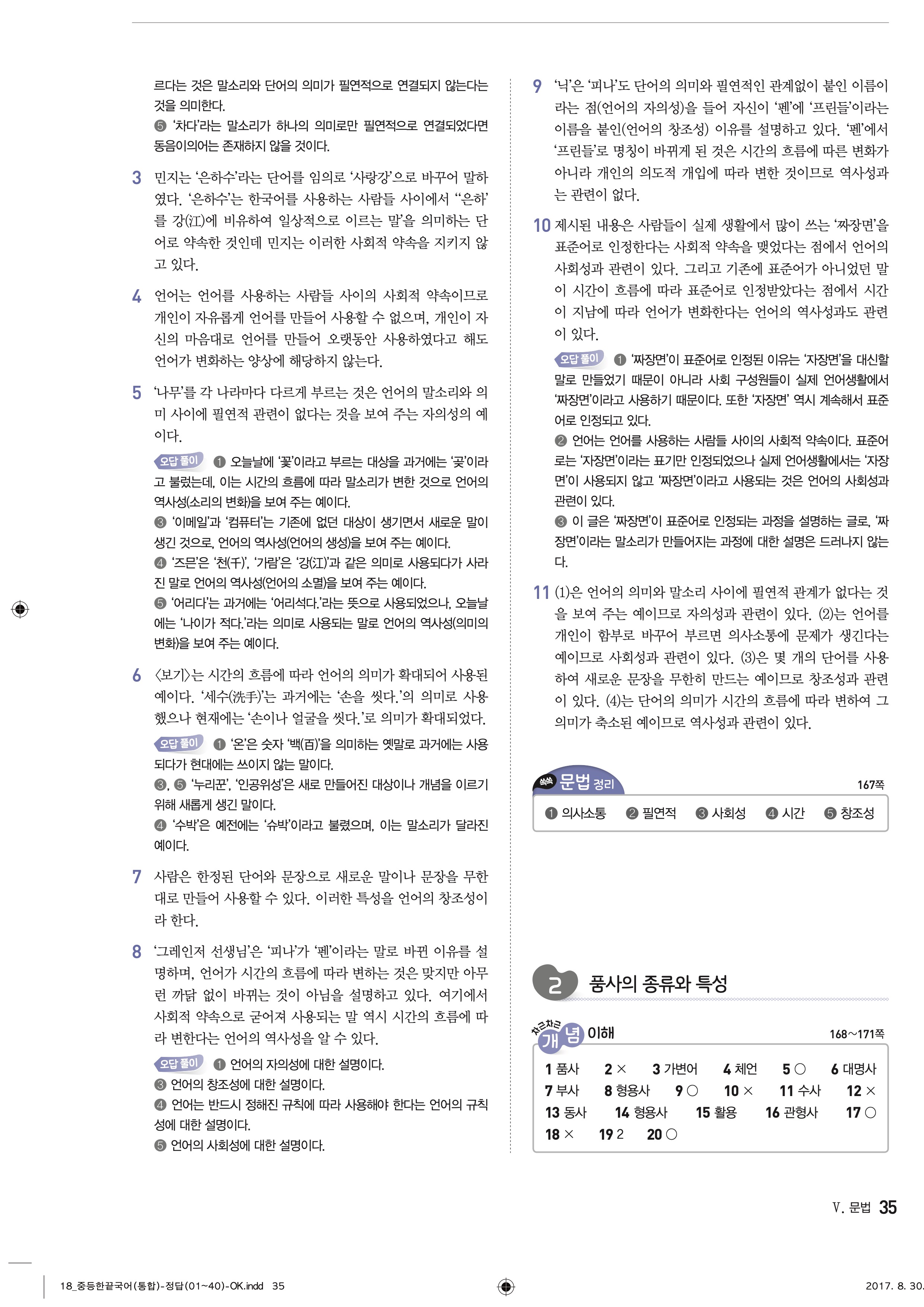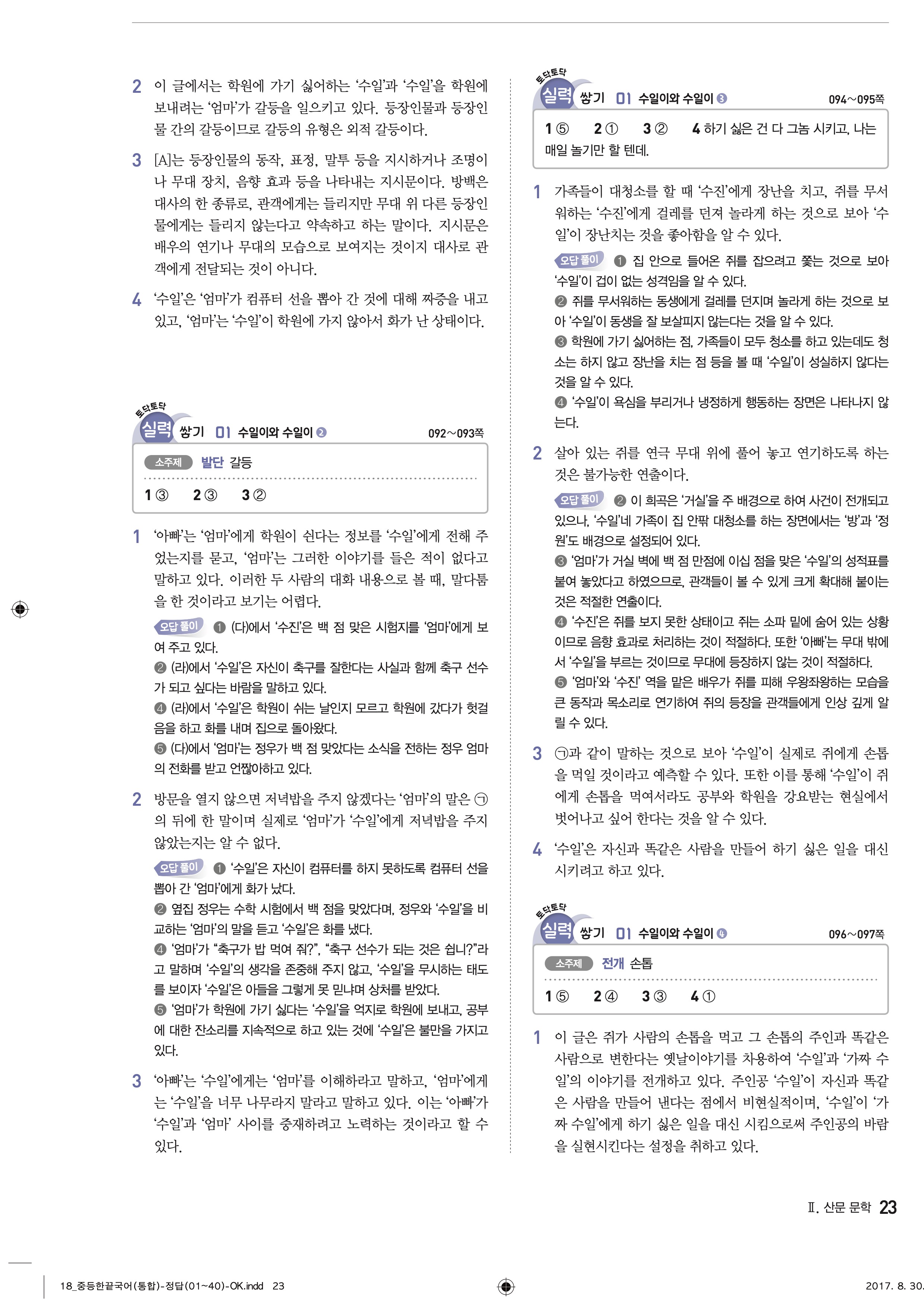 한끝 중등국어 통합편 1-1 답지 해설 바로보는 사진답지 빠른답지 모바일최적화