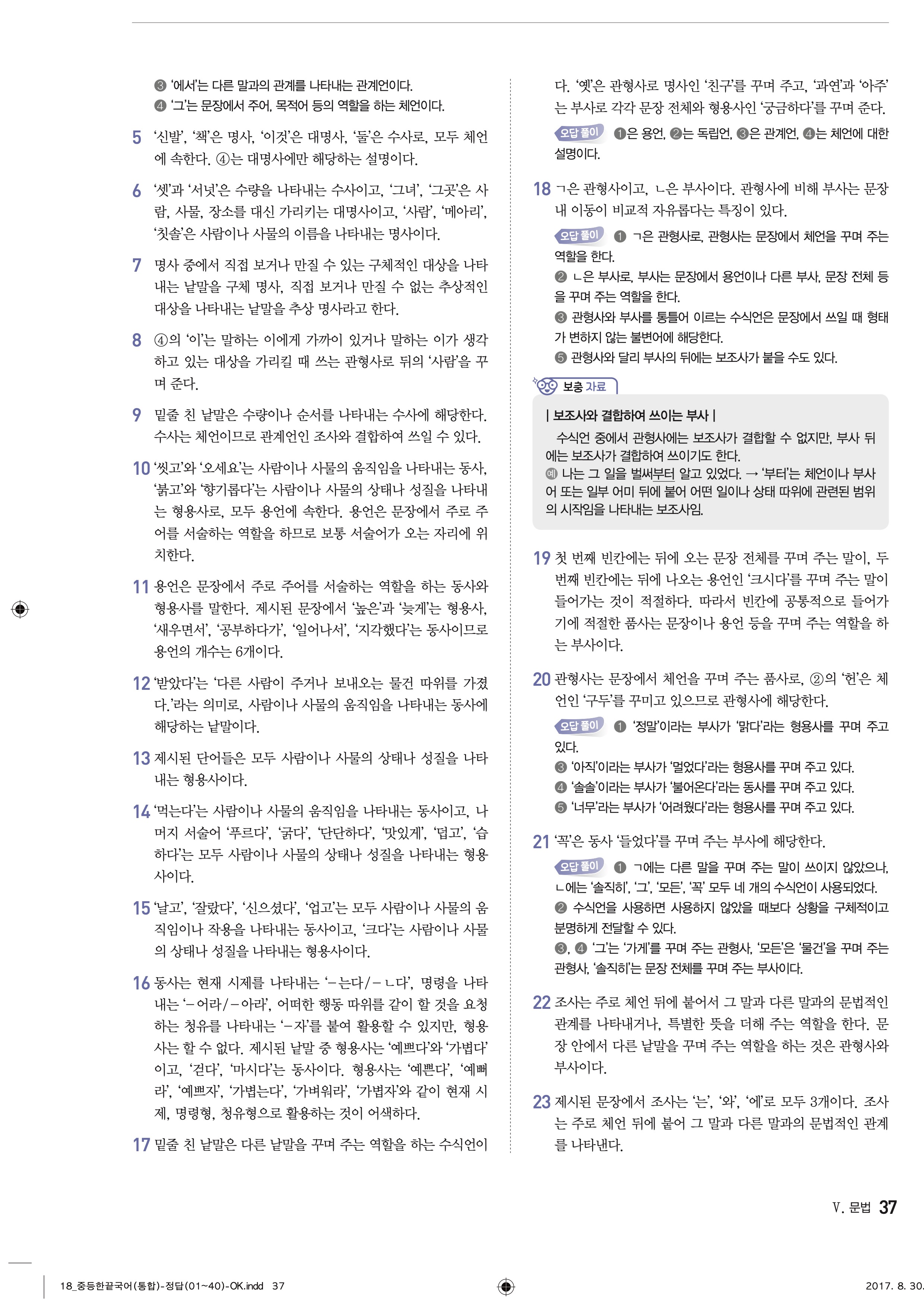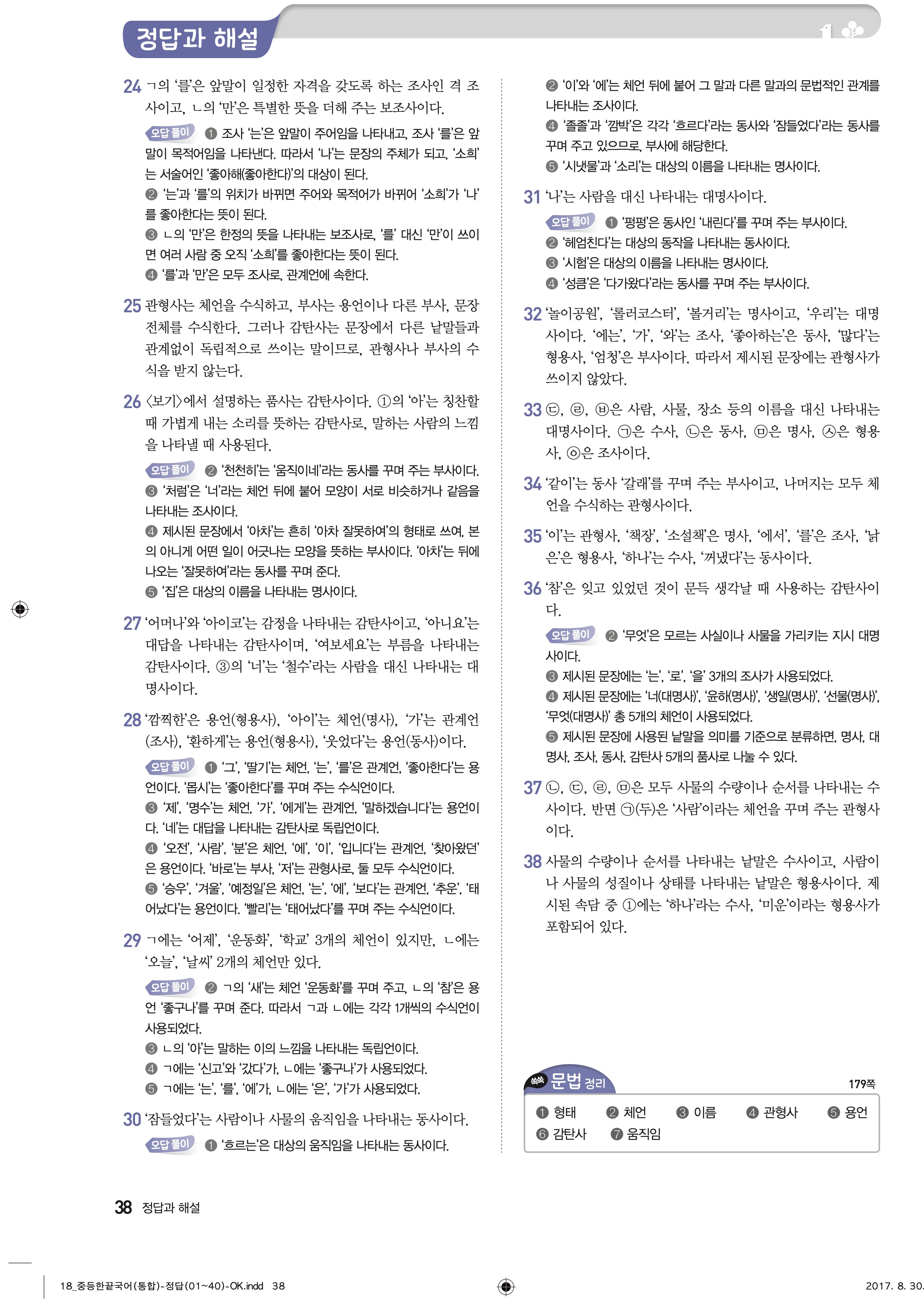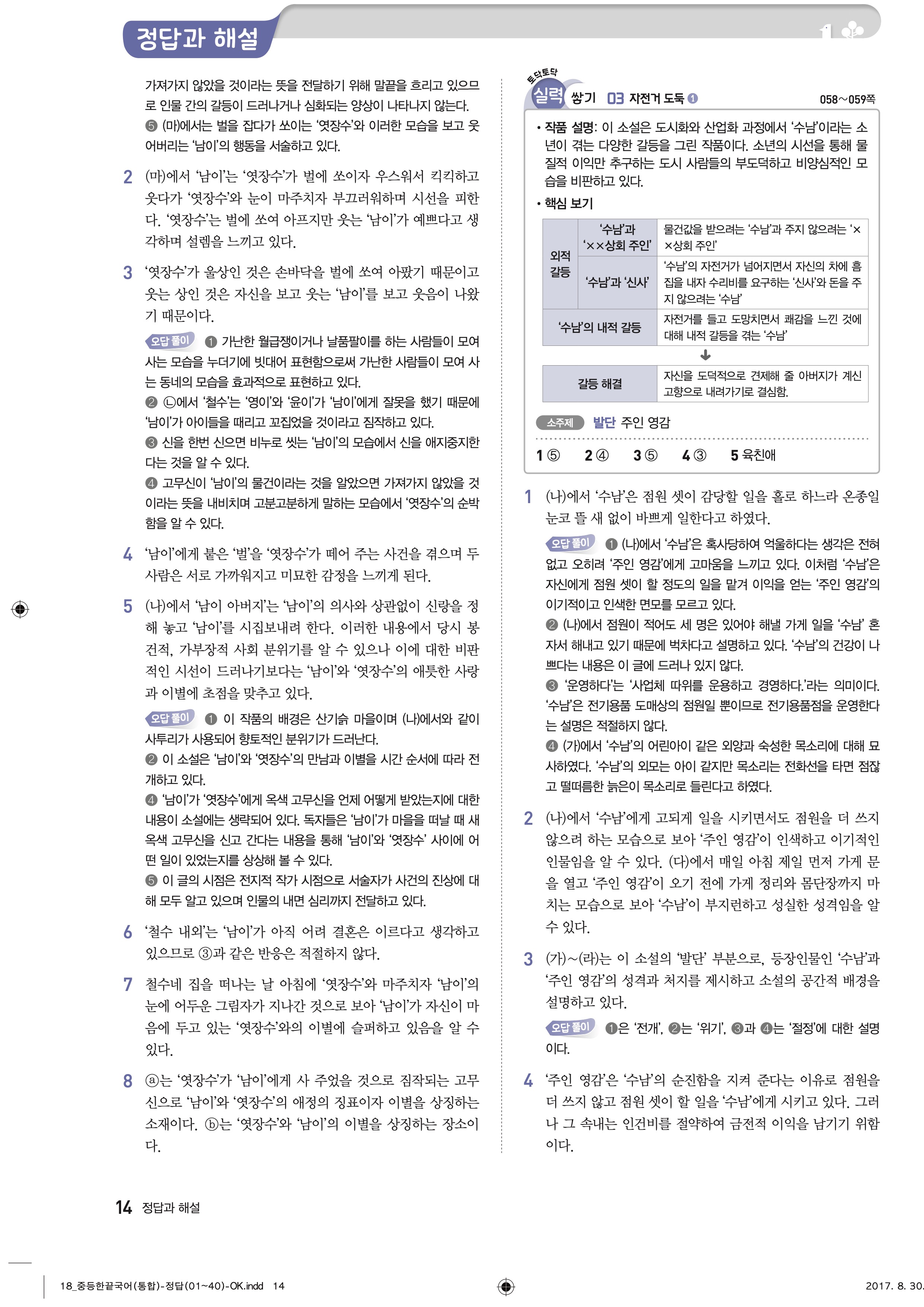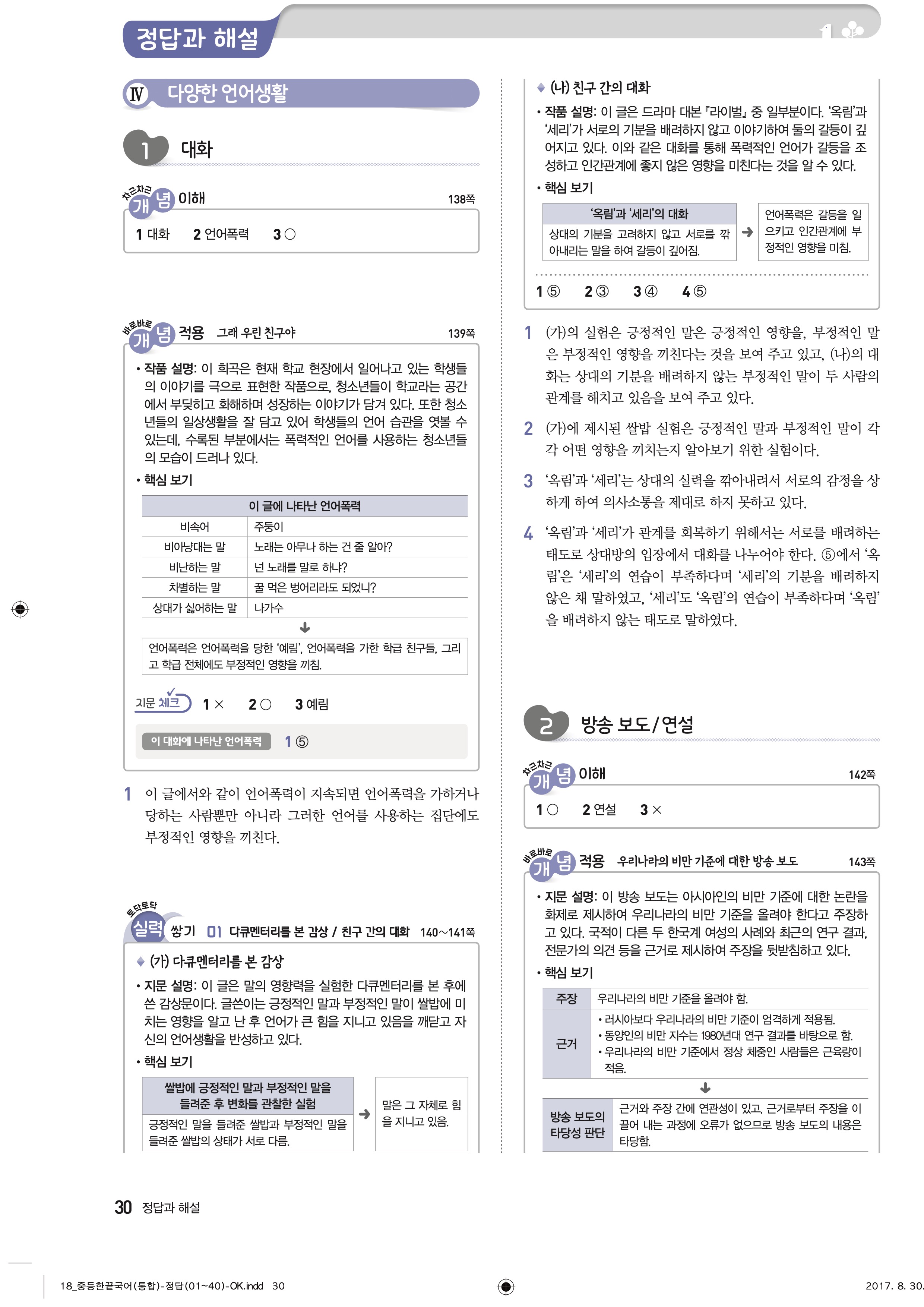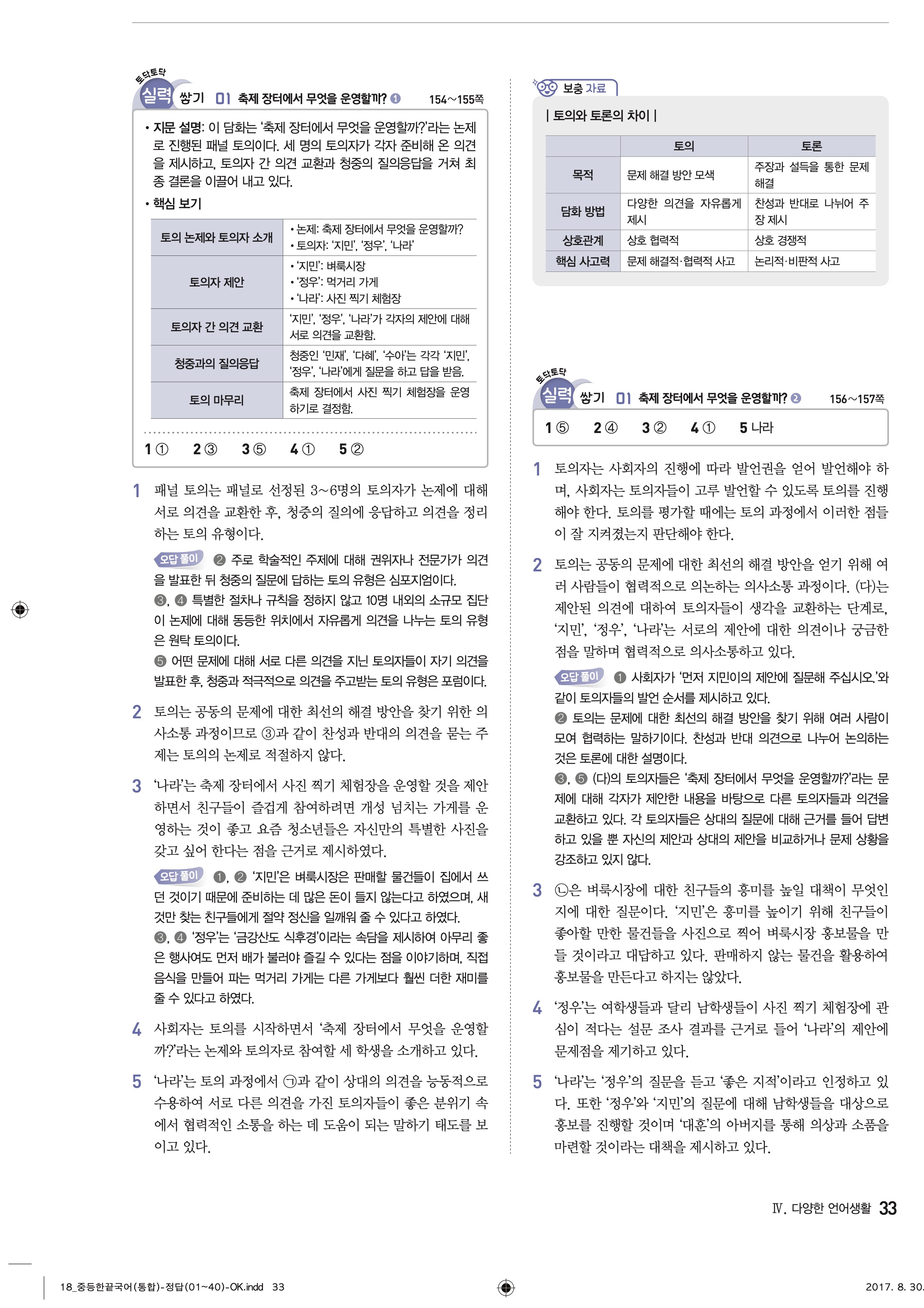 한끝 중등국어 통합편 1-1 답지 해설 바로보는 사진답지 빠른답지 모바일최적화