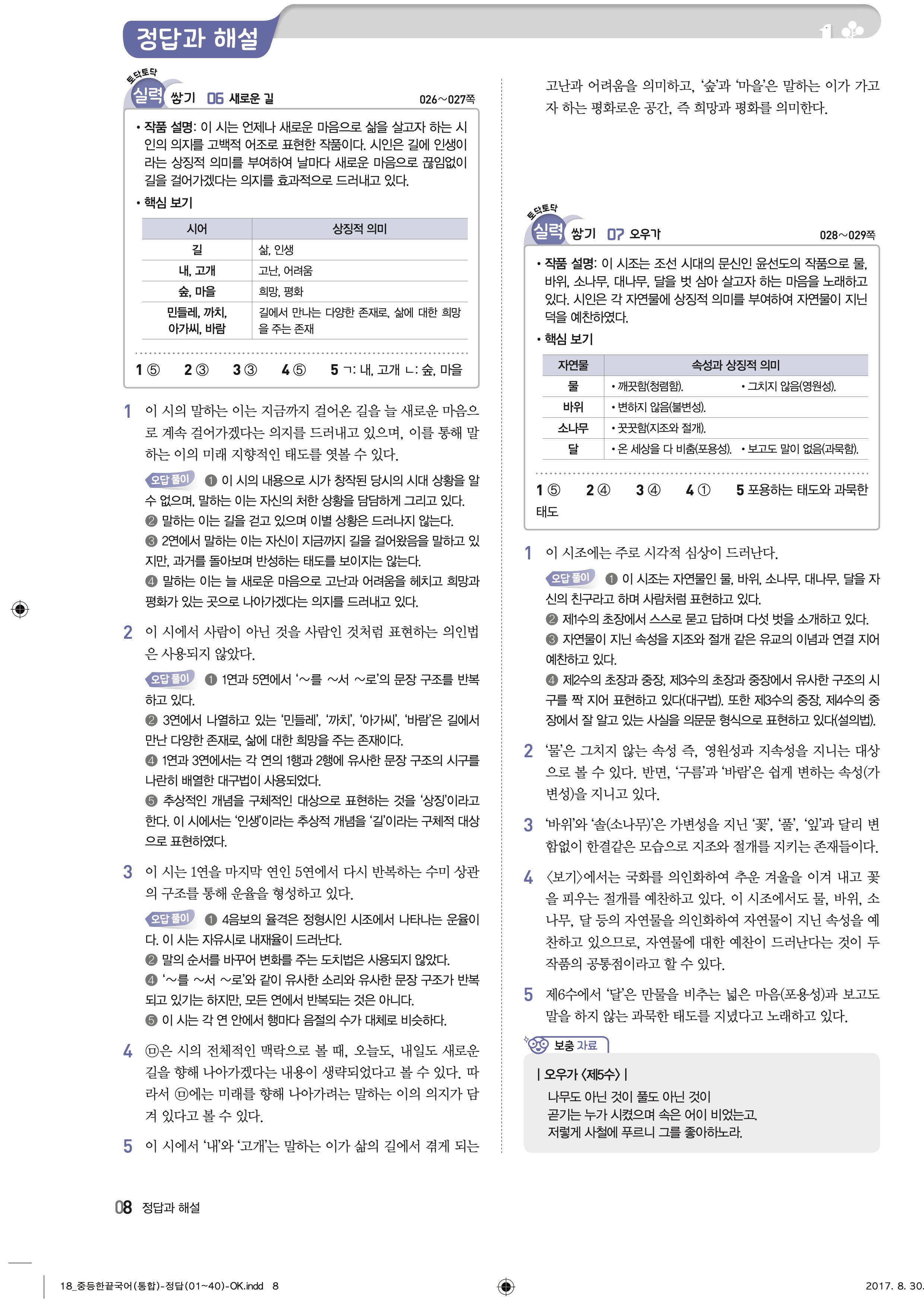 다운로드 받을필요 없이 바로 볼수 있는 모바일에 최적화된 답지 입니다