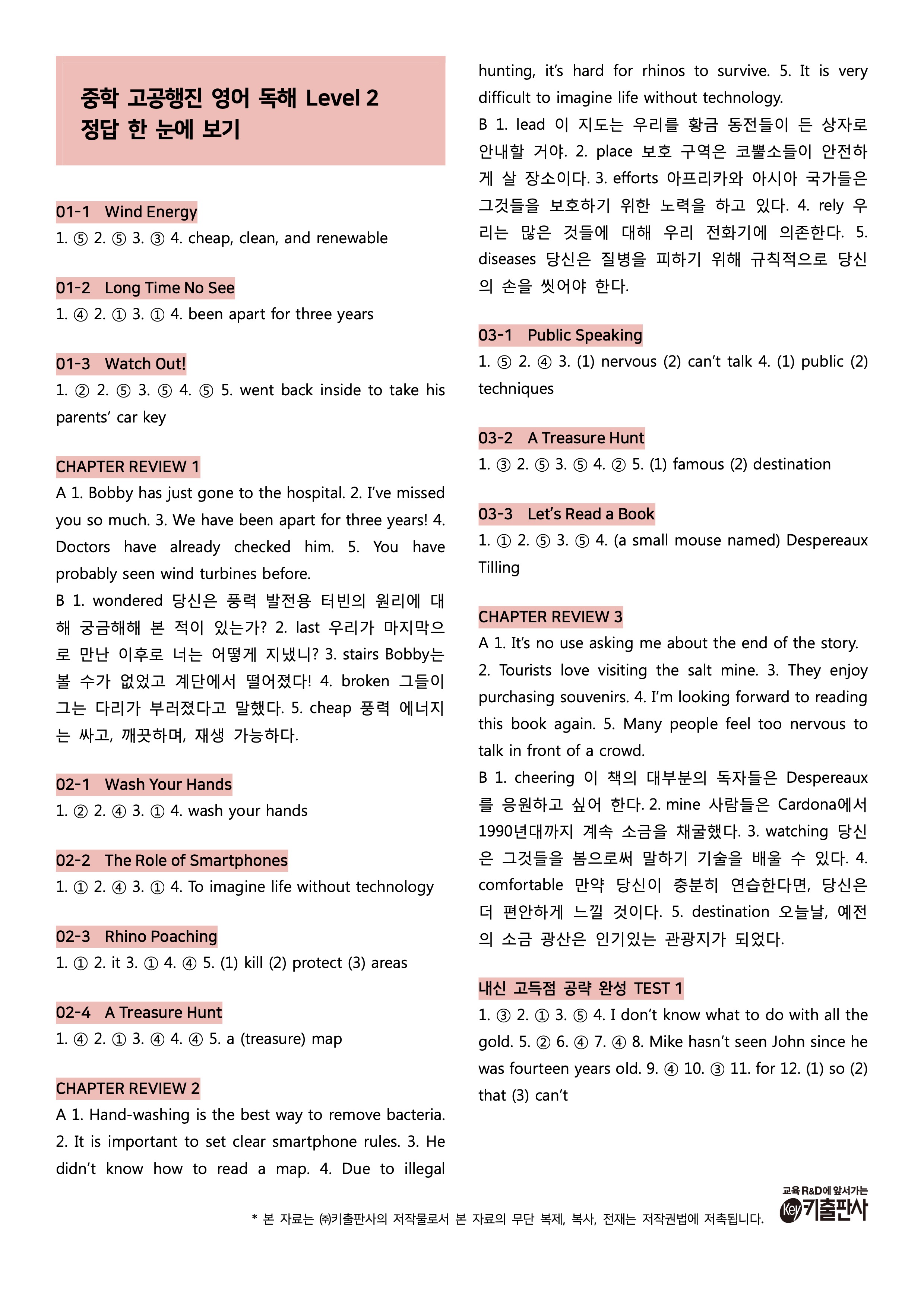 중학 고공행진 영어독해2 답지 해설지 다운없이 바로보는 사진답지 빠른답지 모바일최적화