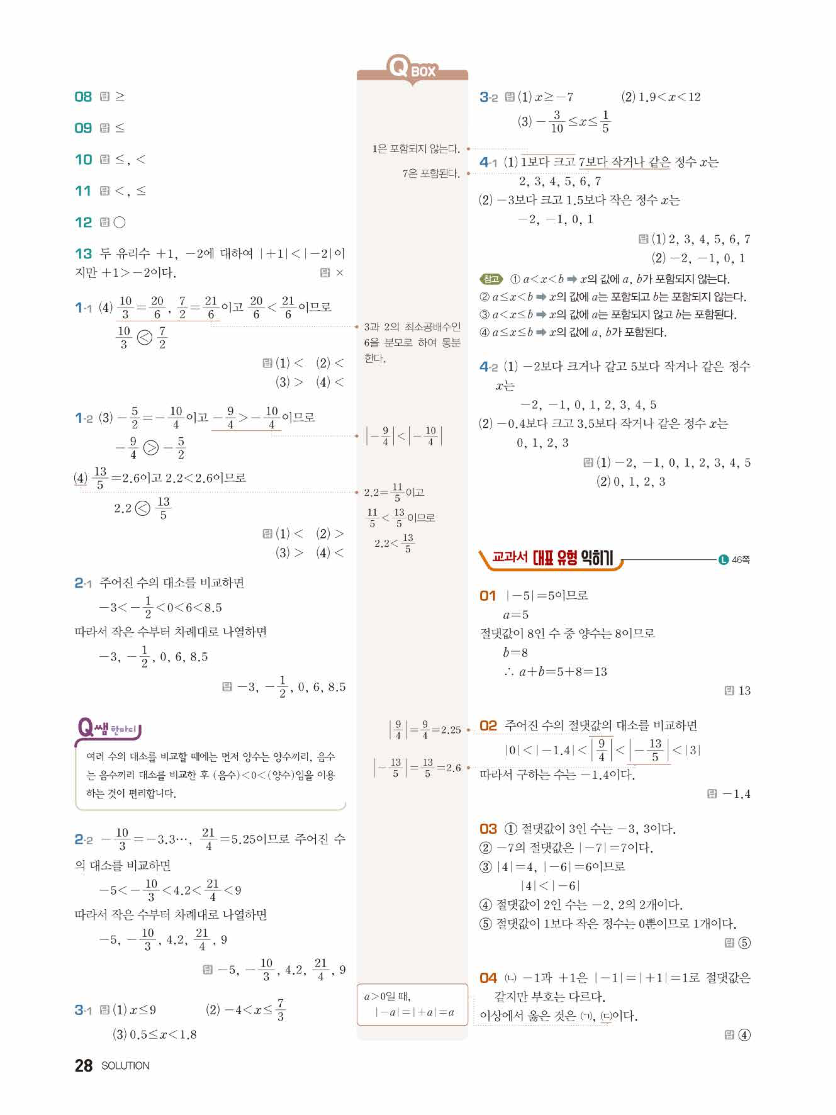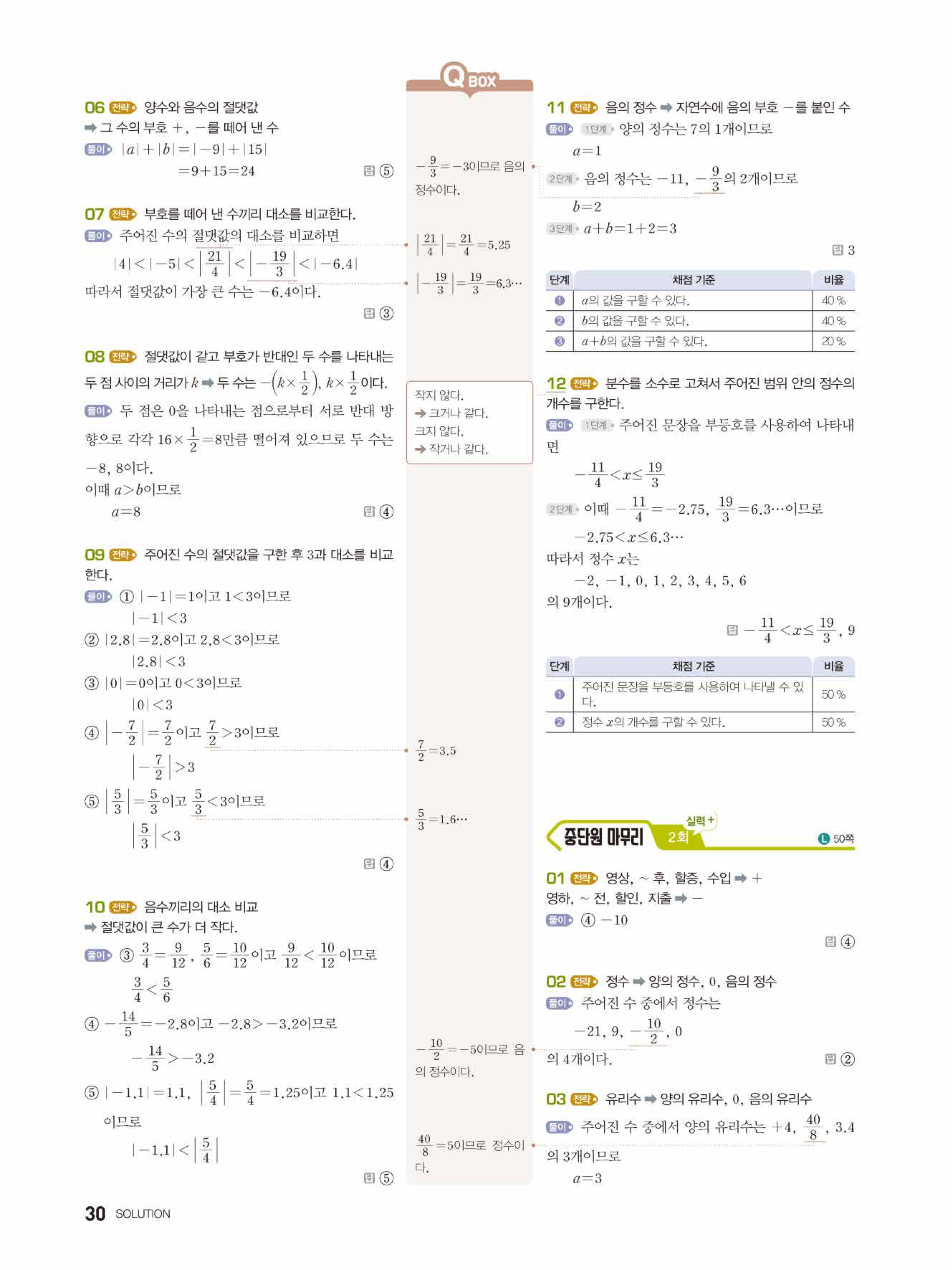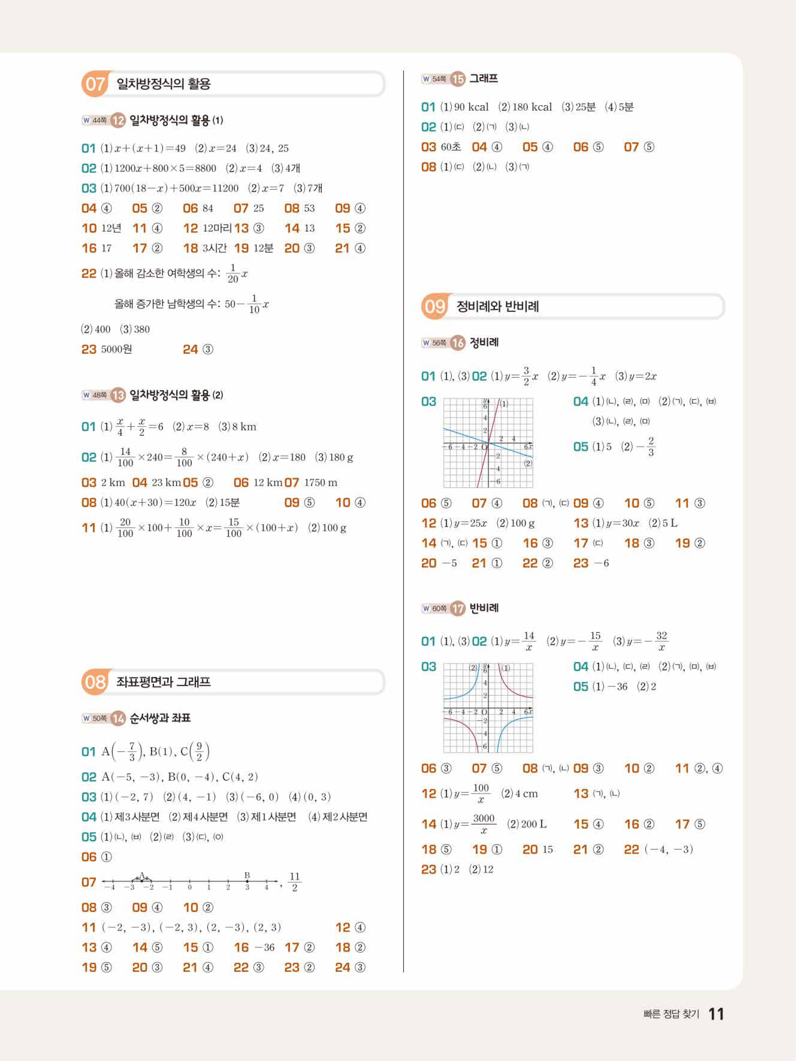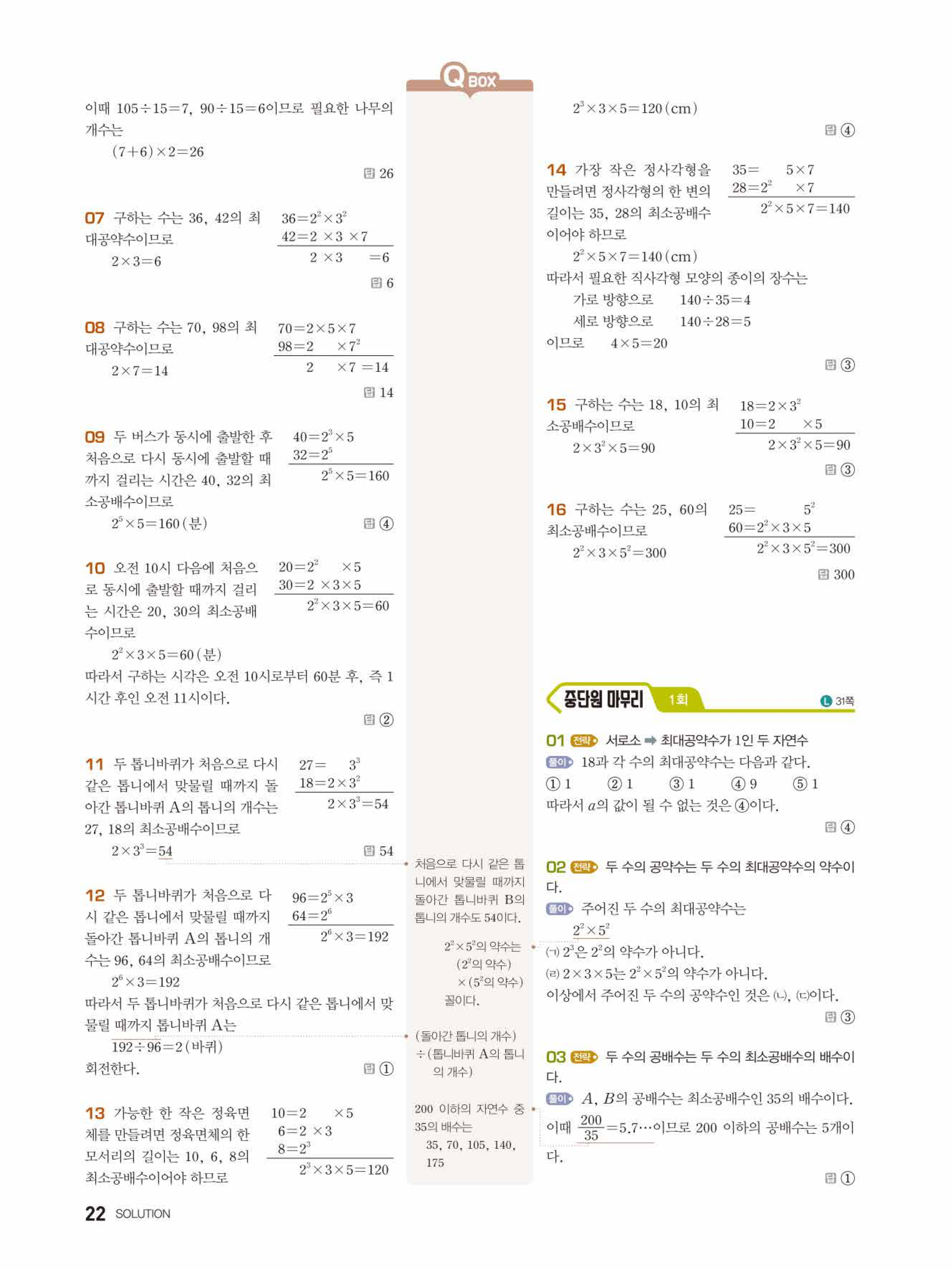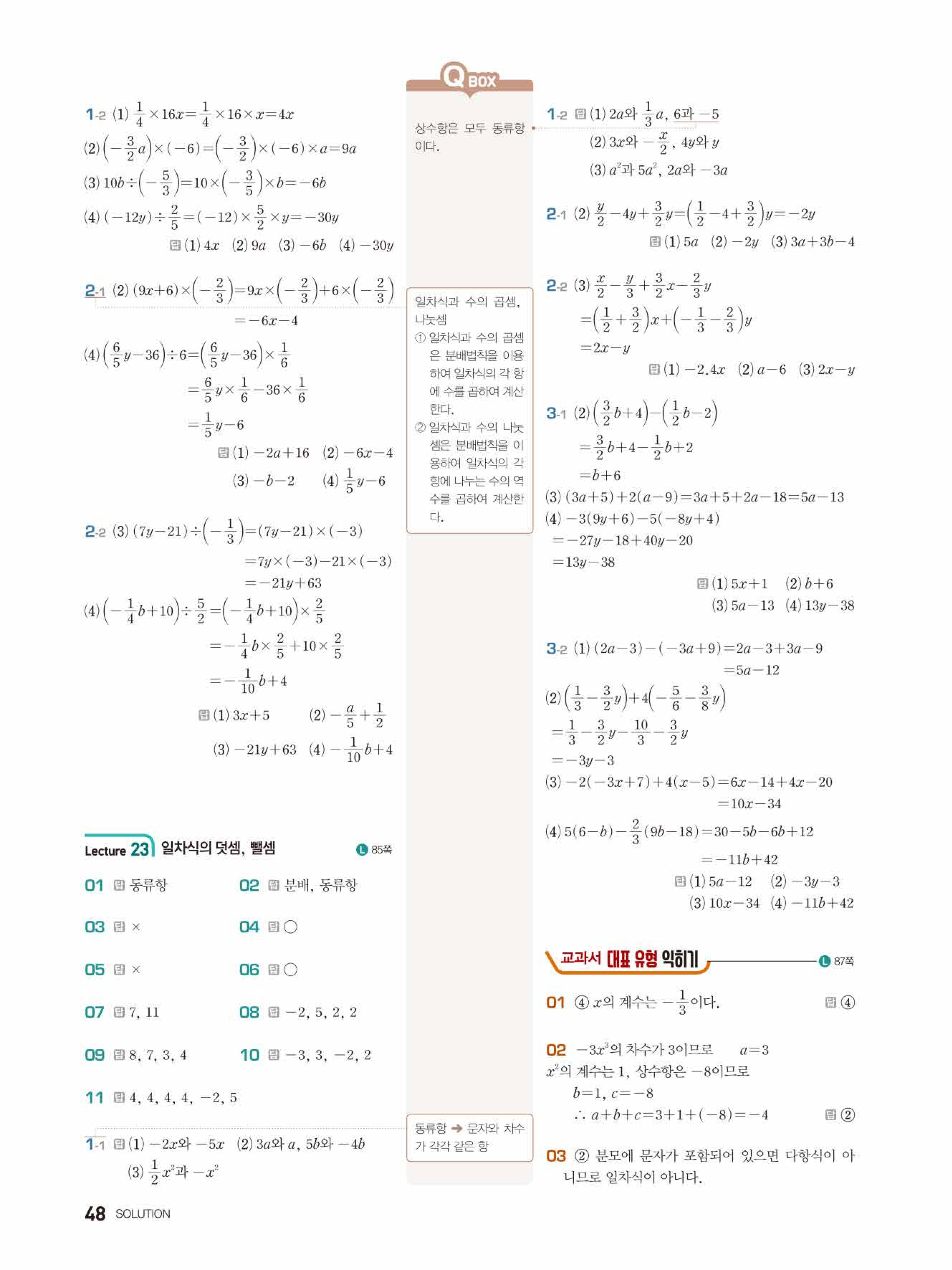 2022 우공비큐 표준편 중1-1 답지 해설 바로보는 사진답지 빠른답지 모바일최적화