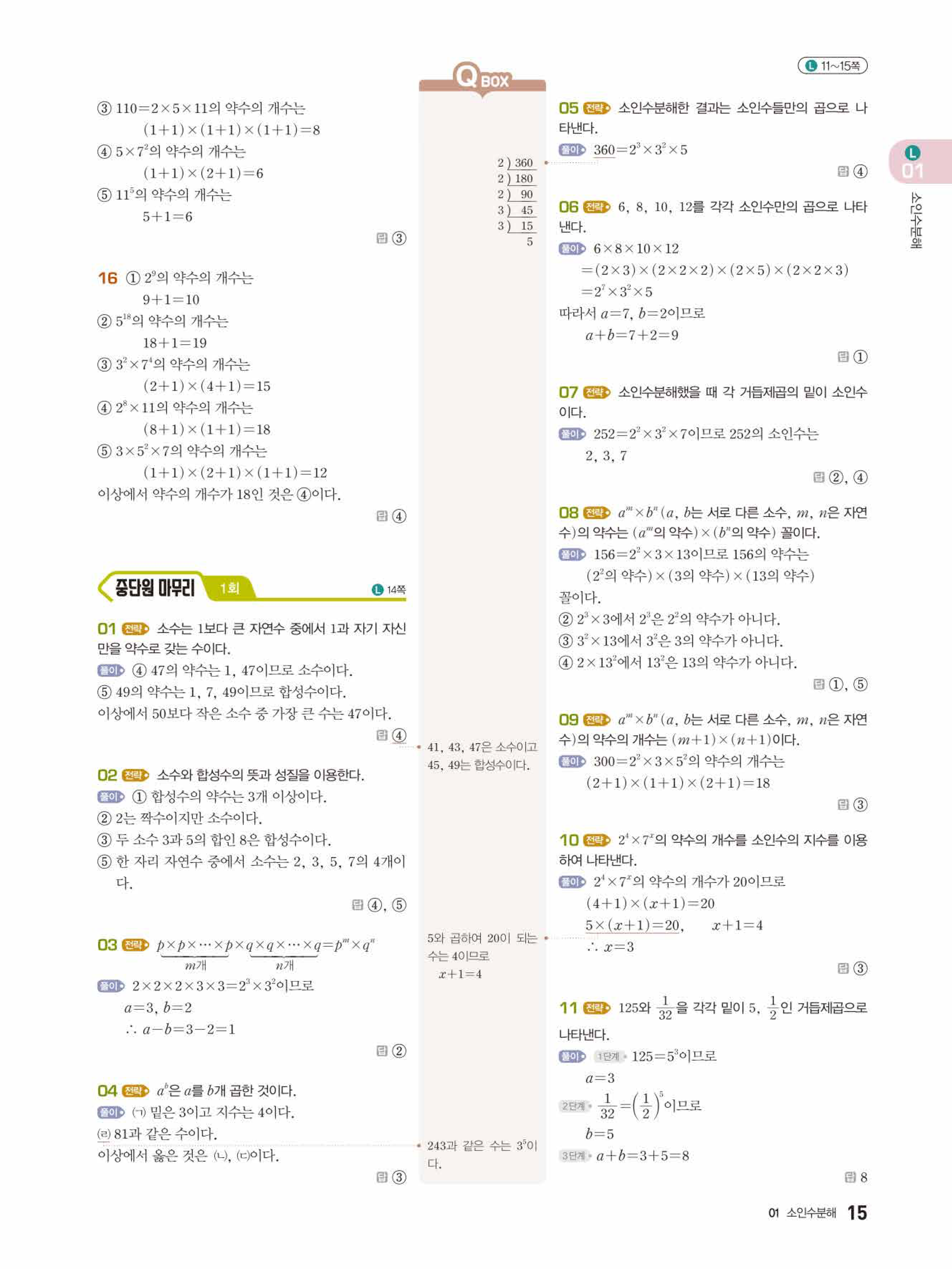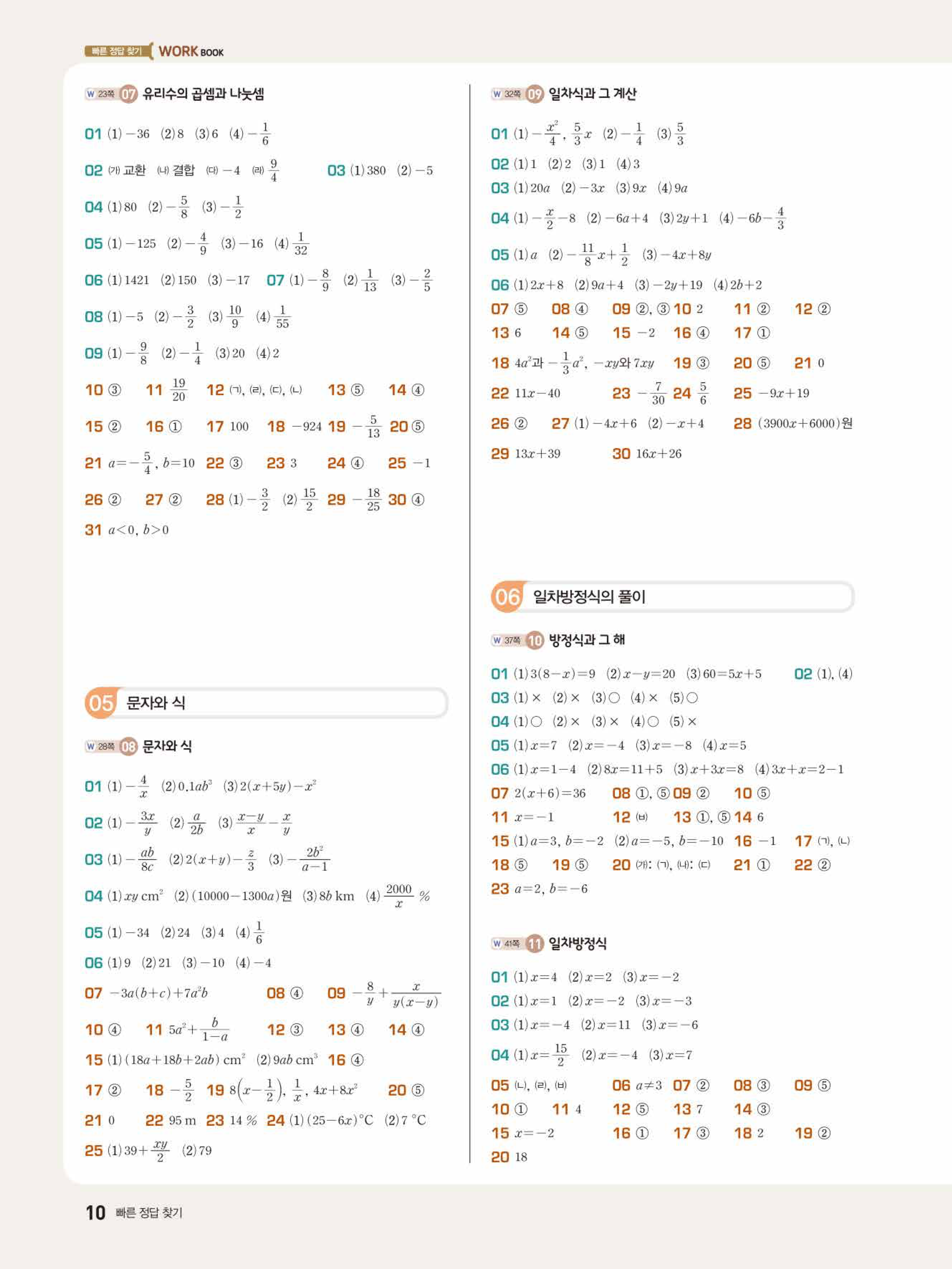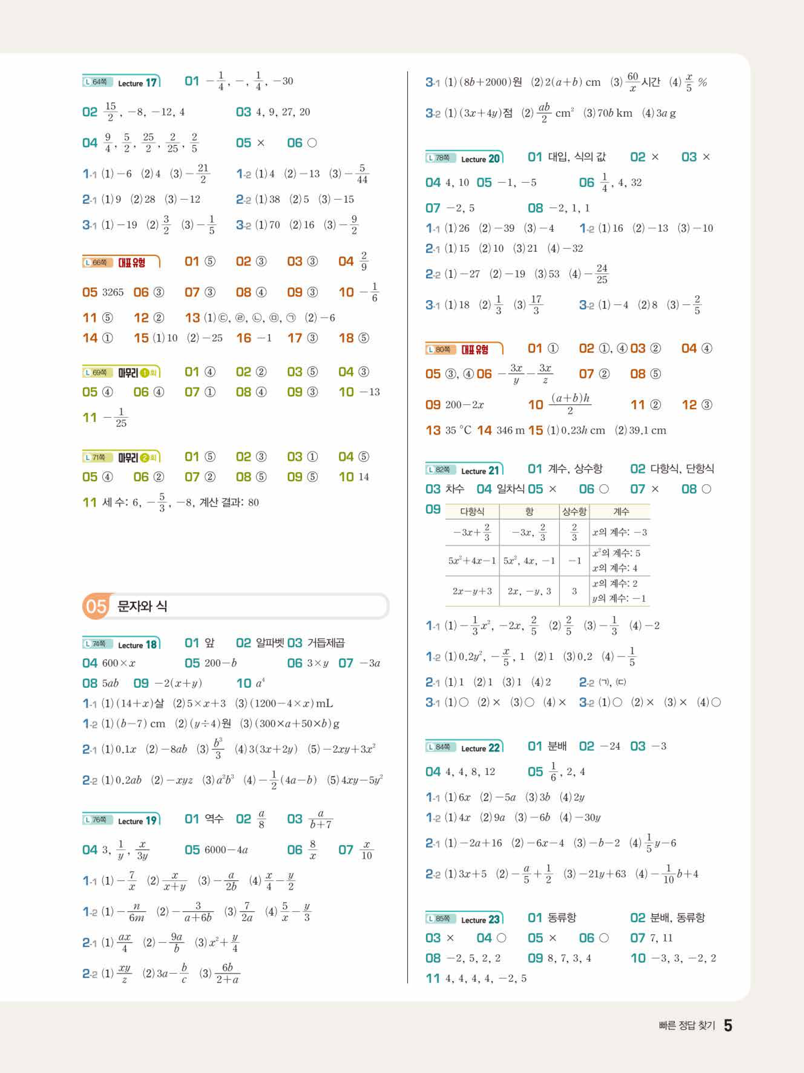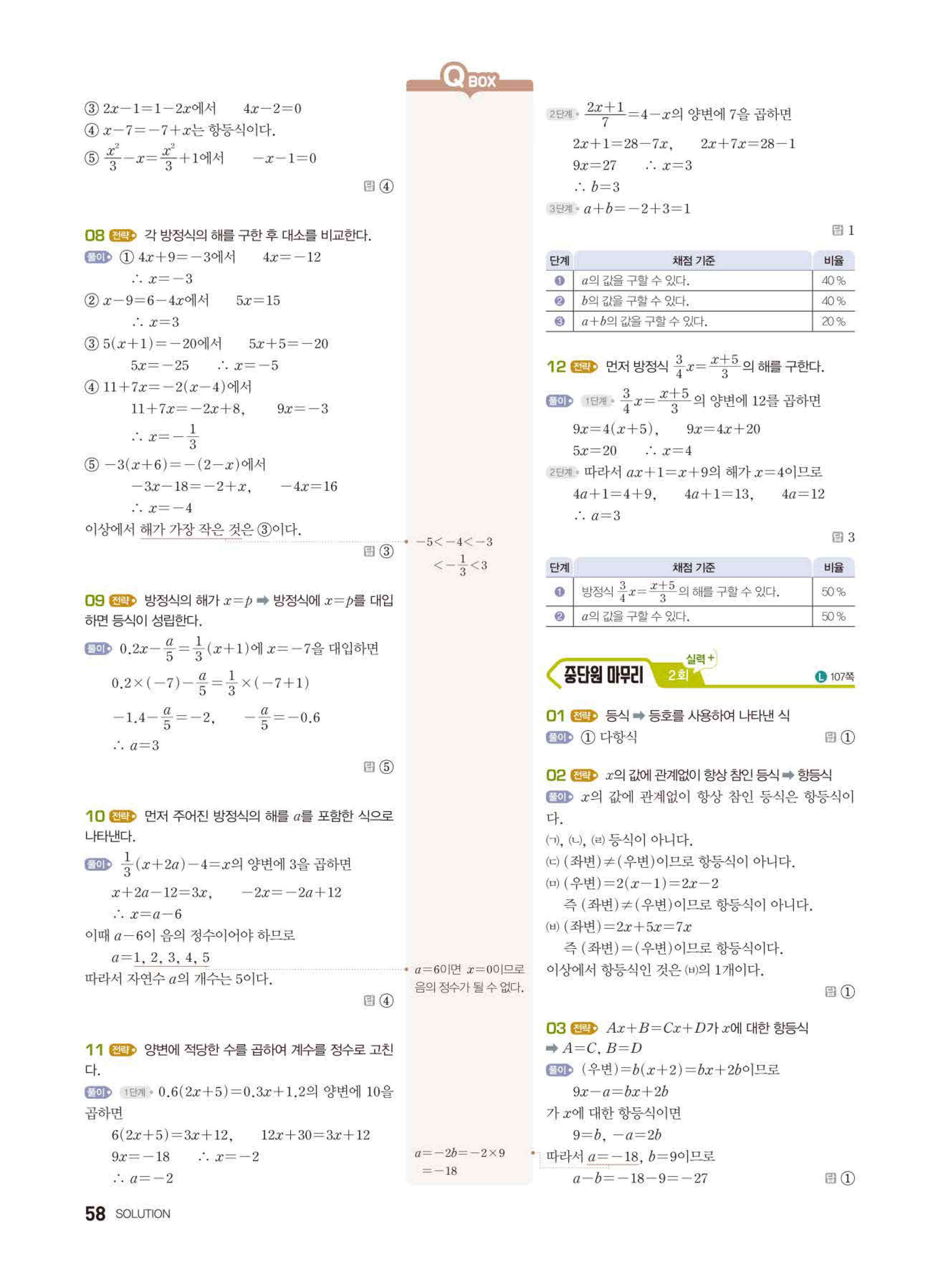 2022 우공비큐 표준편 중1-1 답지 해설 바로보는 사진답지 빠른답지 모바일최적화
