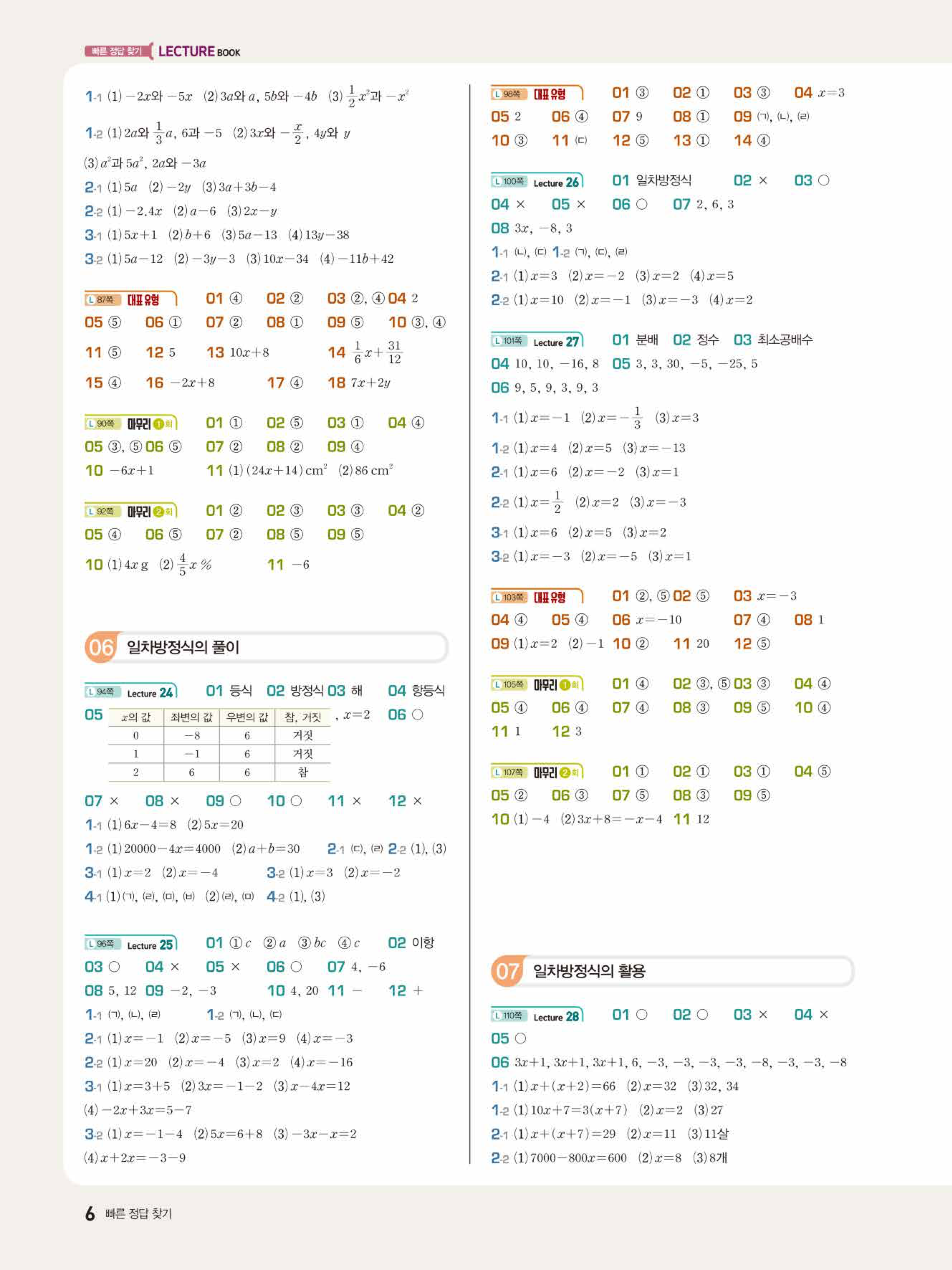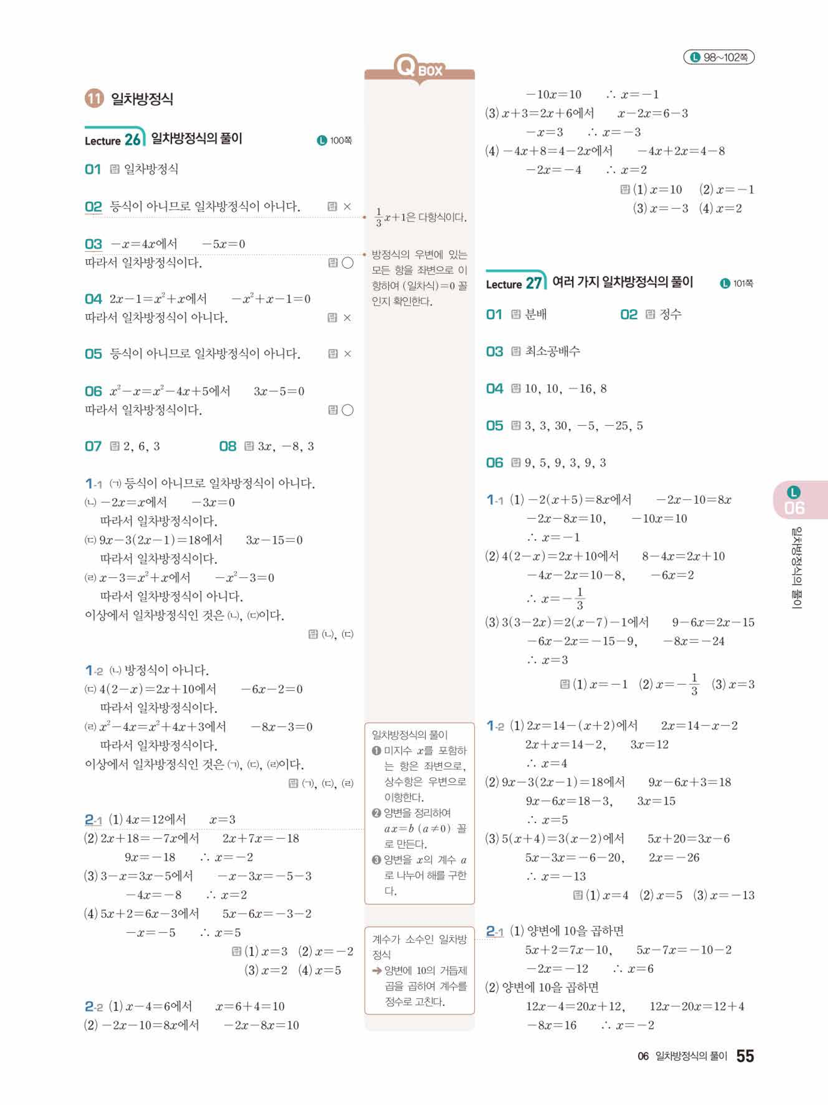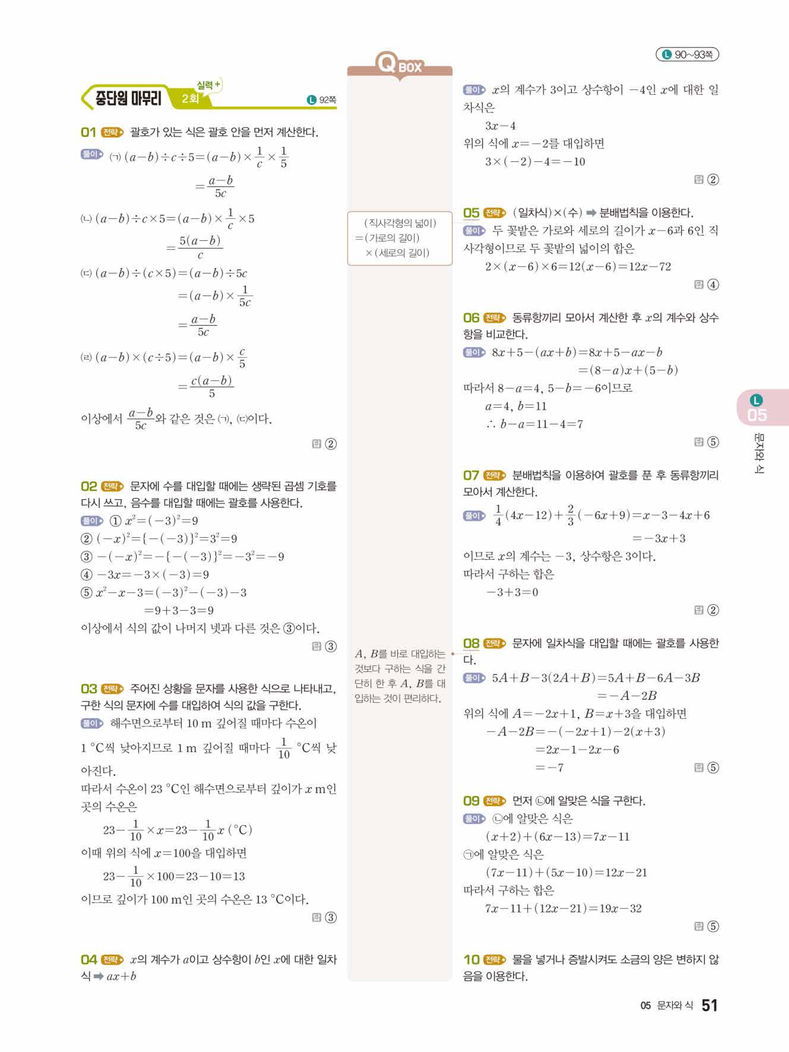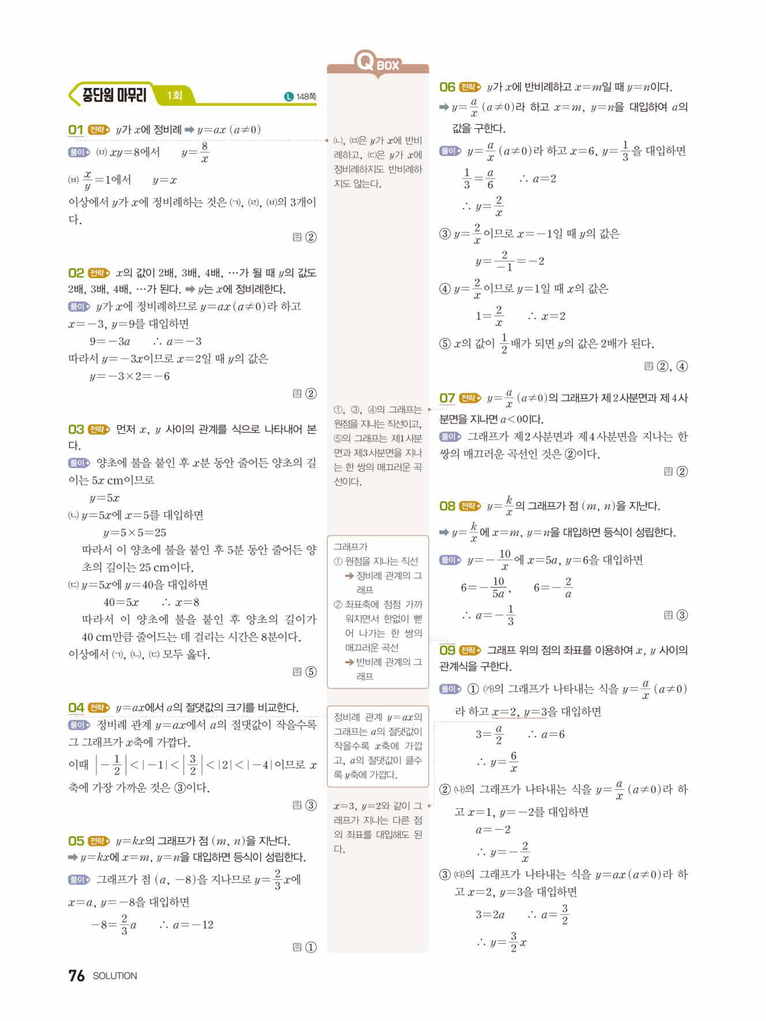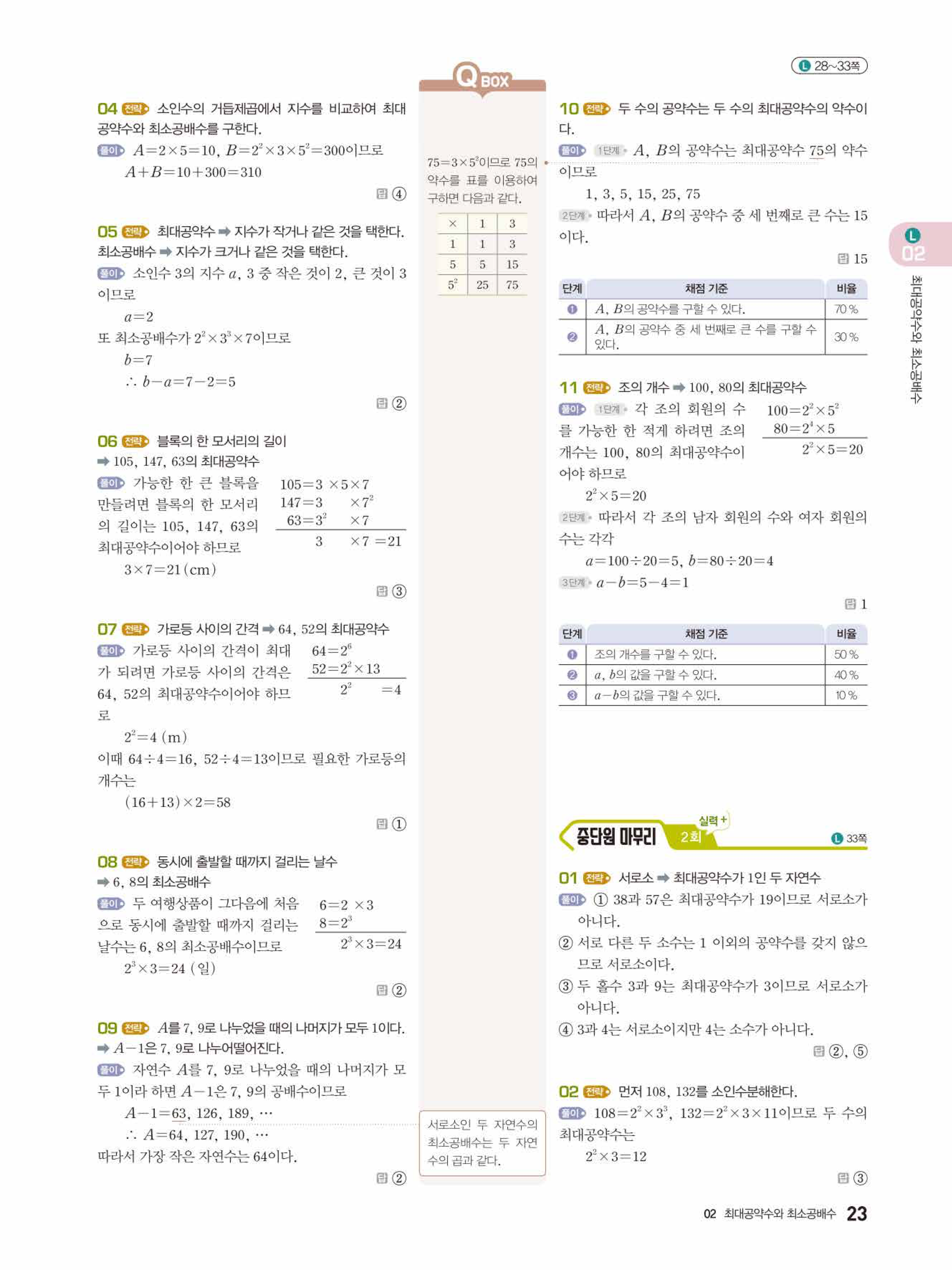 2022 우공비큐 표준편 중1-1 답지 해설 바로보는 사진답지 빠른답지 모바일최적화