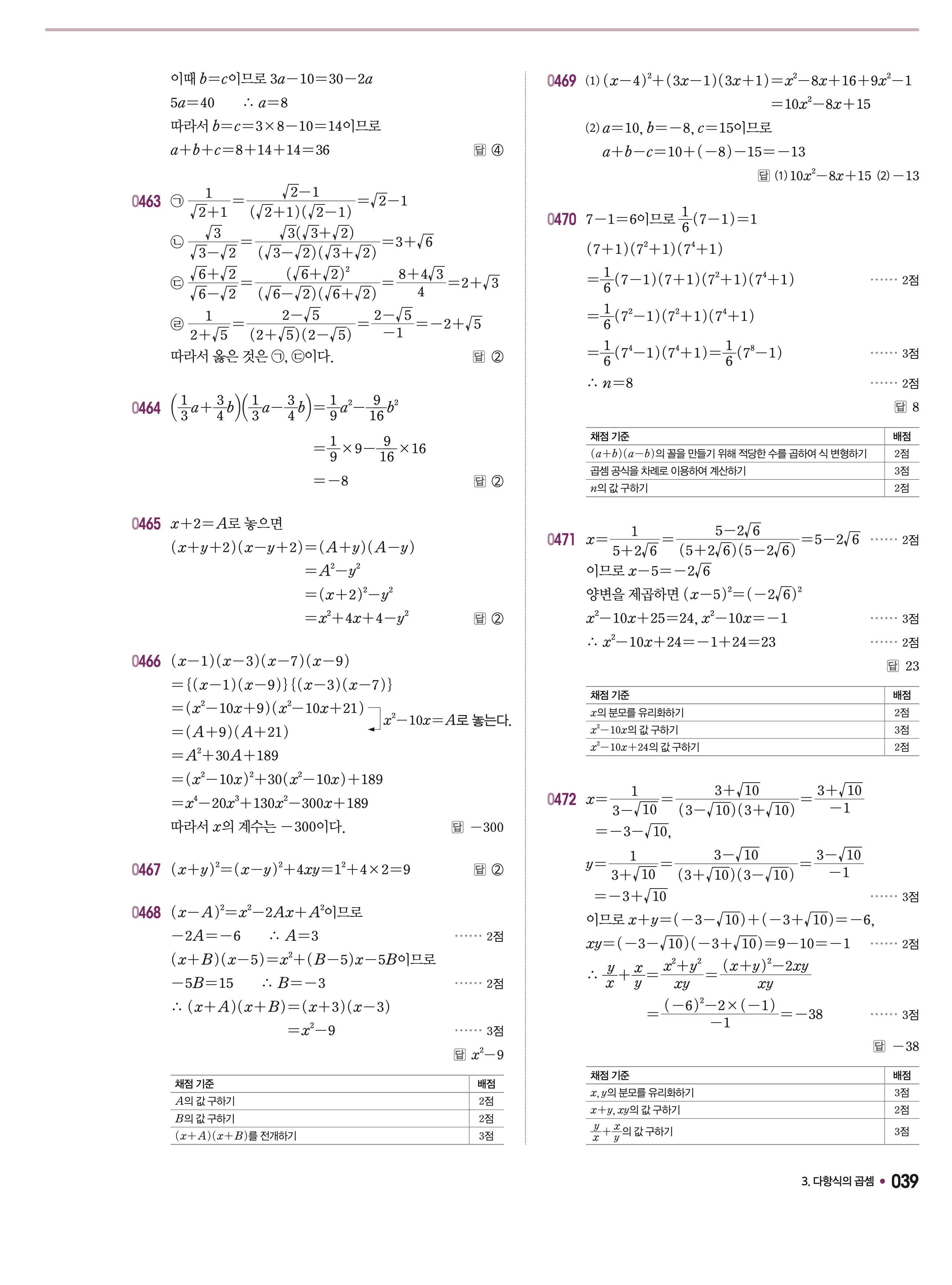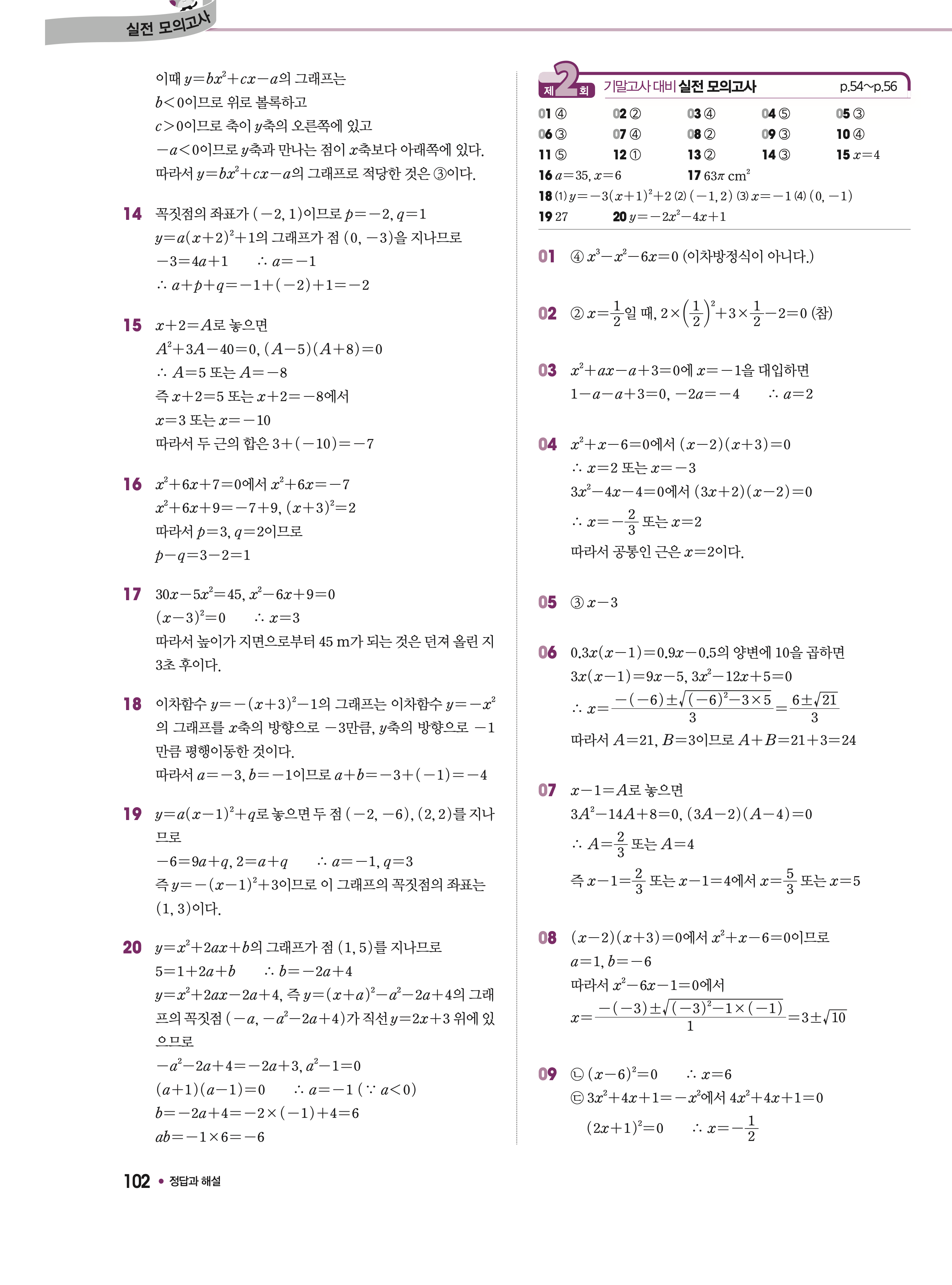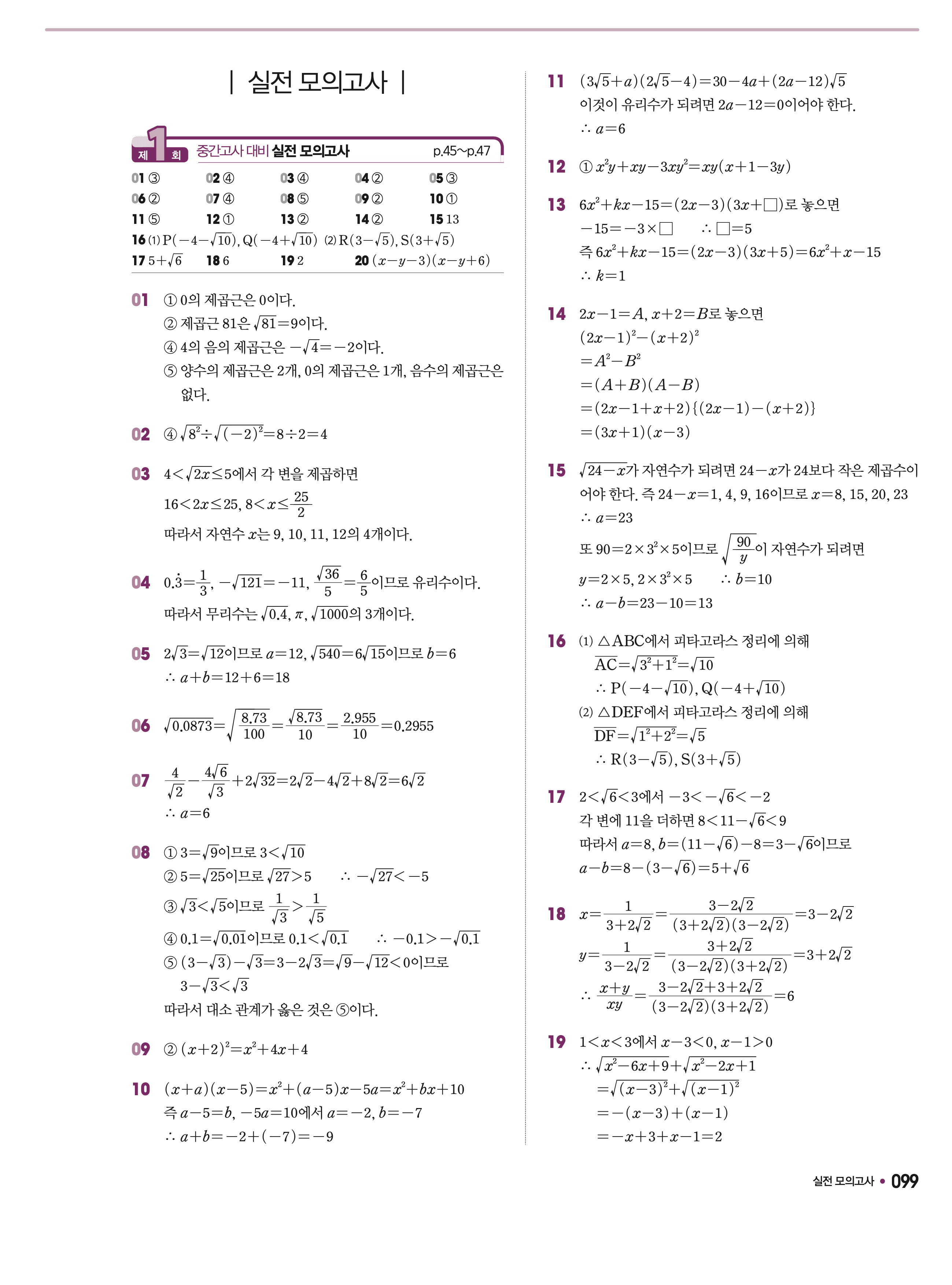 | 교학사 고호경 중3 수학교과서 답지 | |