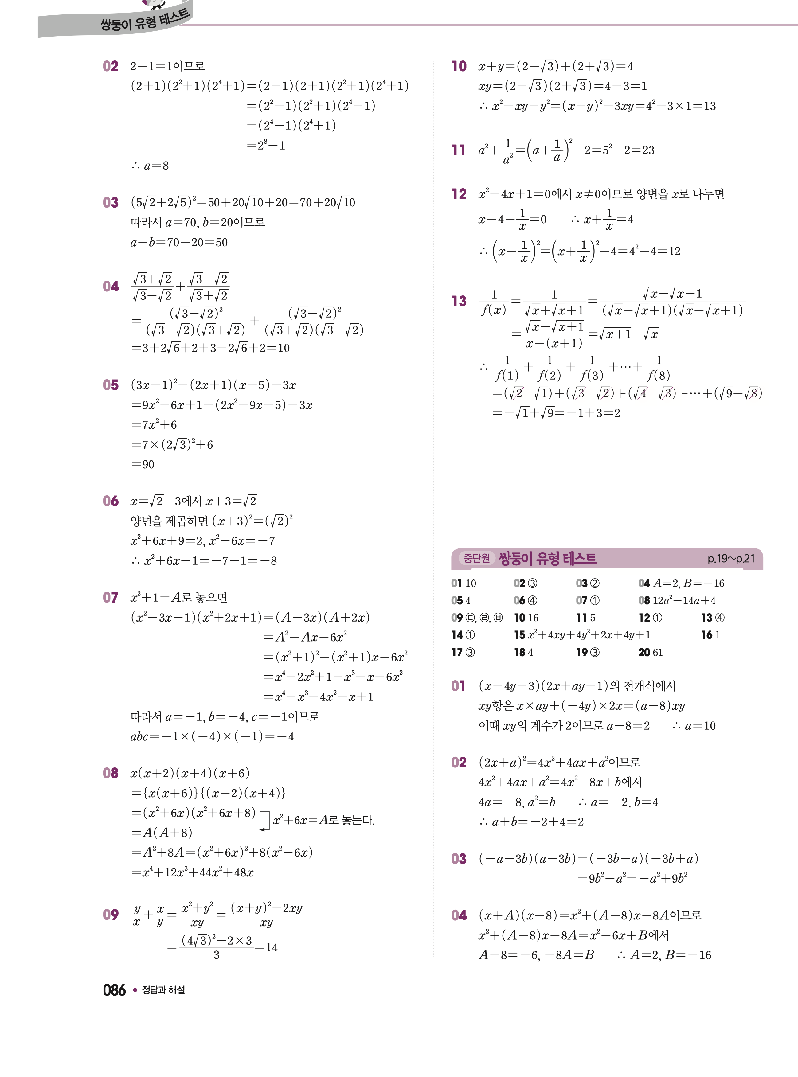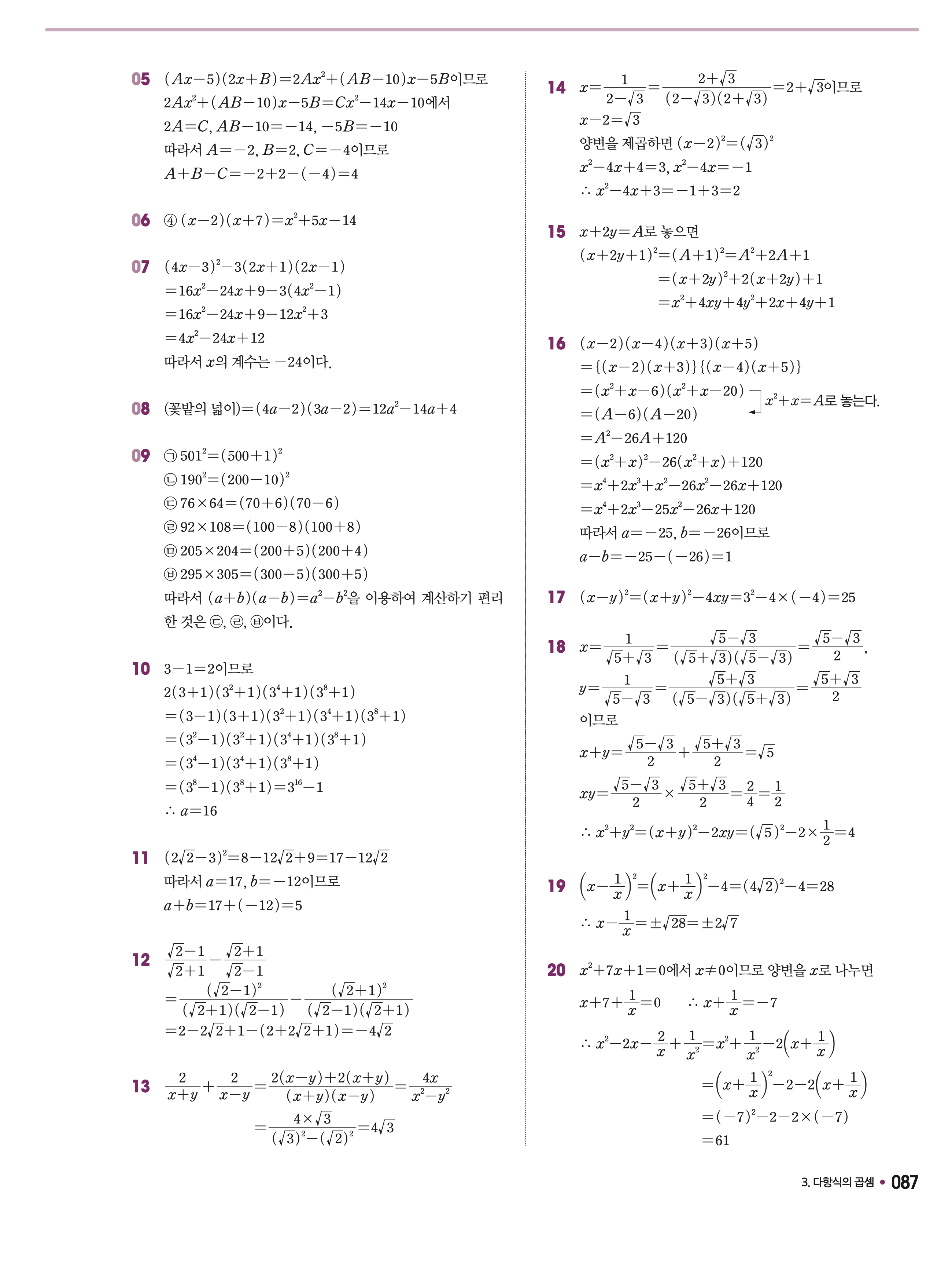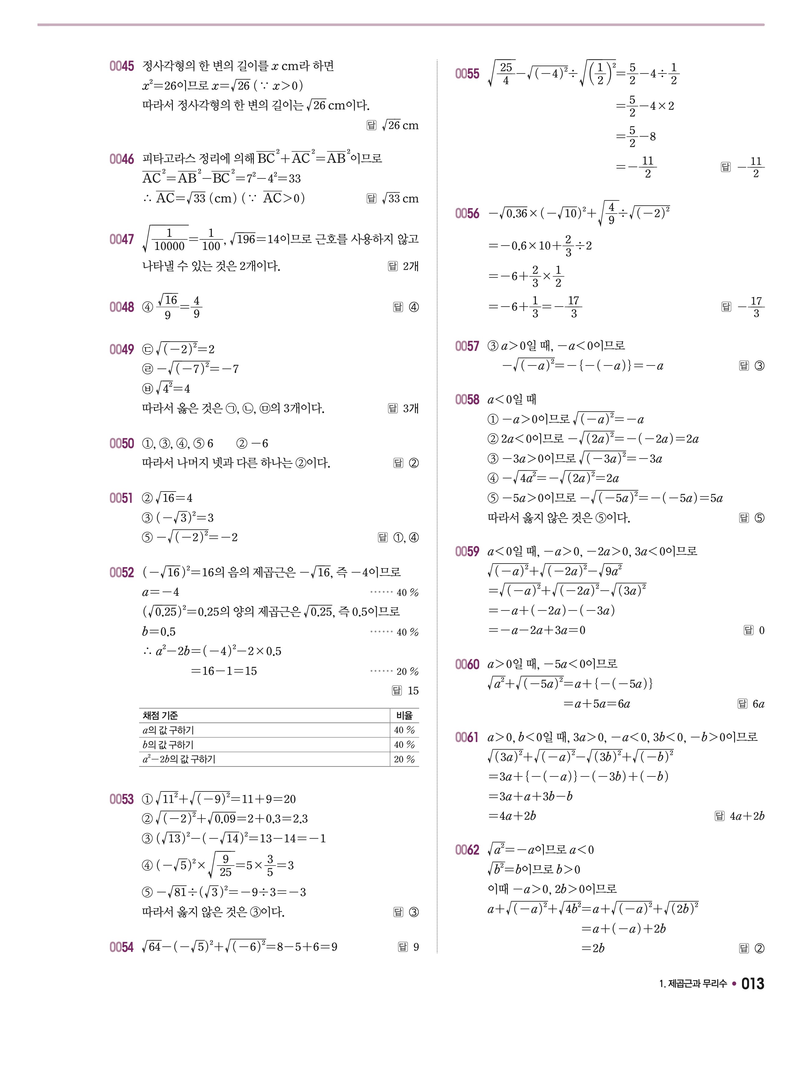 | 교학사 고호경 중3 수학교과서 답지 | |
