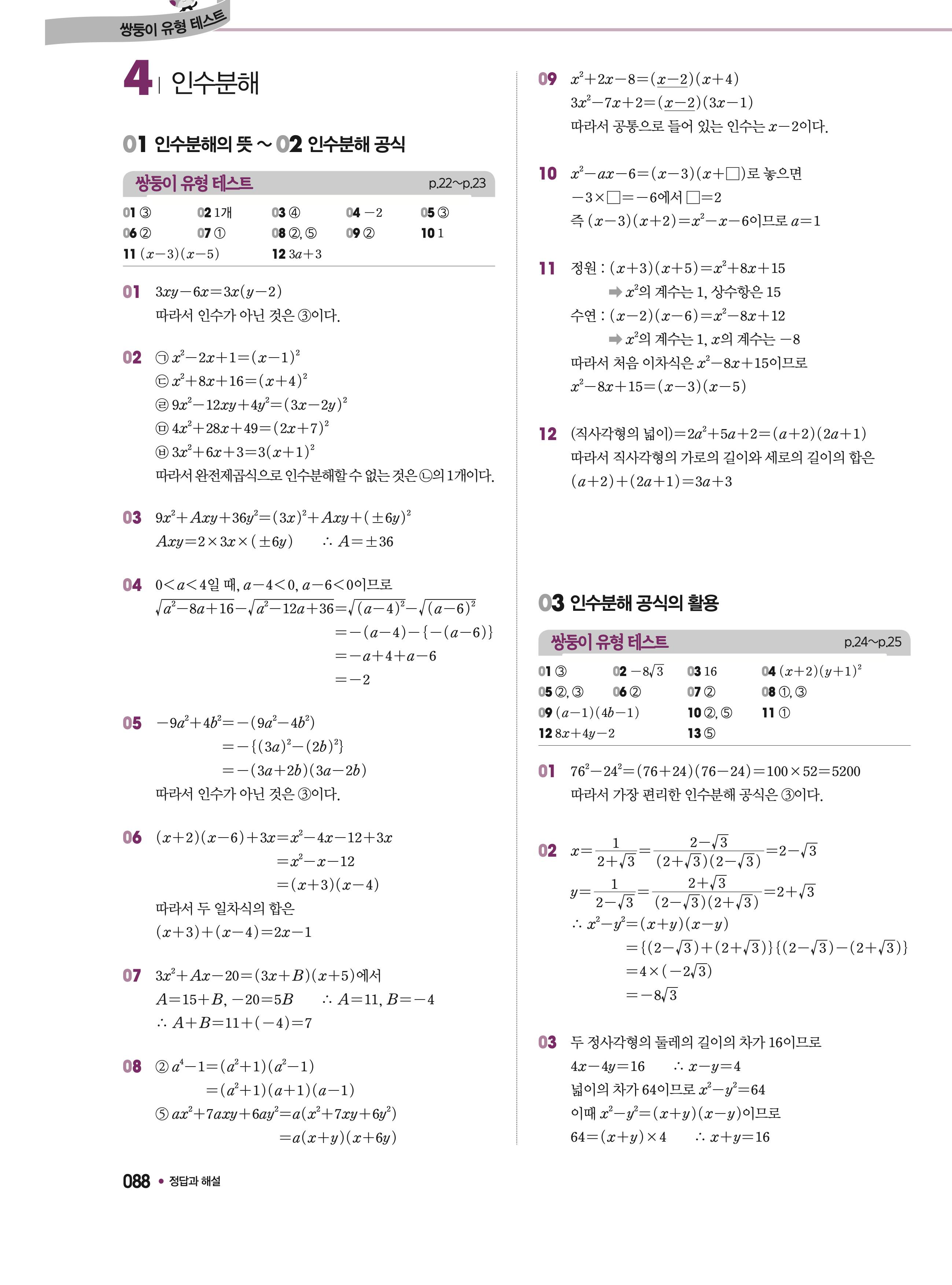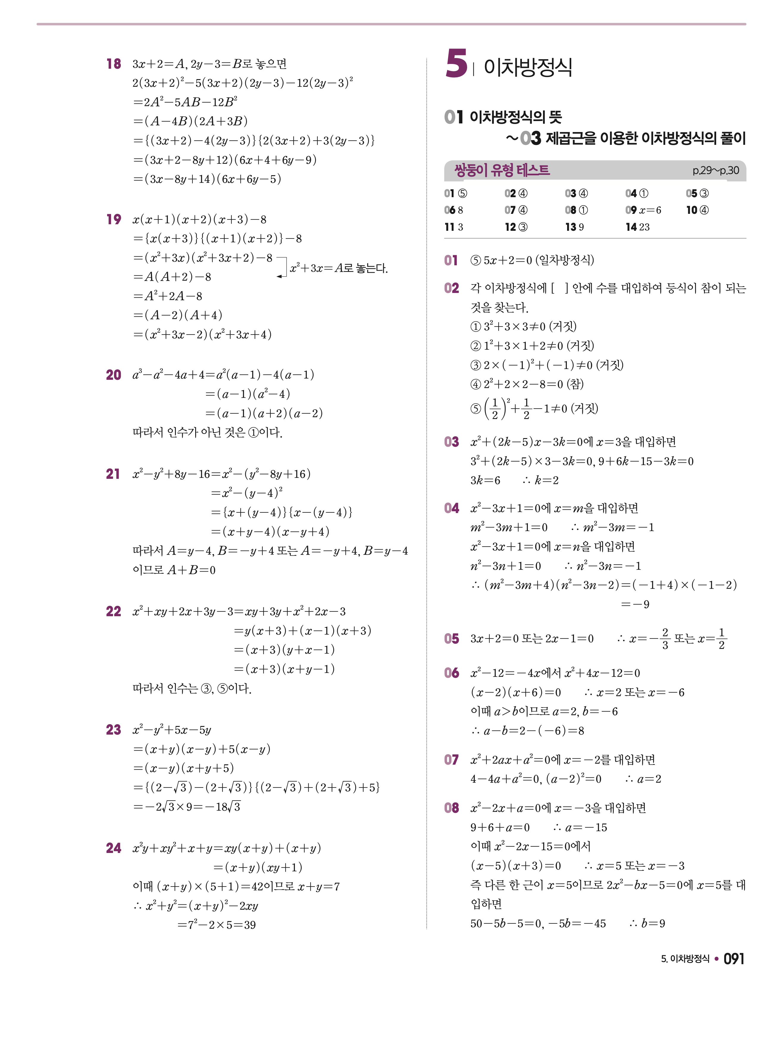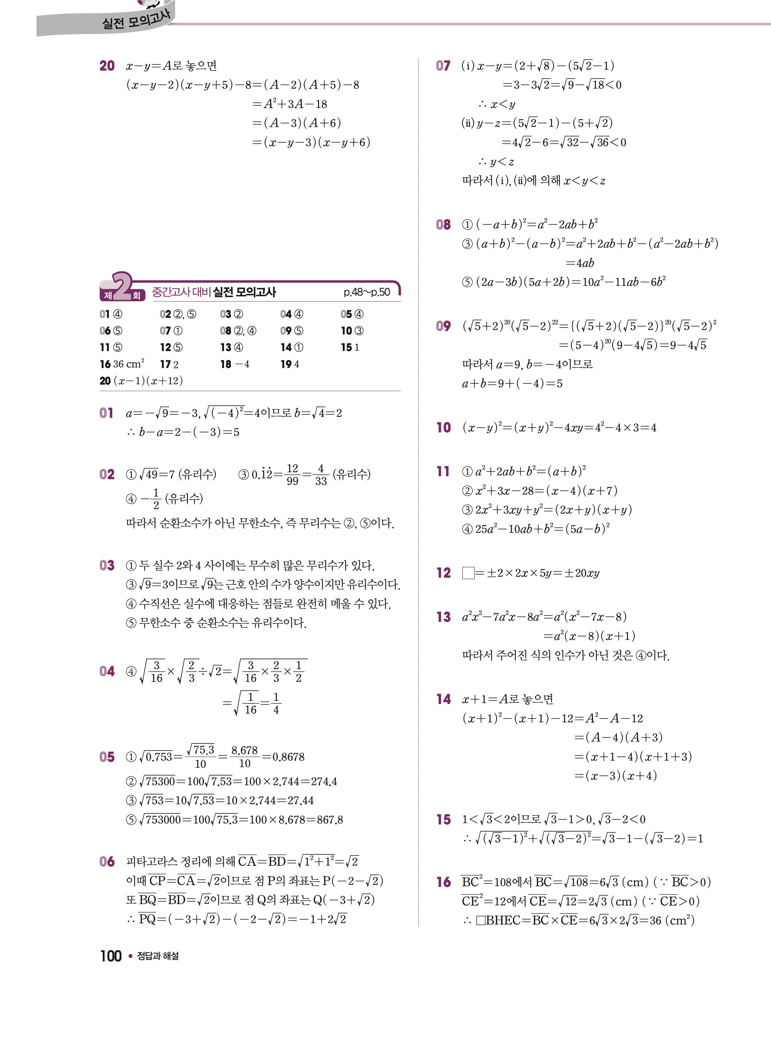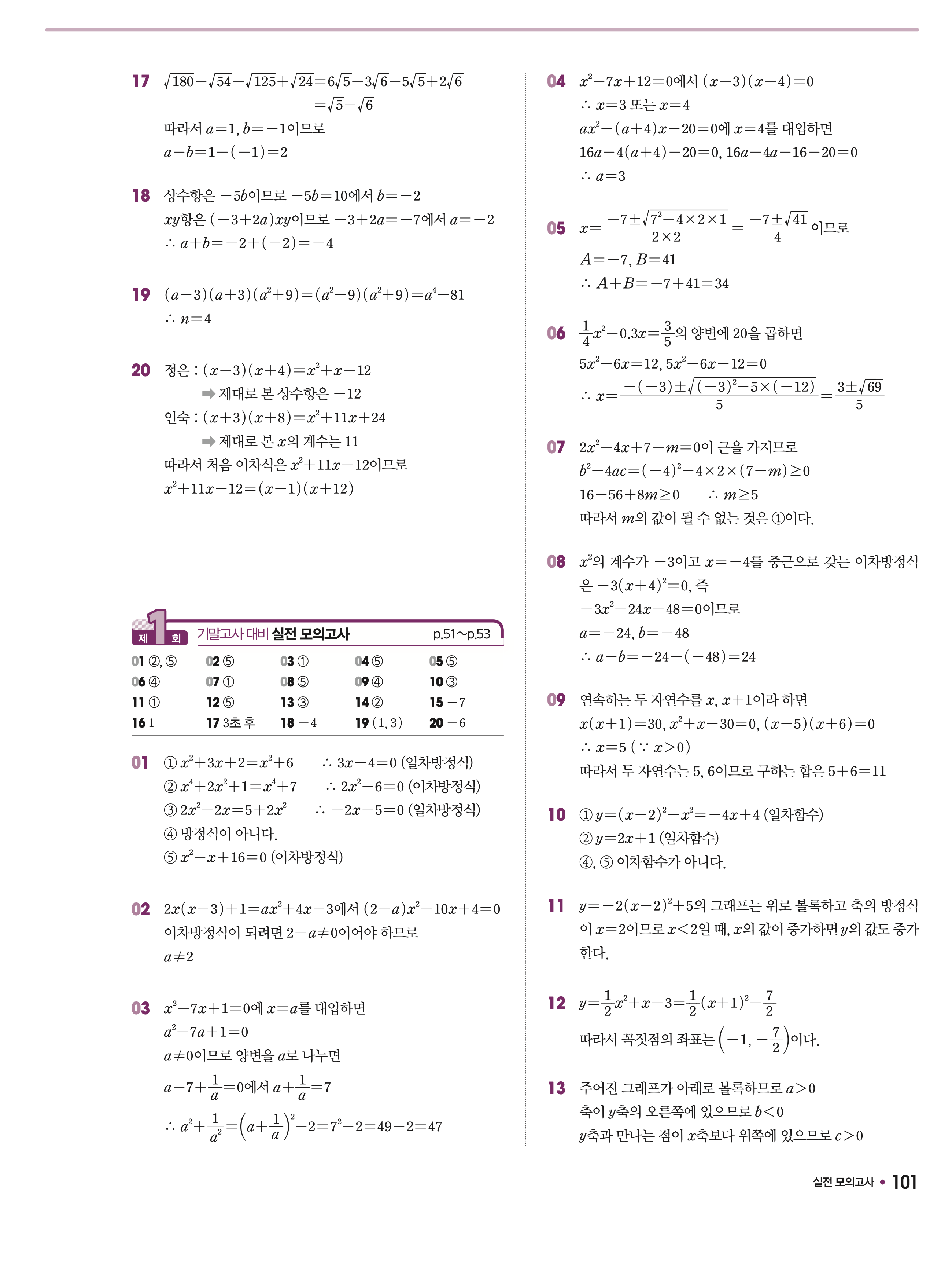 | 천재교육 이준열 중3 수학교과서 답지 | |