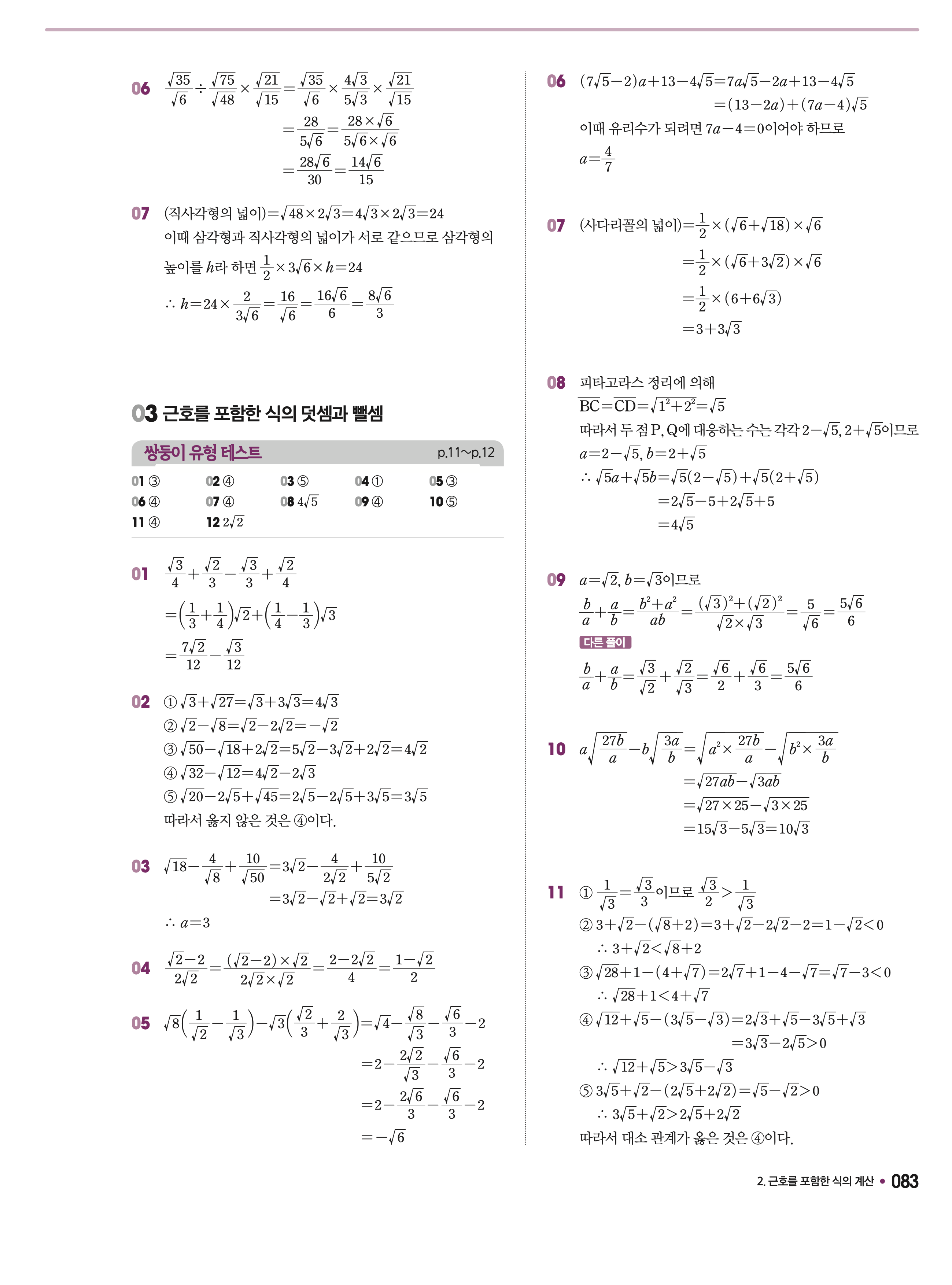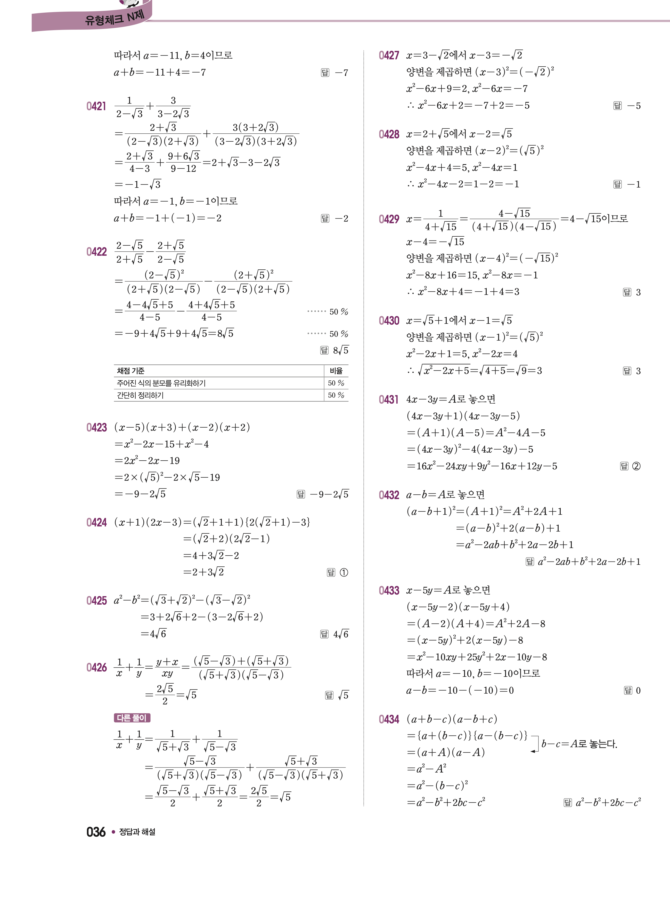 유형체크n제 중3-1 답지 해설 바로보는 사진답지 빠른답지 모바일최적화