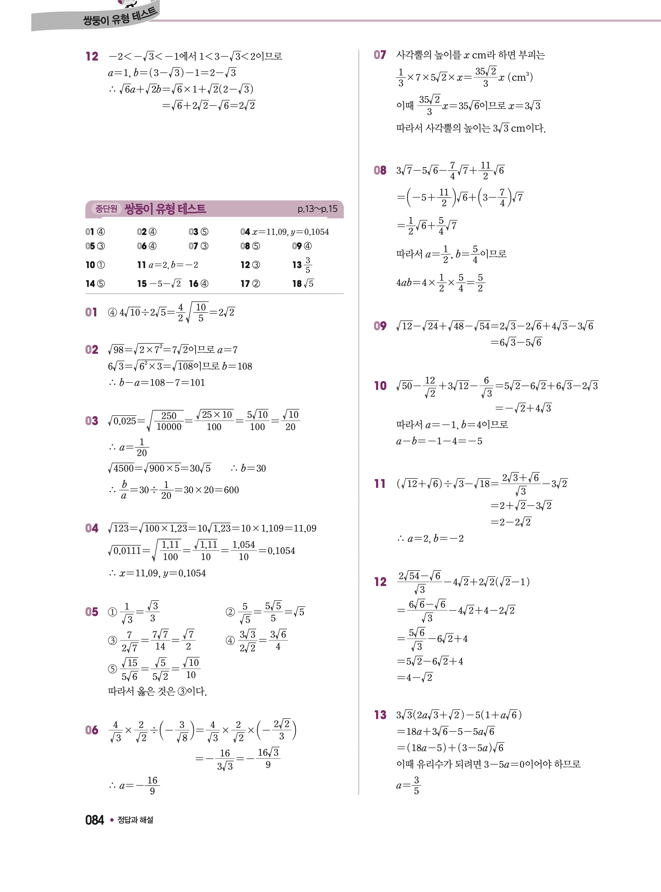 | 개념쎈 중3-2 답지 | https://mathuncle.tistory.com/194 |
