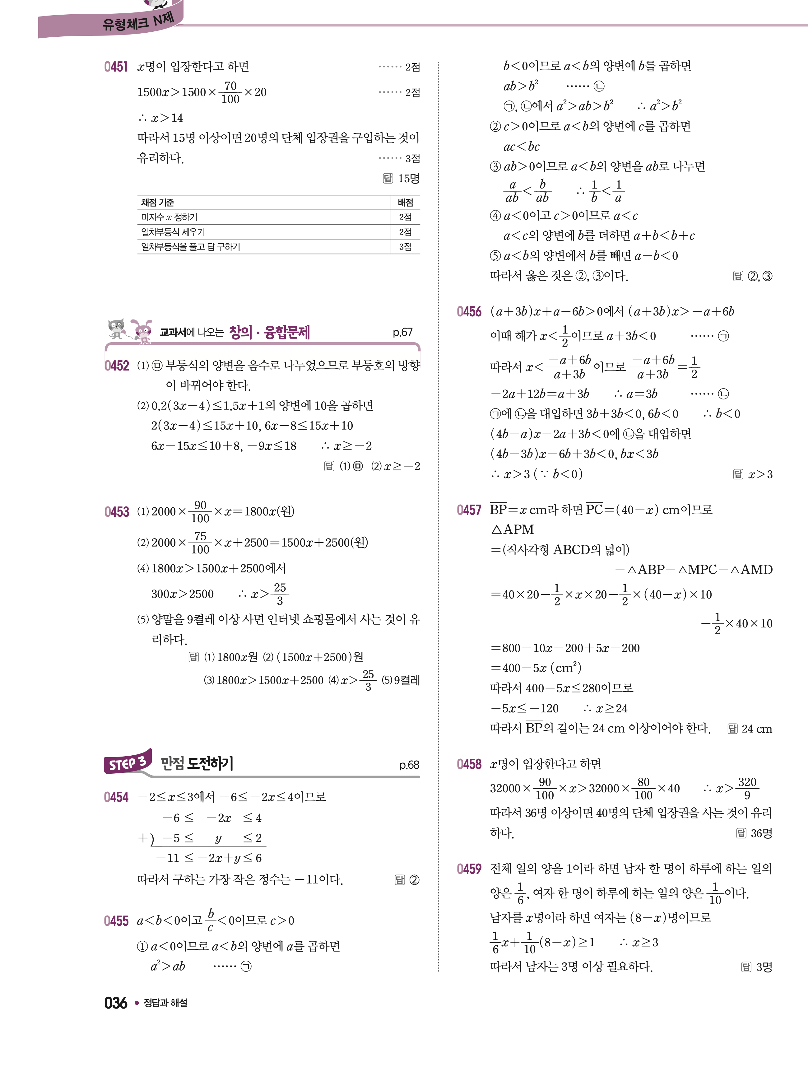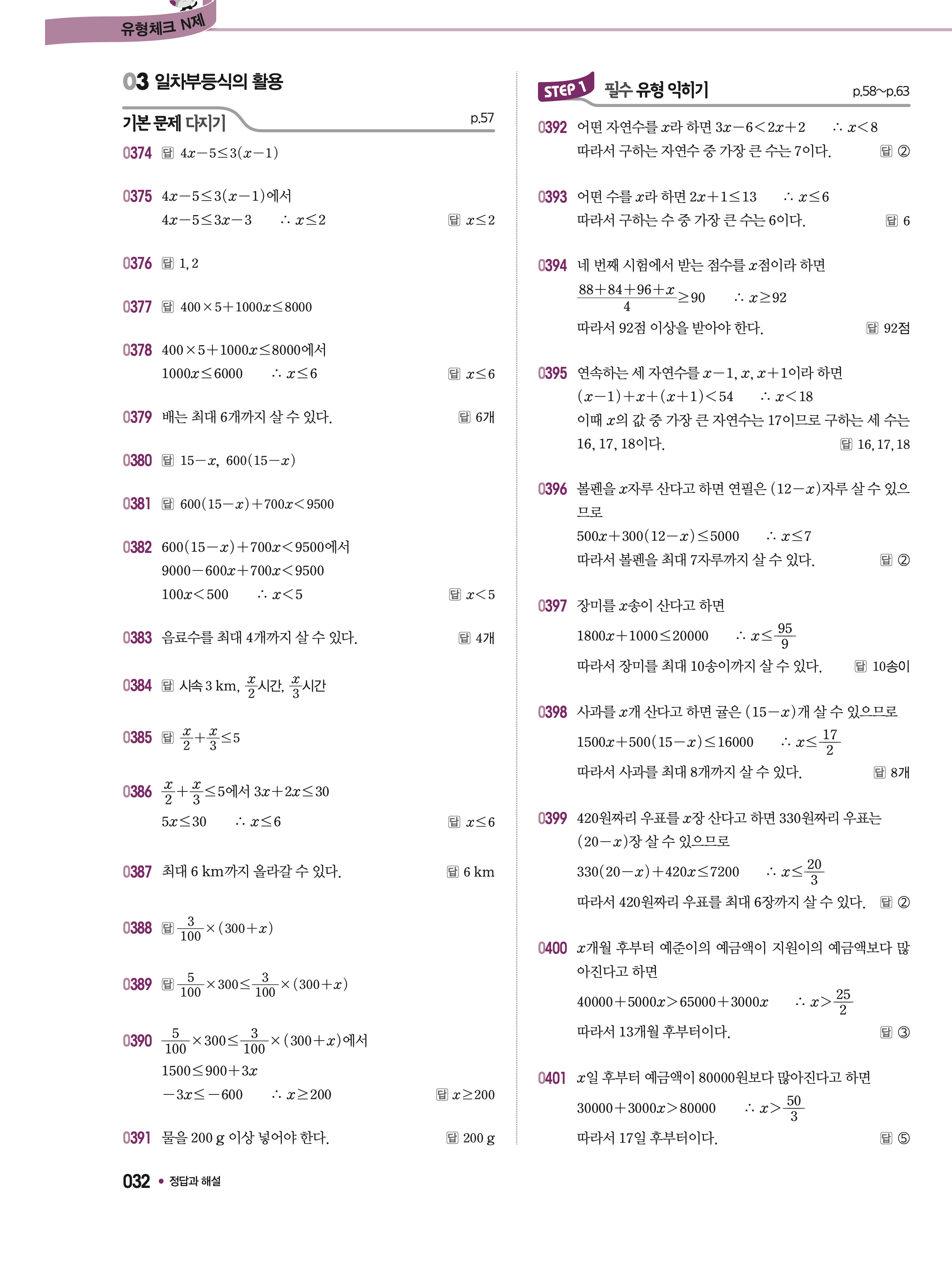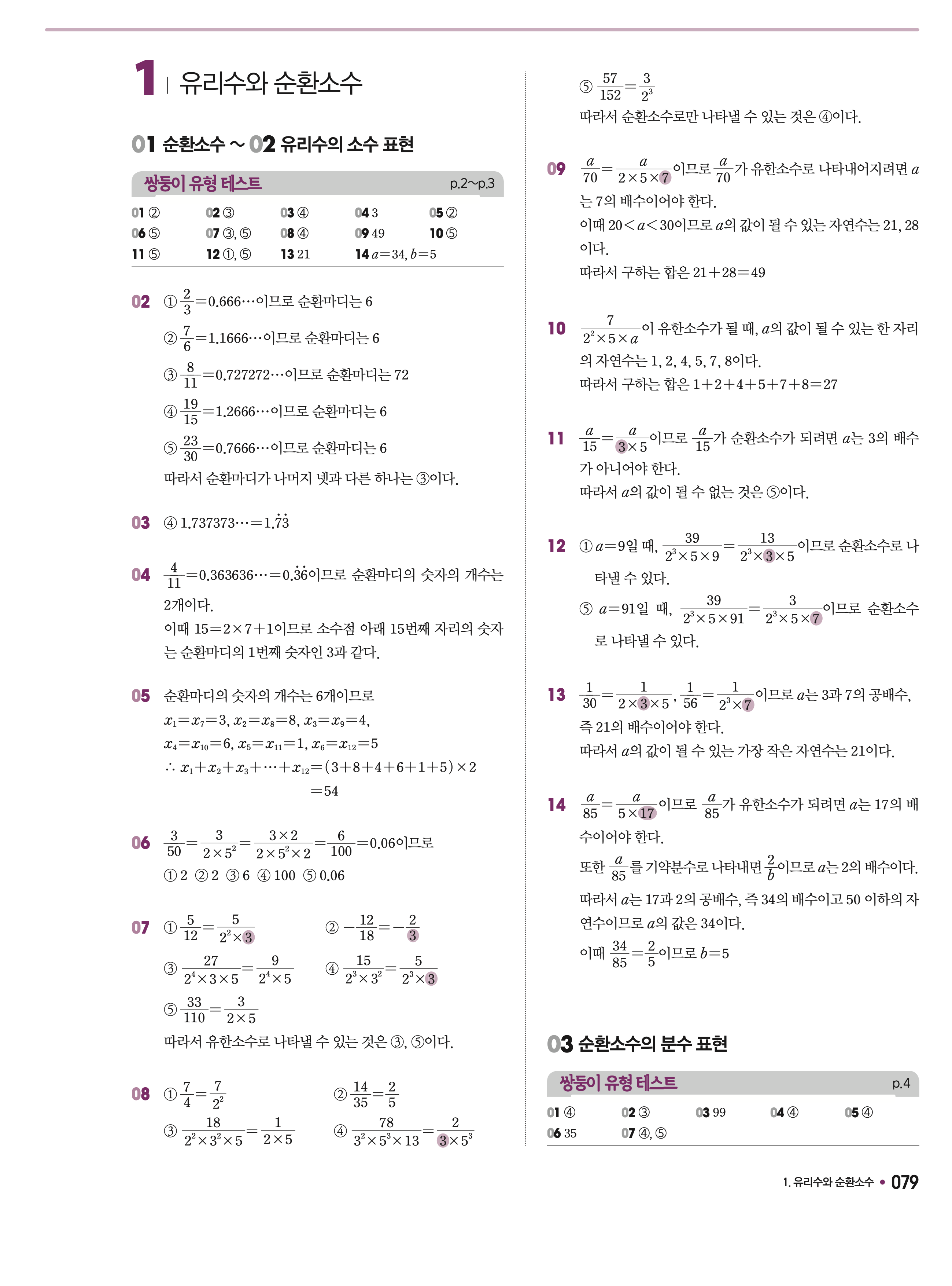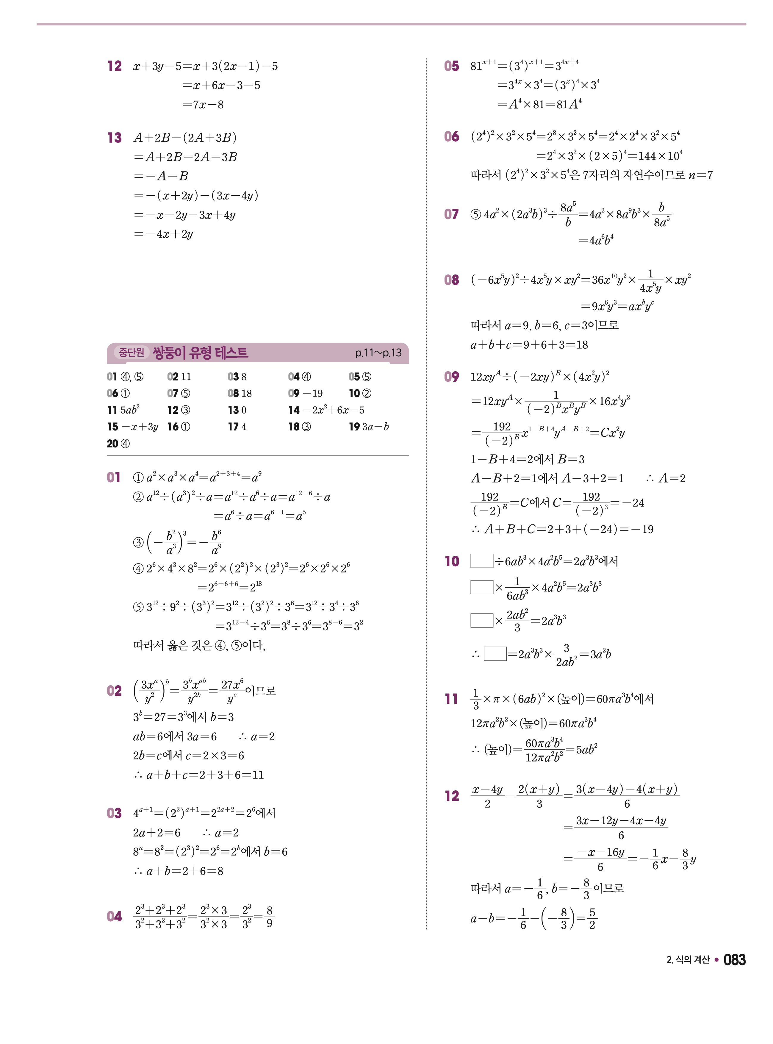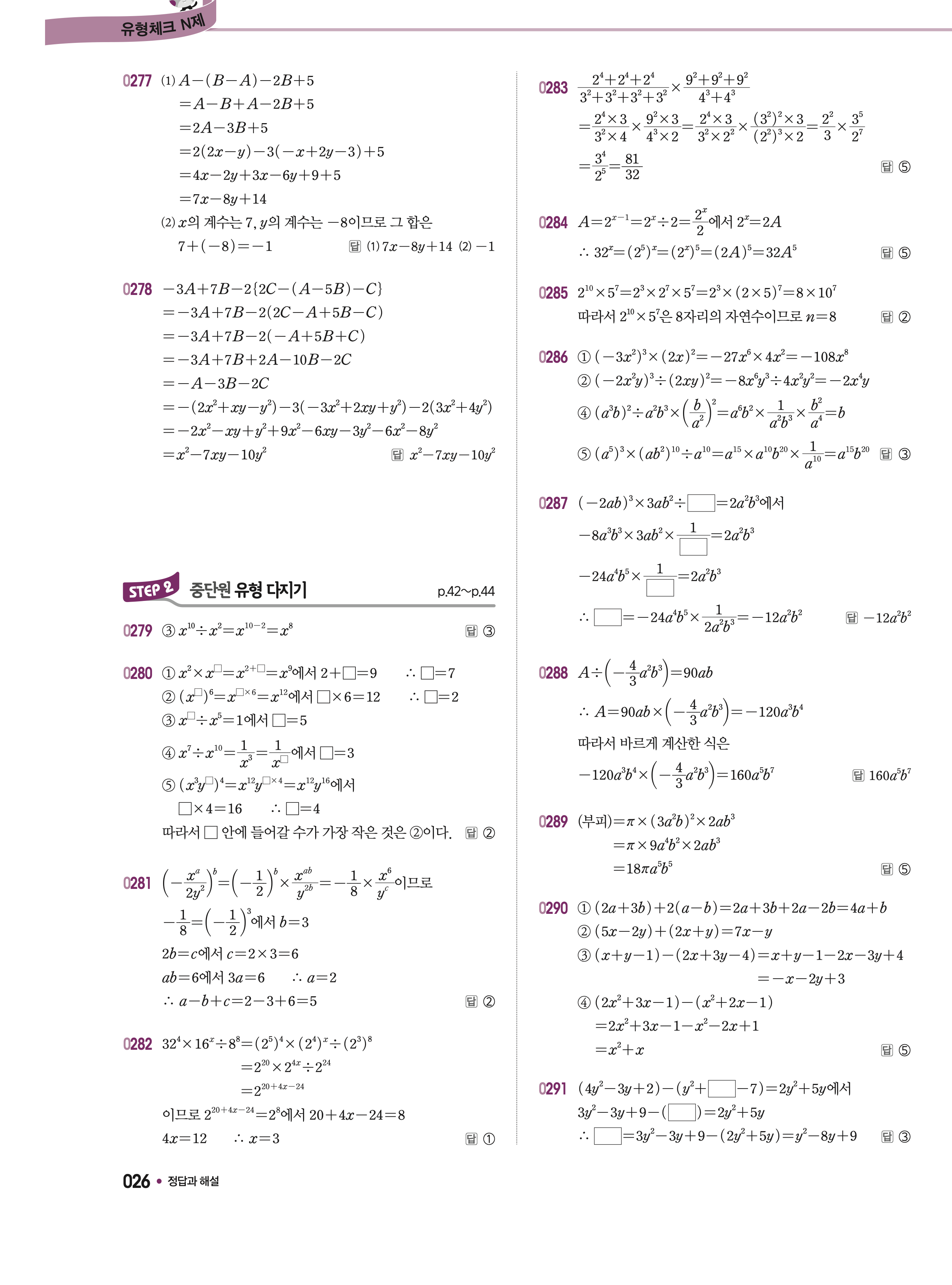 유형체크n제 중2-1 답지 해설 바로보는 사진답지 빠른답지 모바일최적화