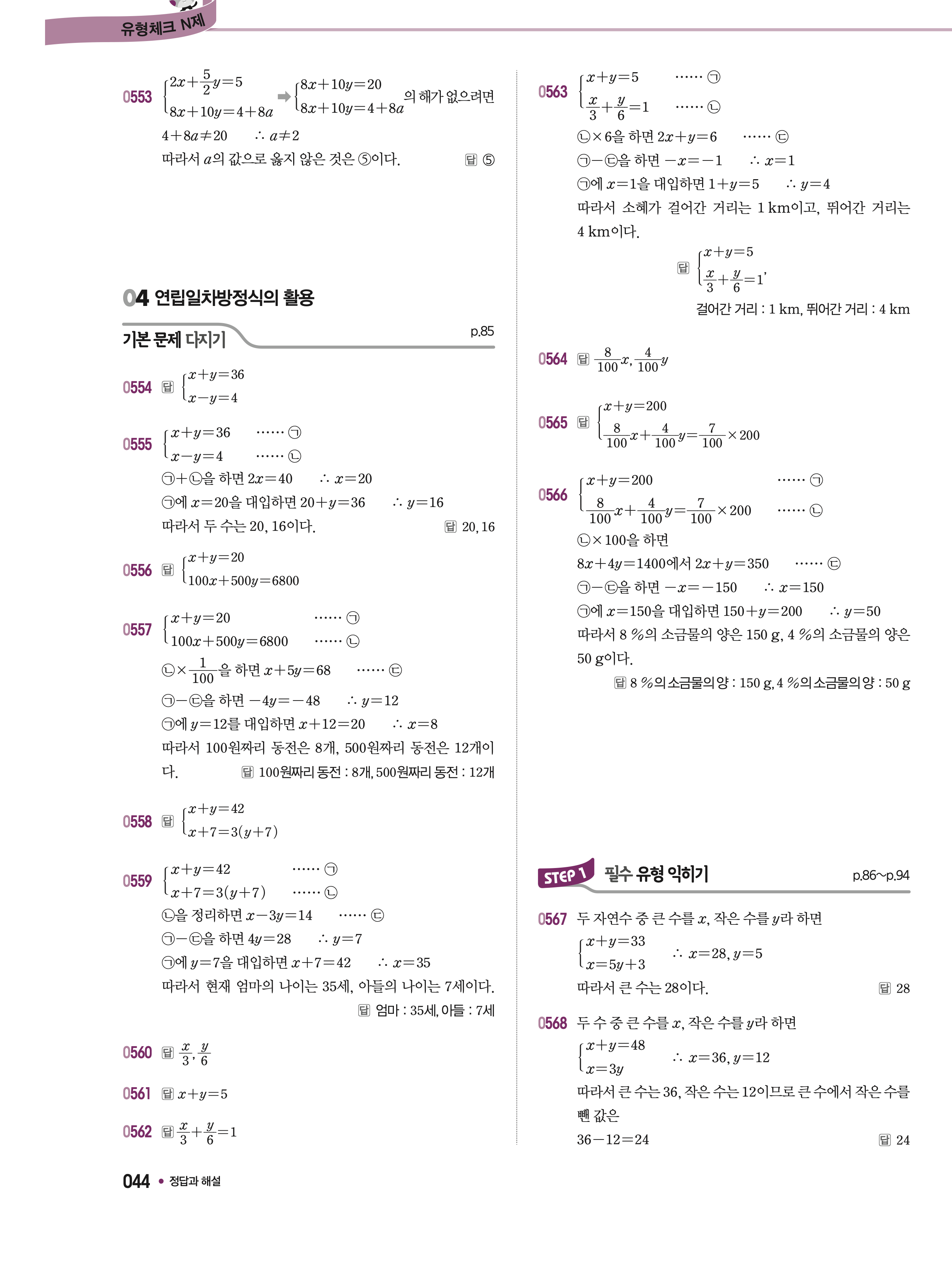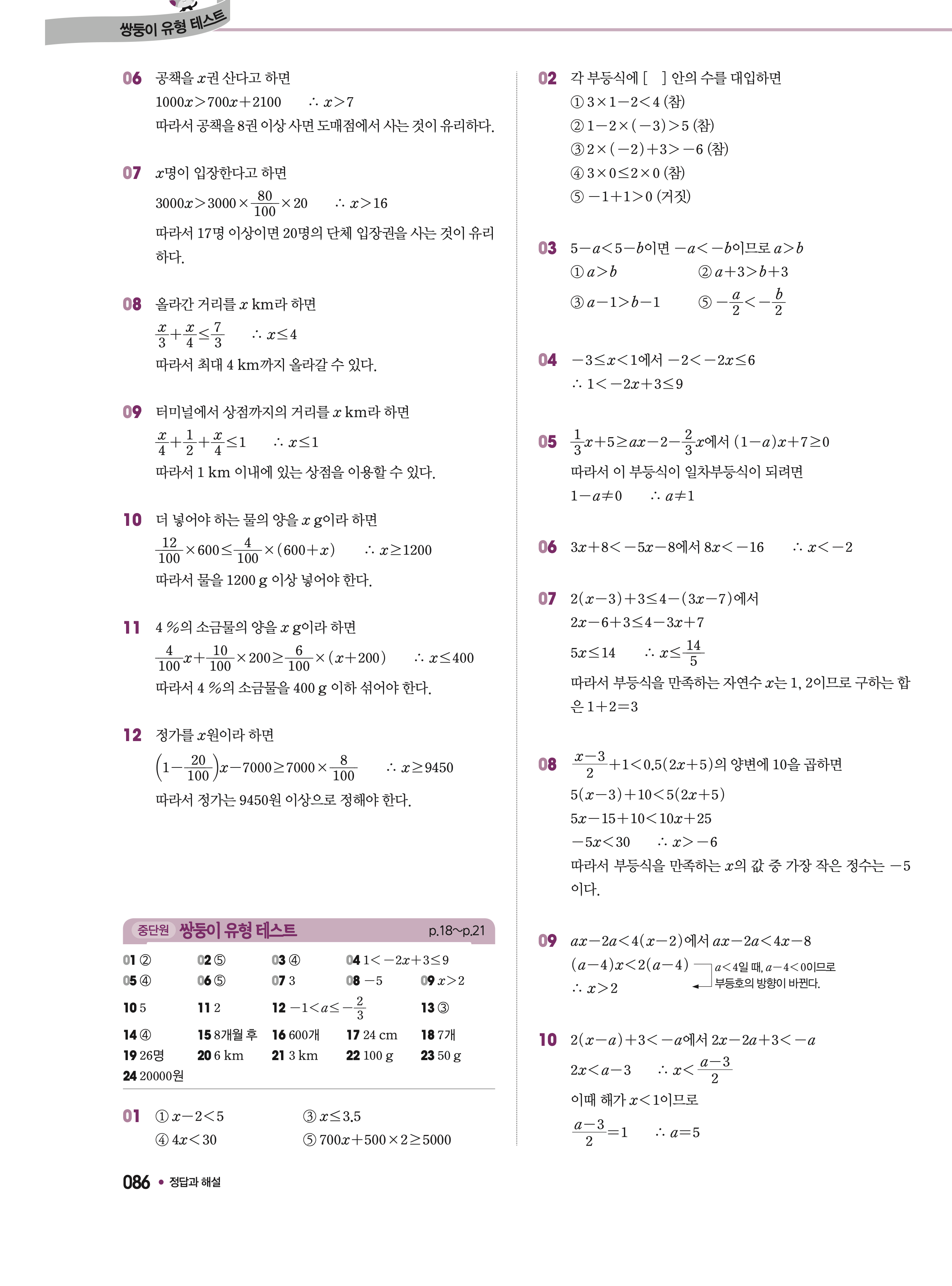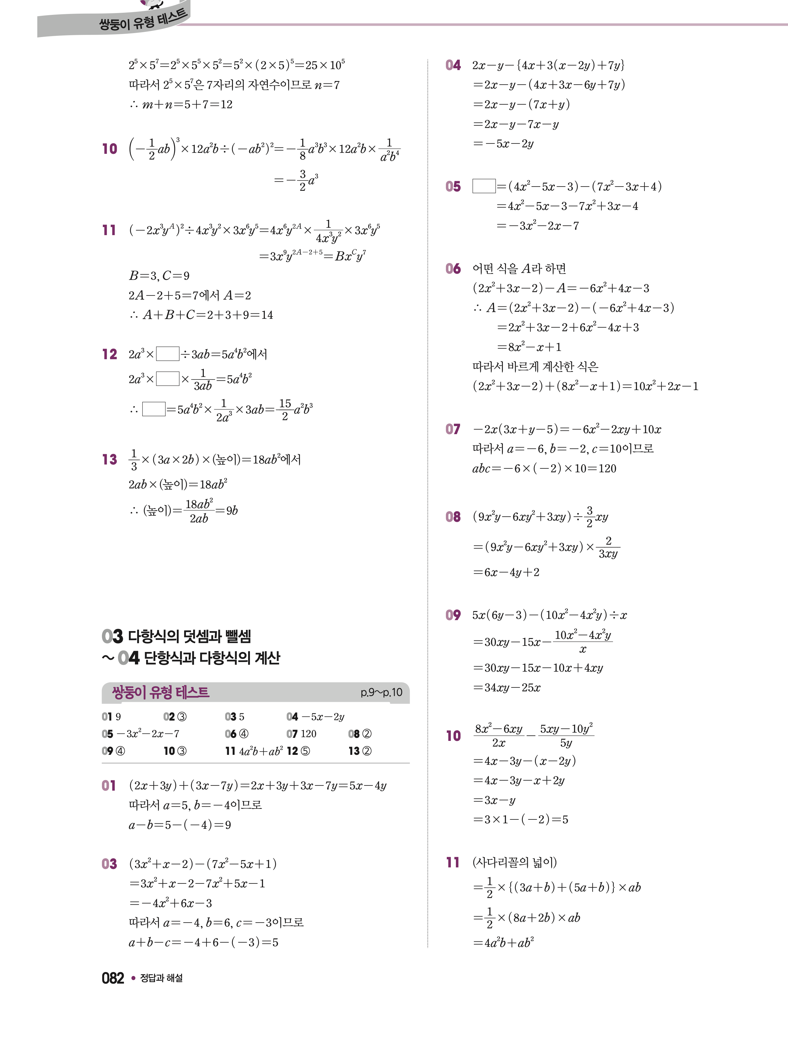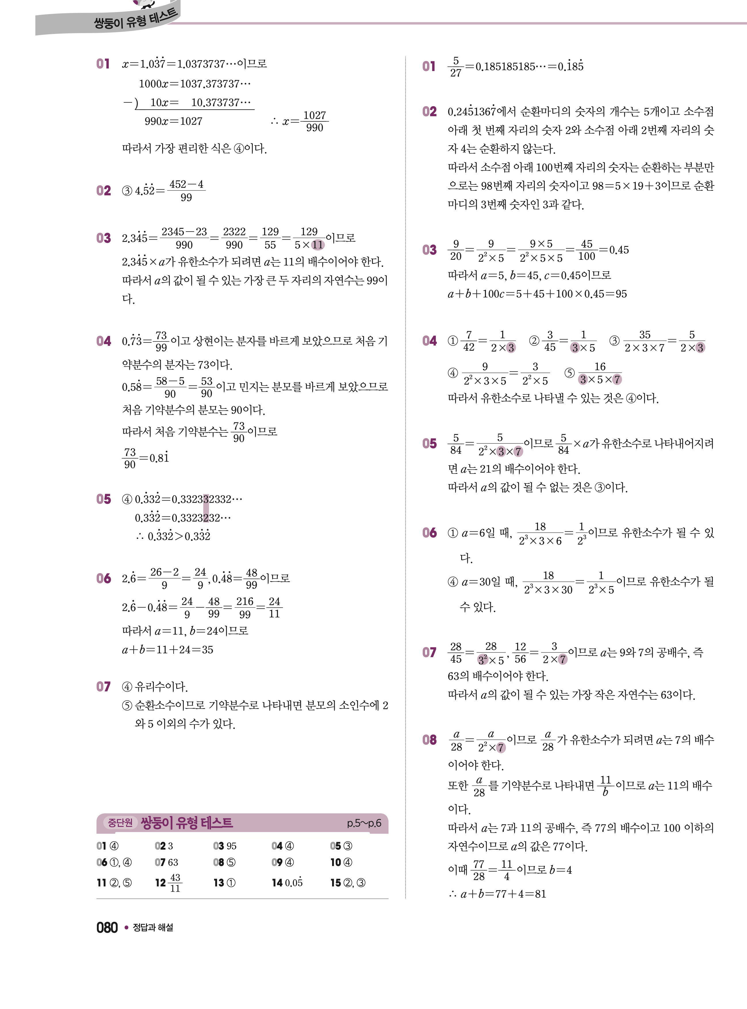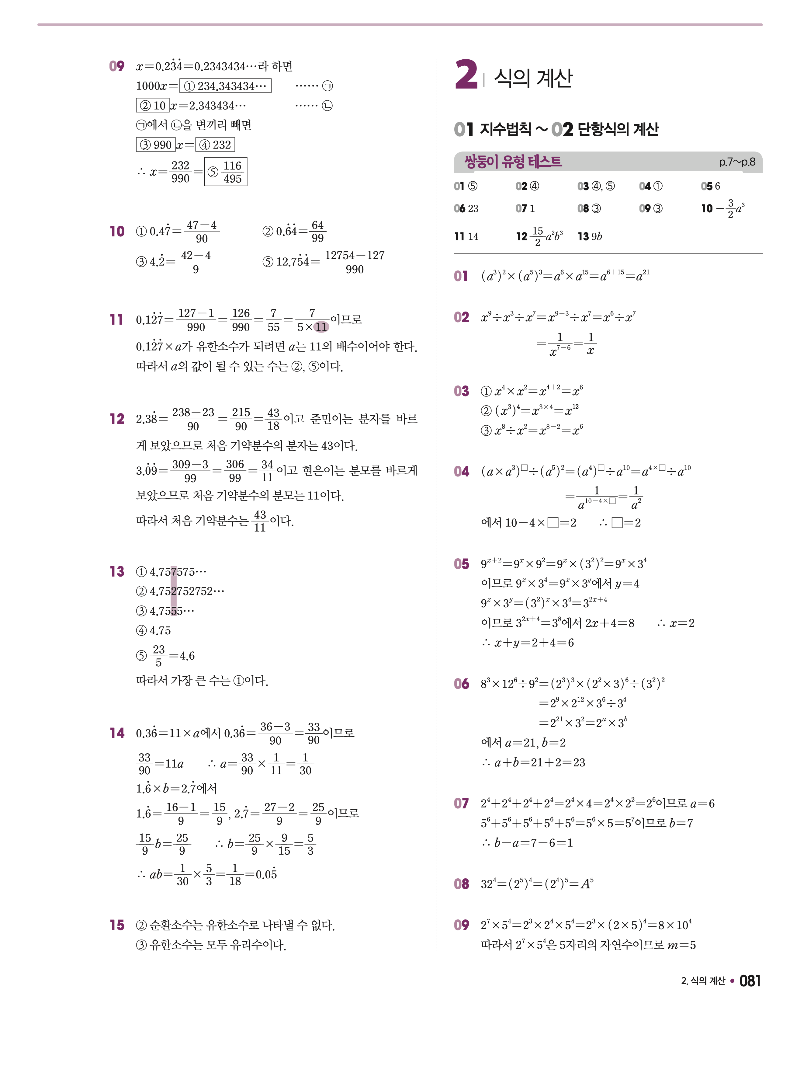 유형체크n제 중2-1 답지 해설 바로보는 사진답지 빠른답지 모바일최적화