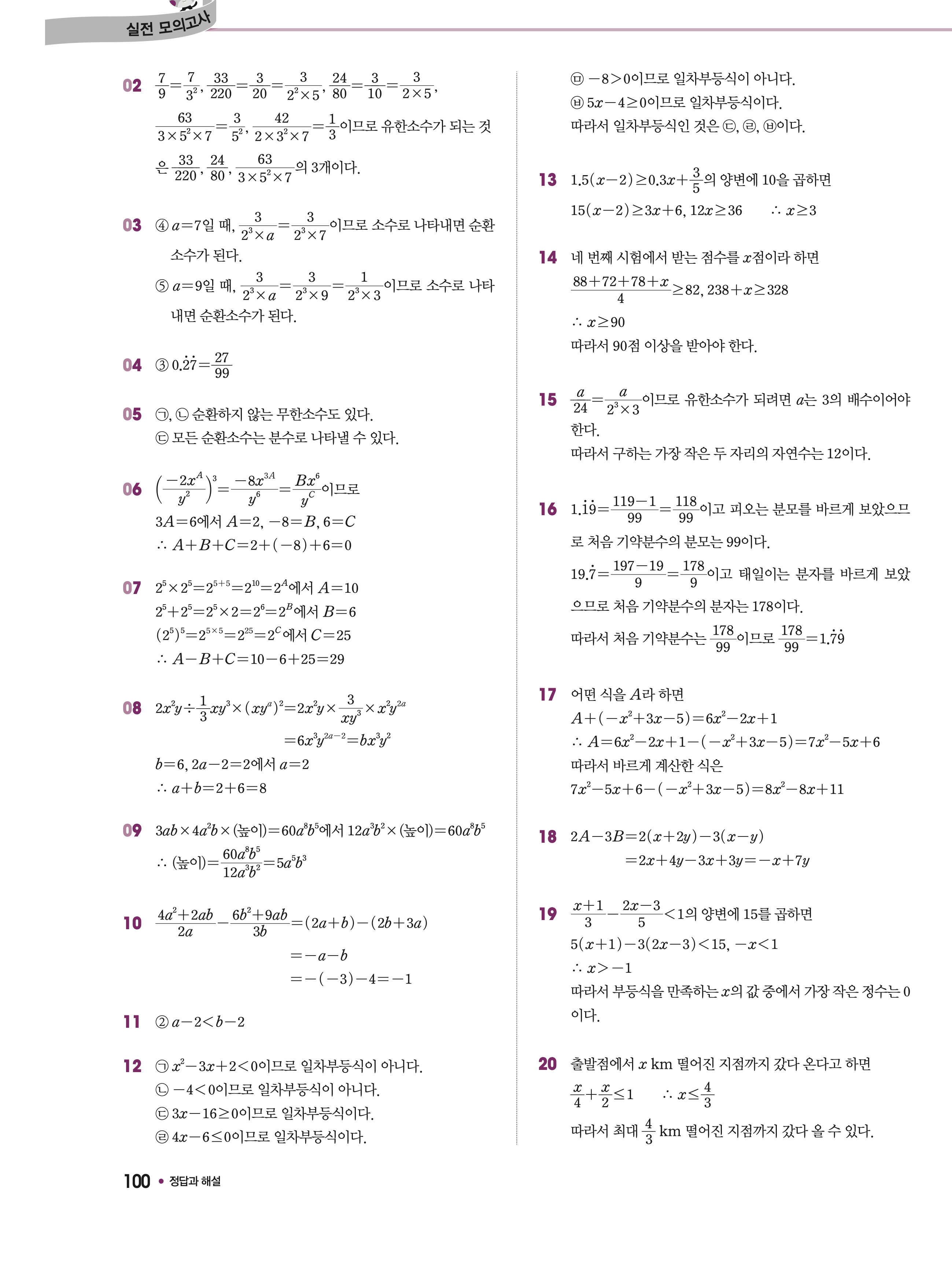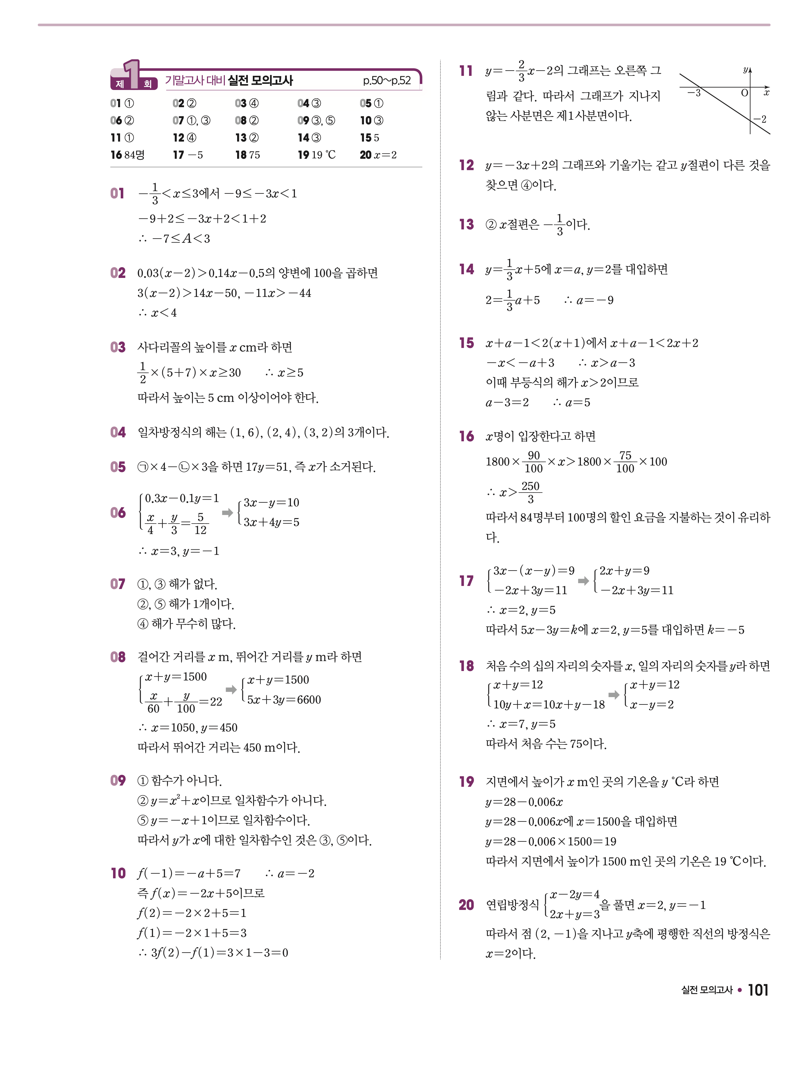 | 천재교육 이준열 중2 수학교과서 답지 | |