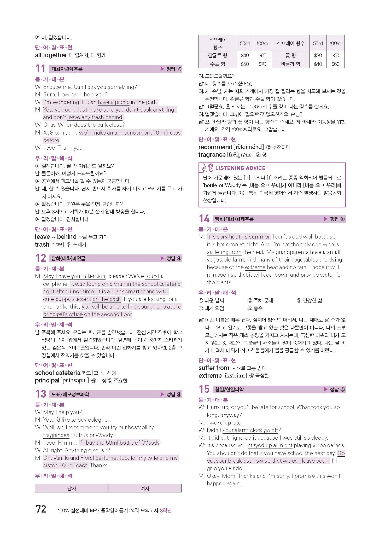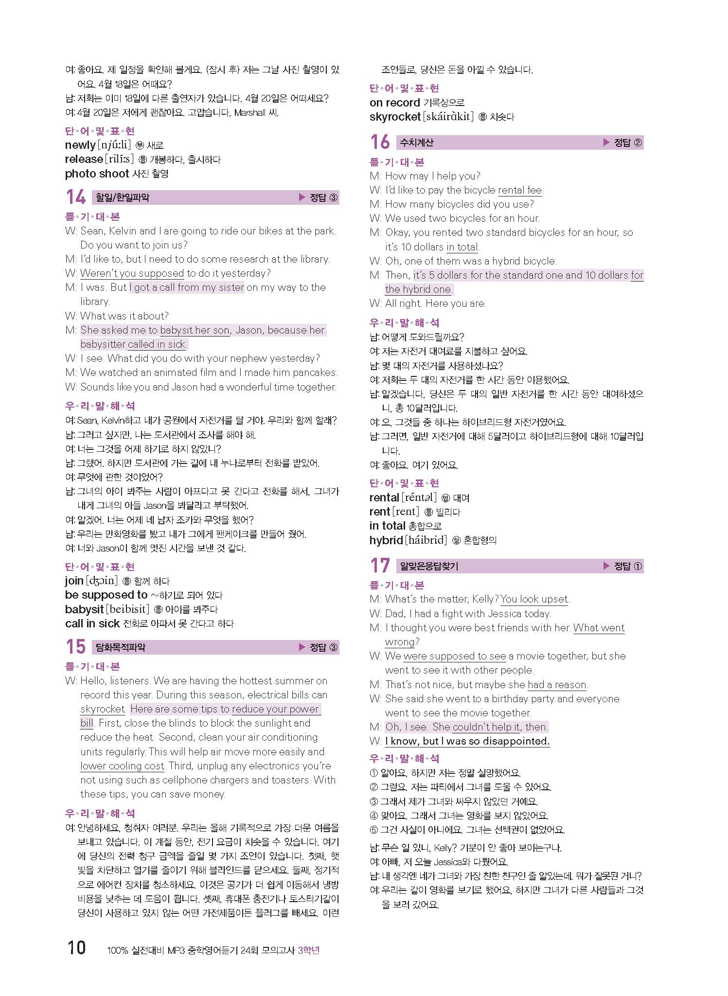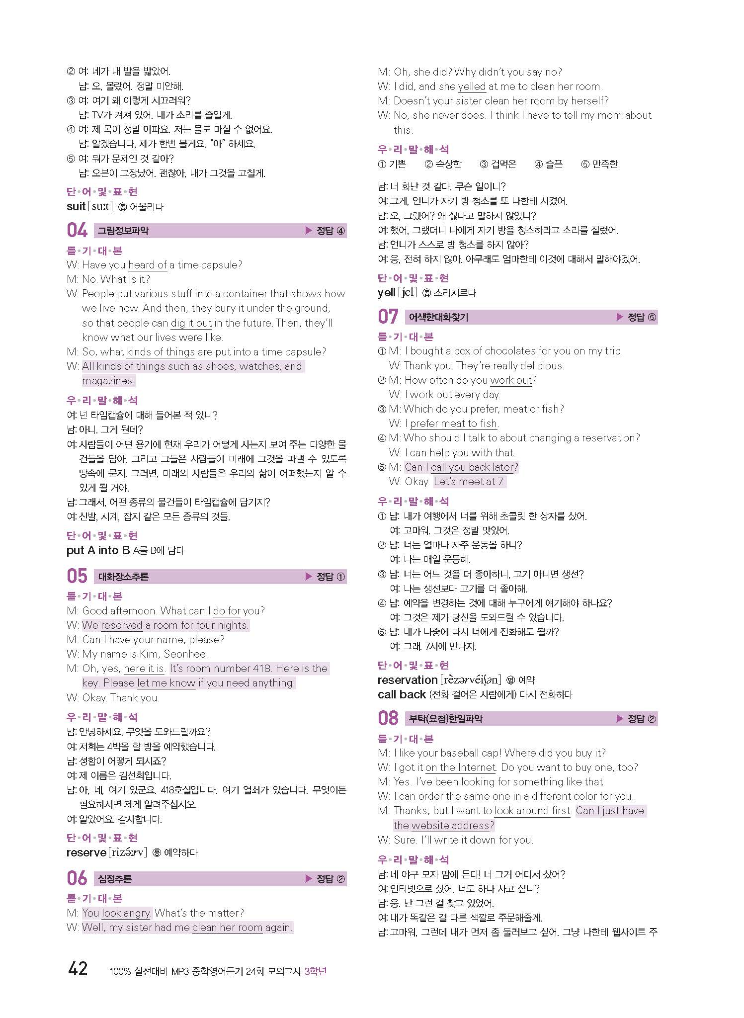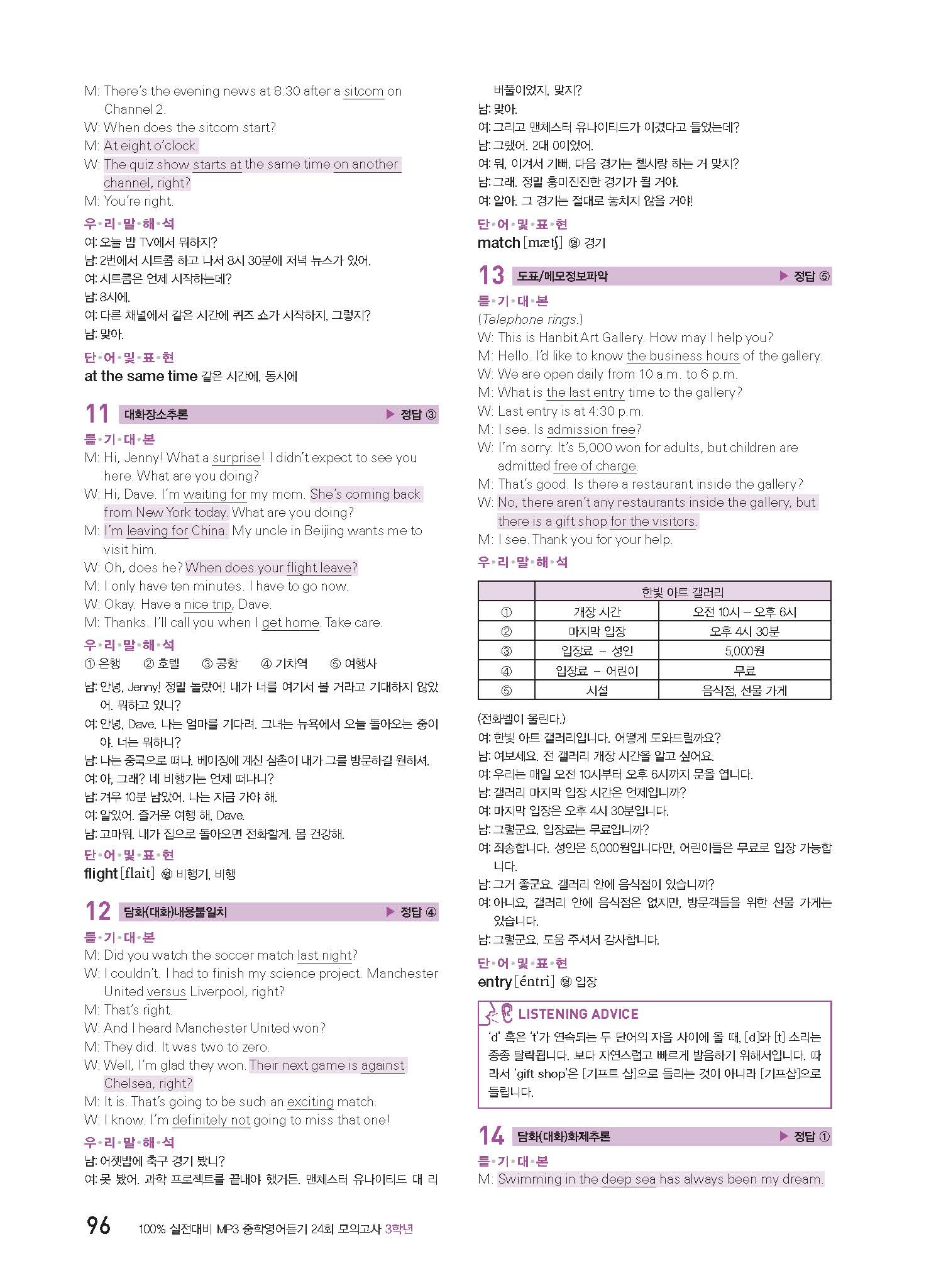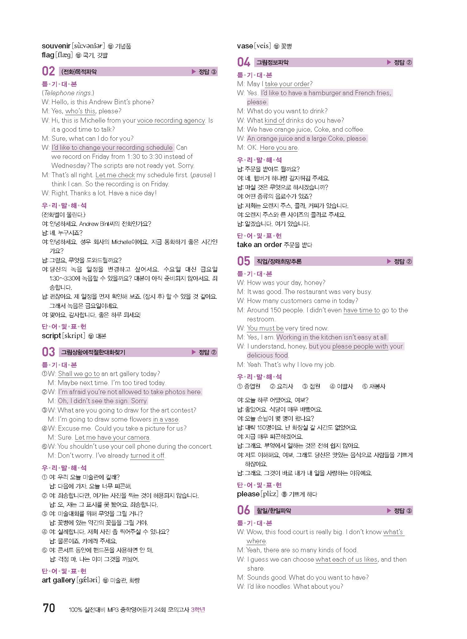 2021 100% 실전대비 MP3 중학영어듣기 24회 모의고사 3학년 답지 사진답지 빠른답지 모바일최적화