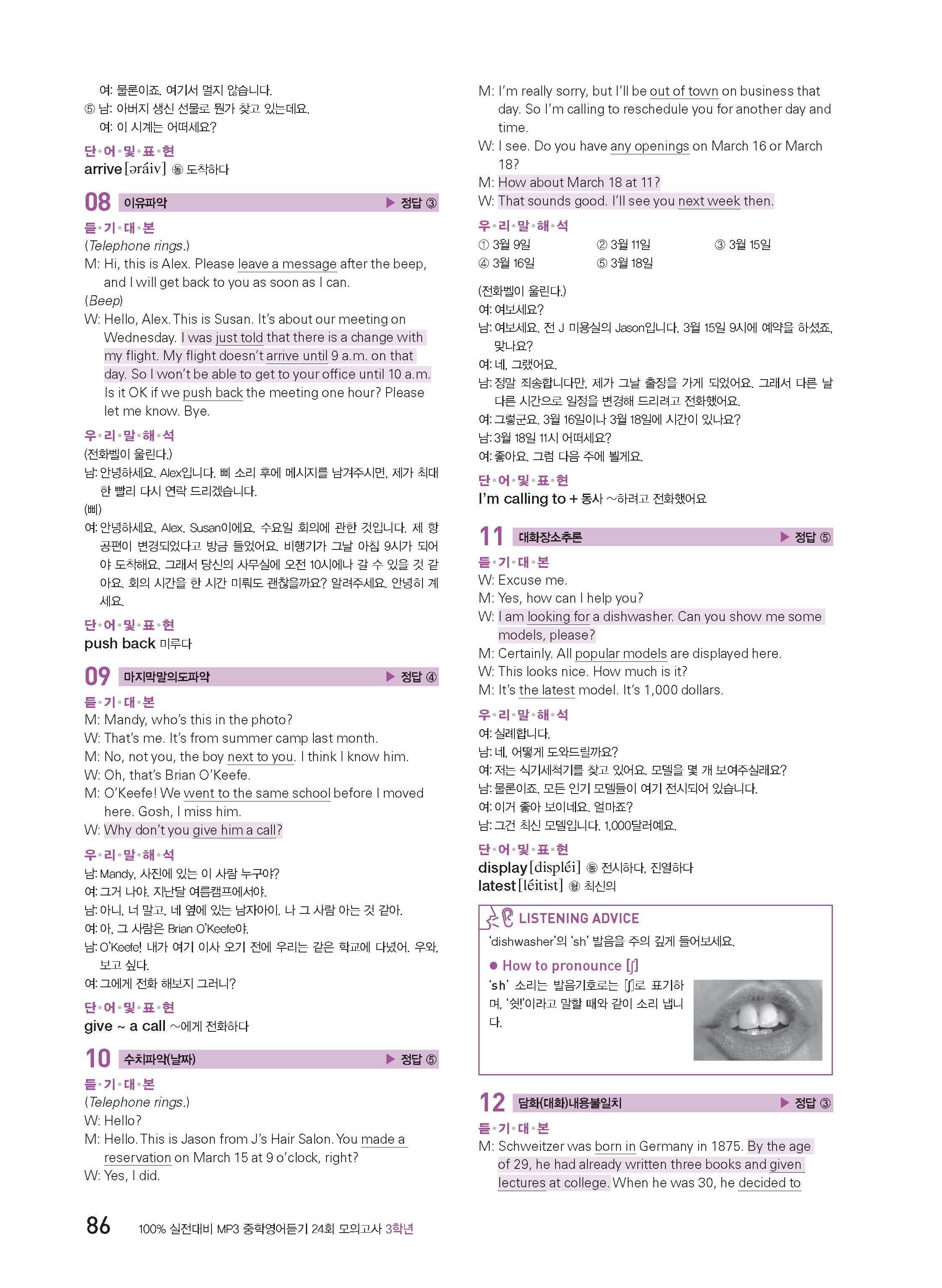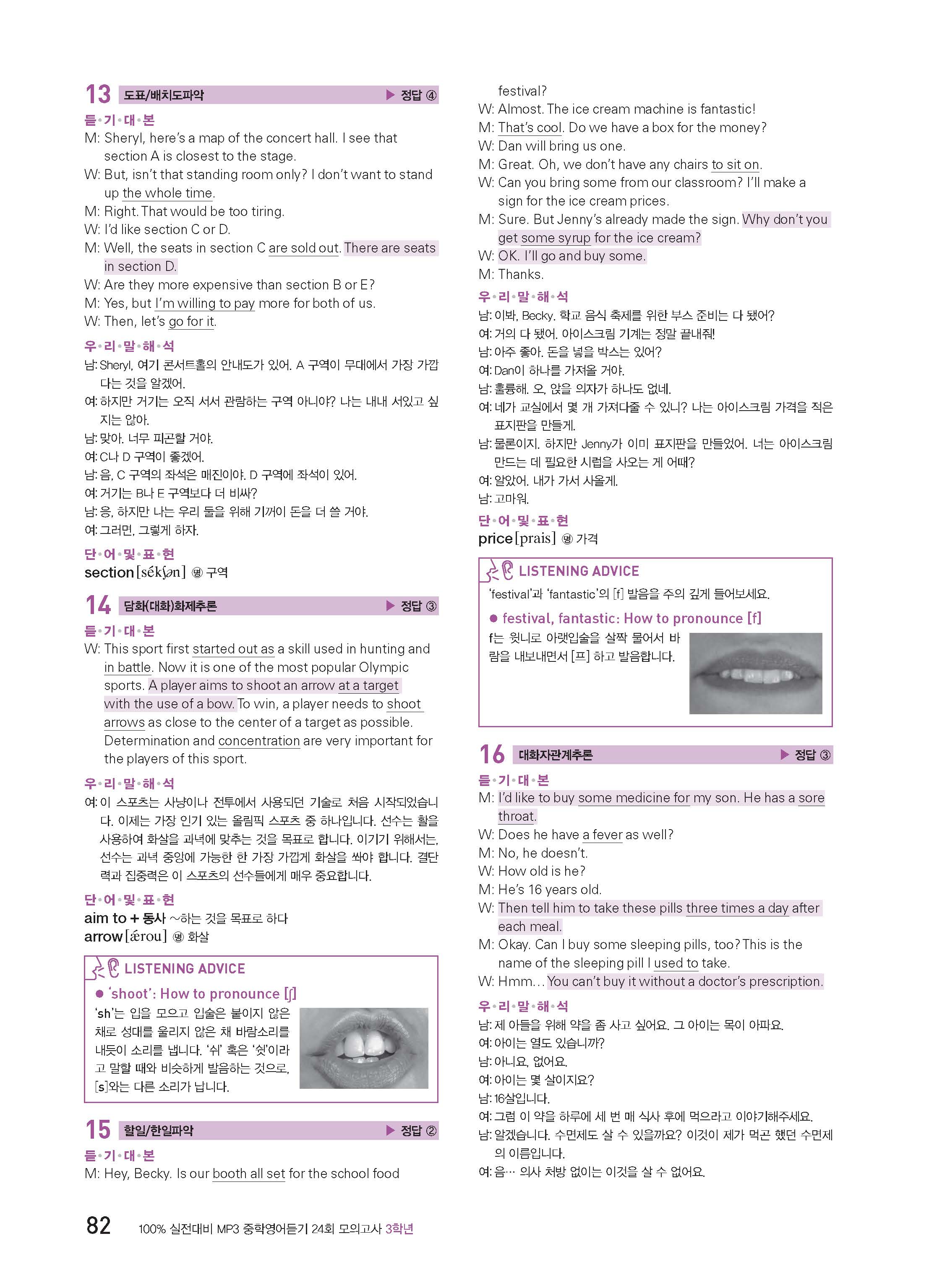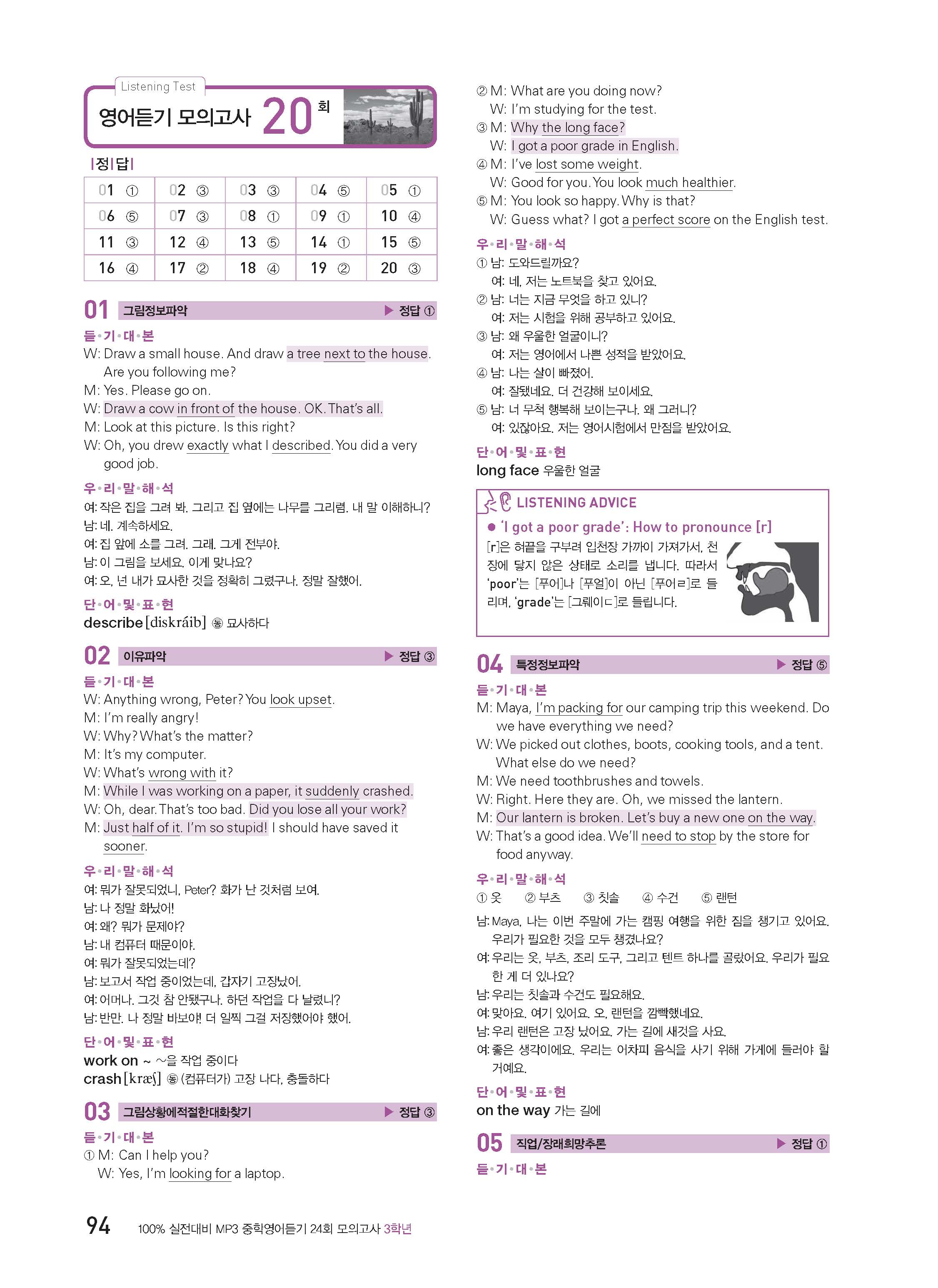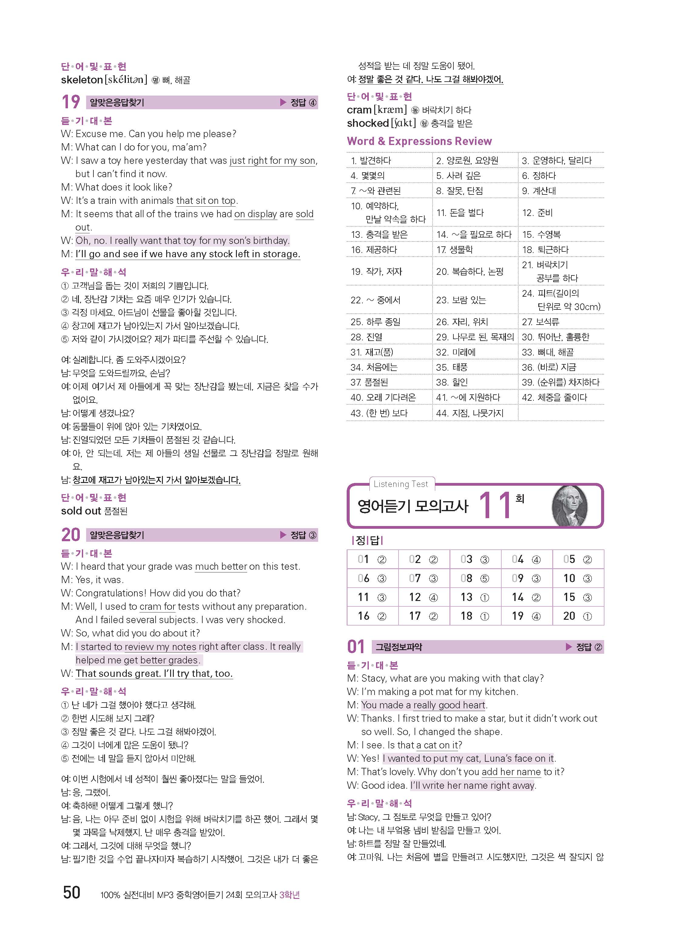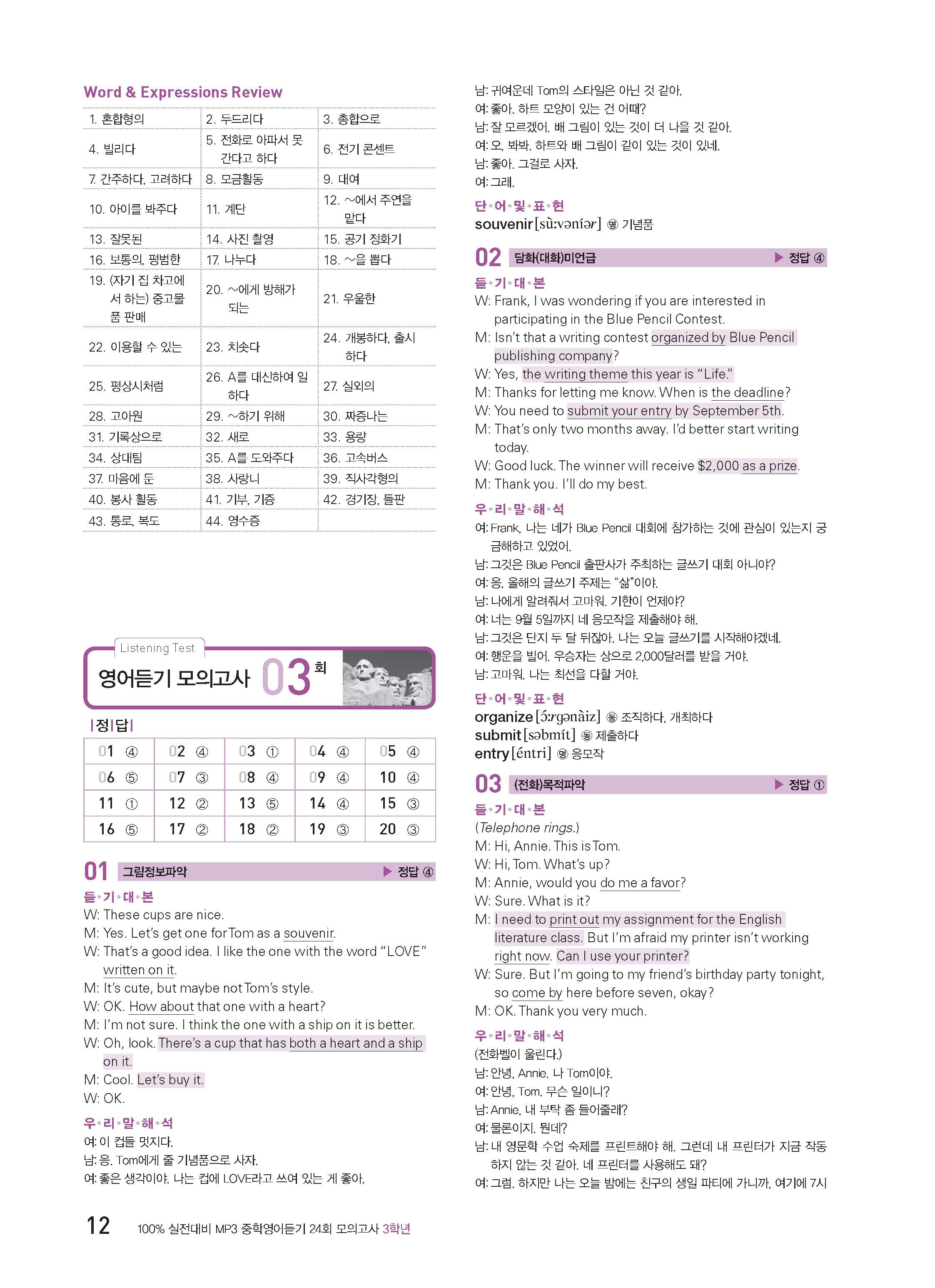 2021 100% 실전대비 MP3 중학영어듣기 24회 모의고사 3학년 답지 사진답지 빠른답지 모바일최적화