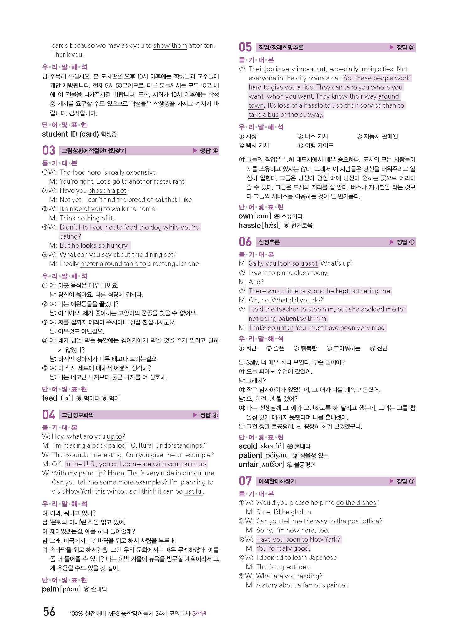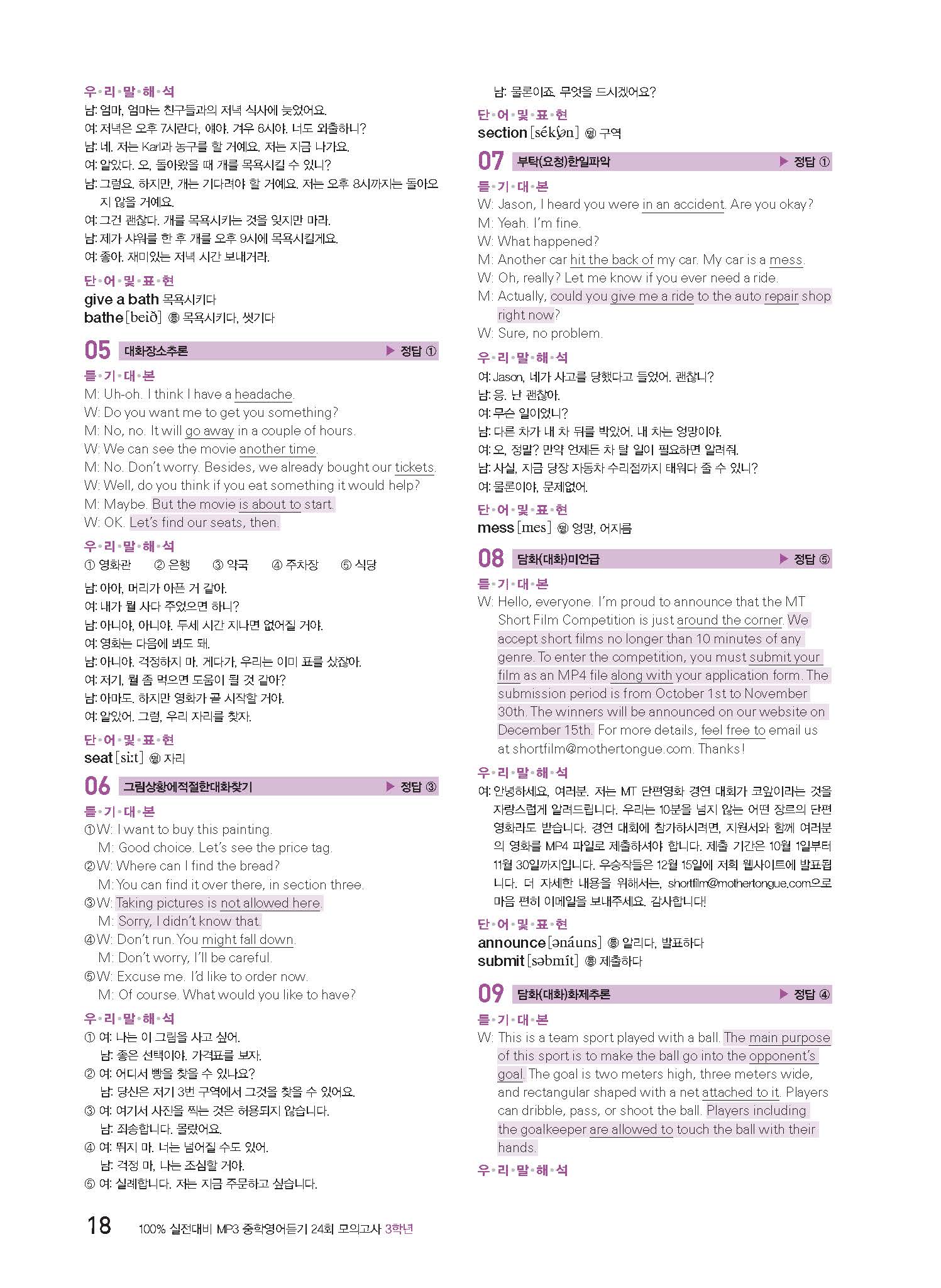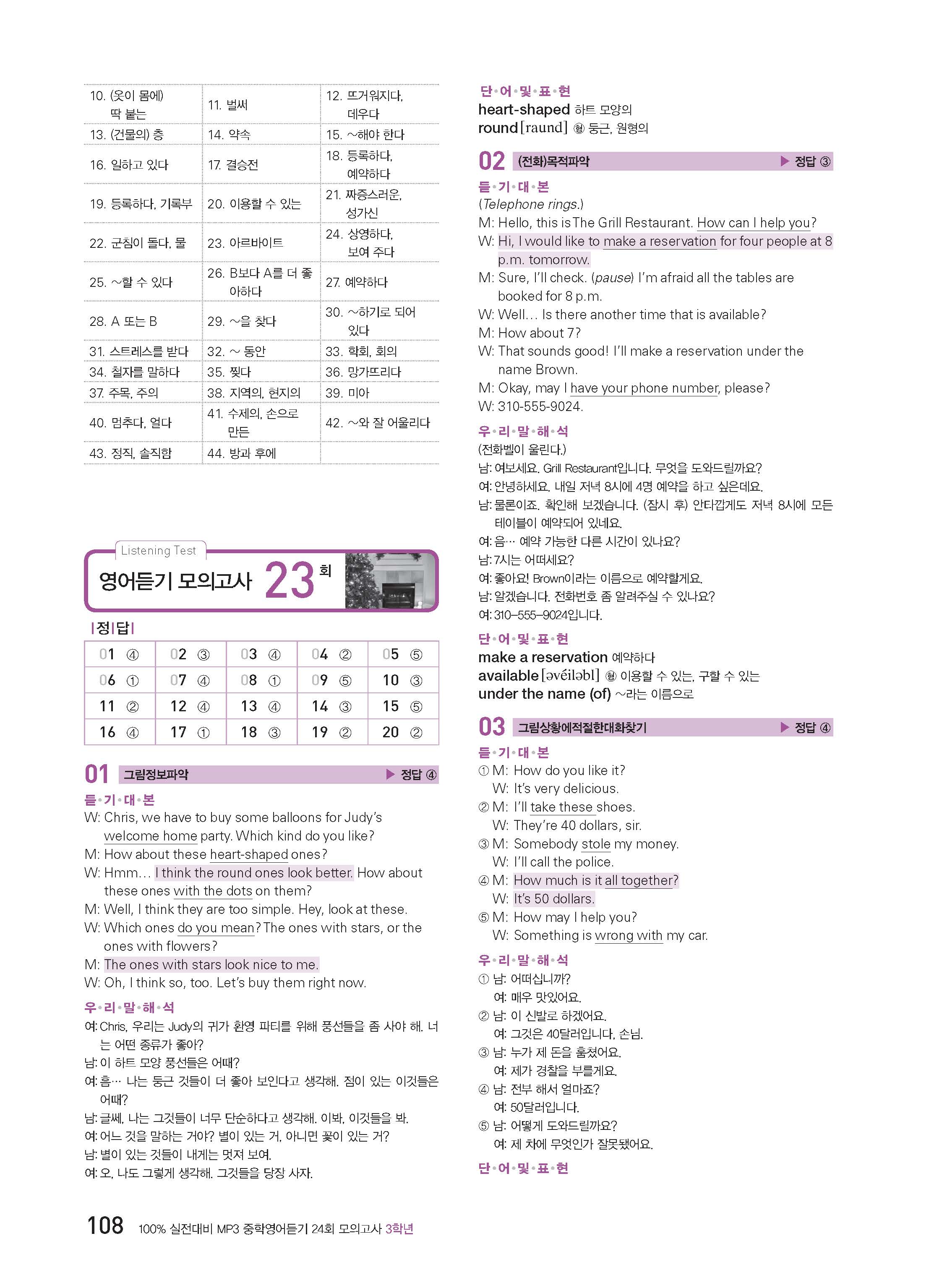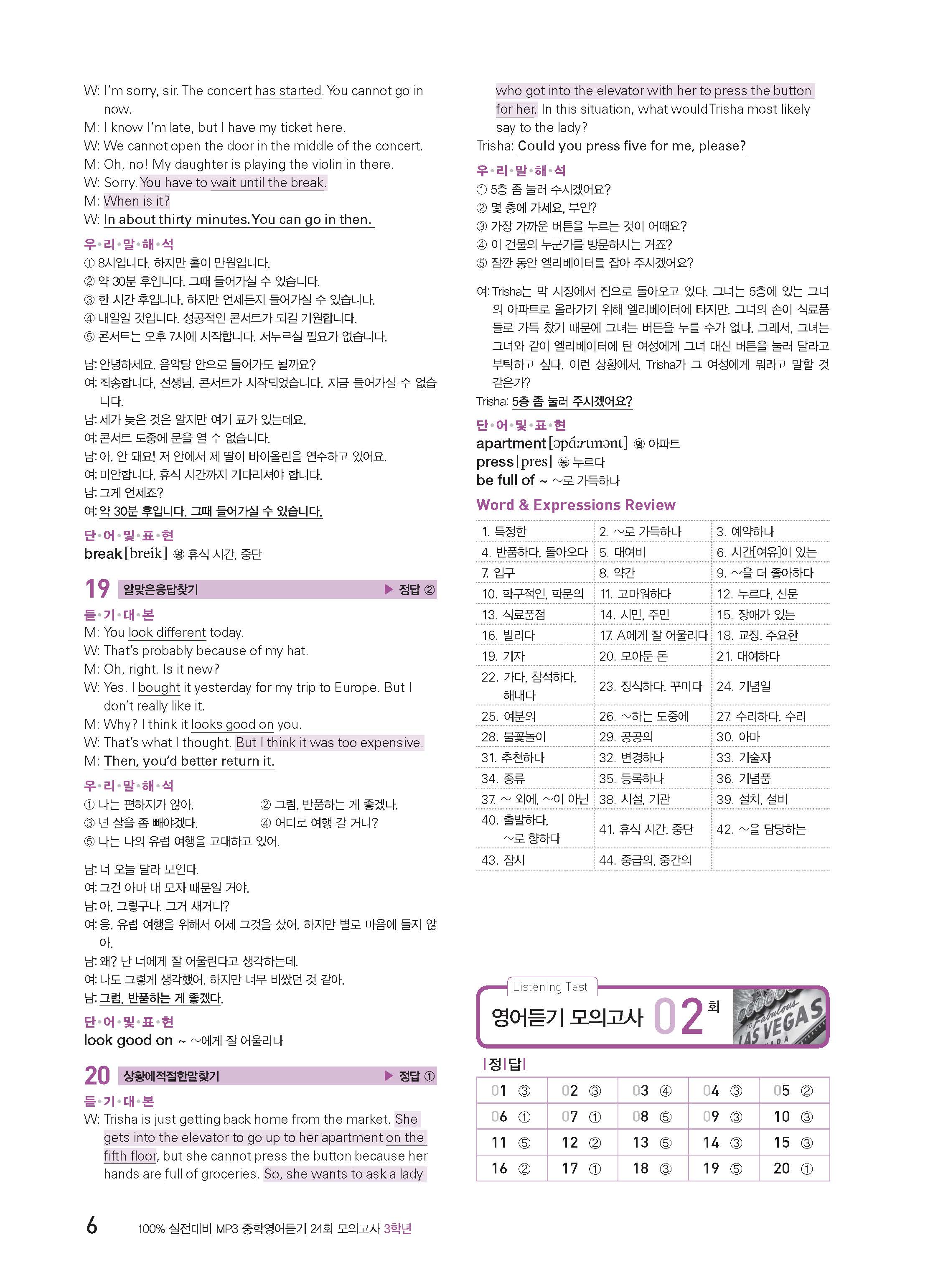 2021 100% 실전대비 MP3 중학영어듣기 24회 모의고사 3학년 답지 사진답지 빠른답지 모바일최적화