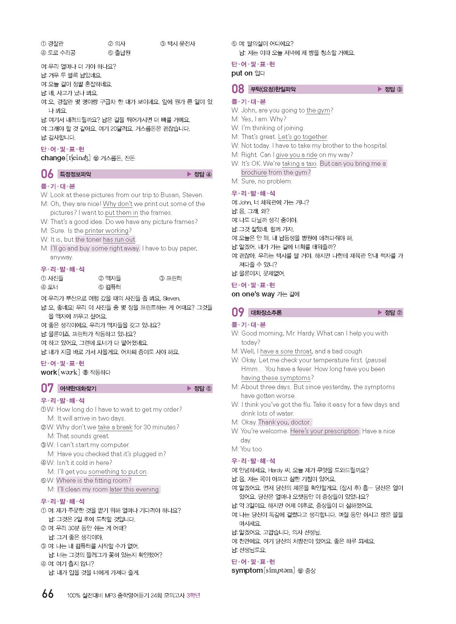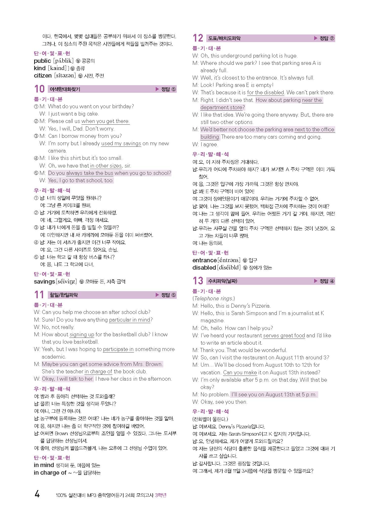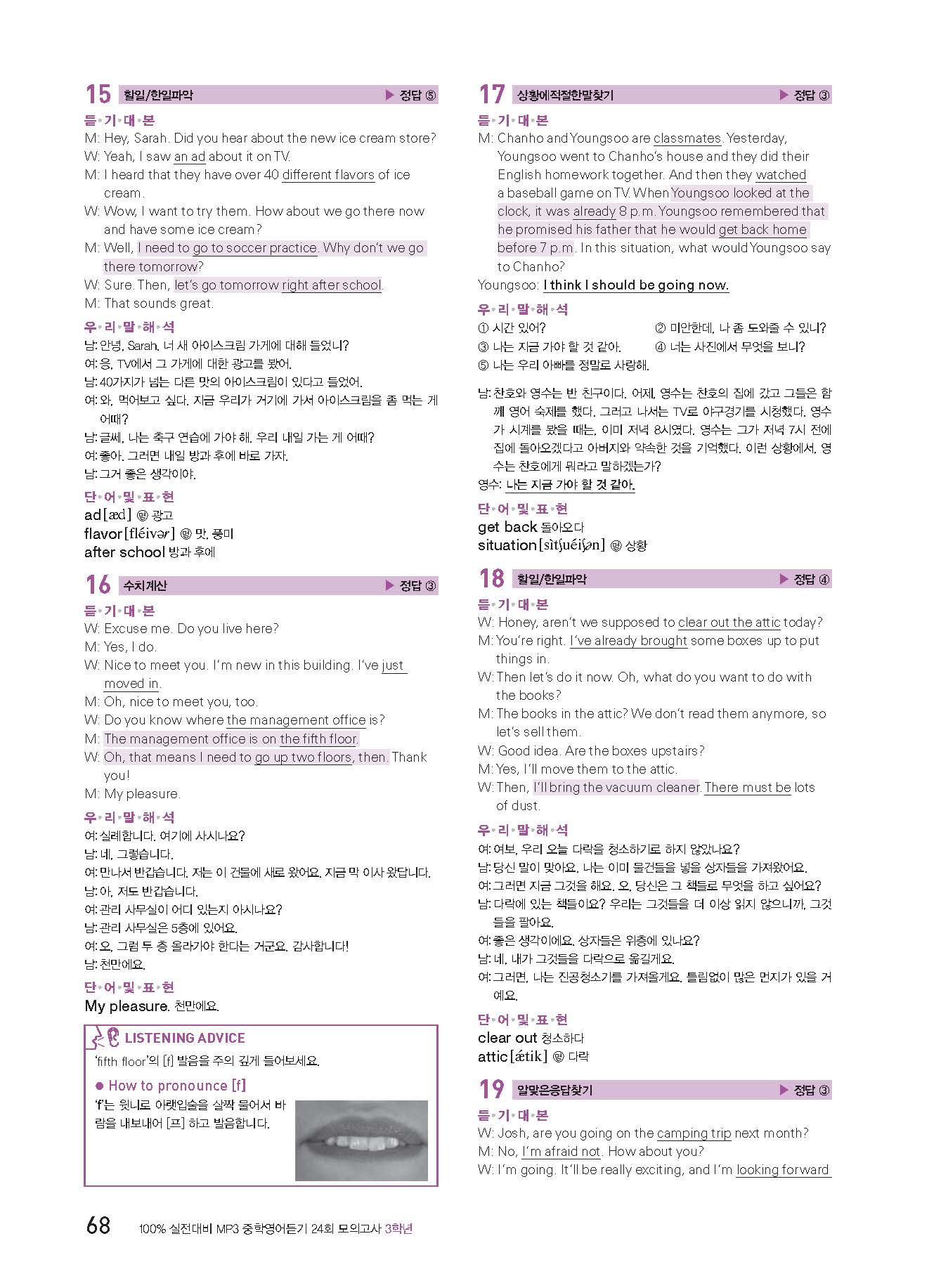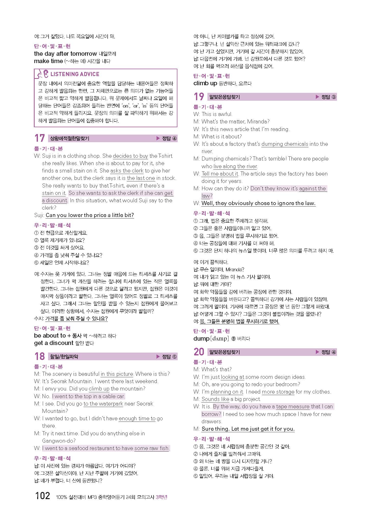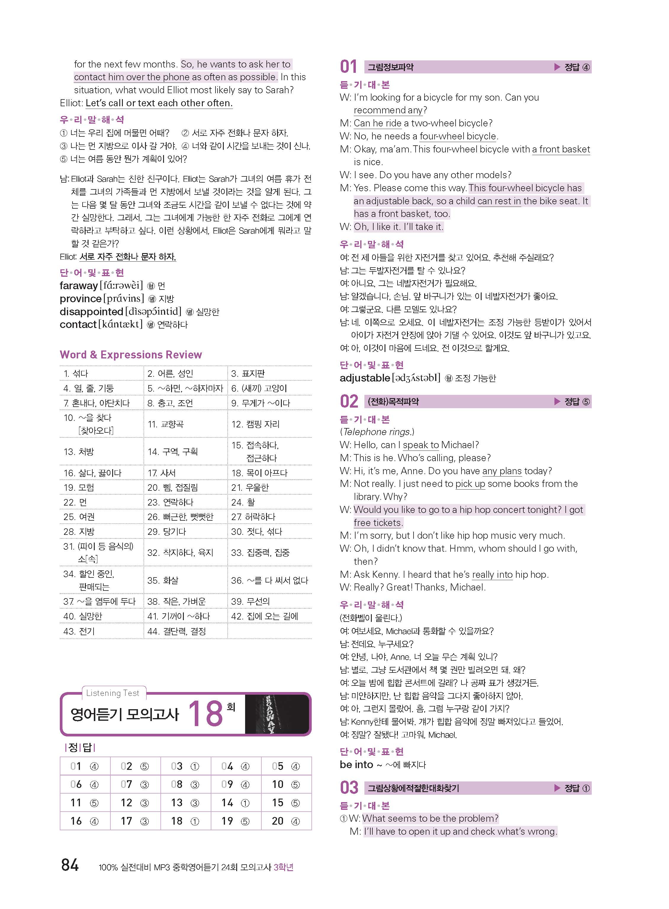 2021 100% 실전대비 MP3 중학영어듣기 24회 모의고사 3학년 답지 사진답지 빠른답지 모바일최적화