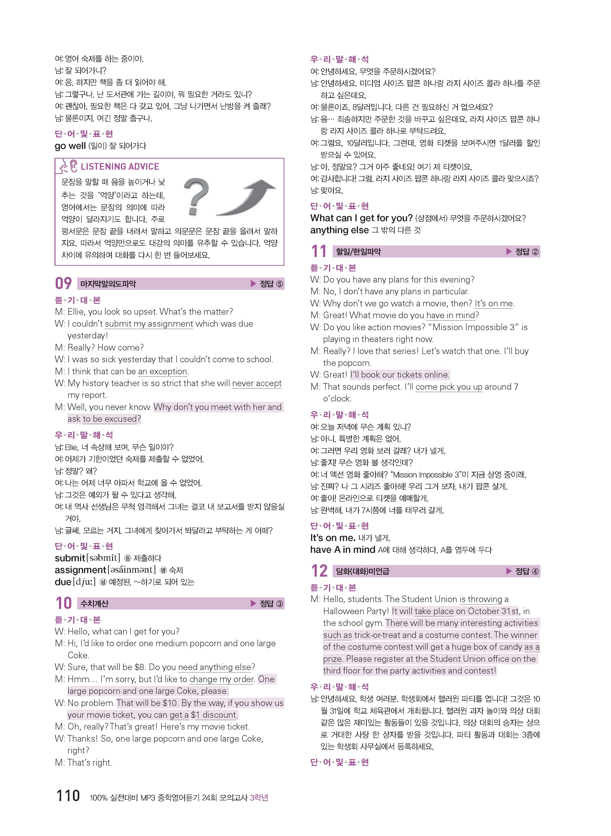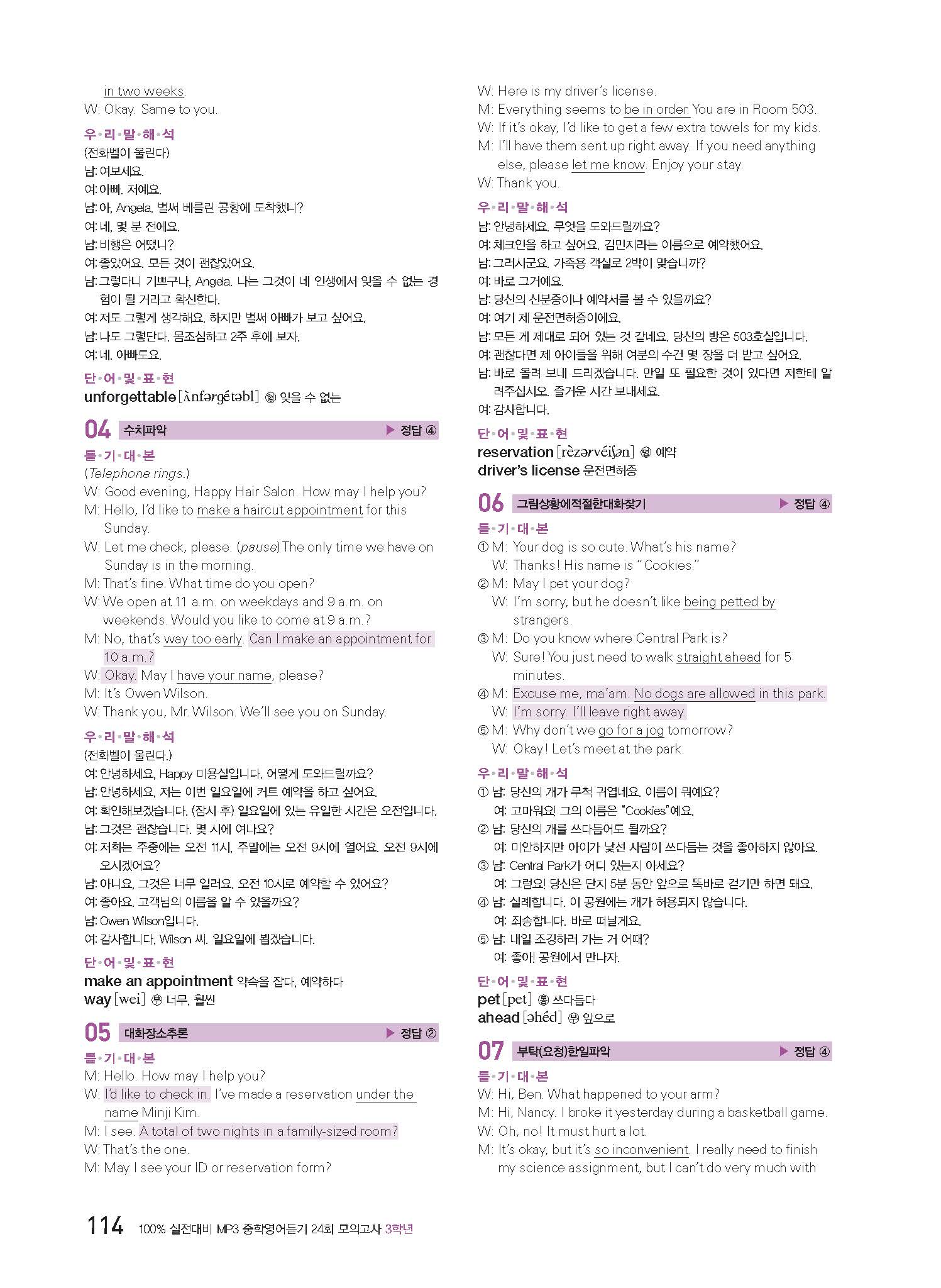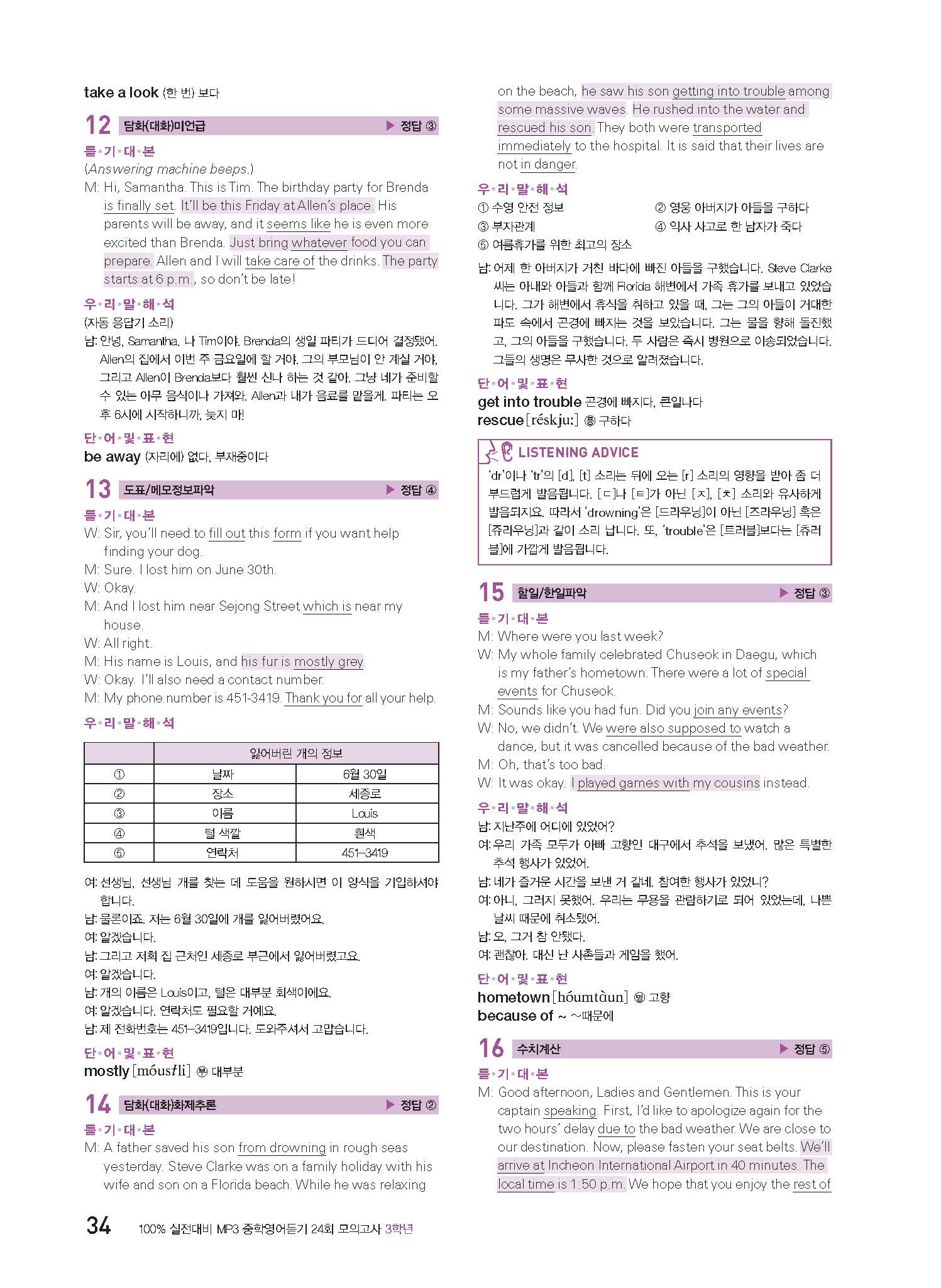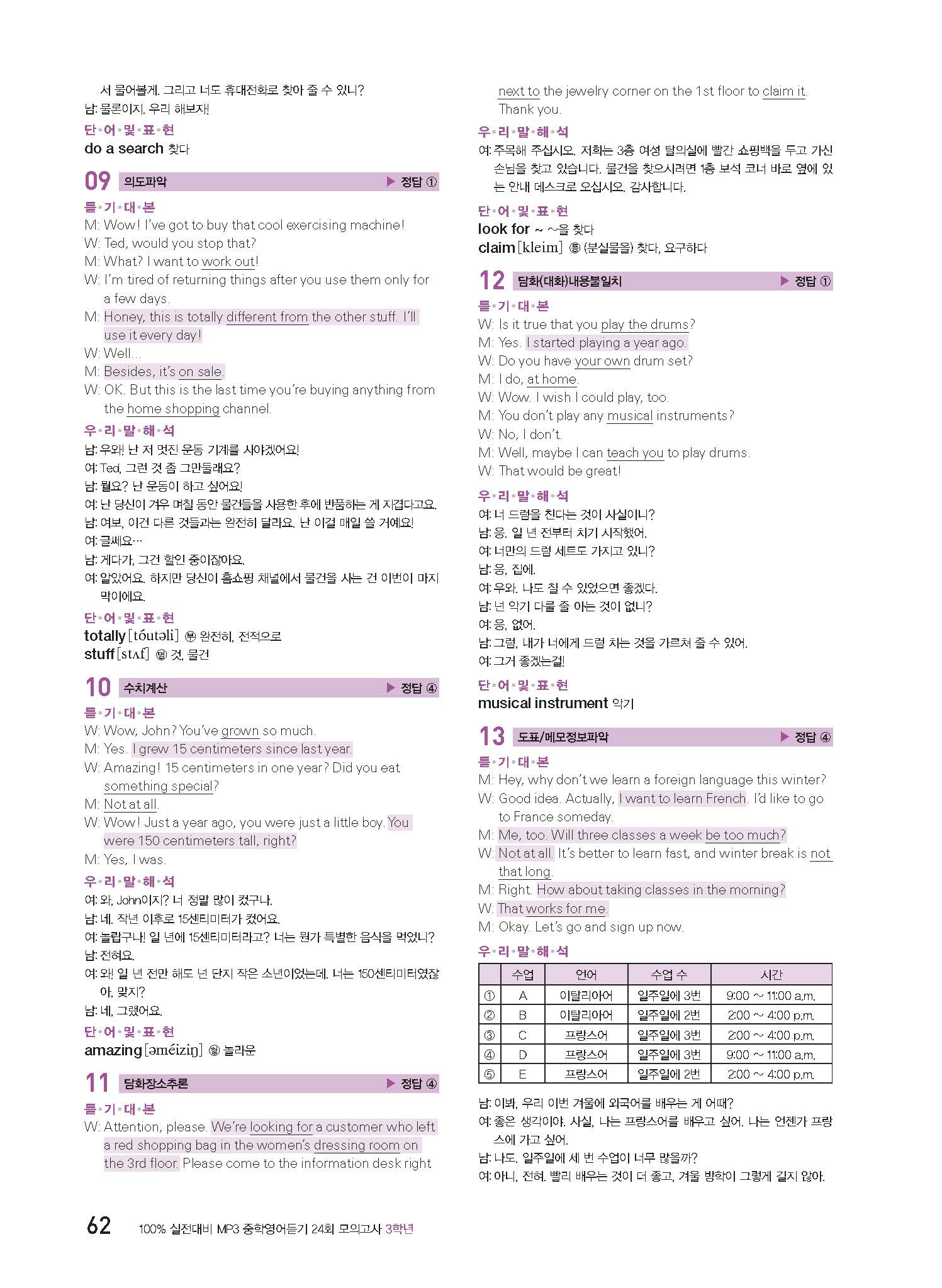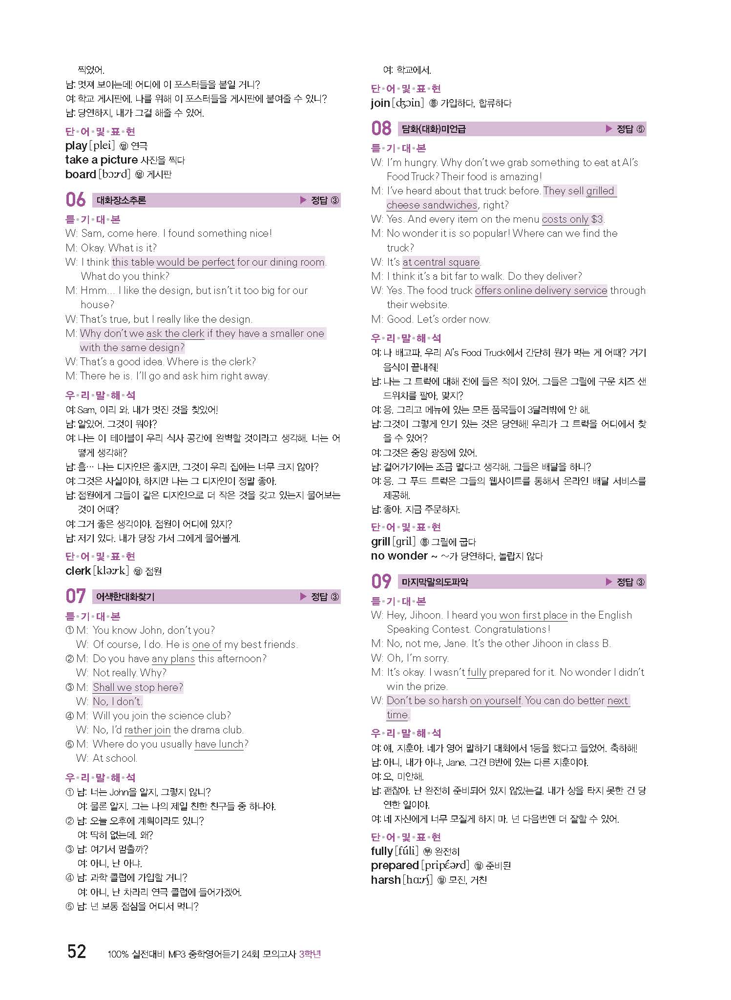 2021 100% 실전대비 MP3 중학영어듣기 24회 모의고사 3학년 답지 사진답지 빠른답지 모바일최적화