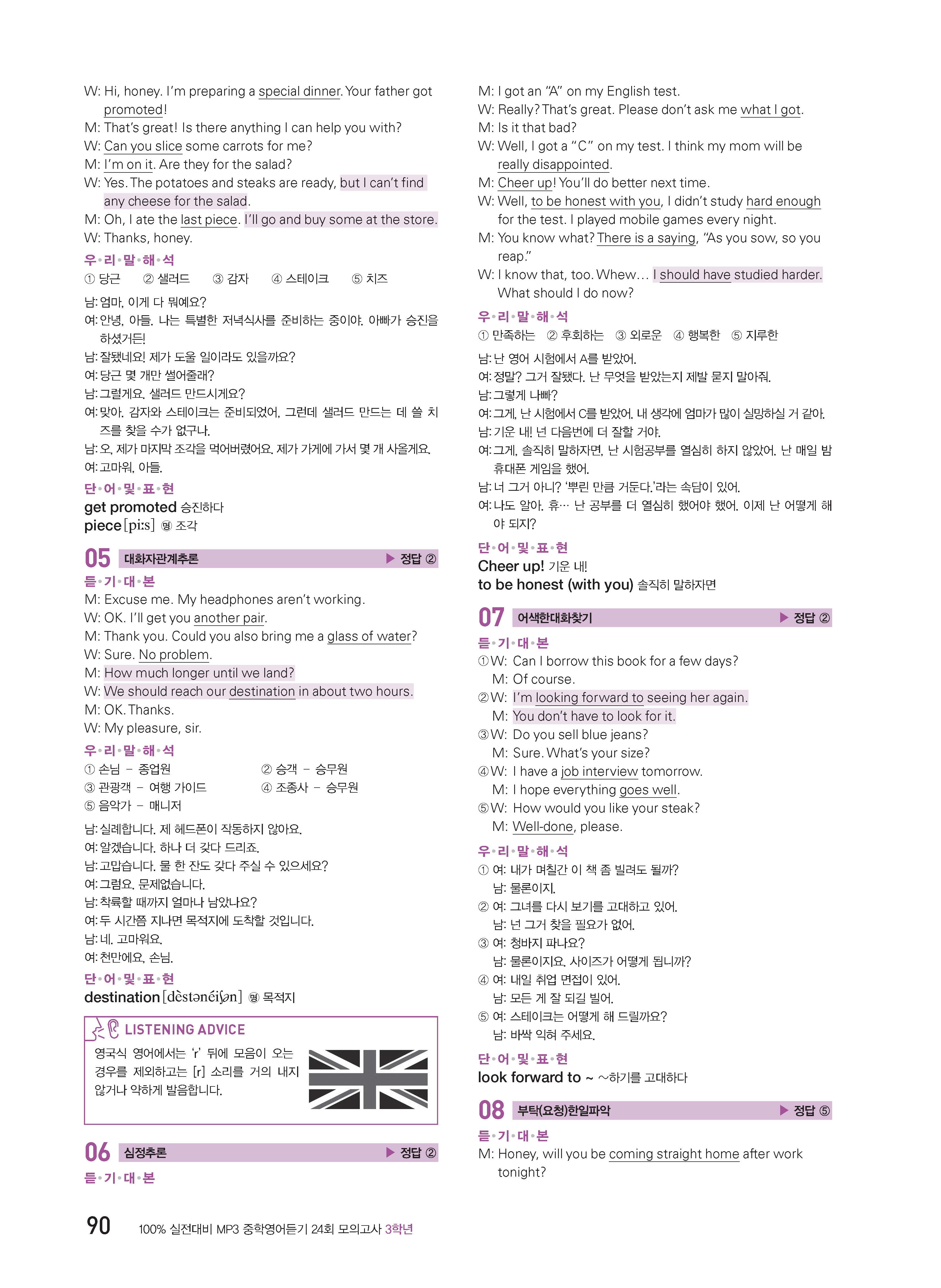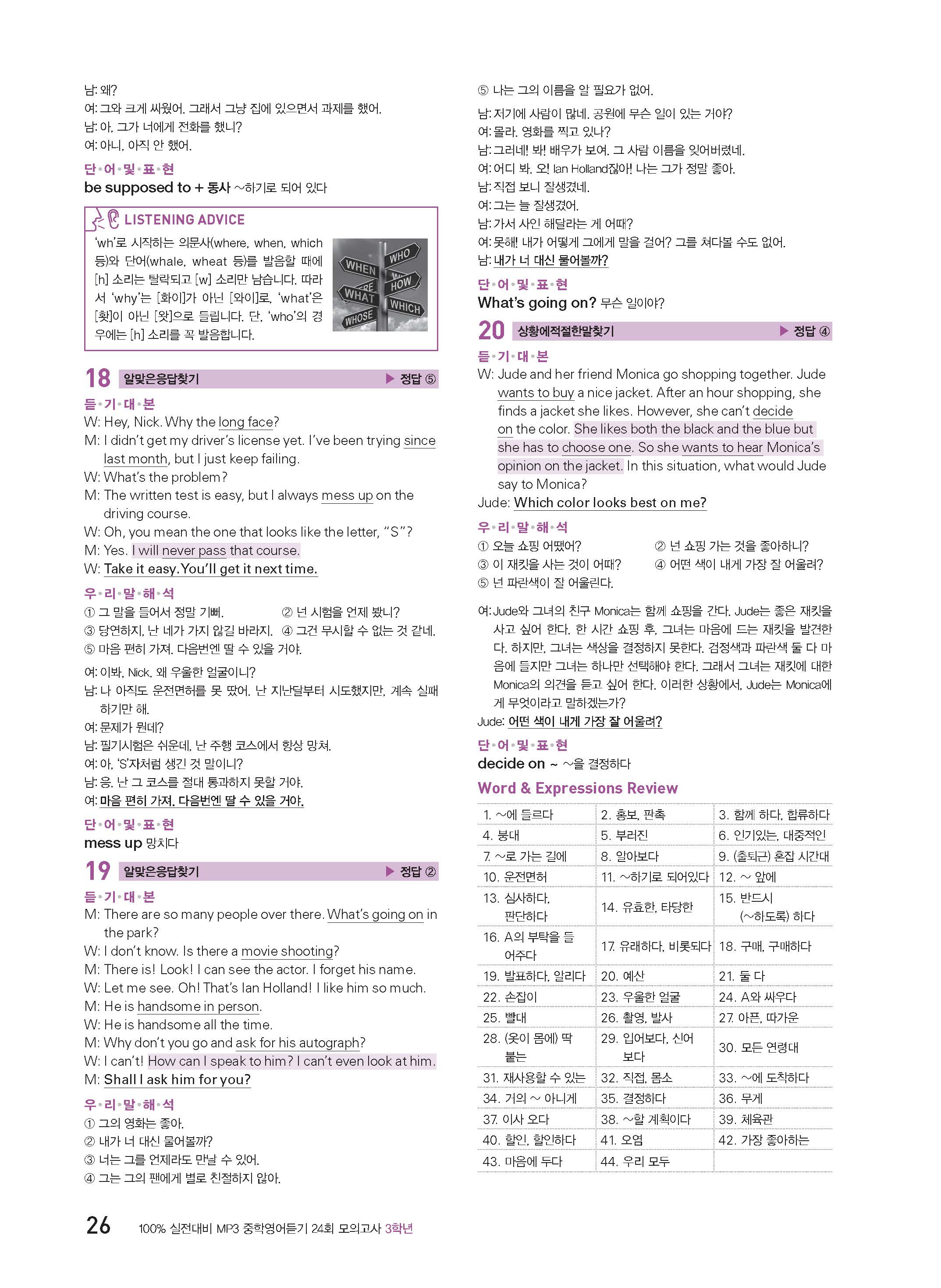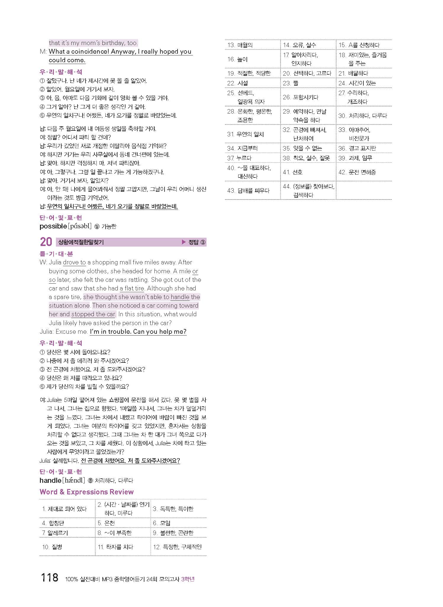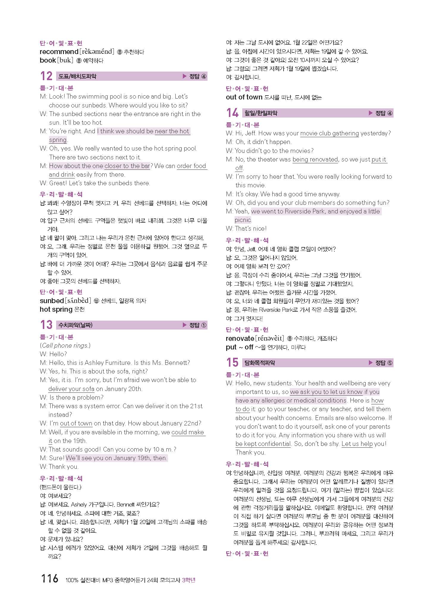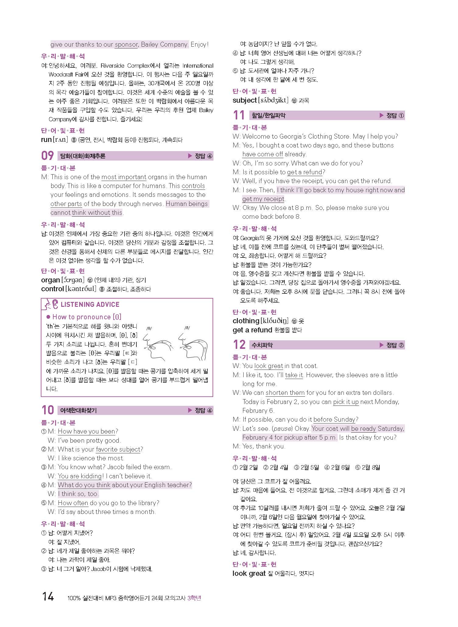 2021 100% 실전대비 MP3 중학영어듣기 24회 모의고사 3학년 답지 사진답지 빠른답지 모바일최적화